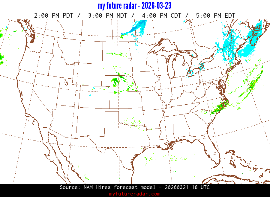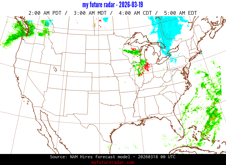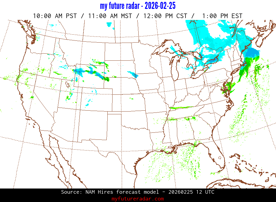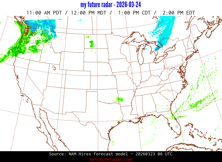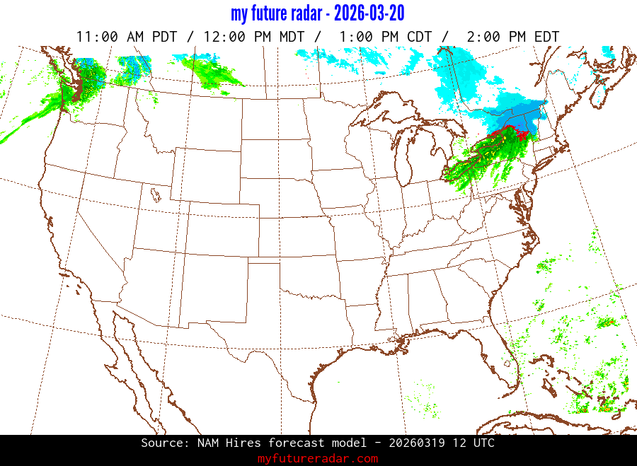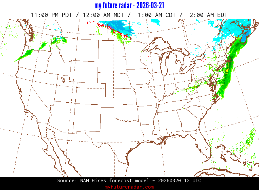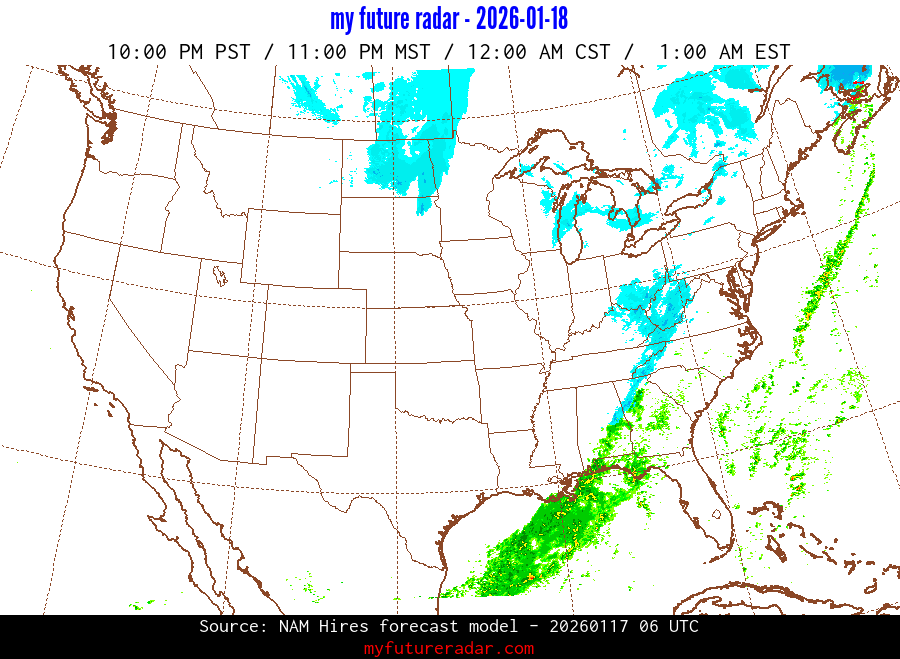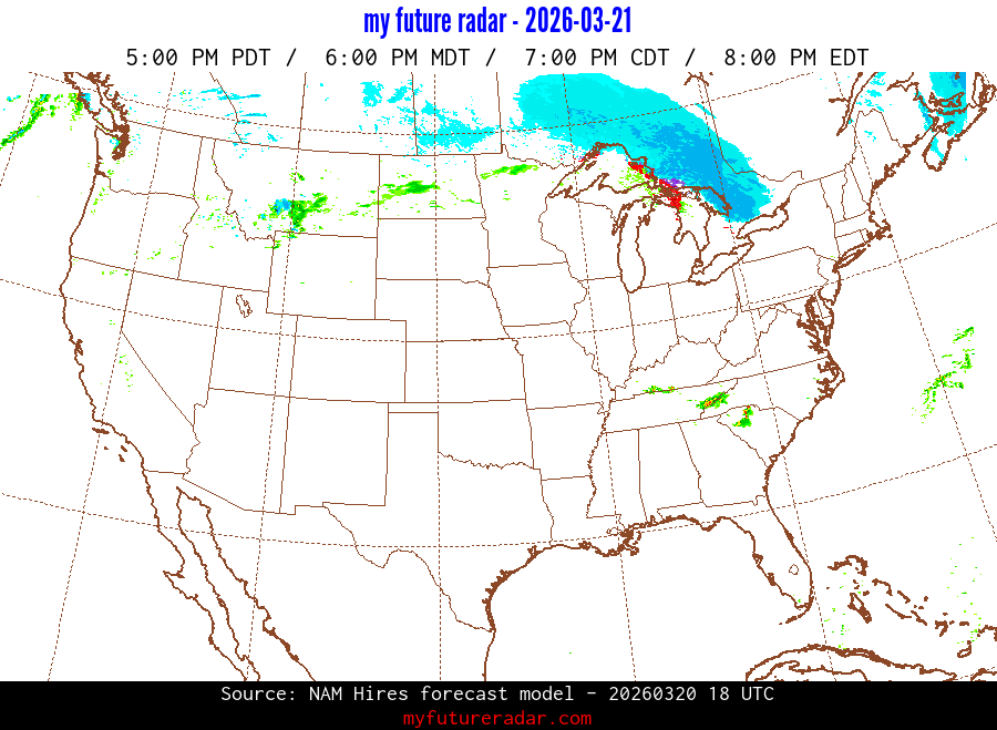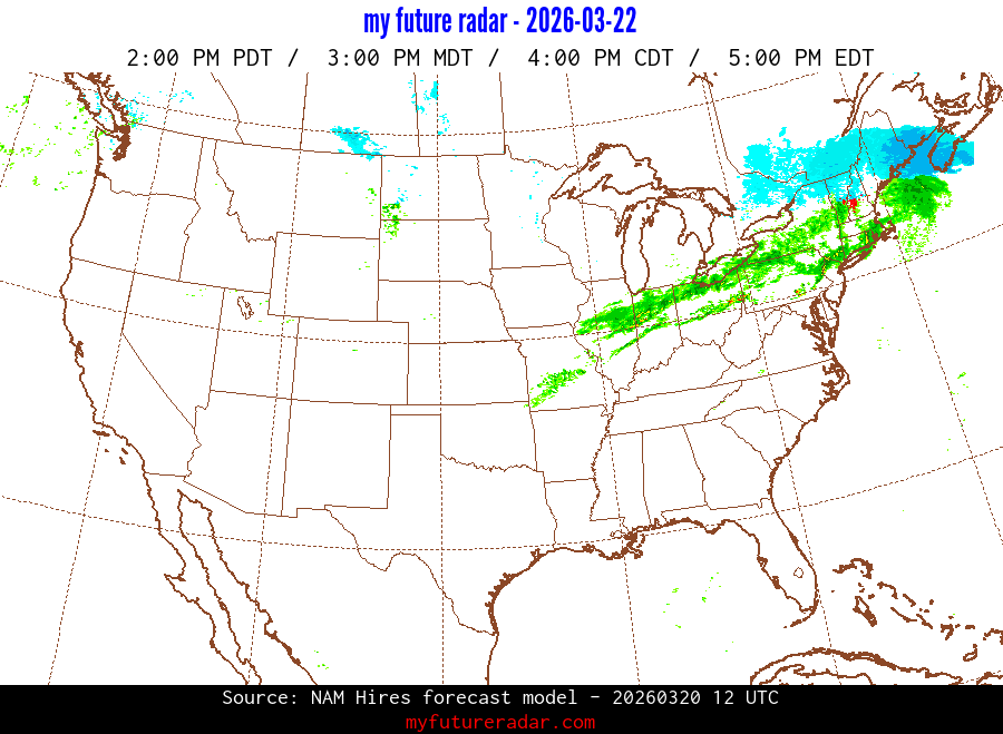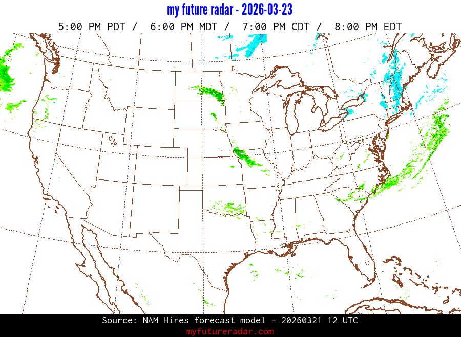 My Future Radar uses data from the Rapid Refresh and the NAM forecast models to provide simulated future radar imagery.