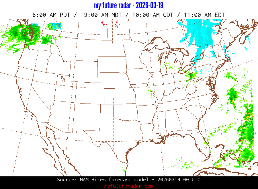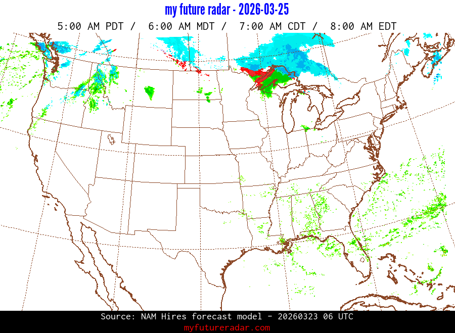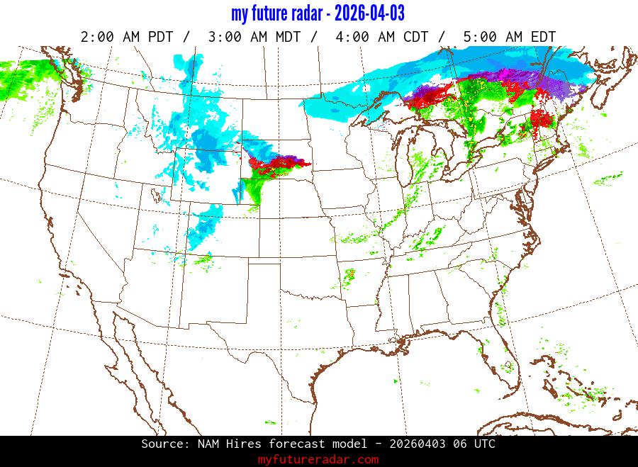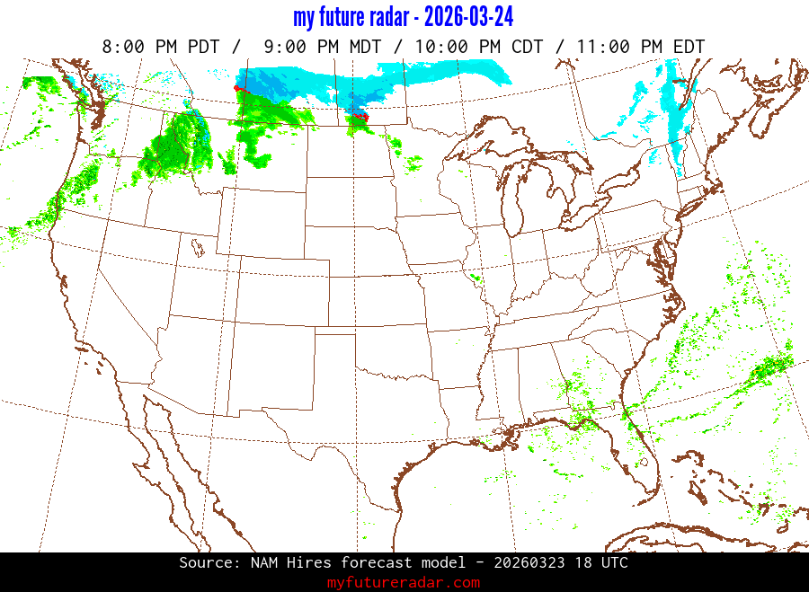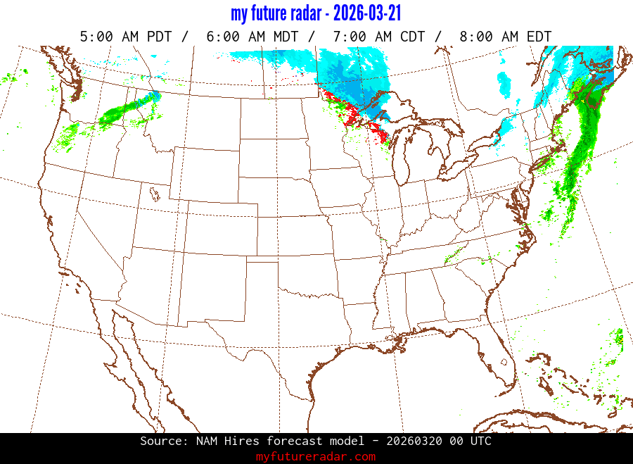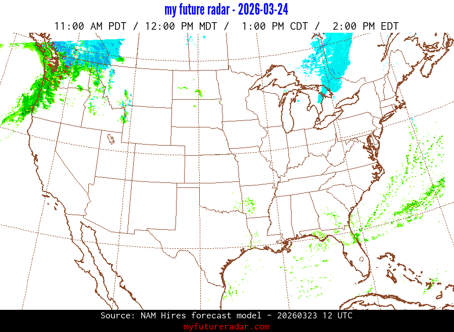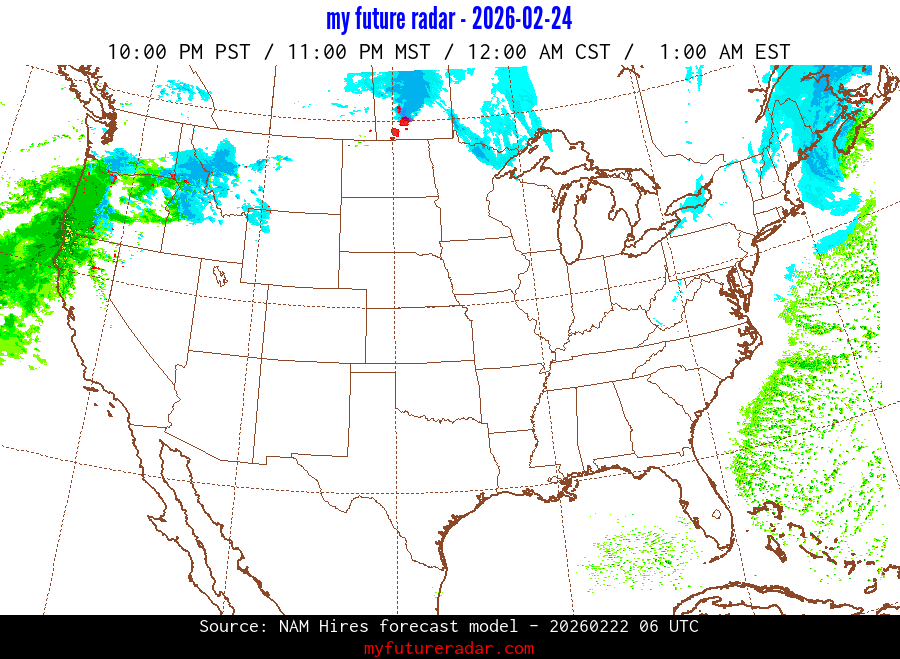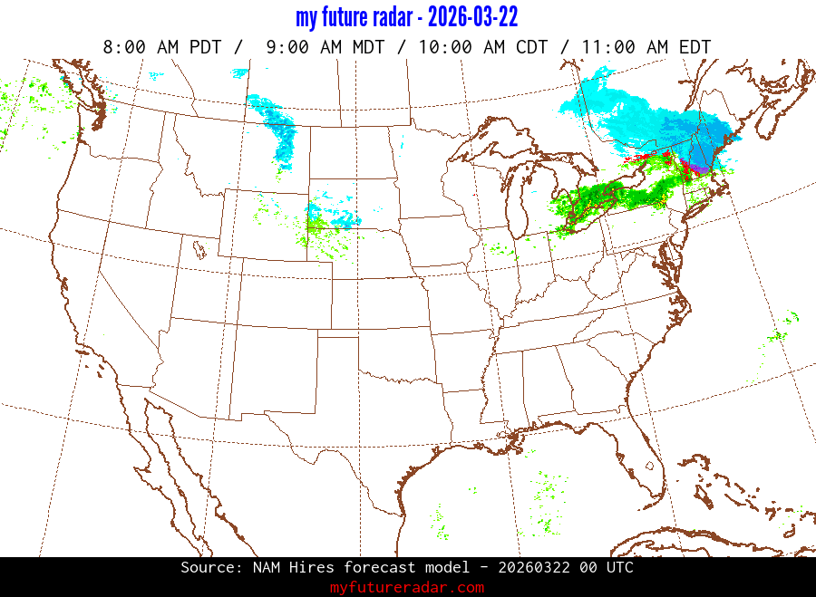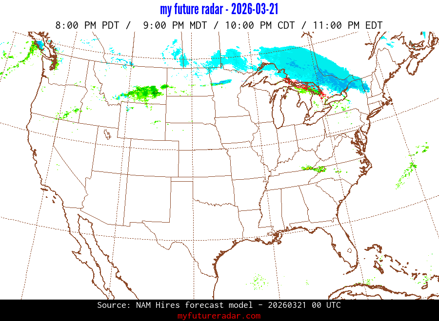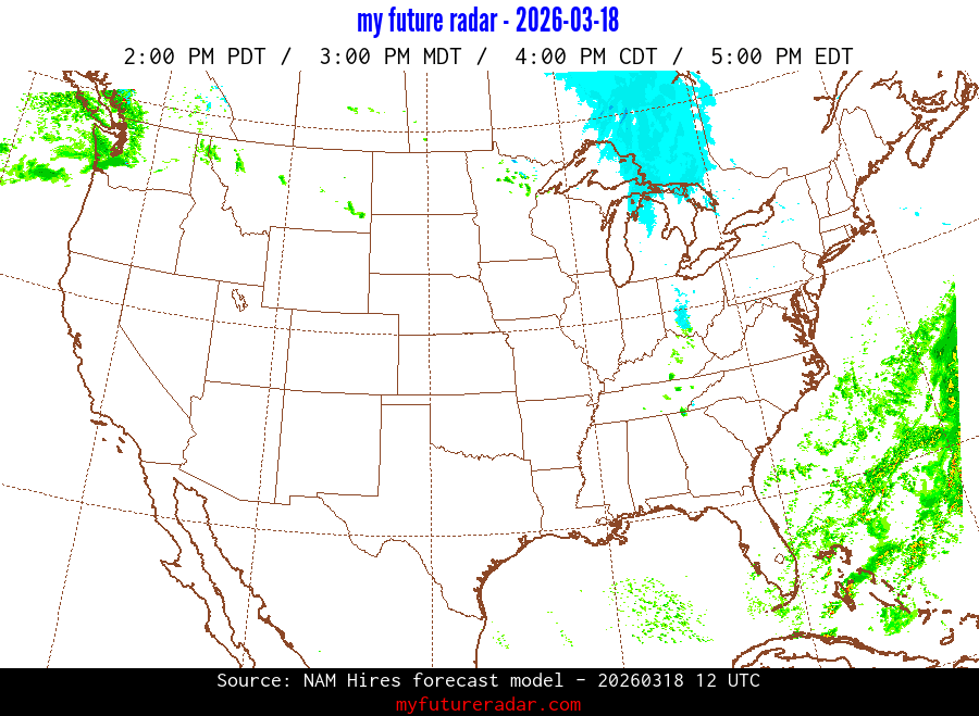 My Future Radar uses data from the Rapid Refresh and the NAM forecast models to provide simulated future radar imagery.