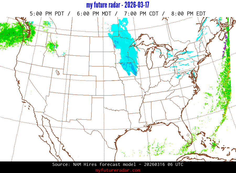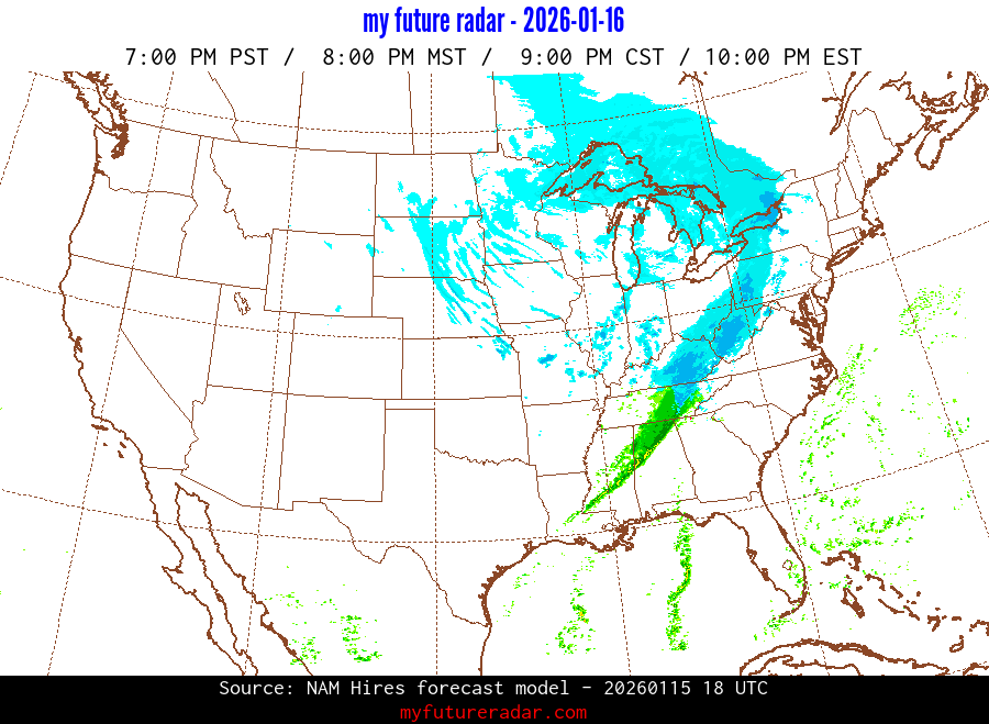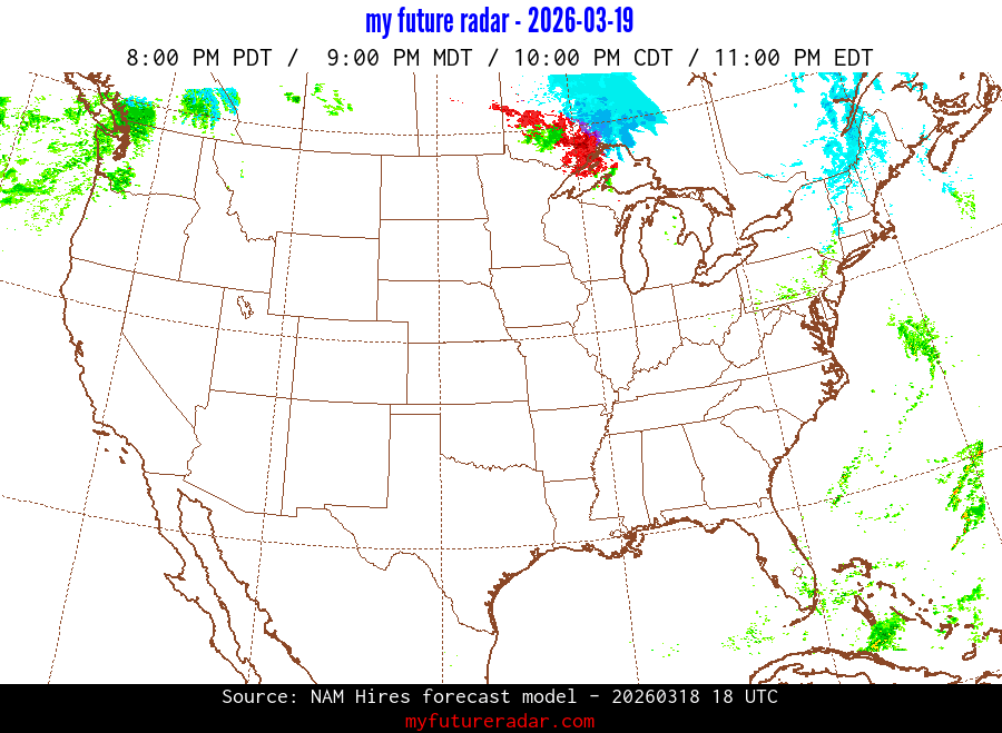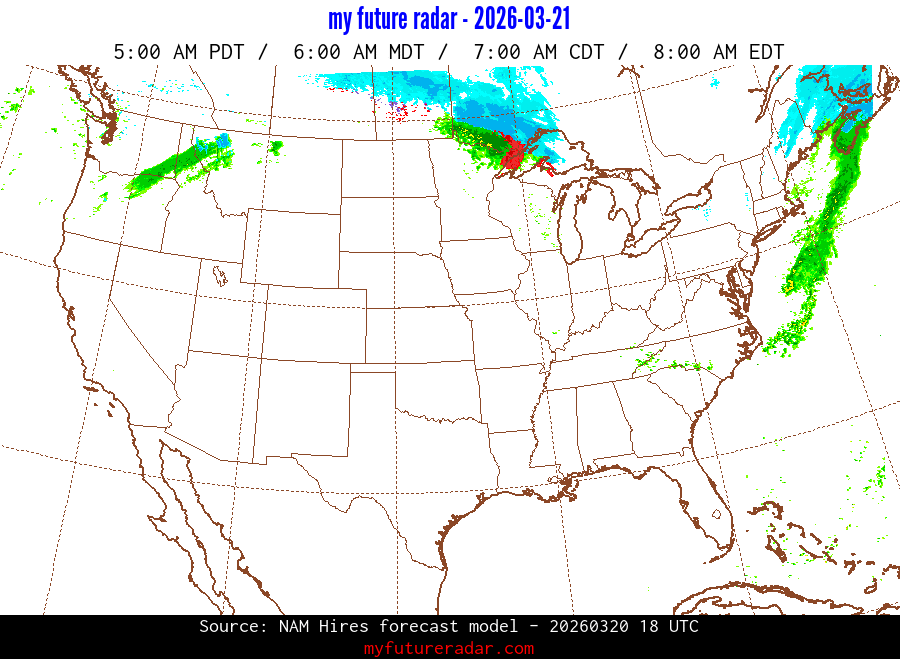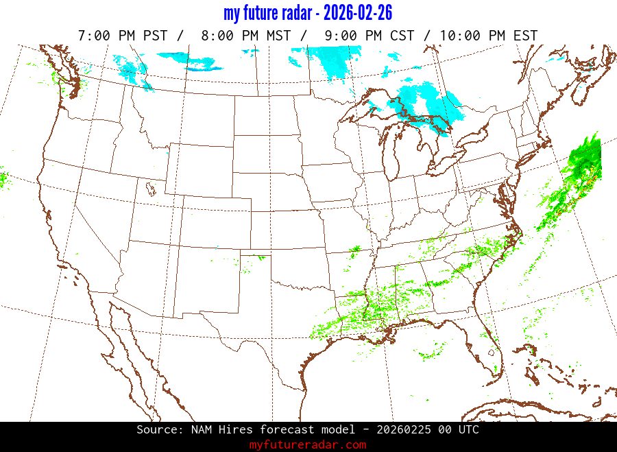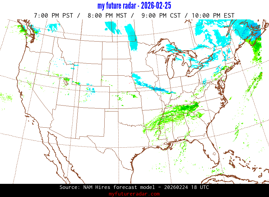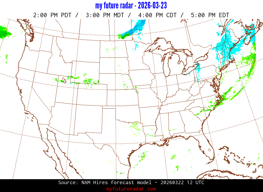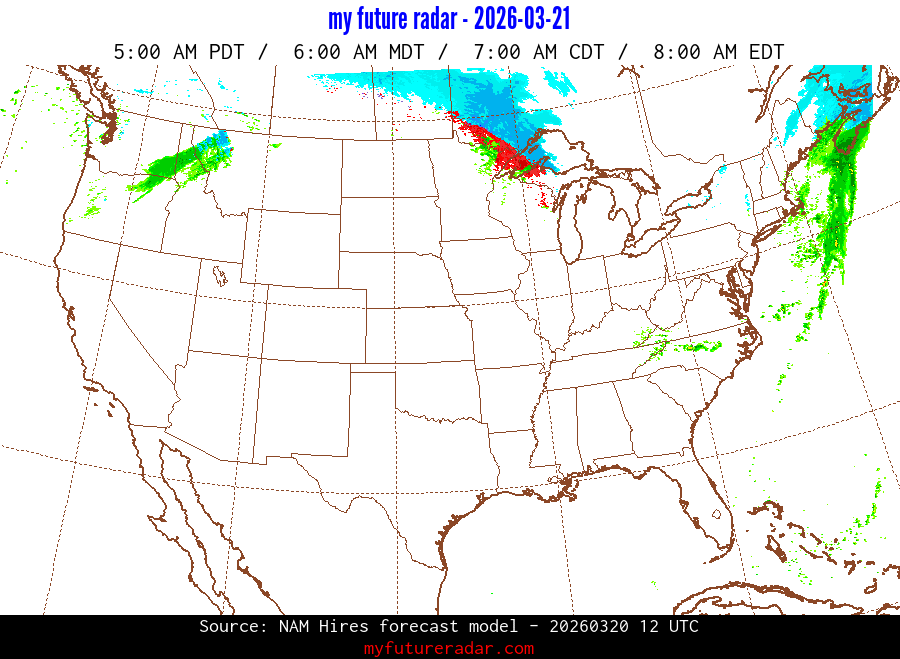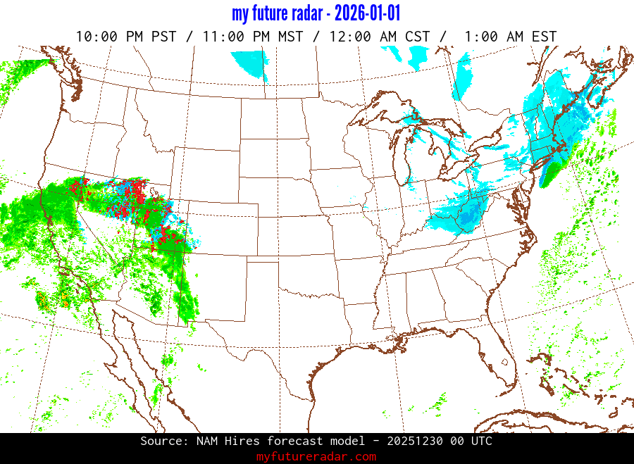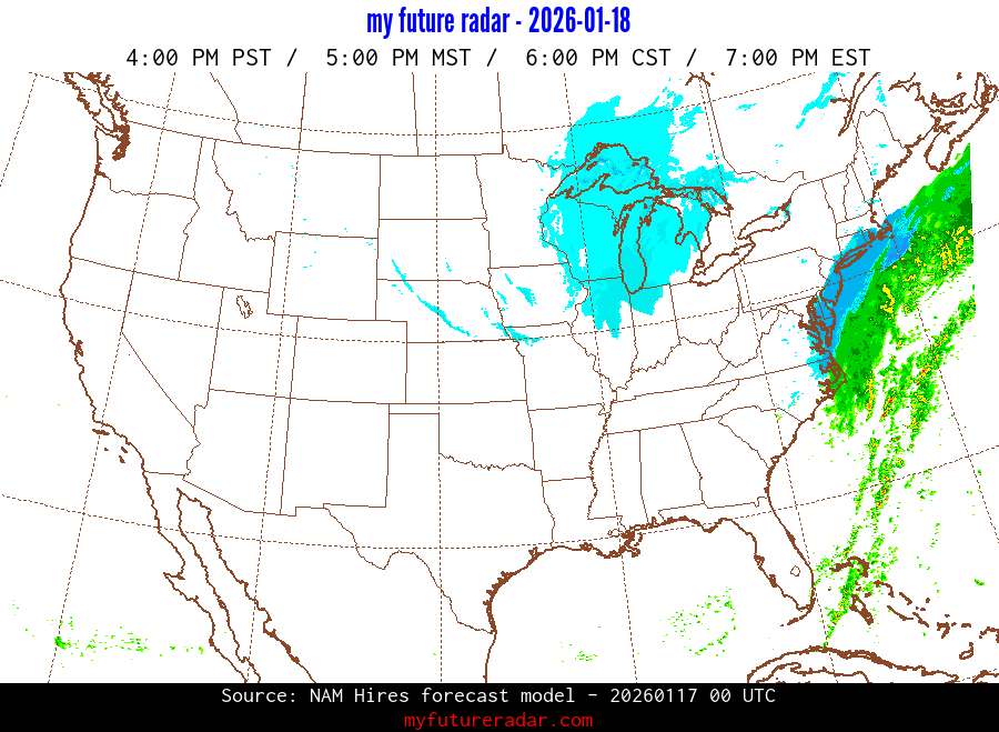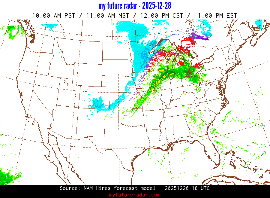 My Future Radar uses data from the Rapid Refresh and the NAM forecast models to provide simulated future radar imagery.