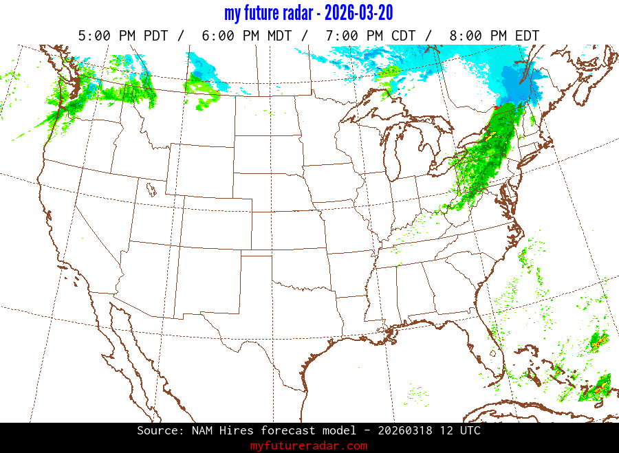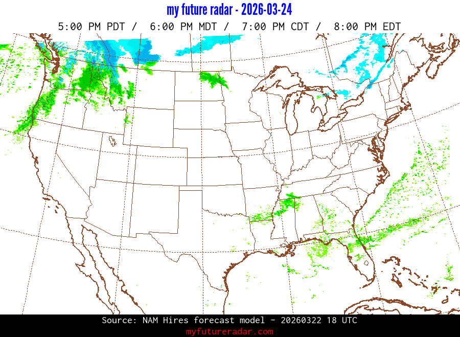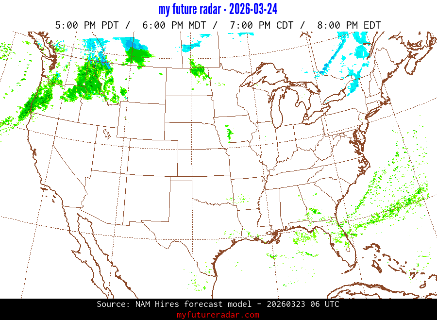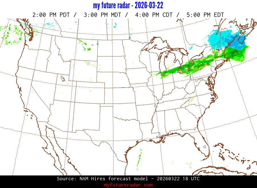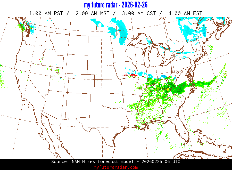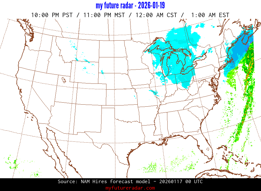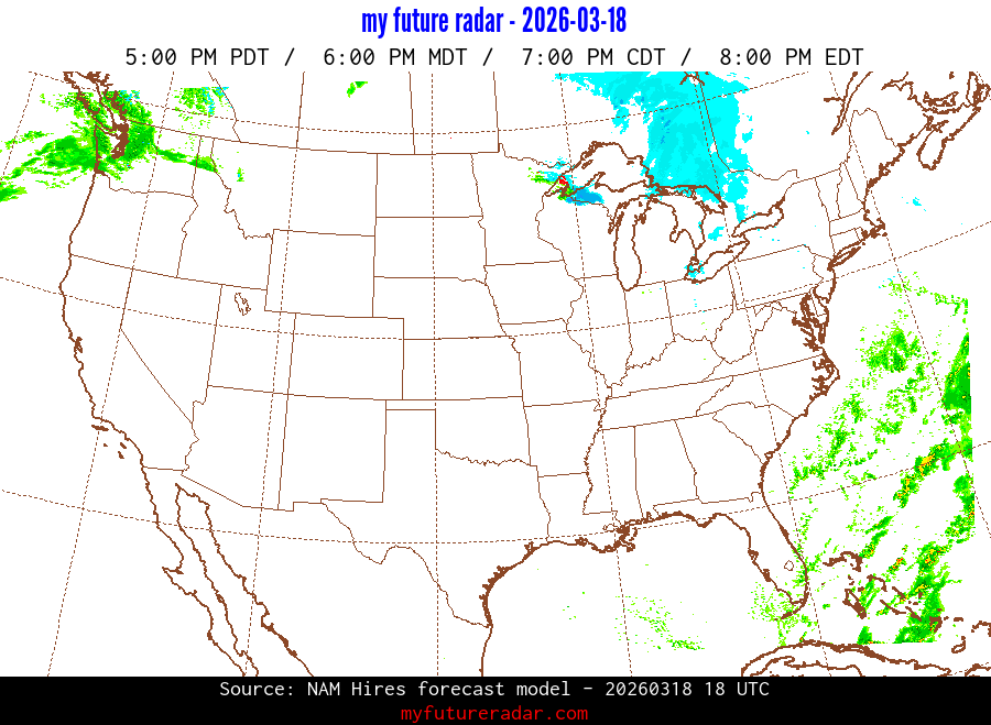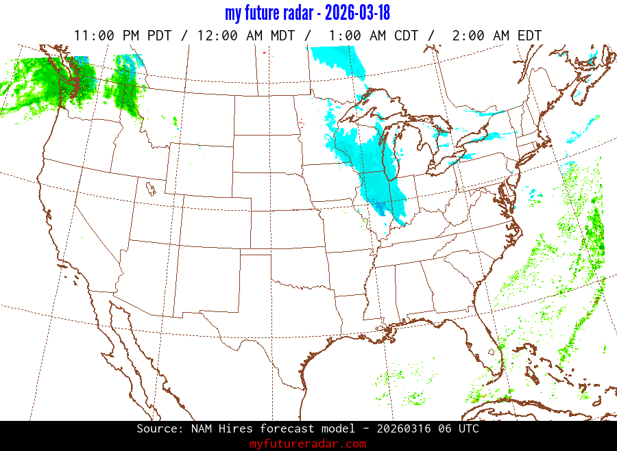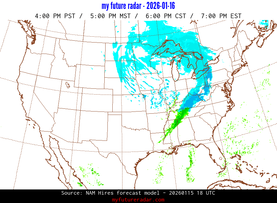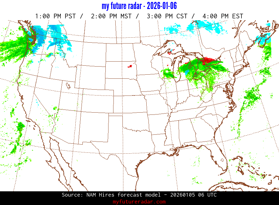 My Future Radar uses data from the Rapid Refresh and the NAM forecast models to provide simulated future radar imagery.