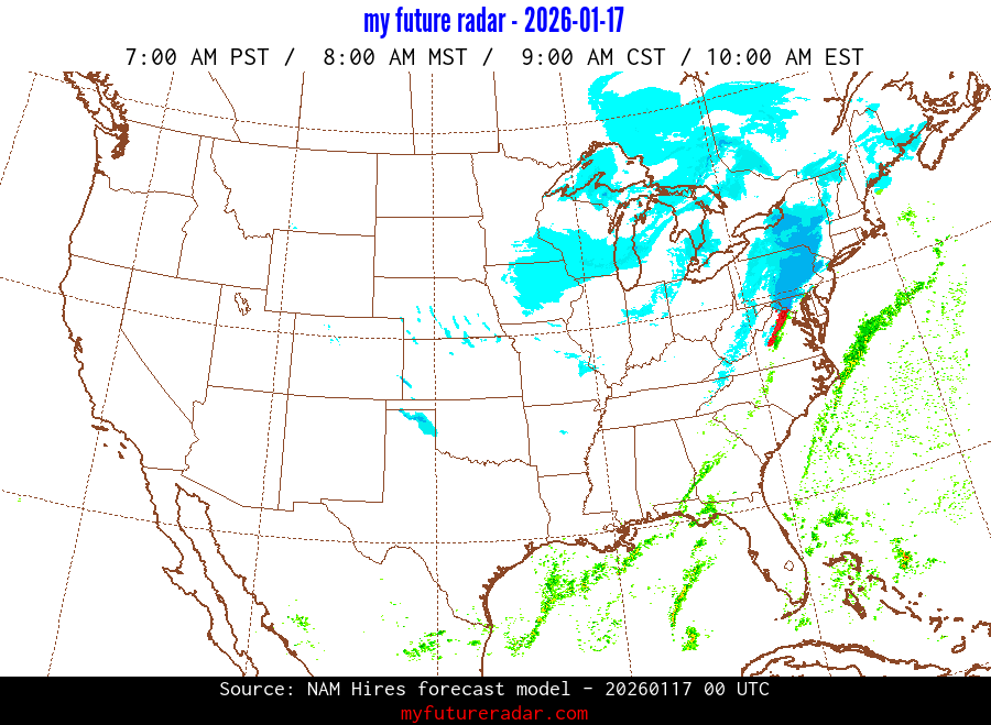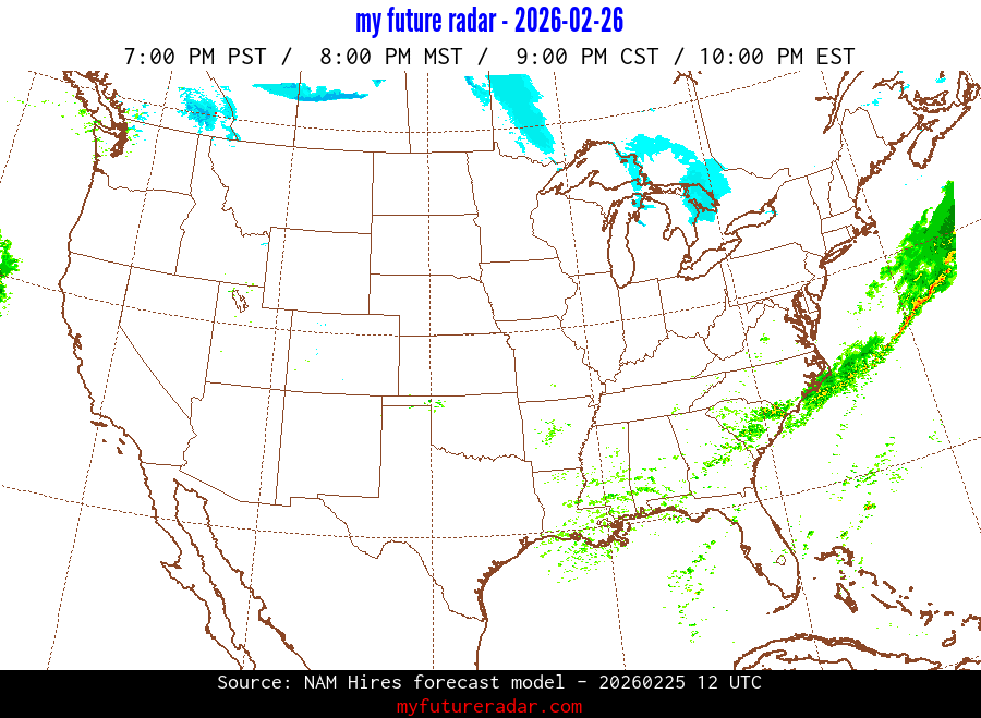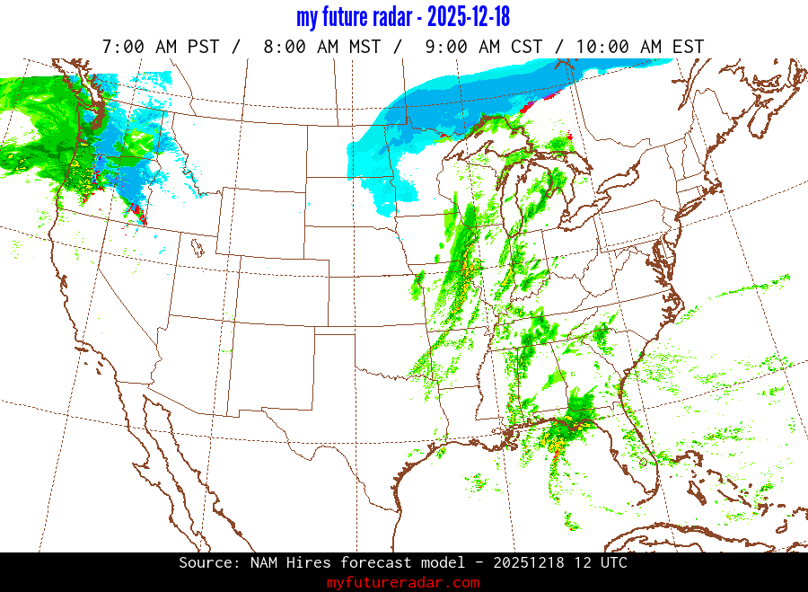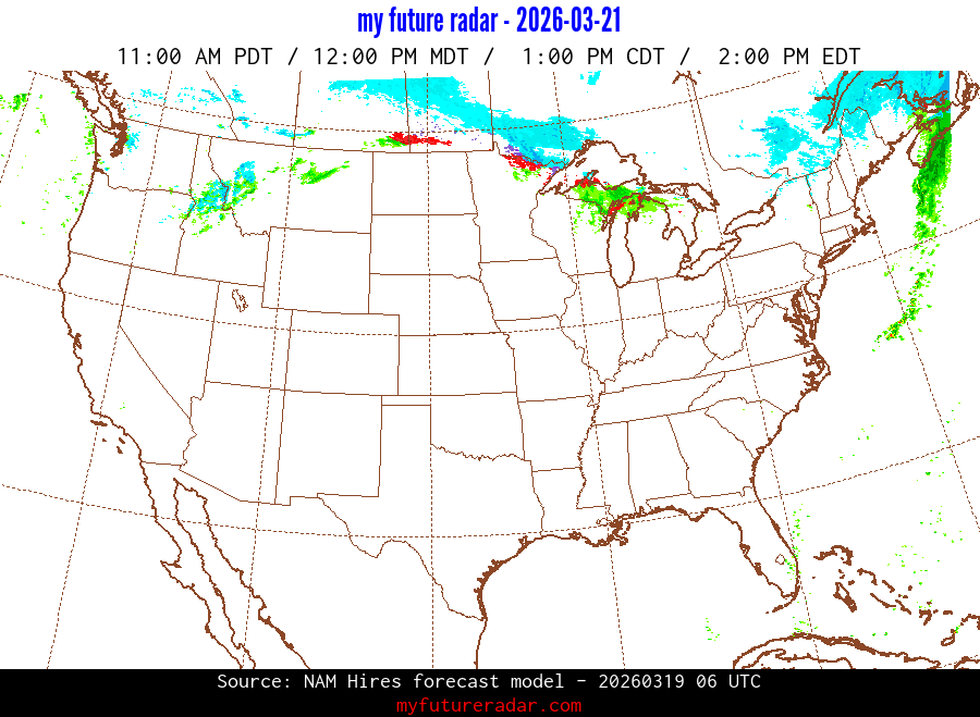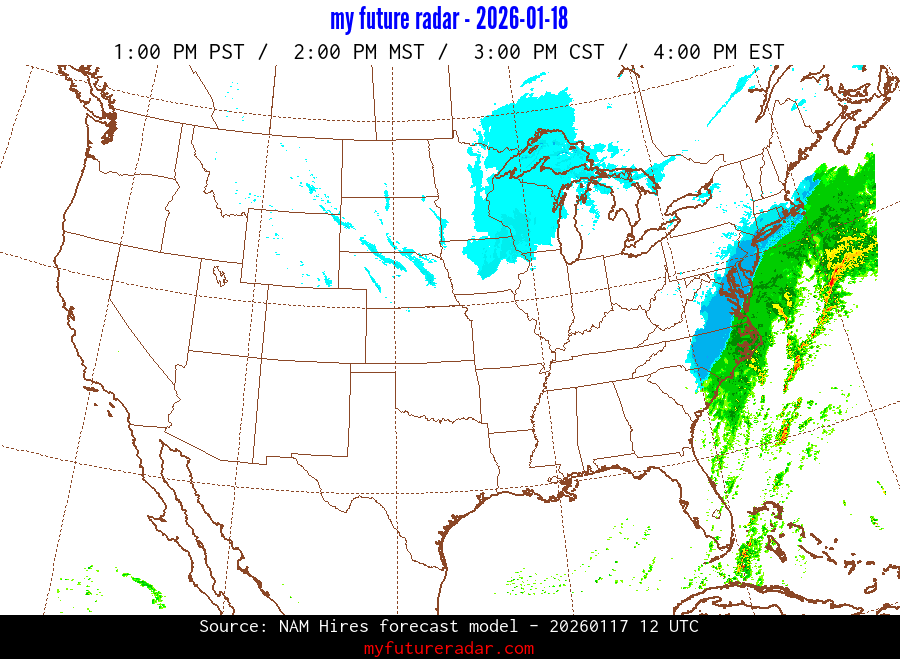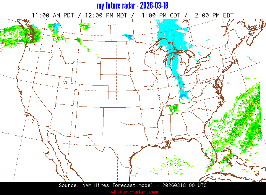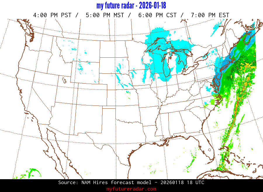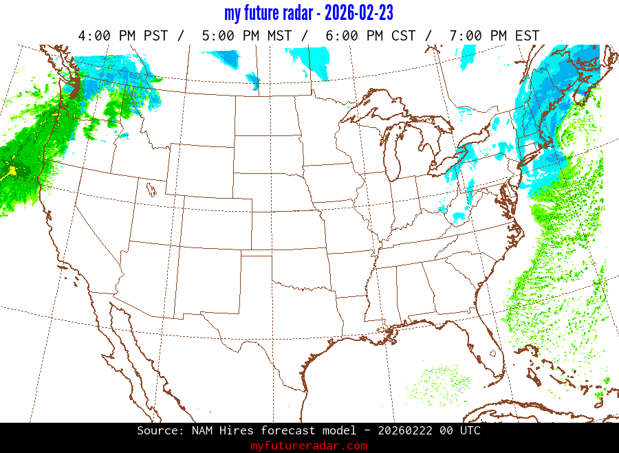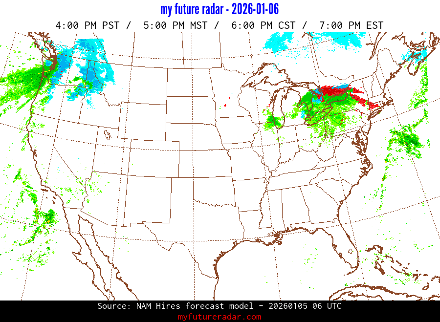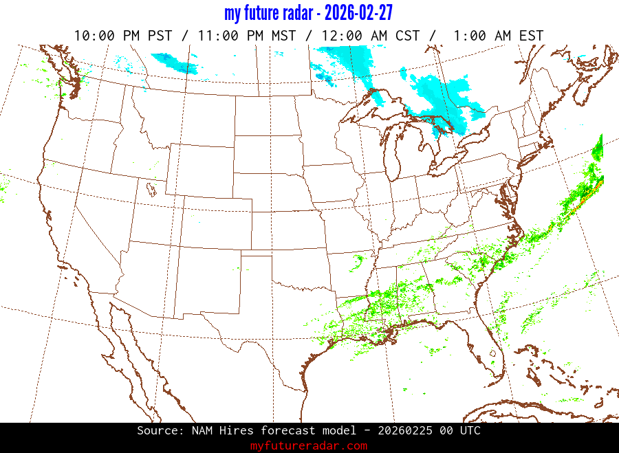 My Future Radar uses data from the Rapid Refresh and the NAM forecast models to provide simulated future radar imagery.