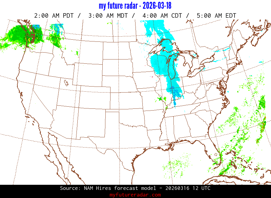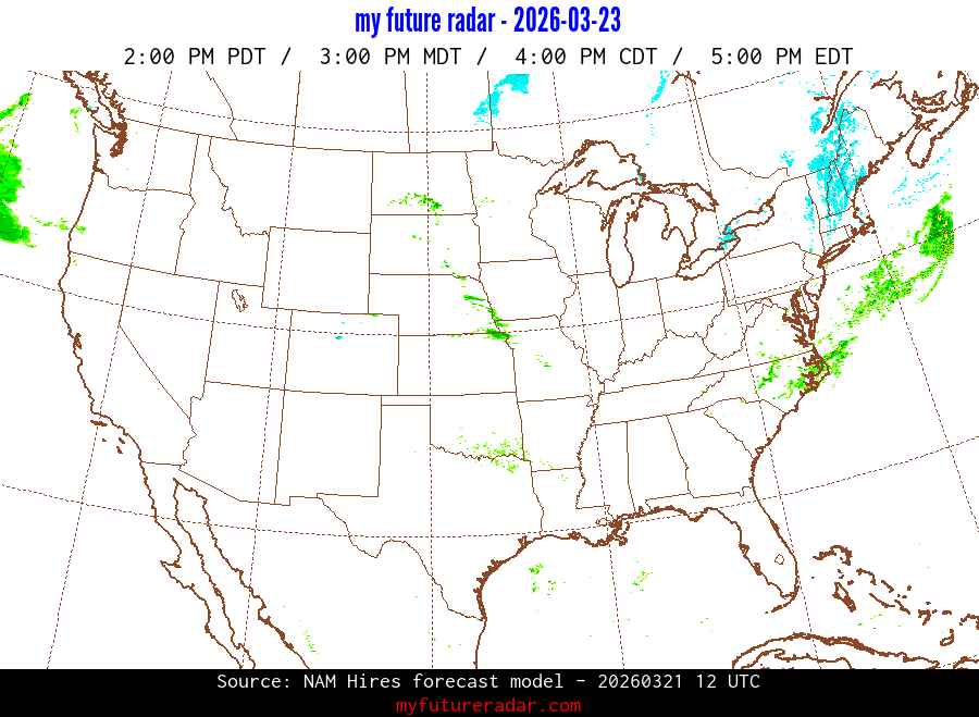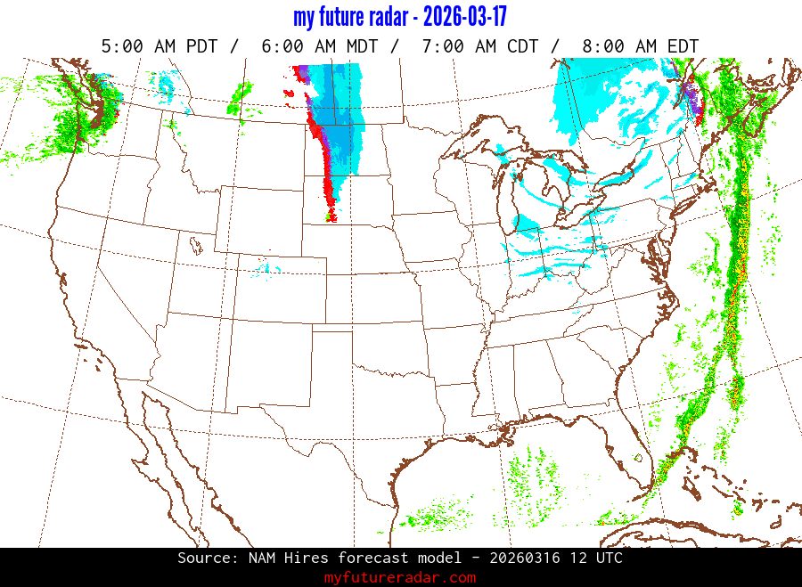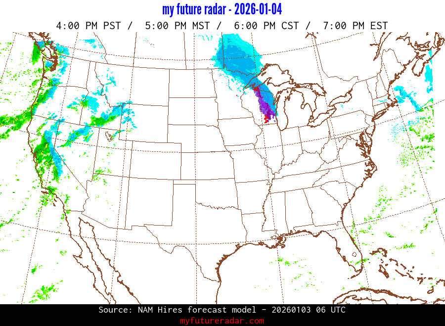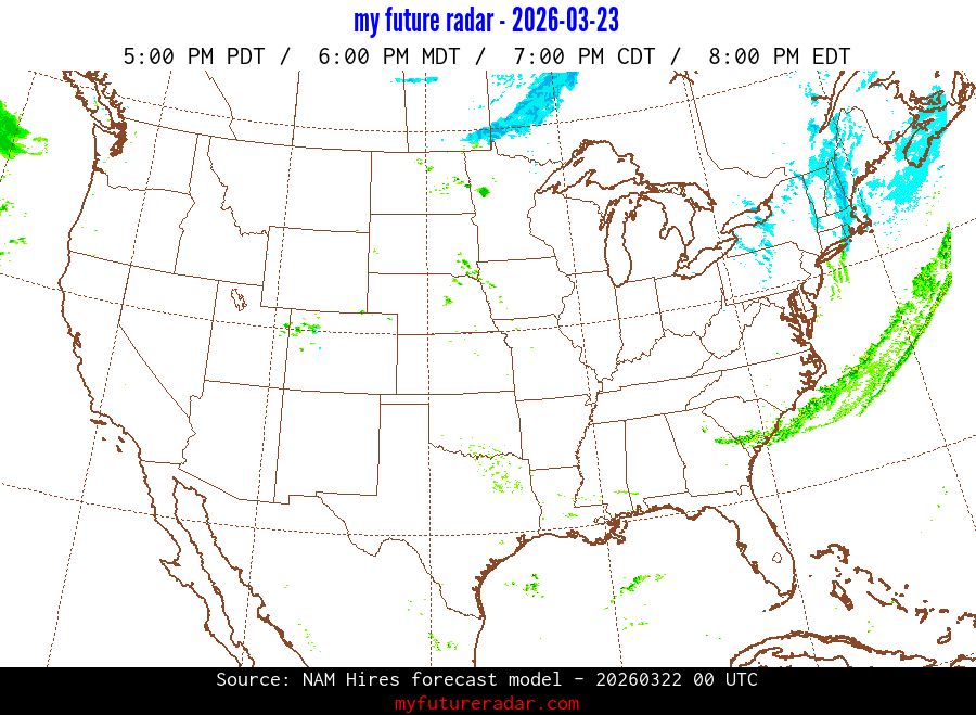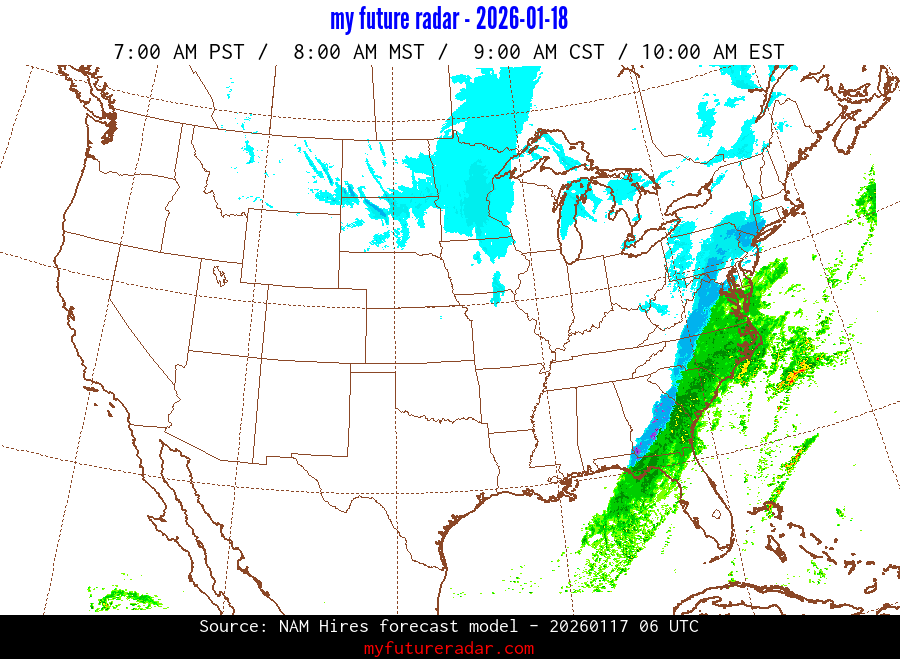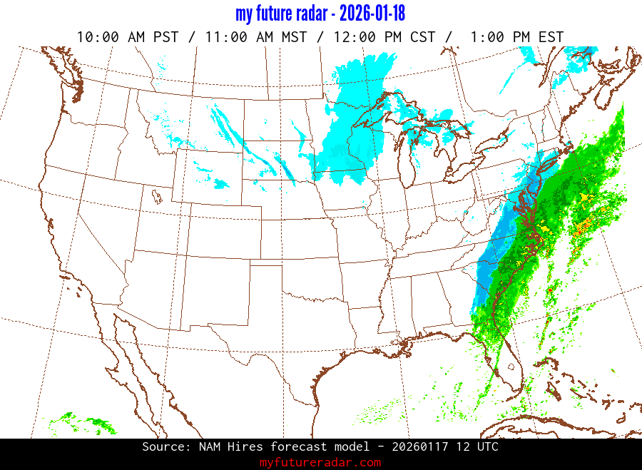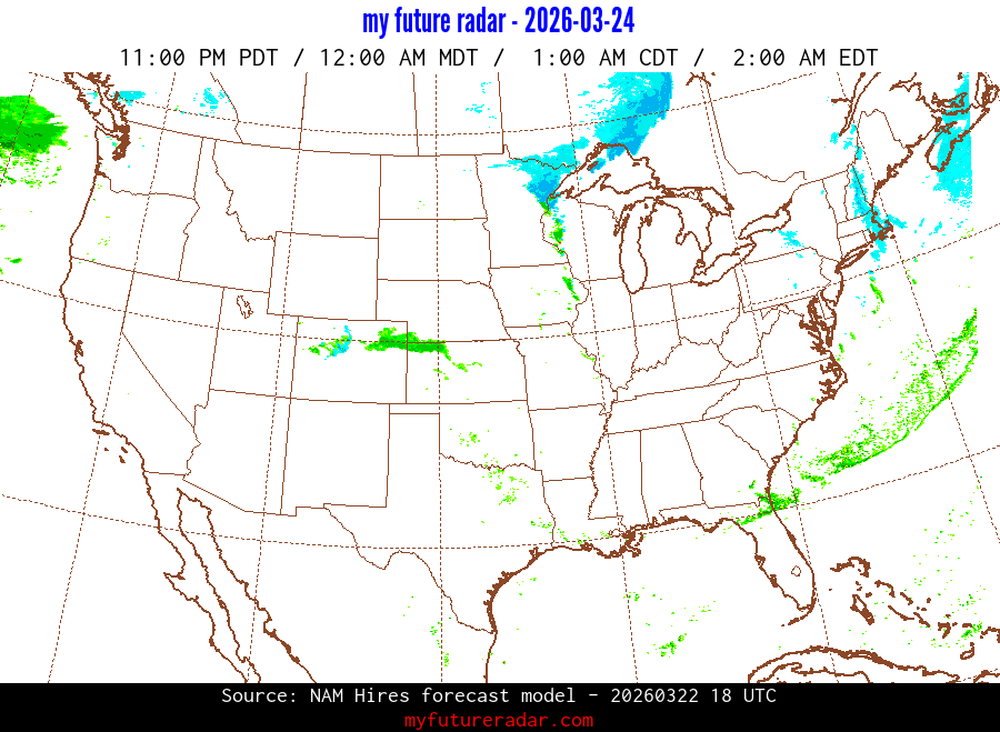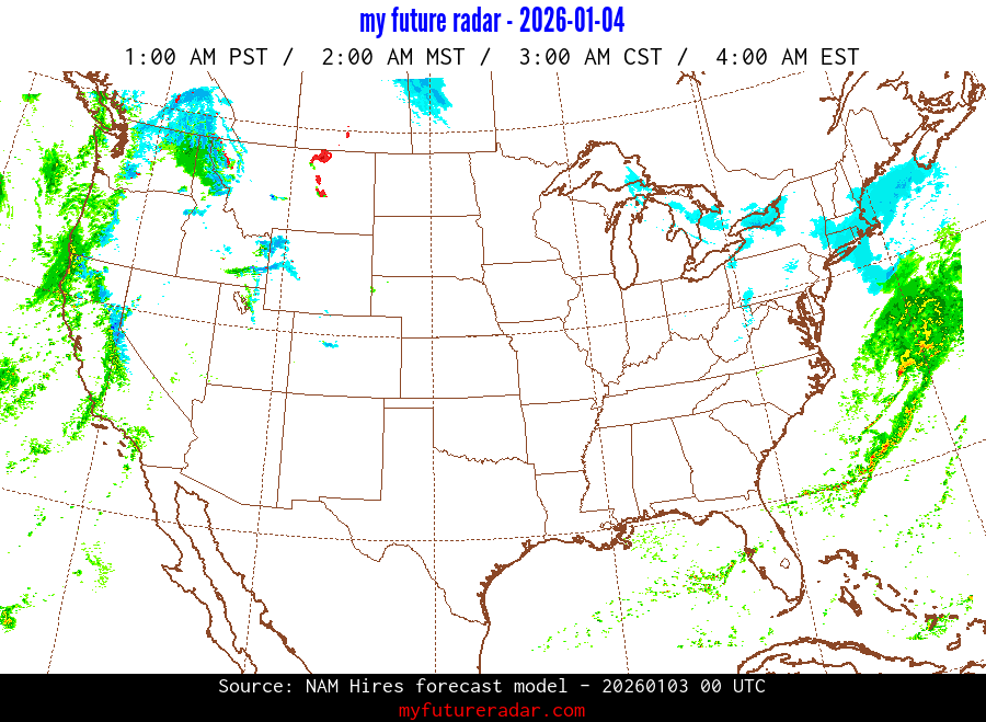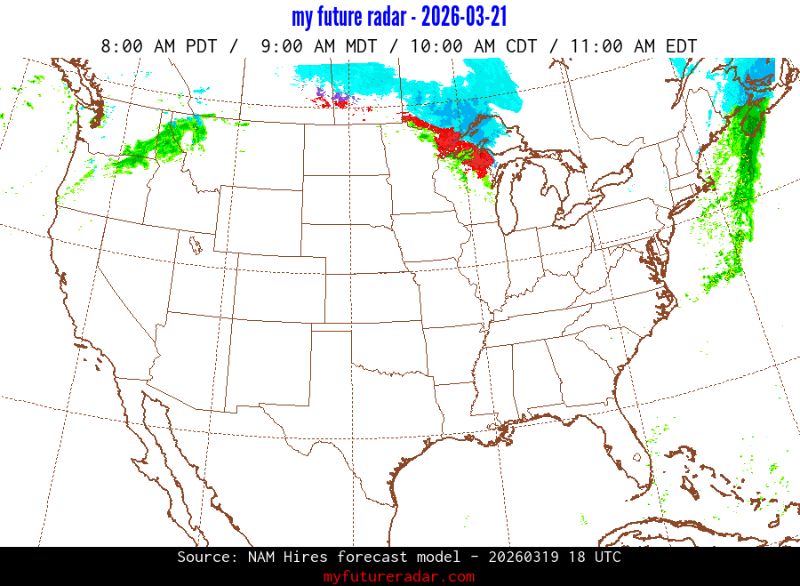 My Future Radar uses data from the Rapid Refresh and the NAM forecast models to provide simulated future radar imagery.