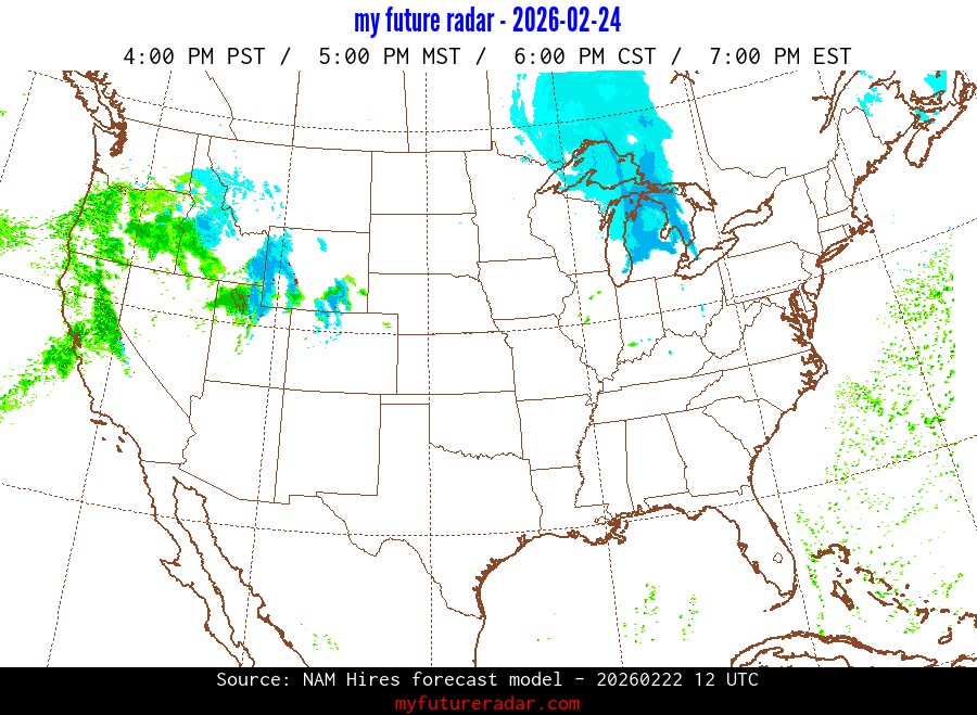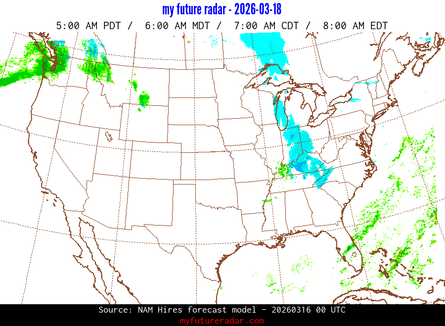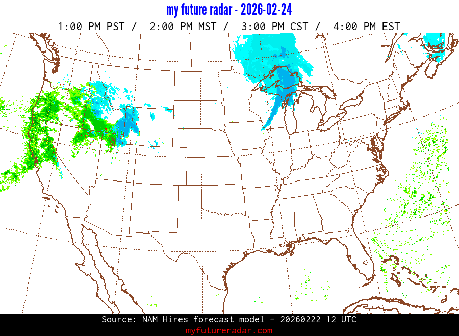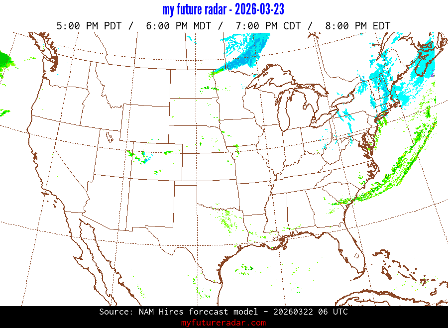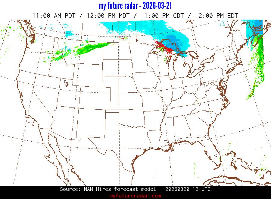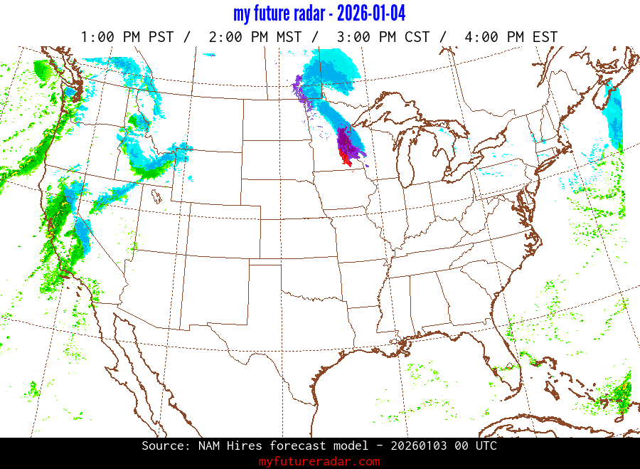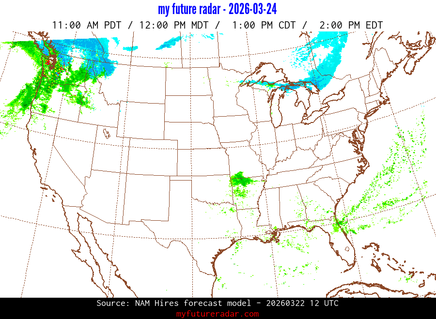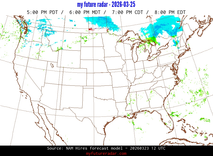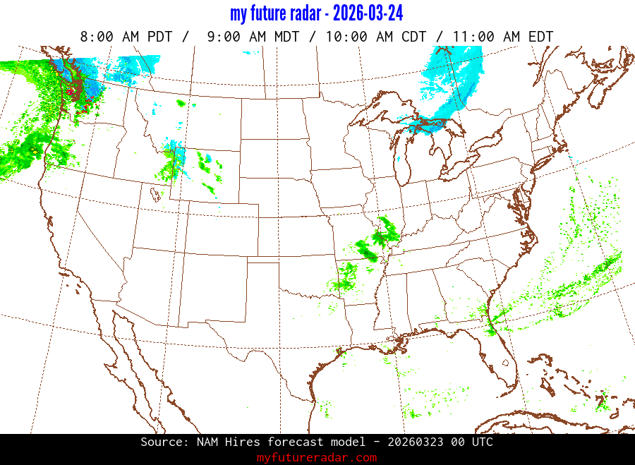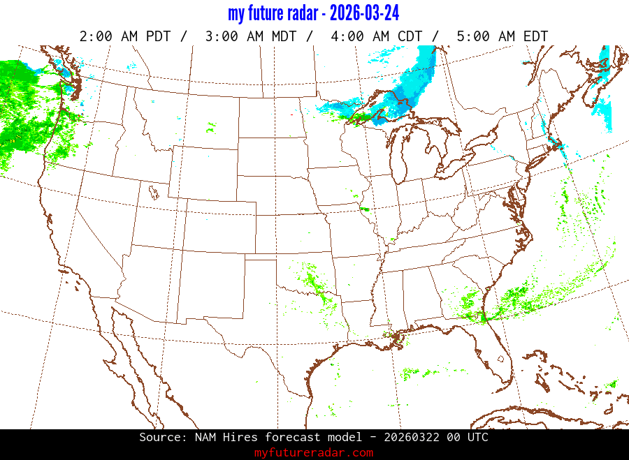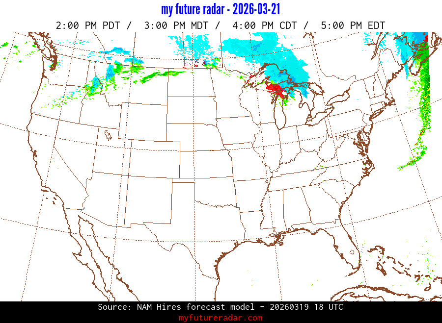 My Future Radar uses data from the Rapid Refresh and the NAM forecast models to provide simulated future radar imagery.