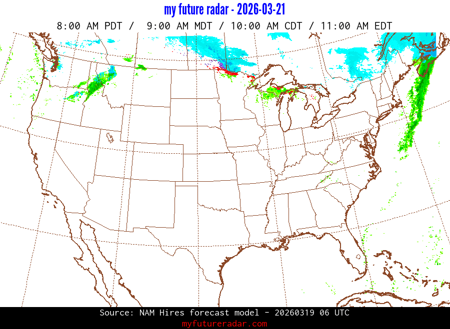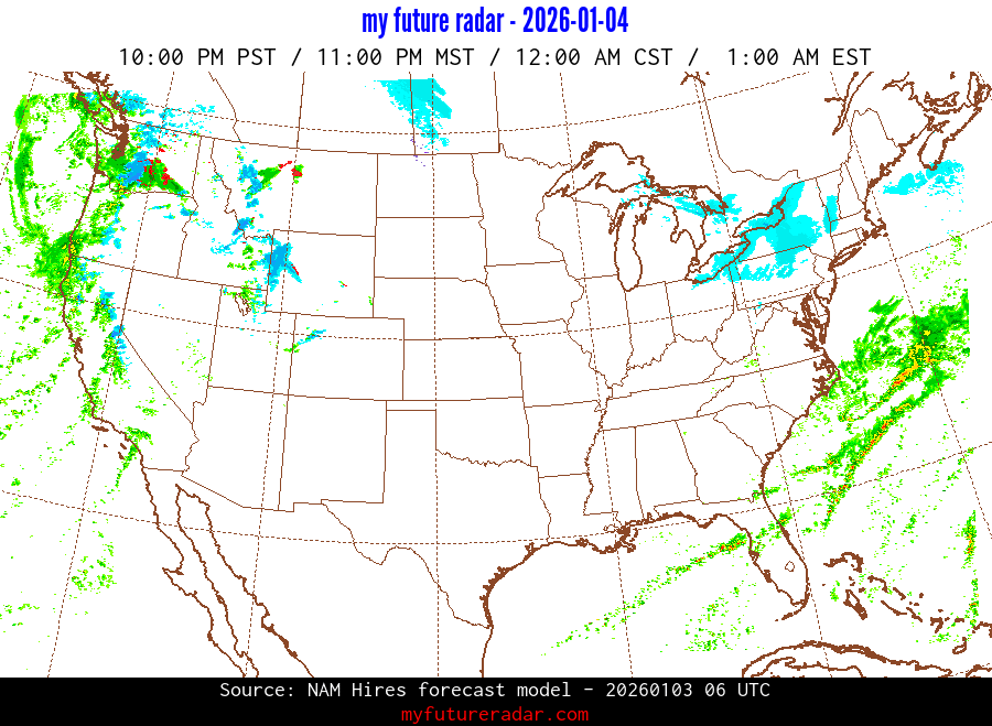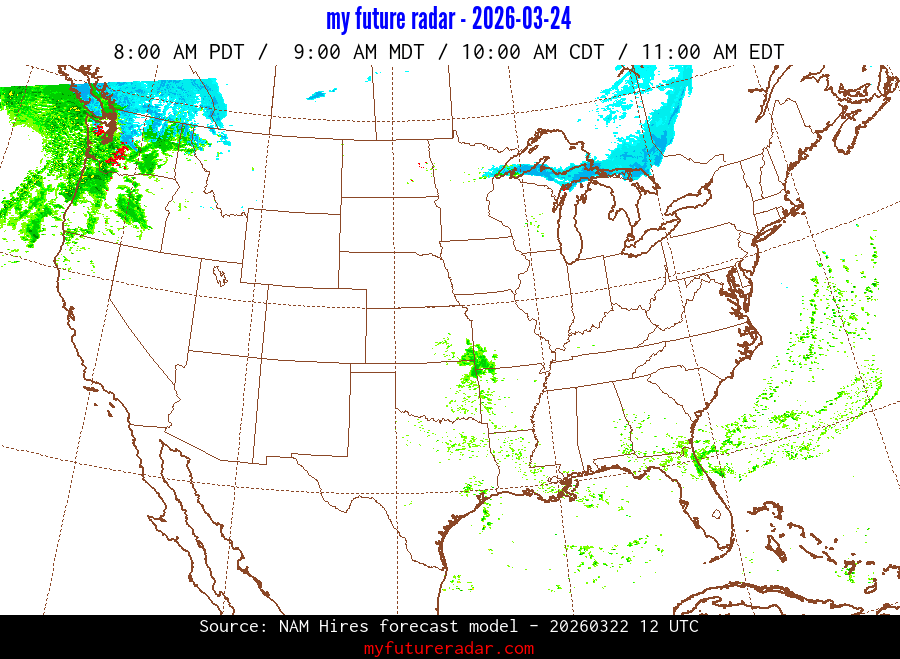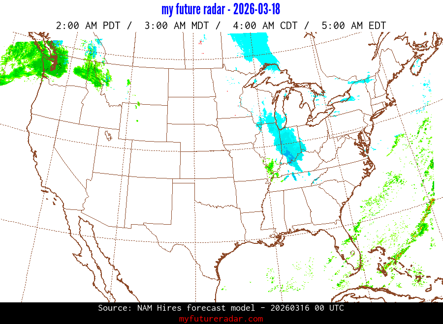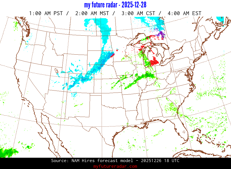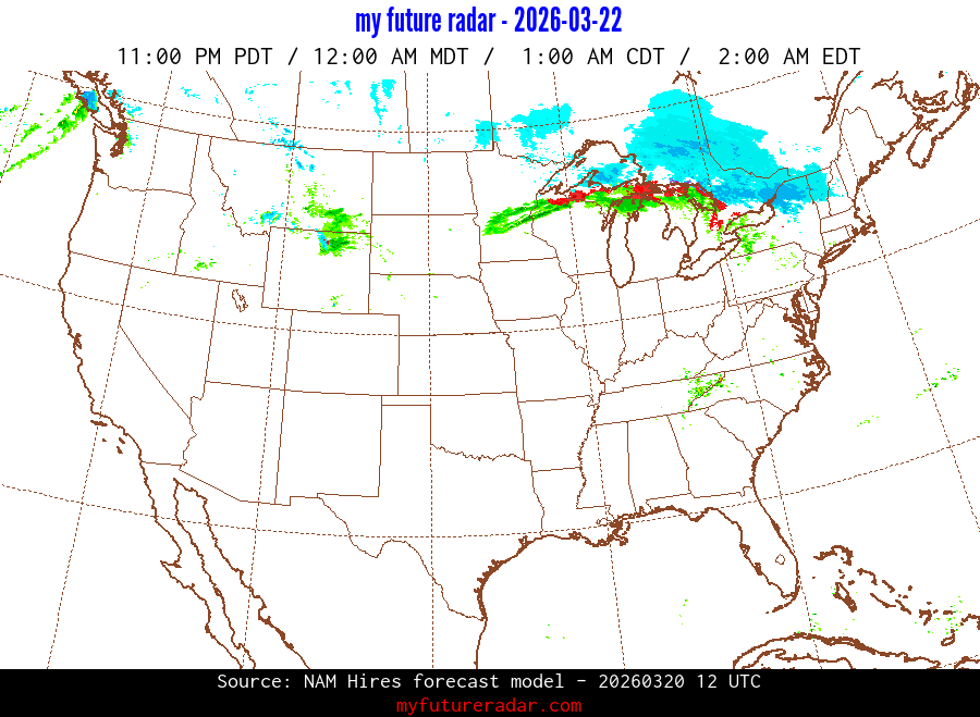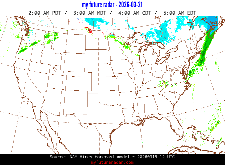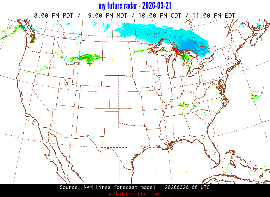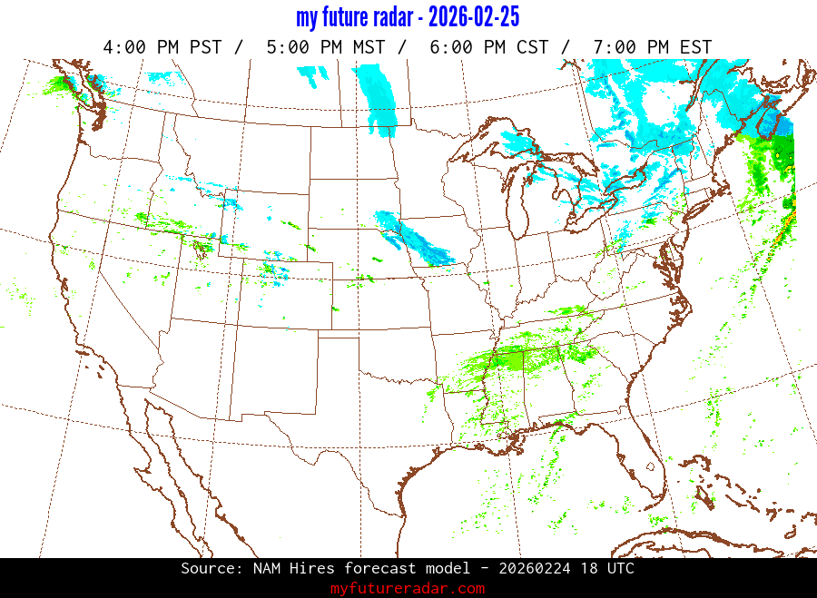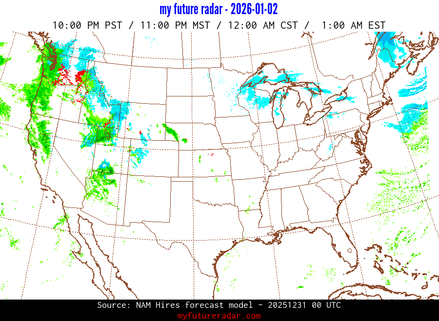 My Future Radar uses data from the Rapid Refresh and the NAM forecast models to provide simulated future radar imagery.