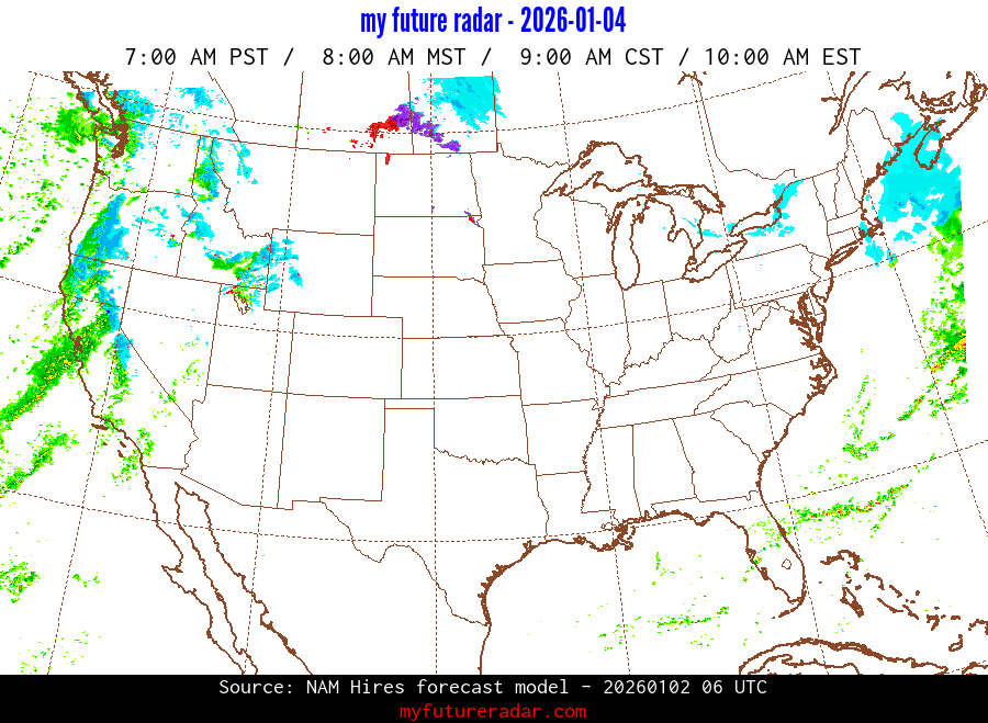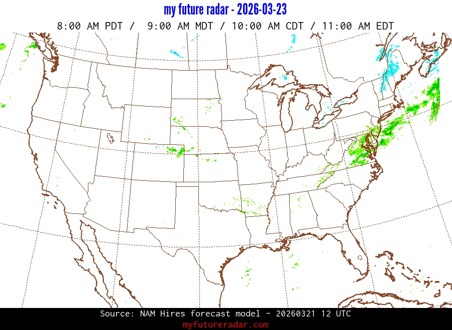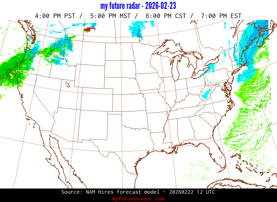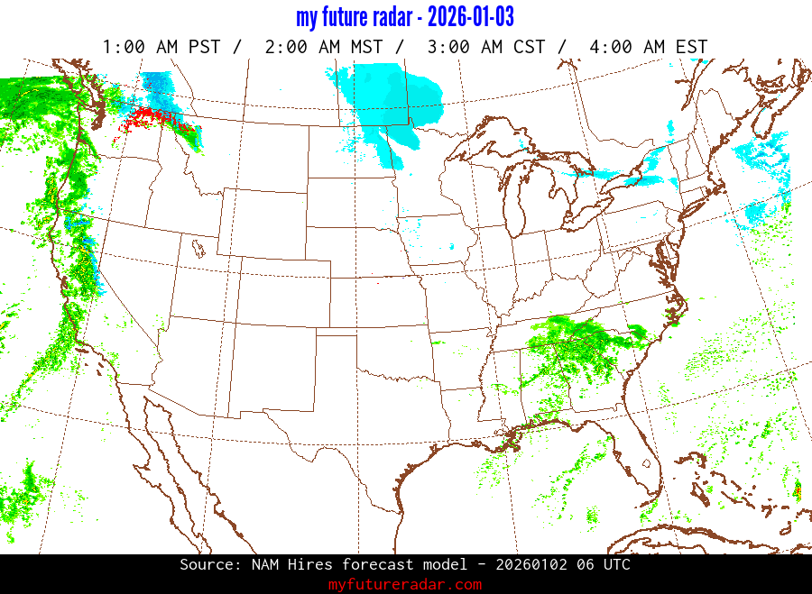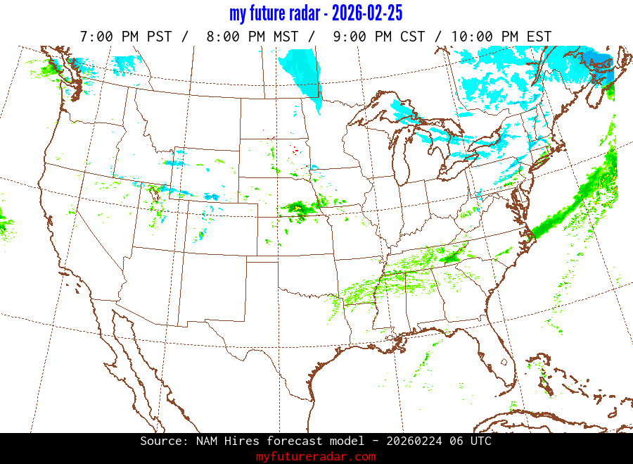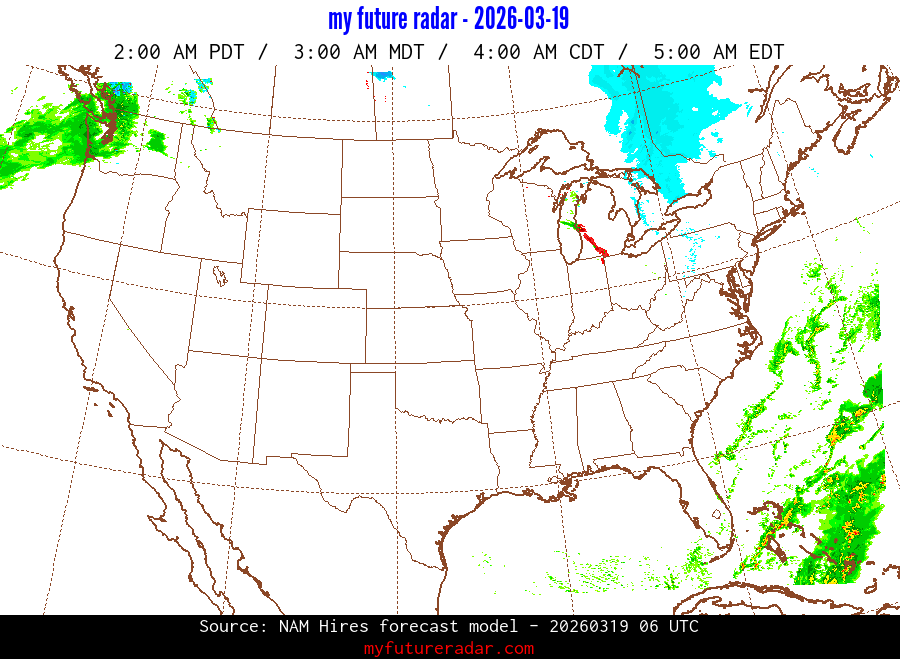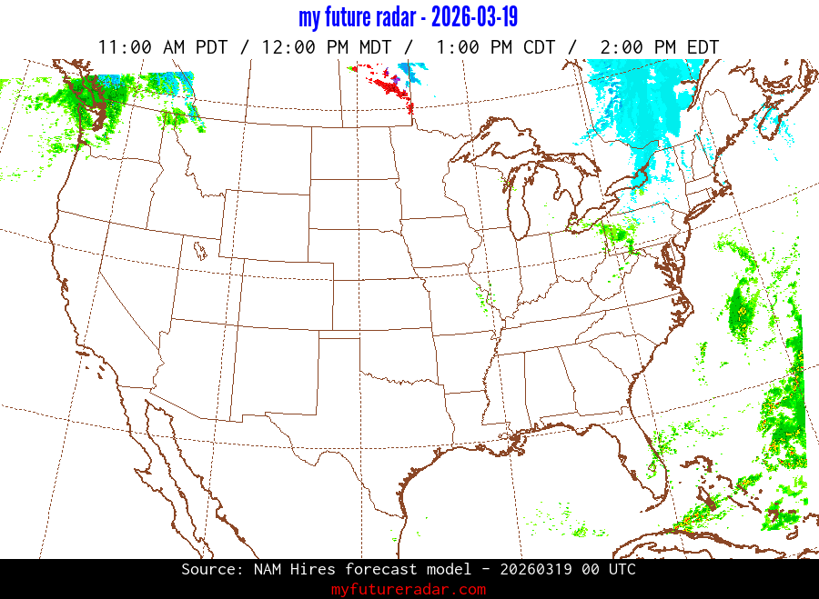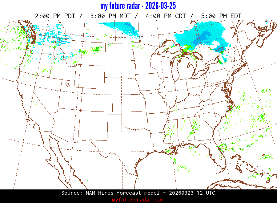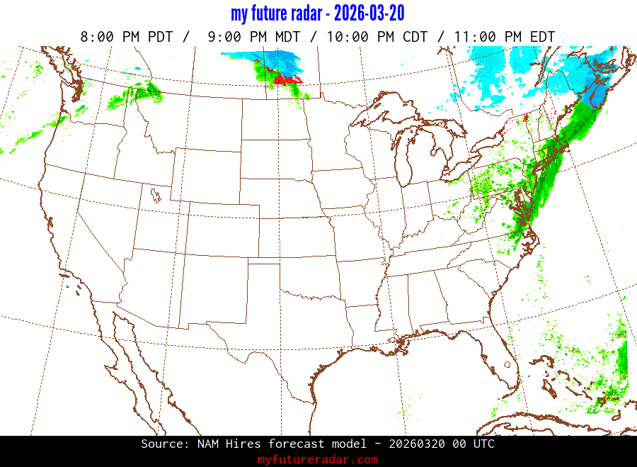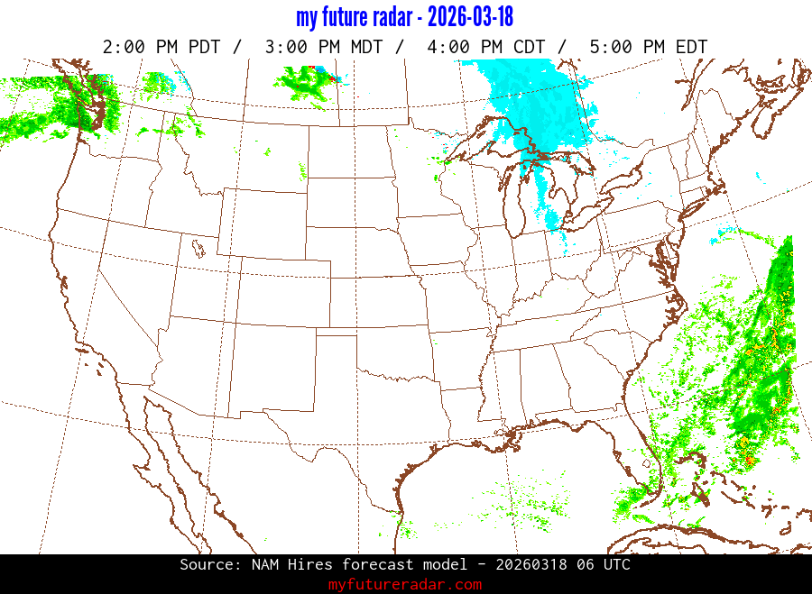 My Future Radar uses data from the Rapid Refresh and the NAM forecast models to provide simulated future radar imagery.