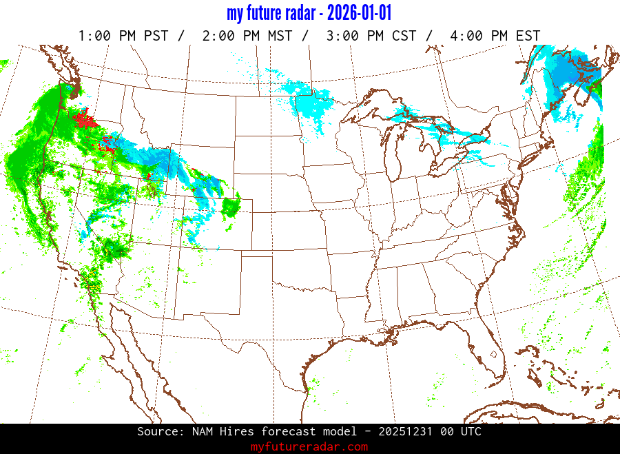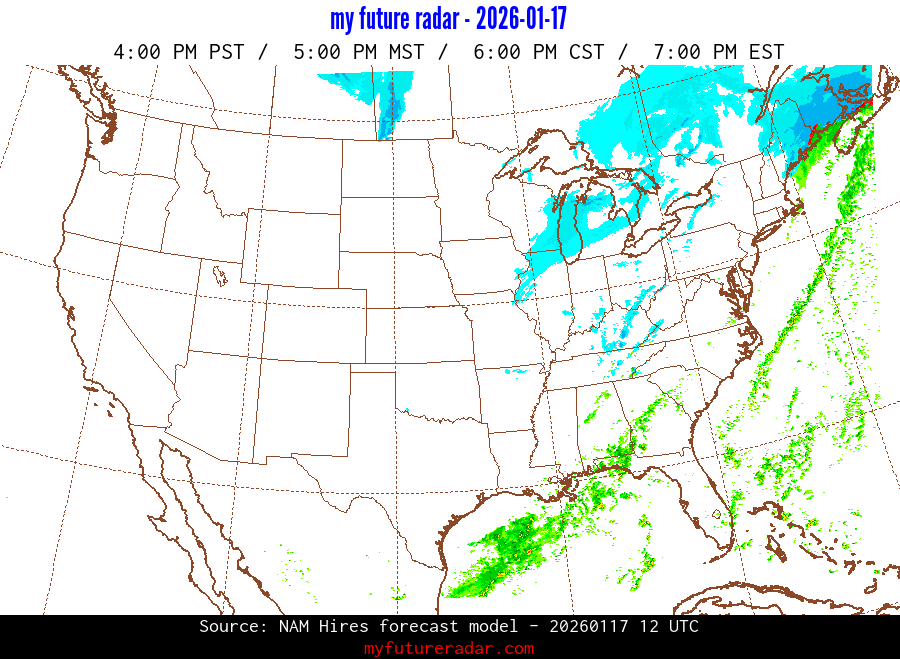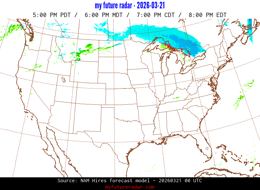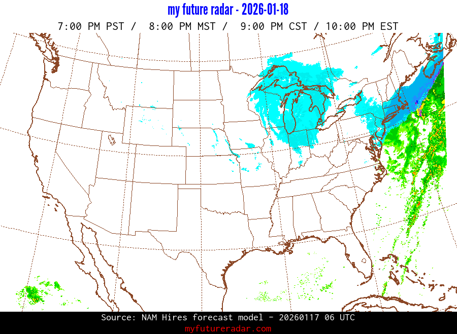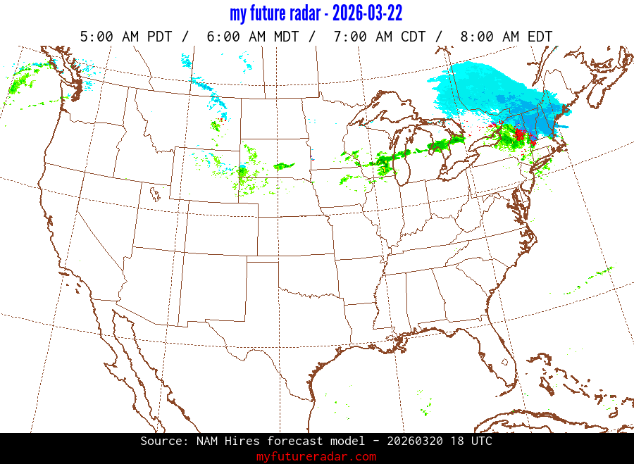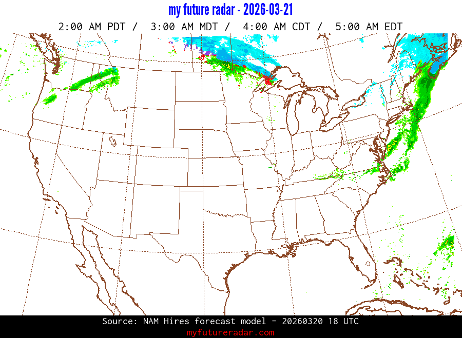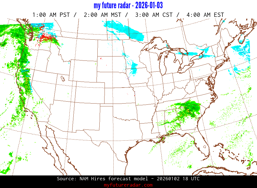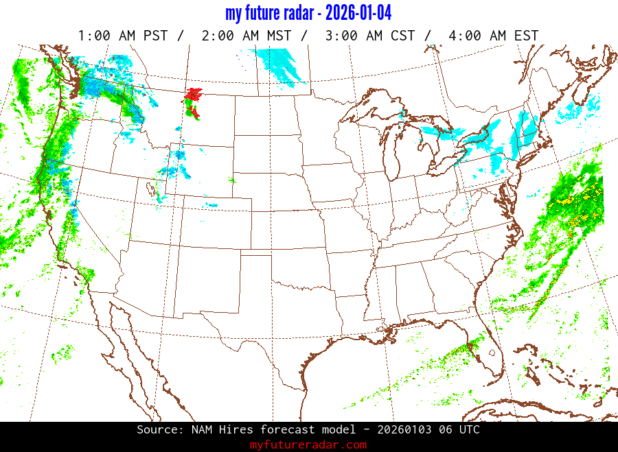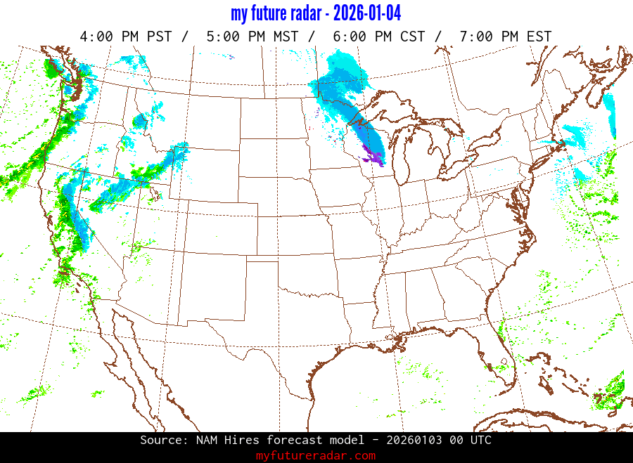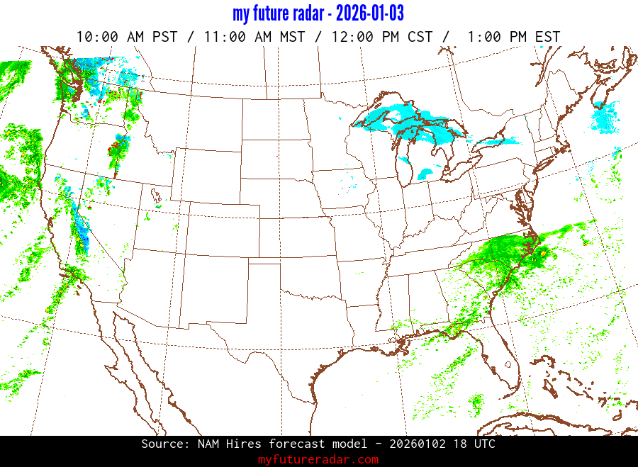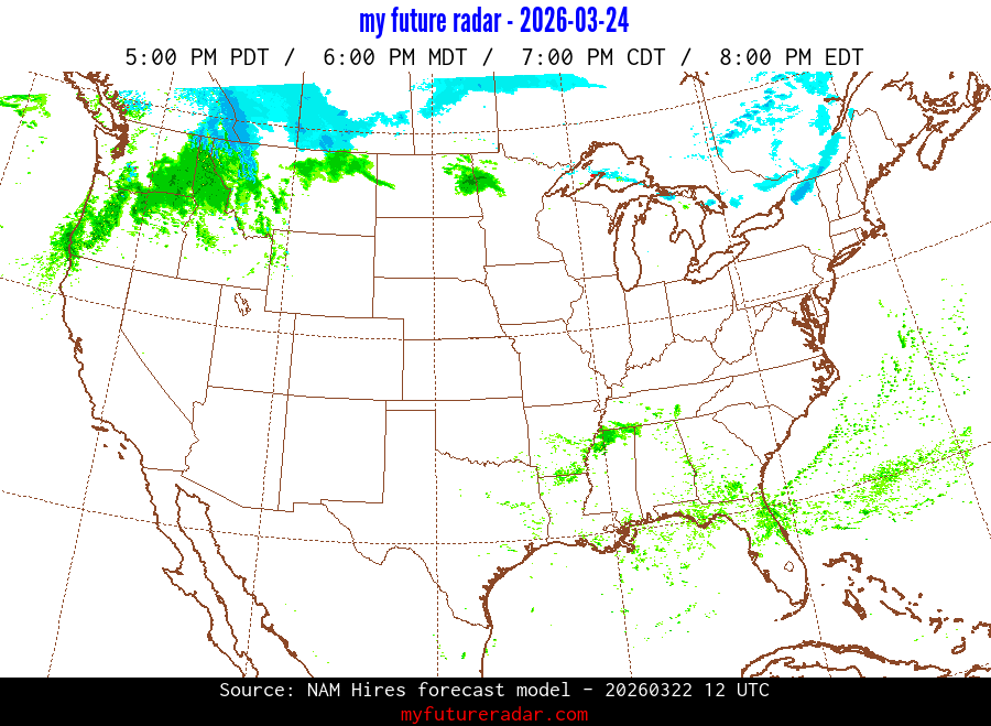 My Future Radar uses data from the Rapid Refresh and the NAM forecast models to provide simulated future radar imagery.