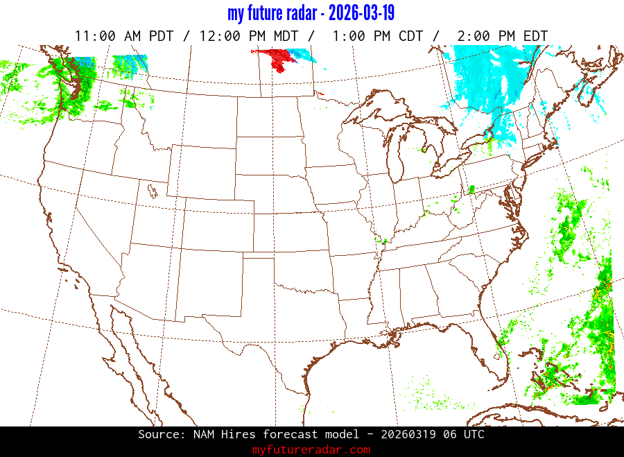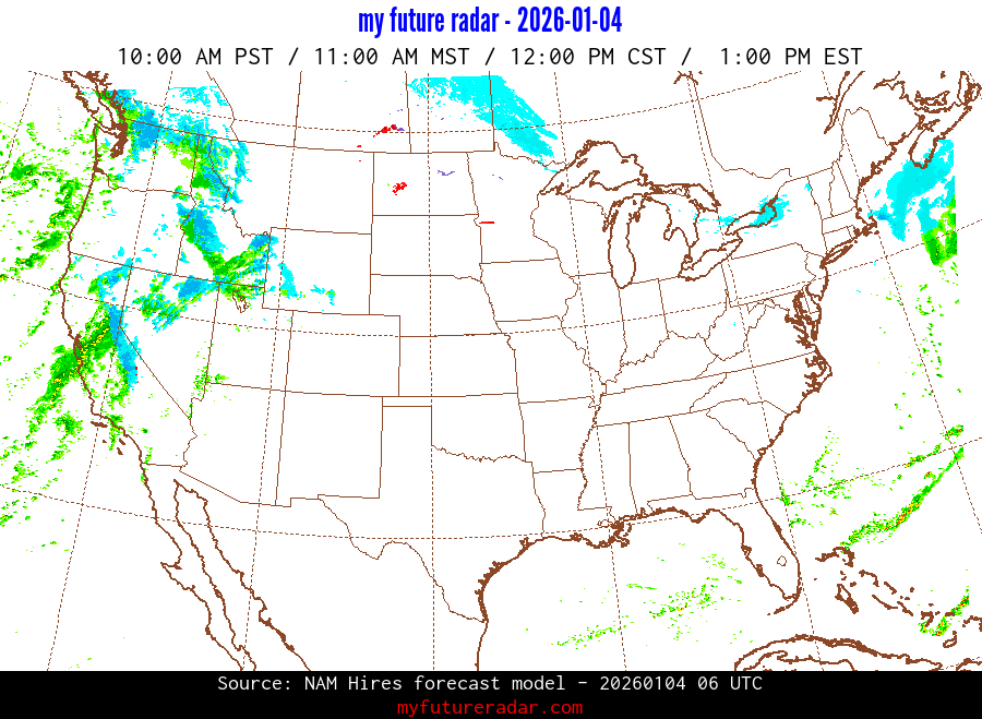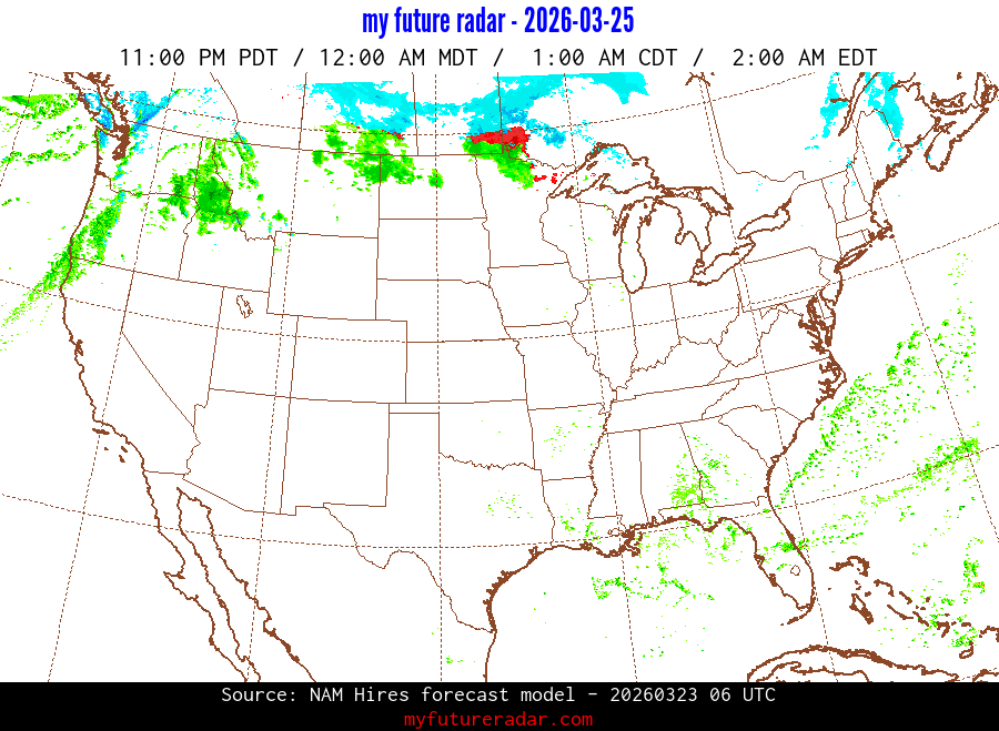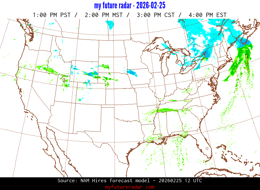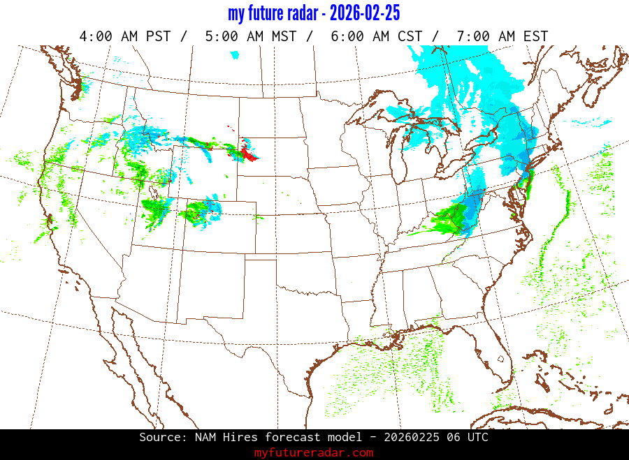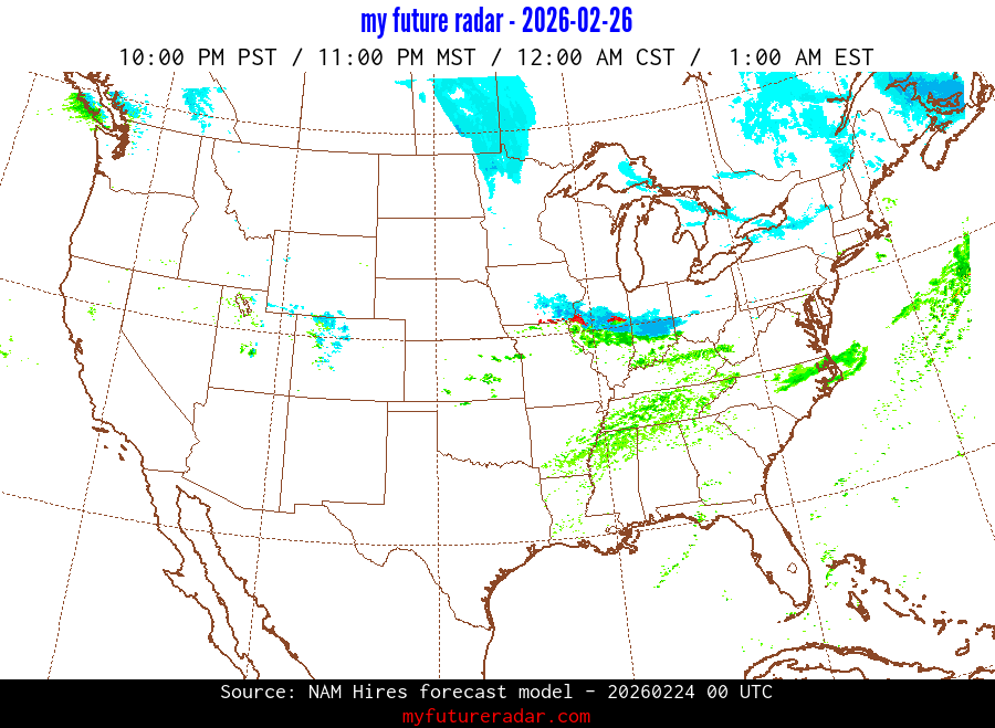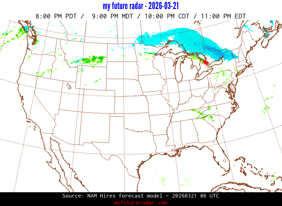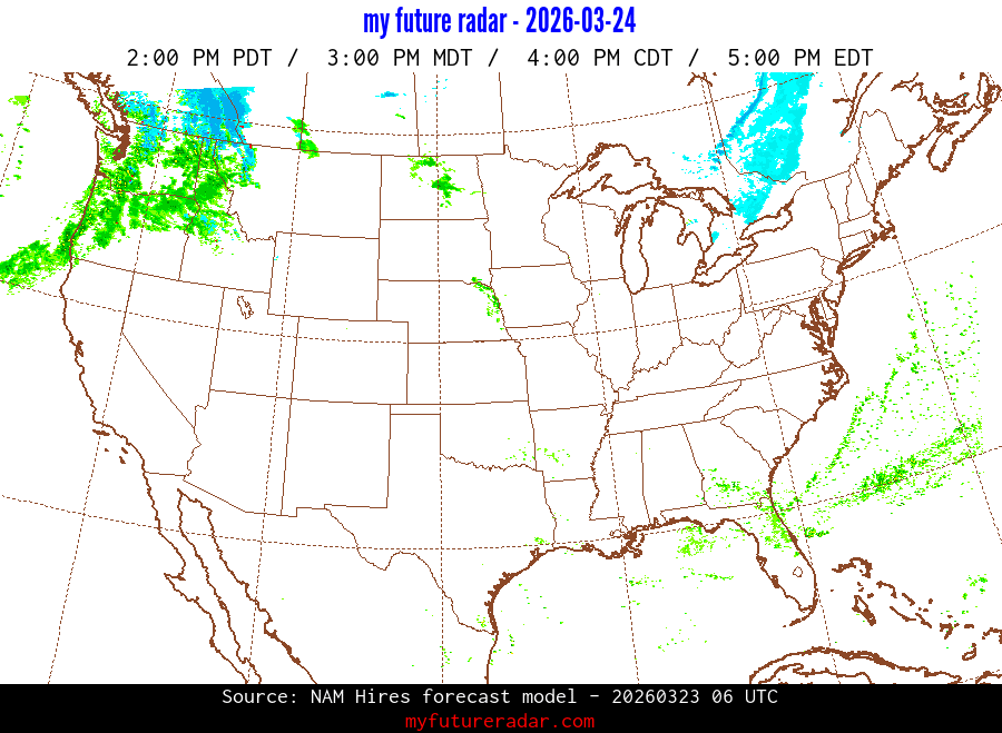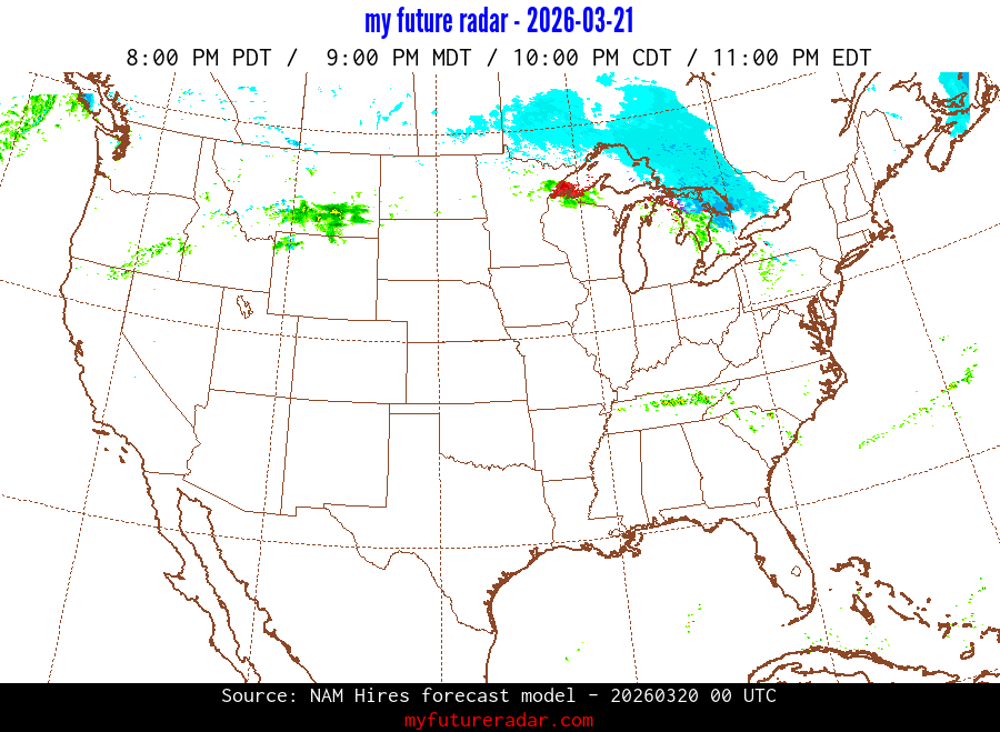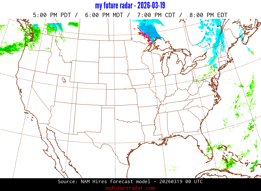 My Future Radar uses data from the Rapid Refresh and the NAM forecast models to provide simulated future radar imagery.