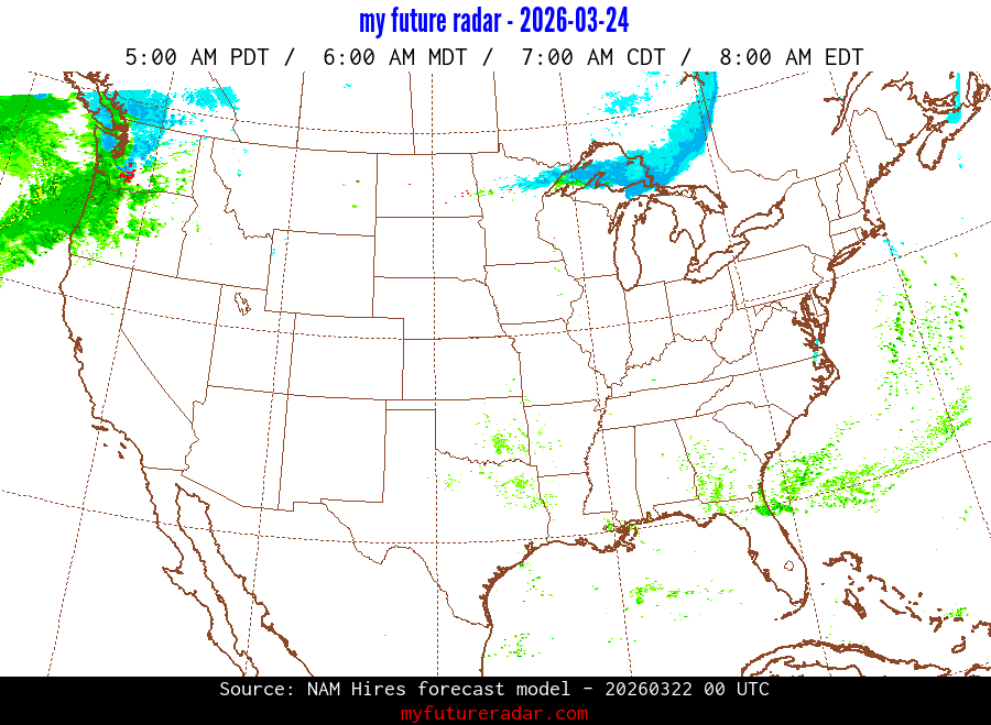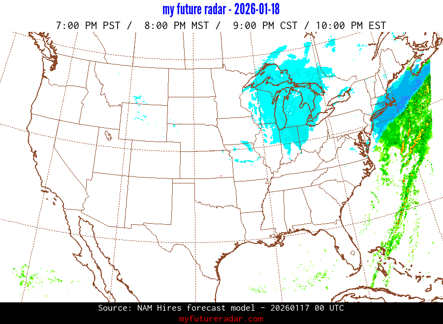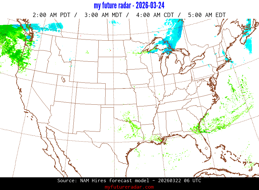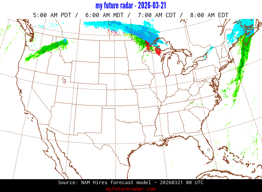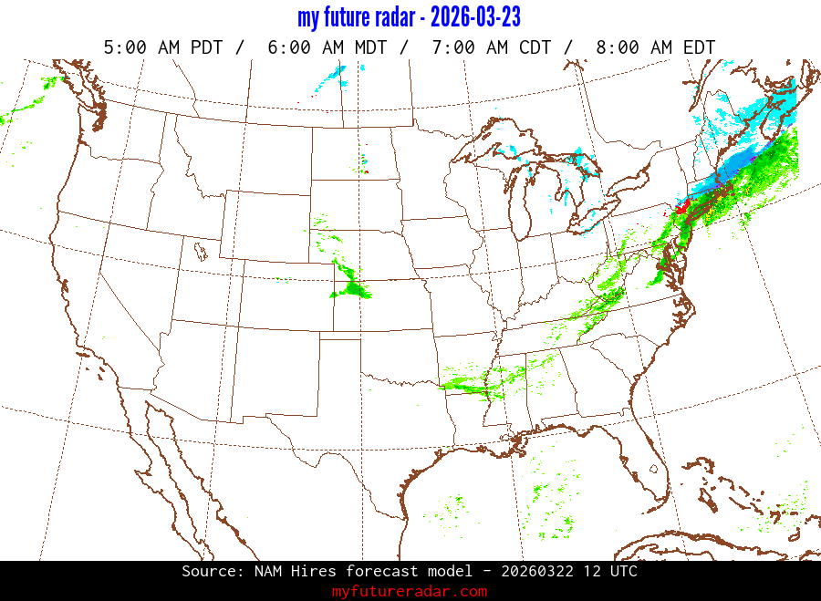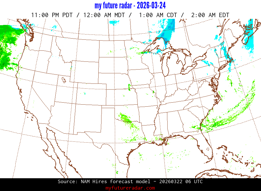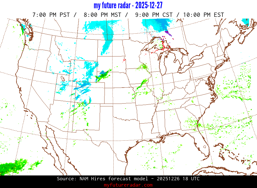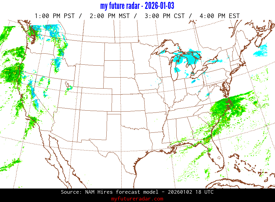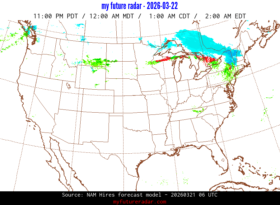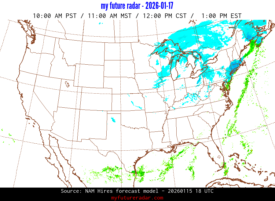 My Future Radar uses data from the Rapid Refresh and the NAM forecast models to provide simulated future radar imagery.