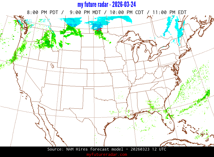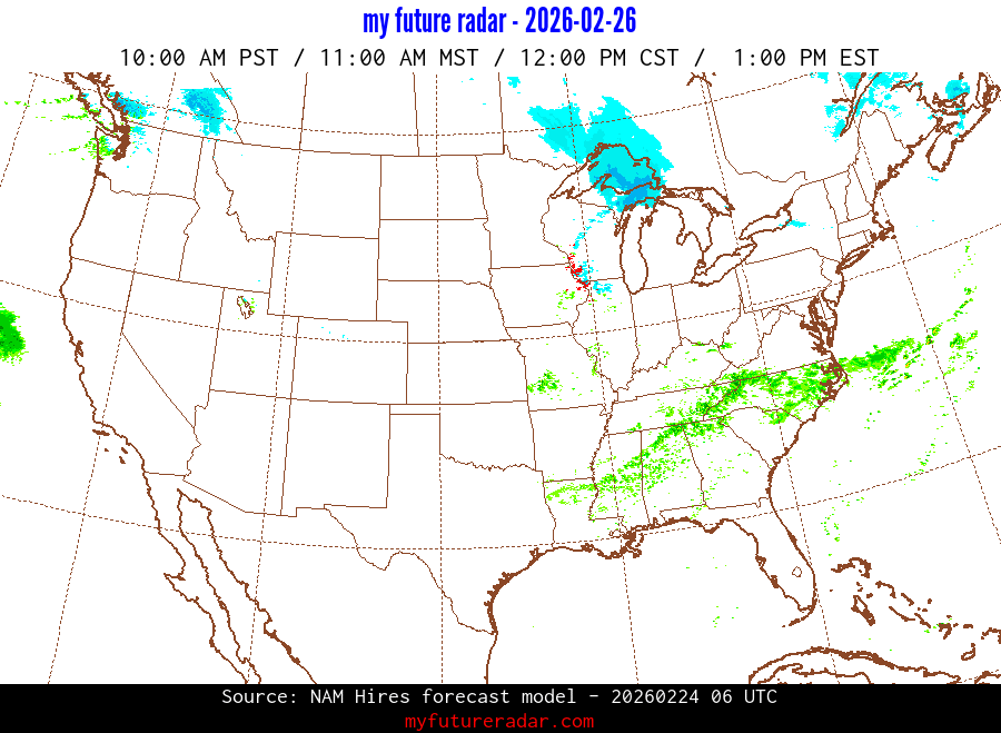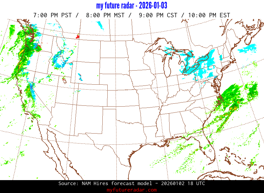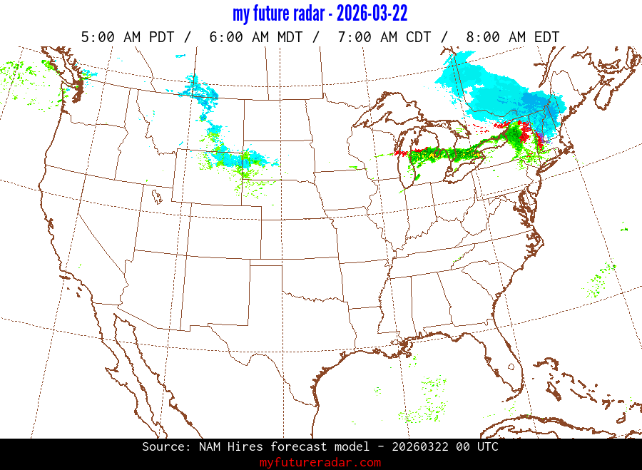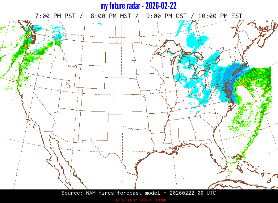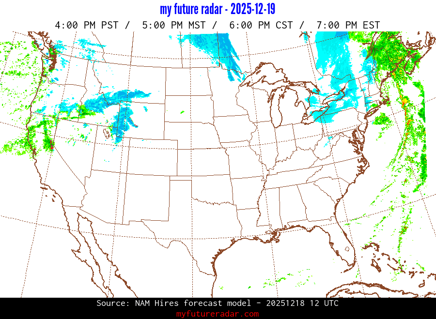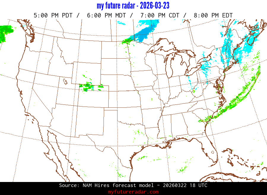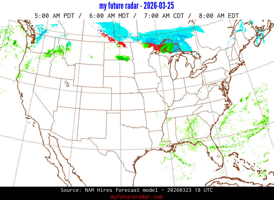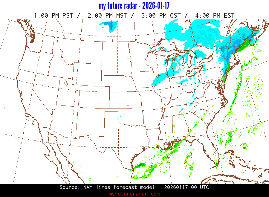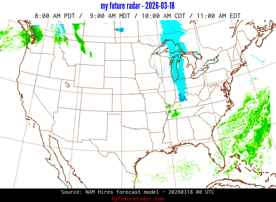 My Future Radar uses data from the Rapid Refresh and the NAM forecast models to provide simulated future radar imagery.