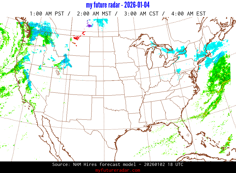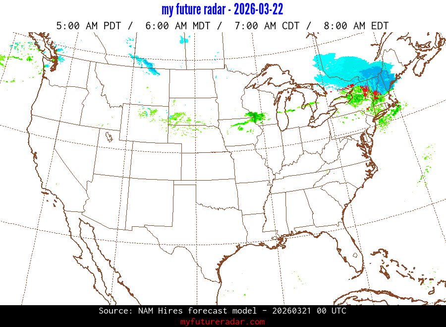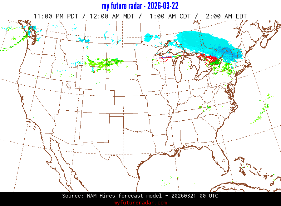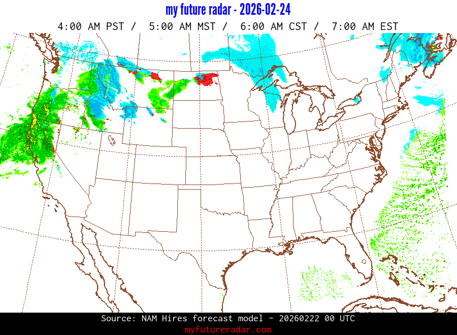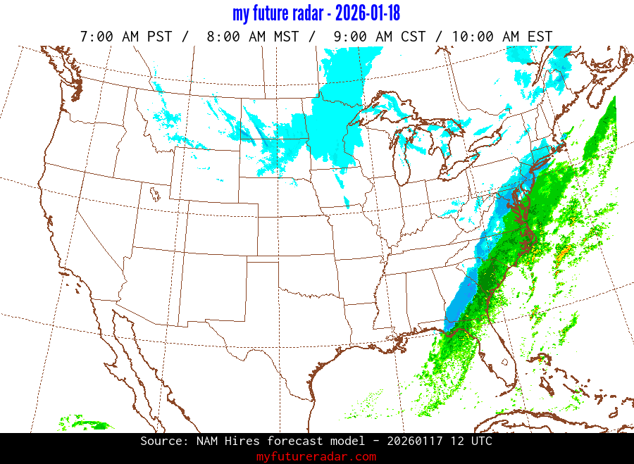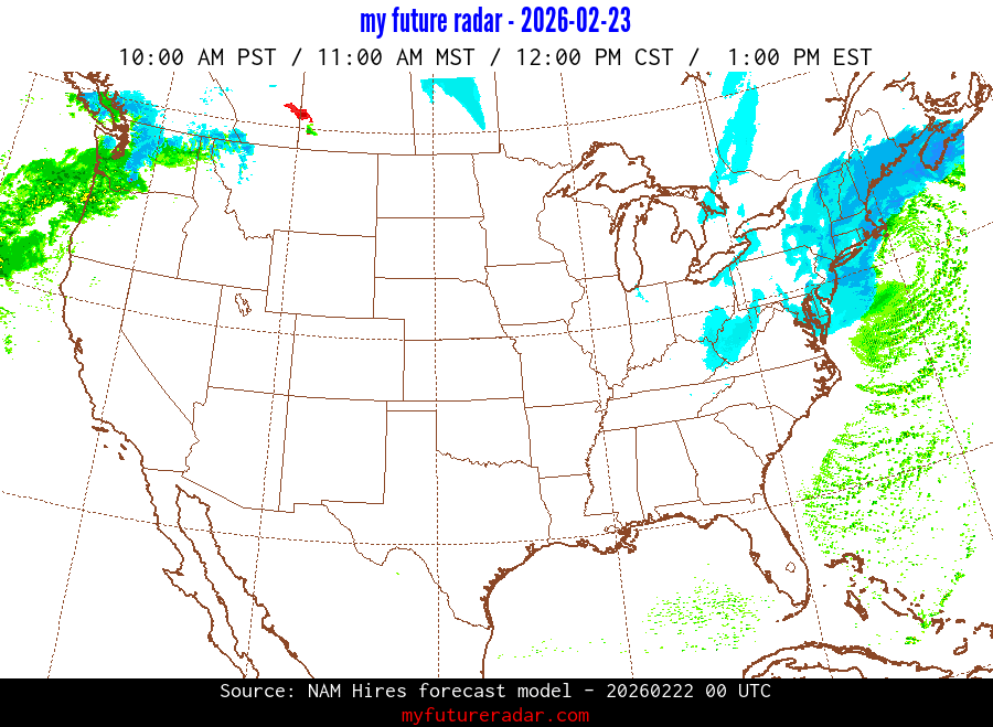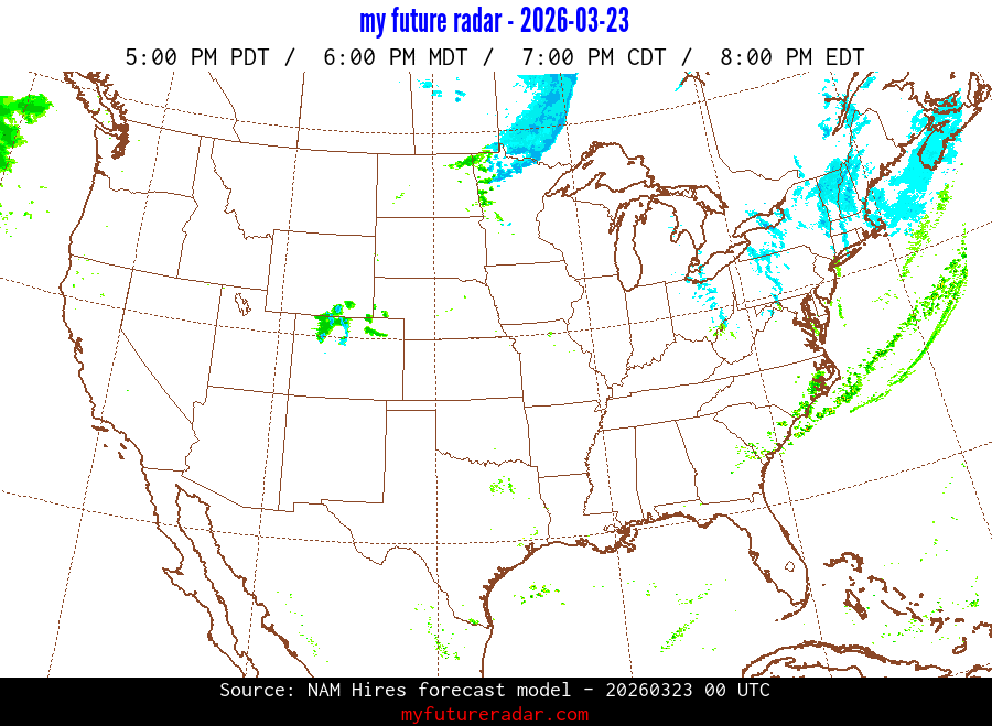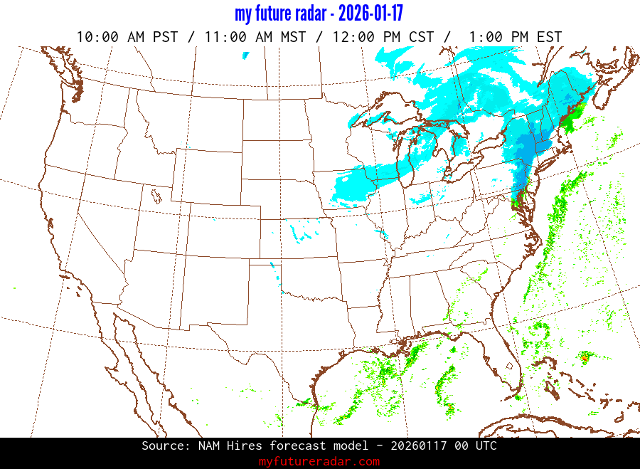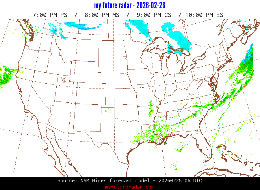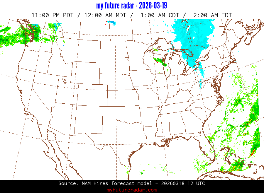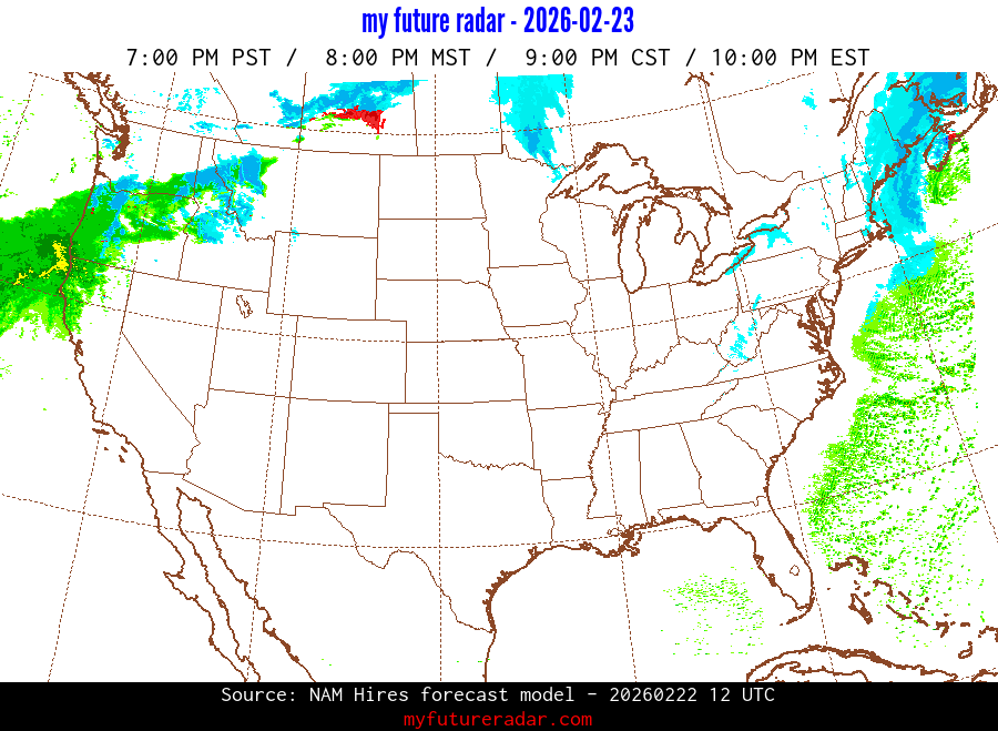 My Future Radar uses data from the Rapid Refresh and the NAM forecast models to provide simulated future radar imagery.