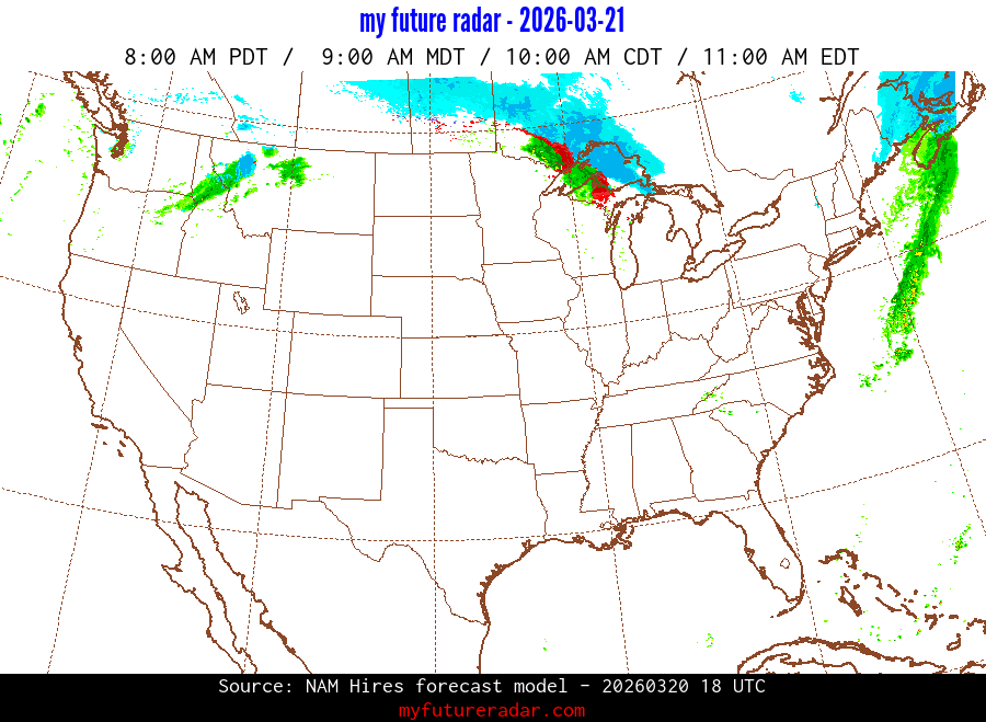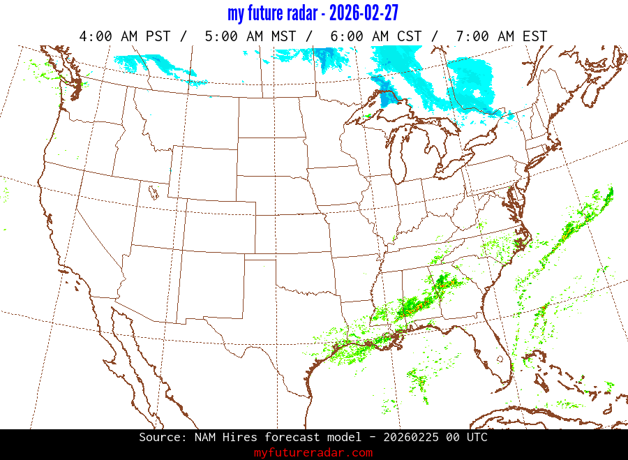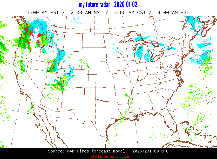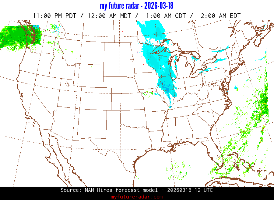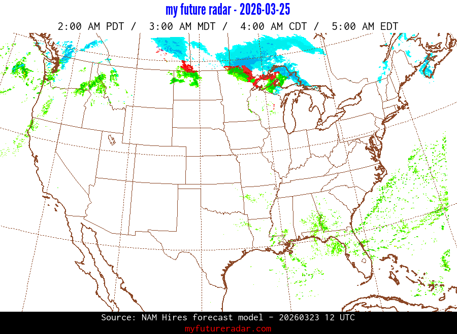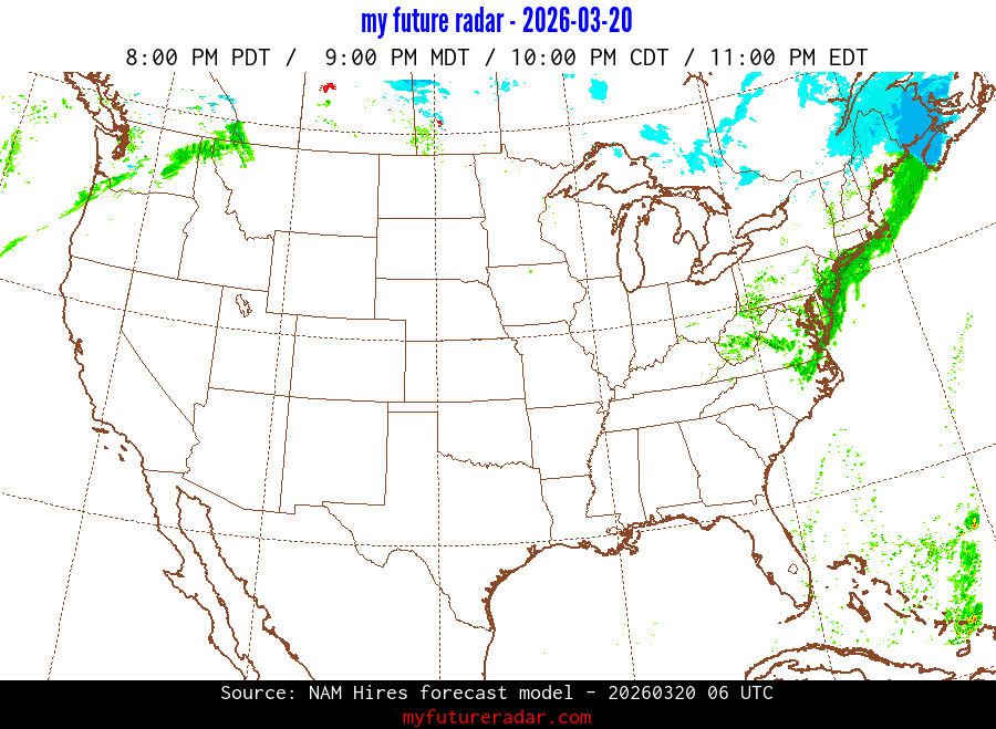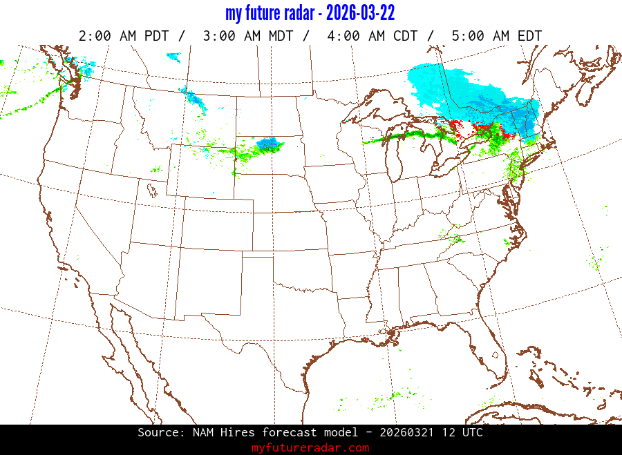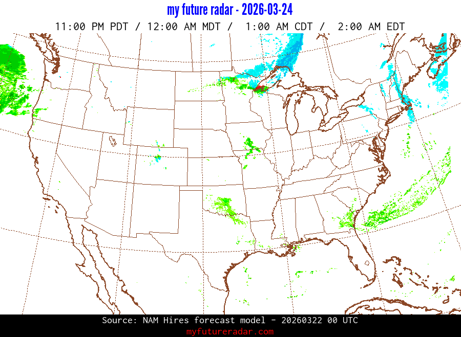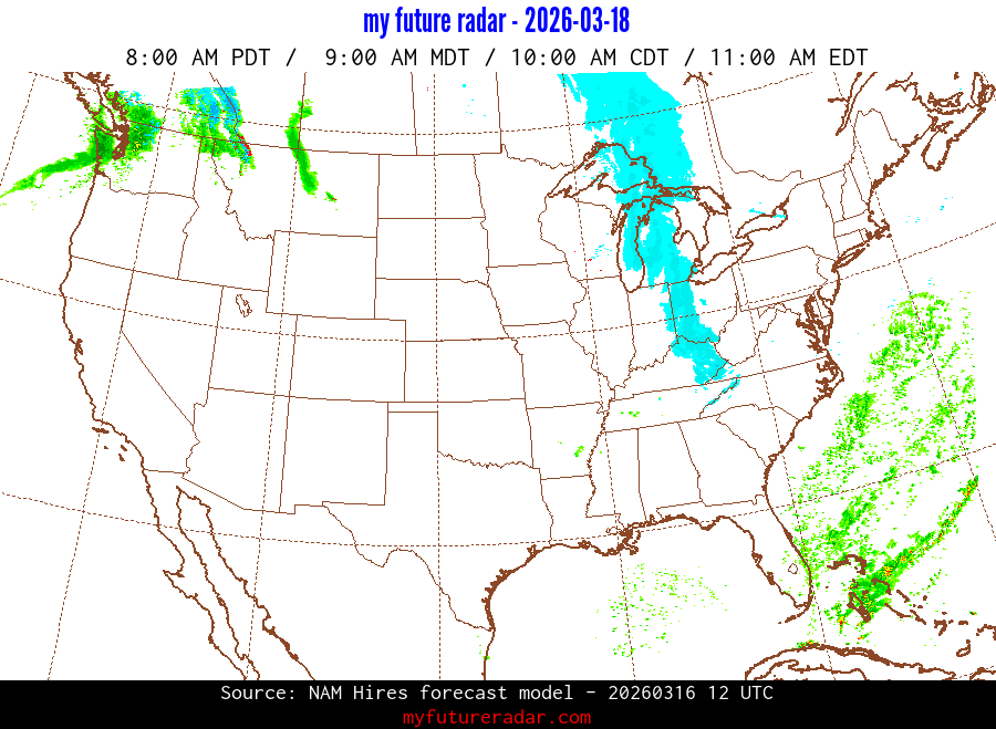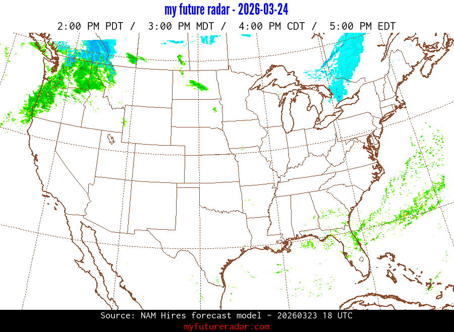 My Future Radar uses data from the Rapid Refresh and the NAM forecast models to provide simulated future radar imagery.
