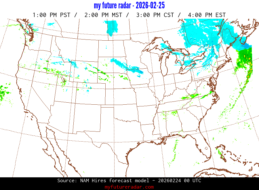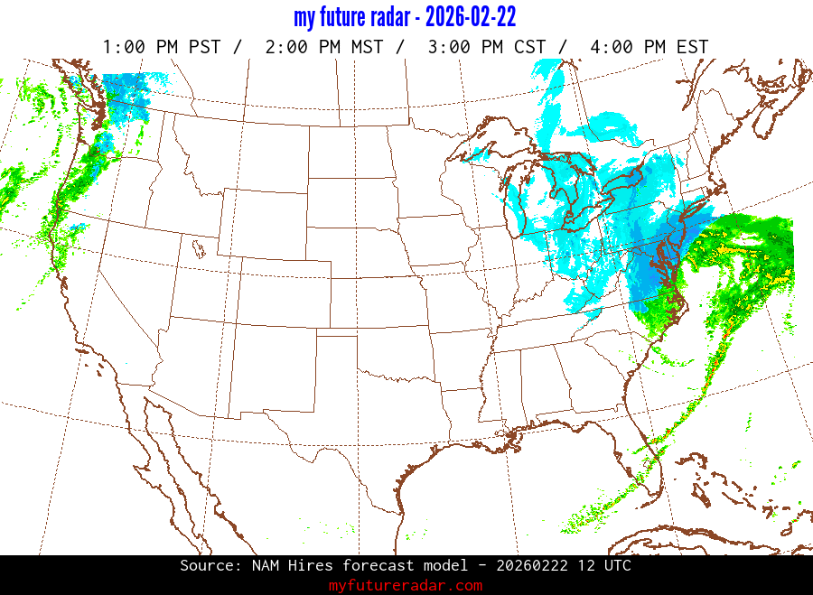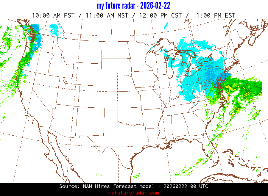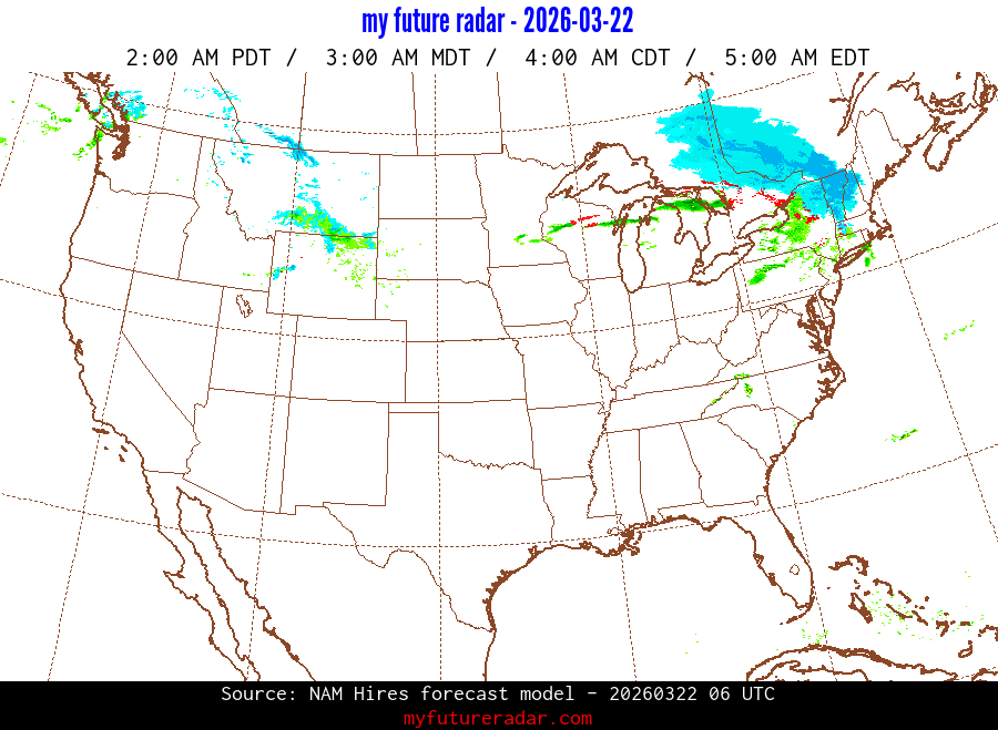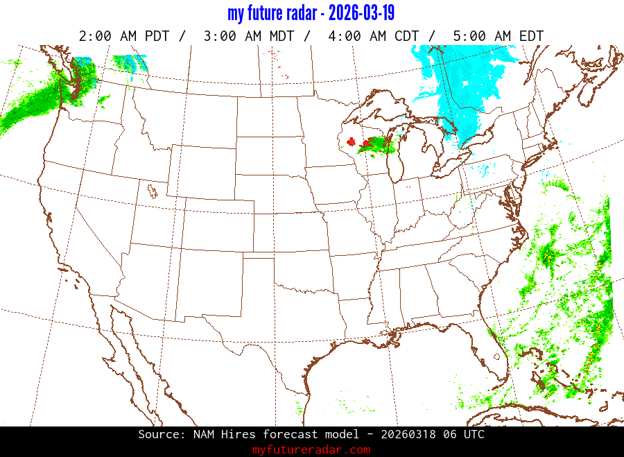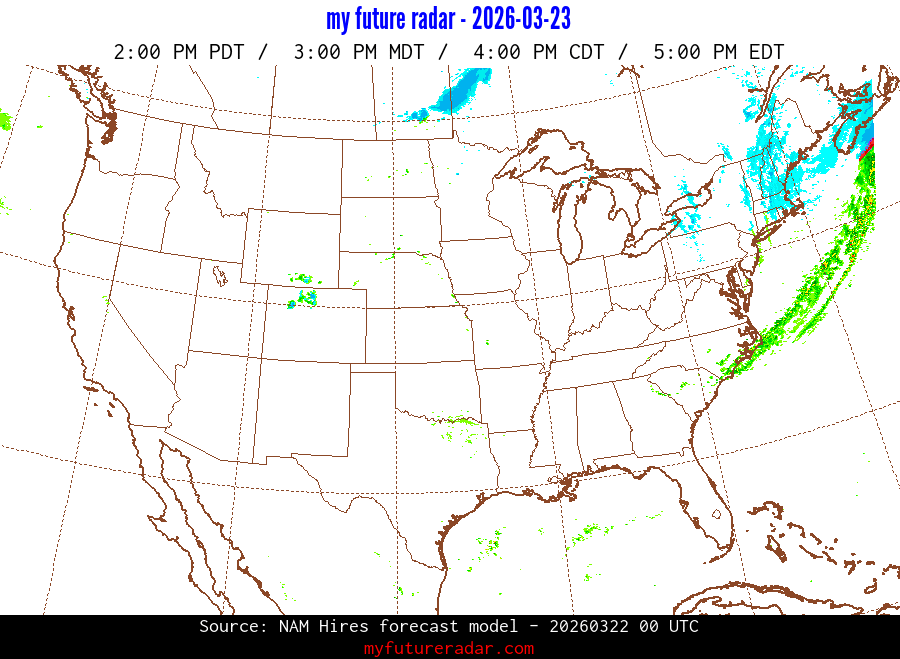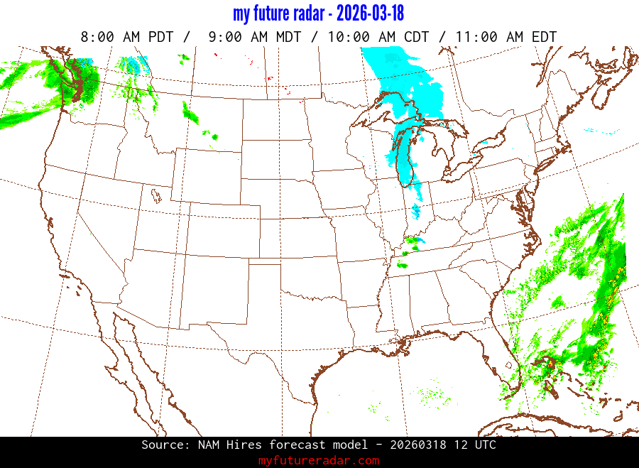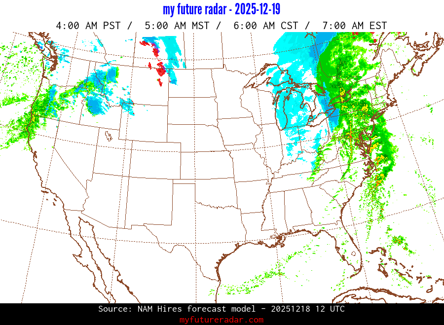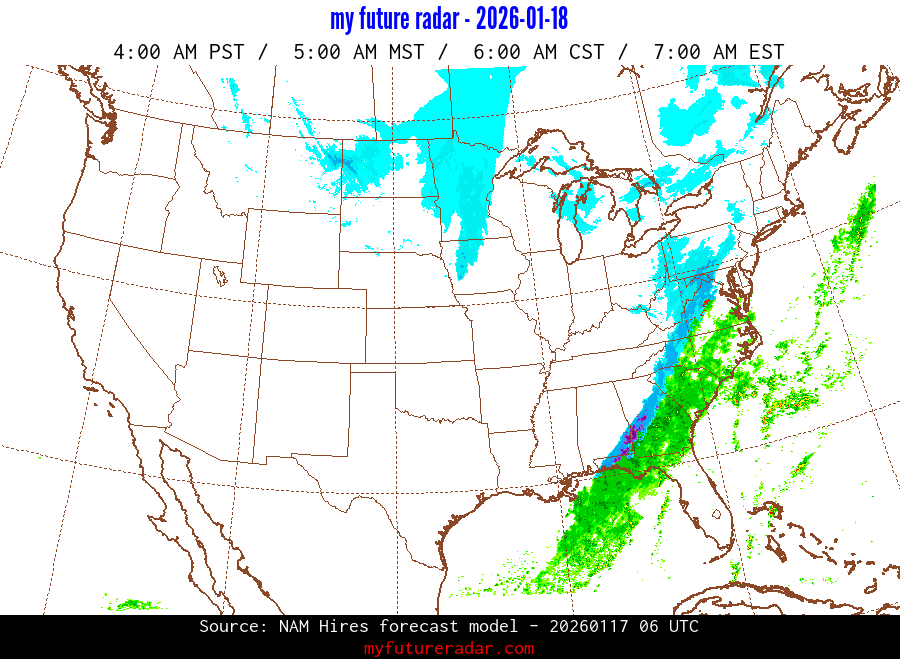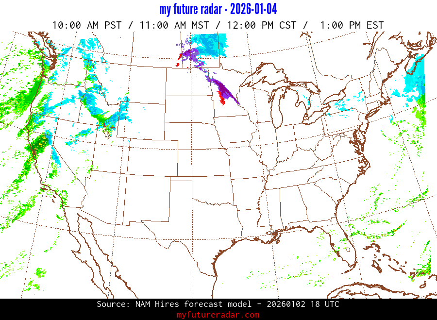 My Future Radar uses data from the Rapid Refresh and the NAM forecast models to provide simulated future radar imagery.