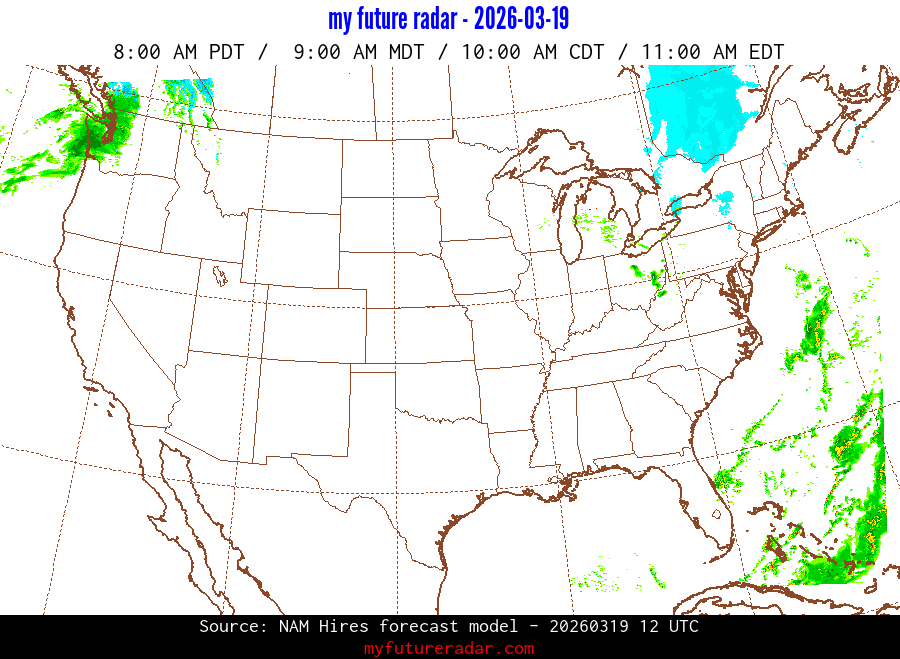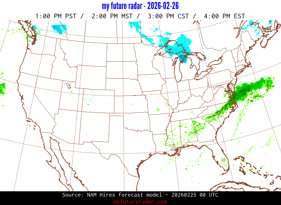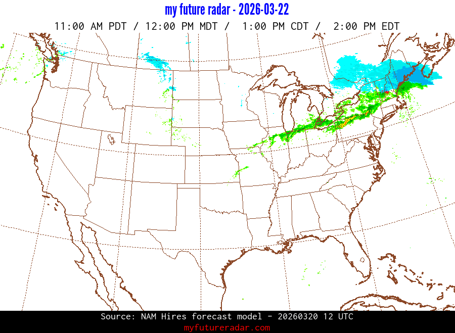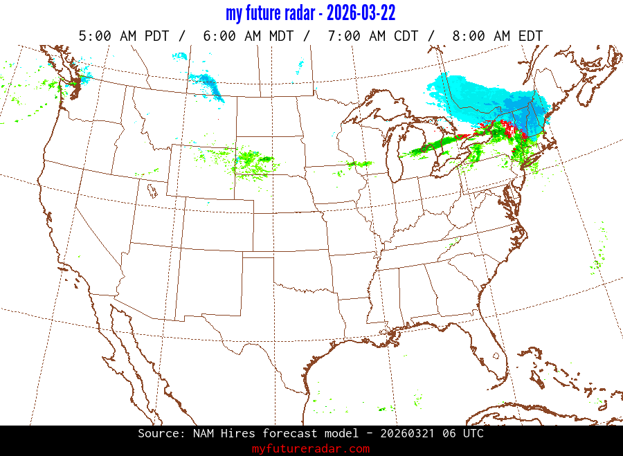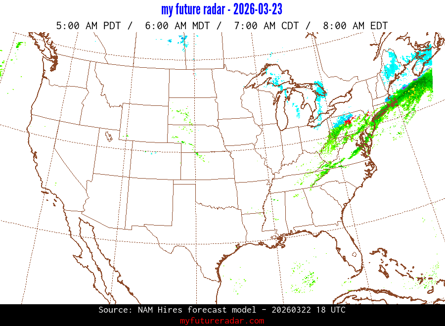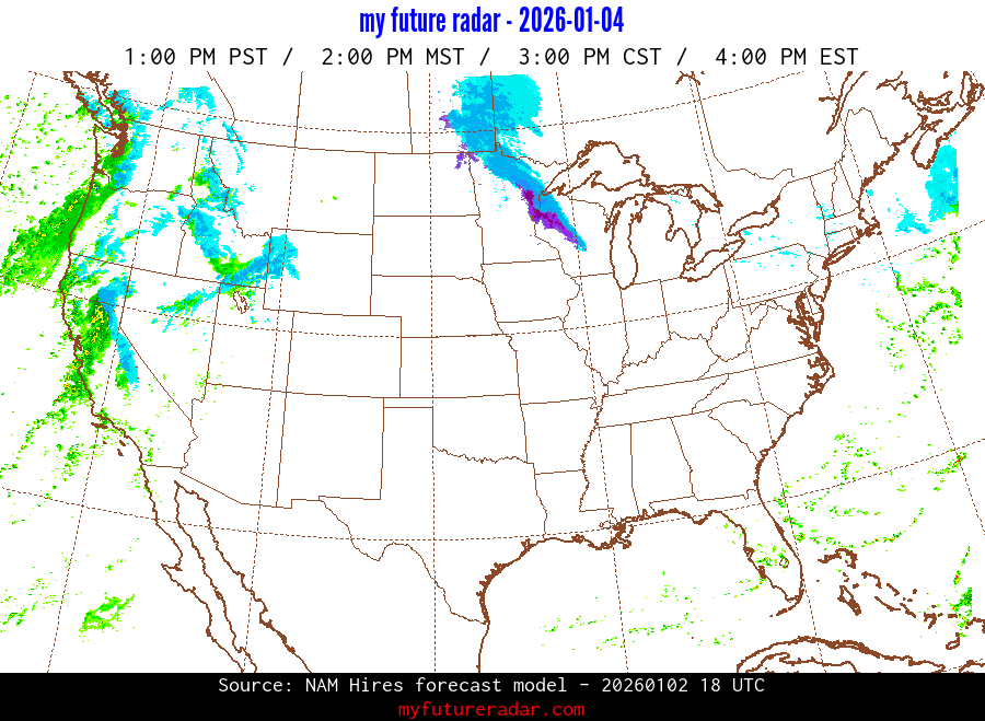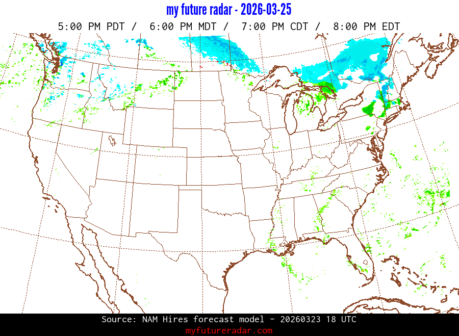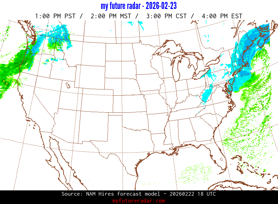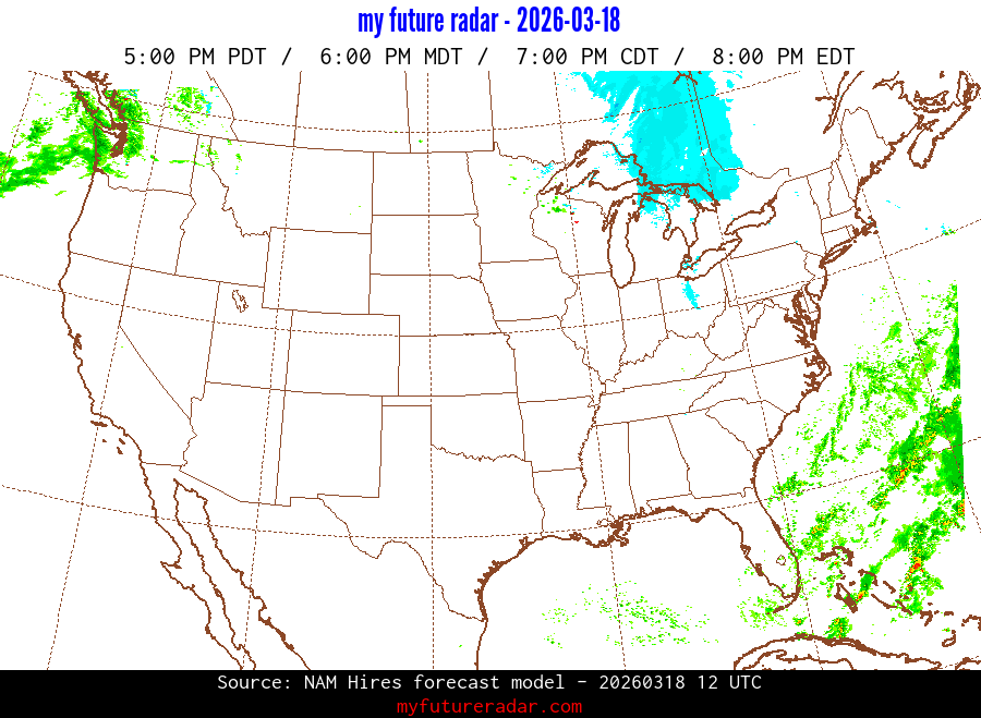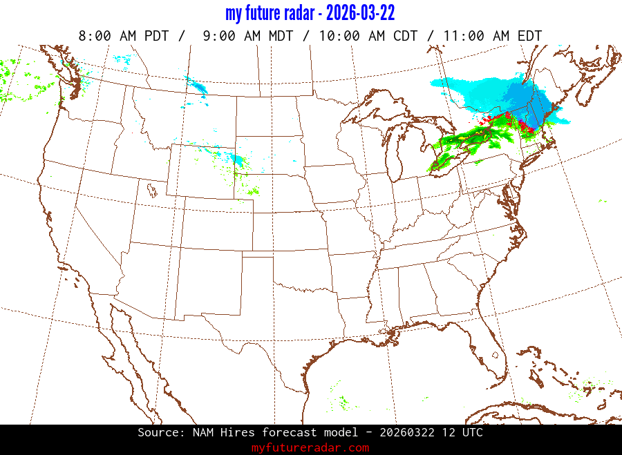 My Future Radar uses data from the Rapid Refresh and the NAM forecast models to provide simulated future radar imagery.