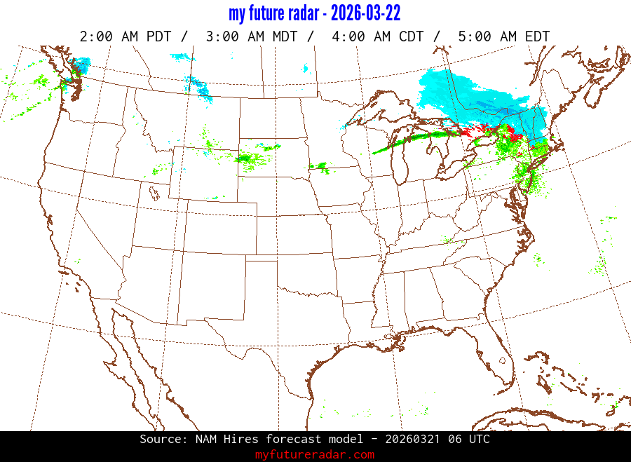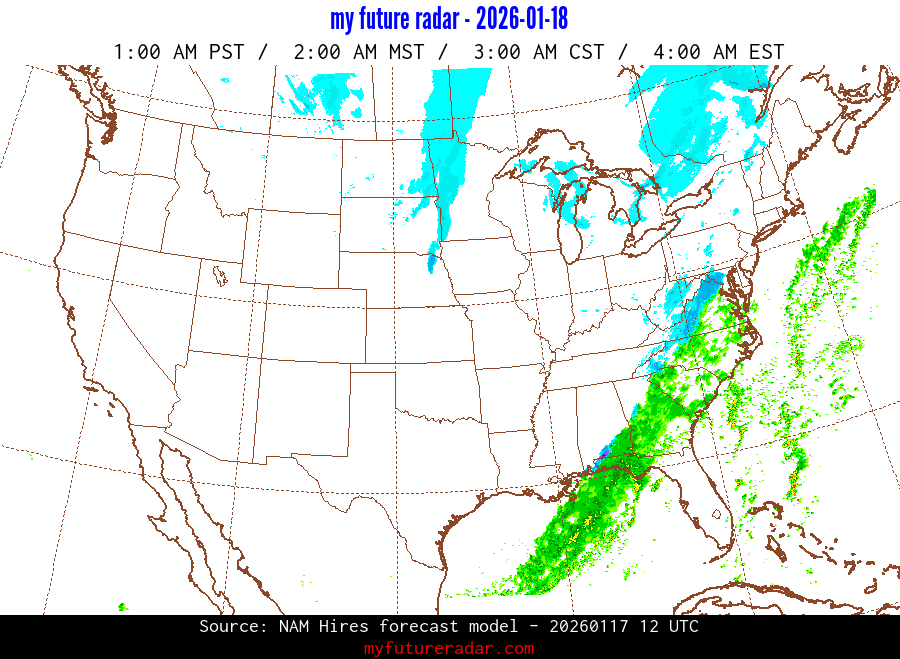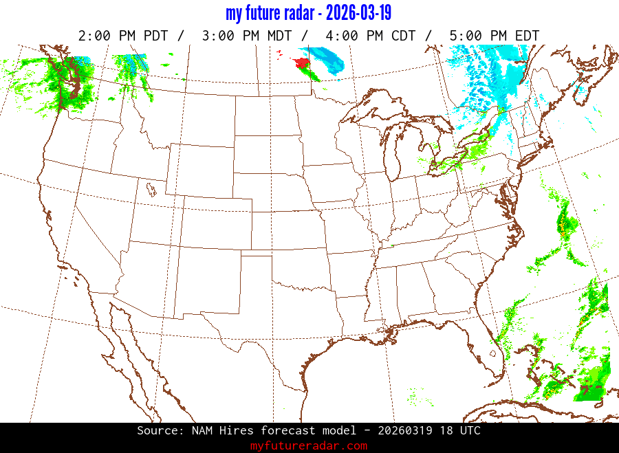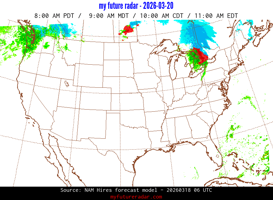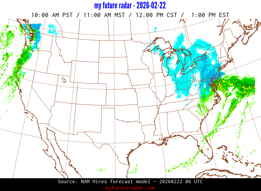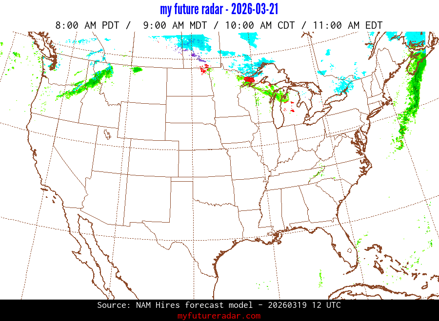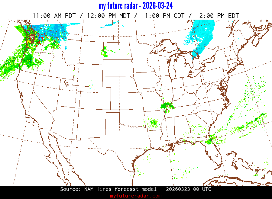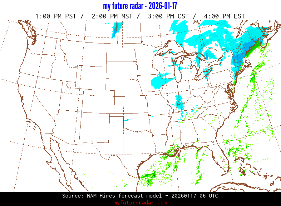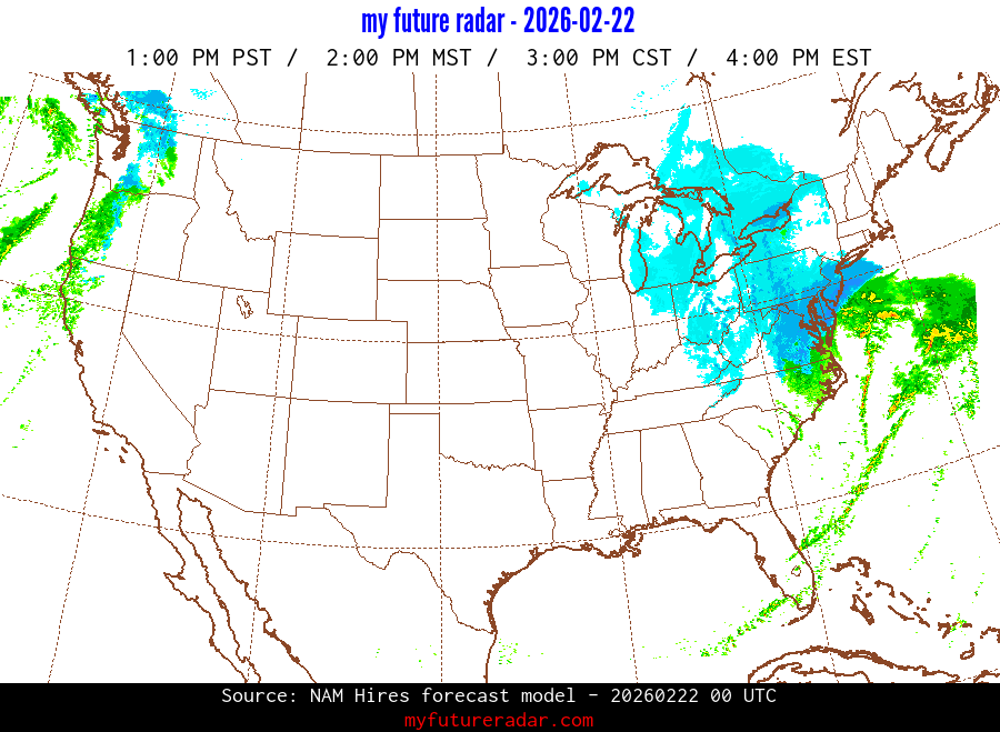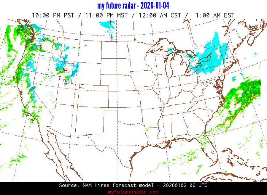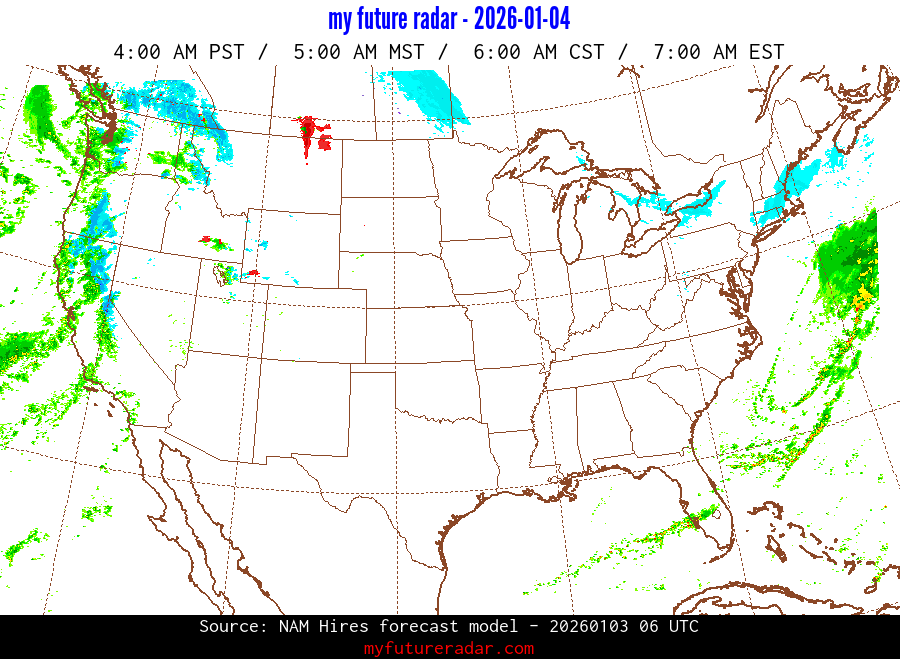 My Future Radar uses data from the Rapid Refresh and the NAM forecast models to provide simulated future radar imagery.
