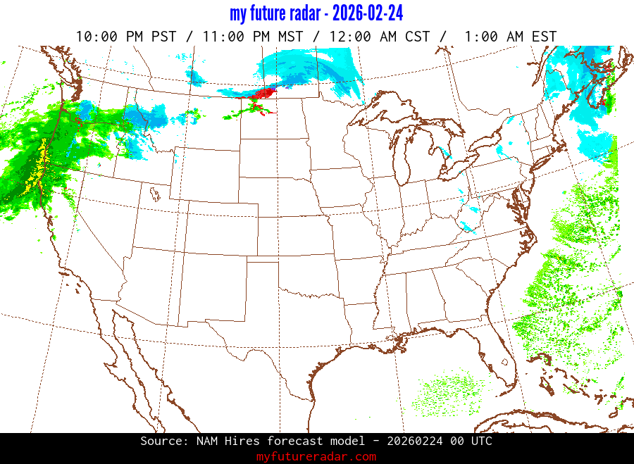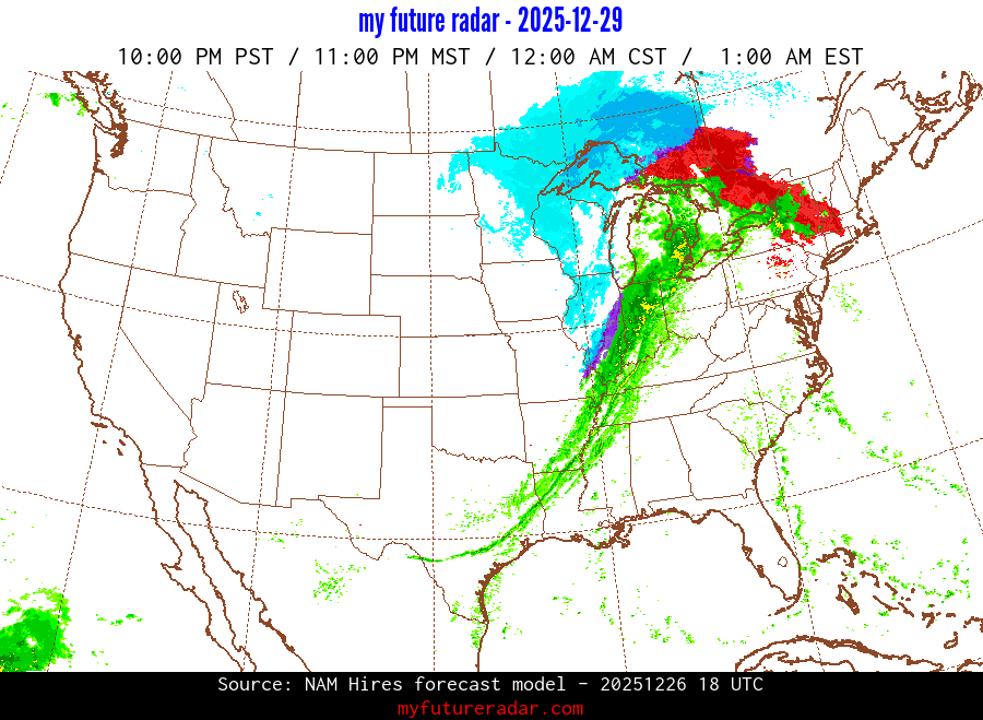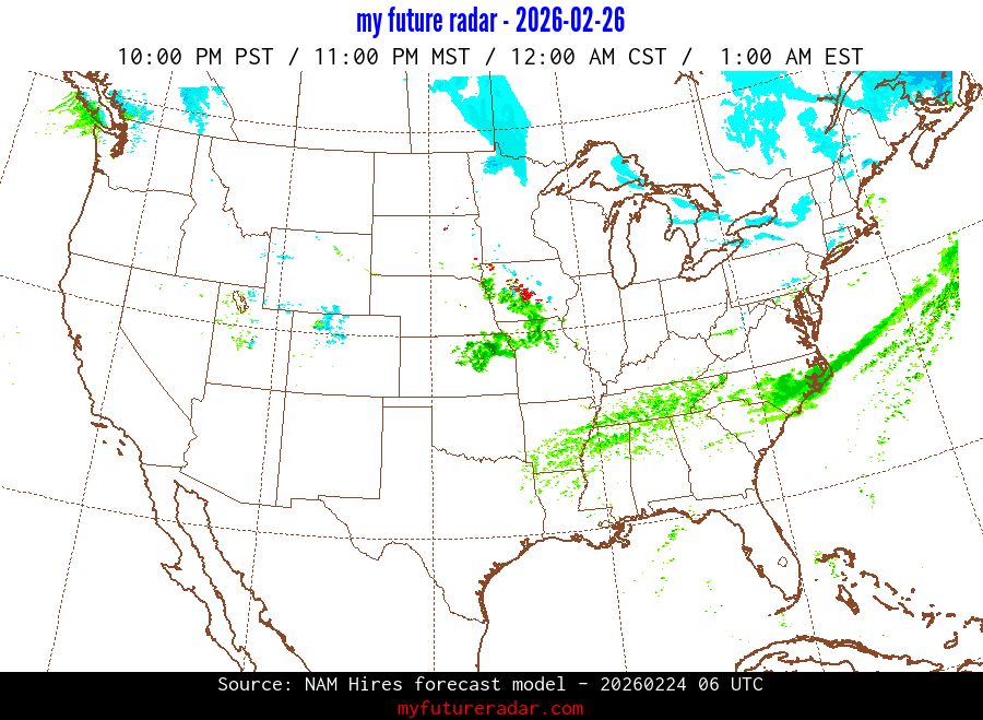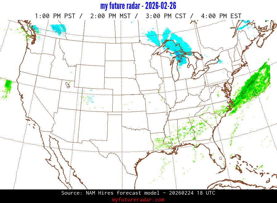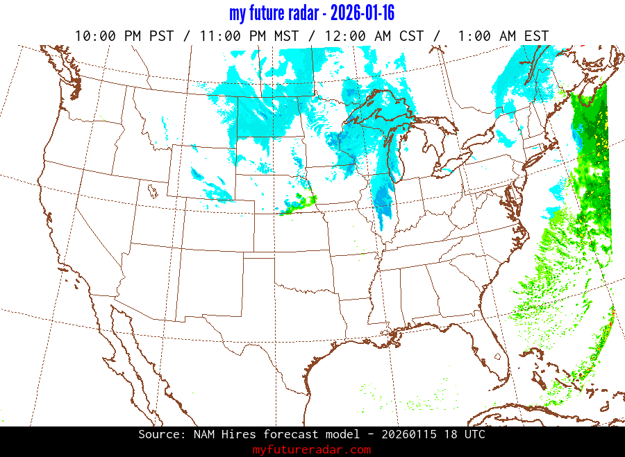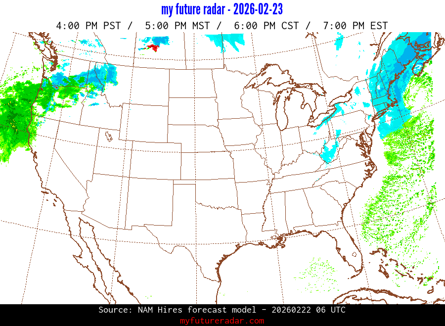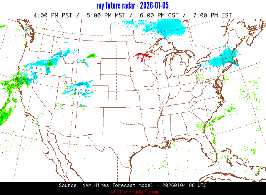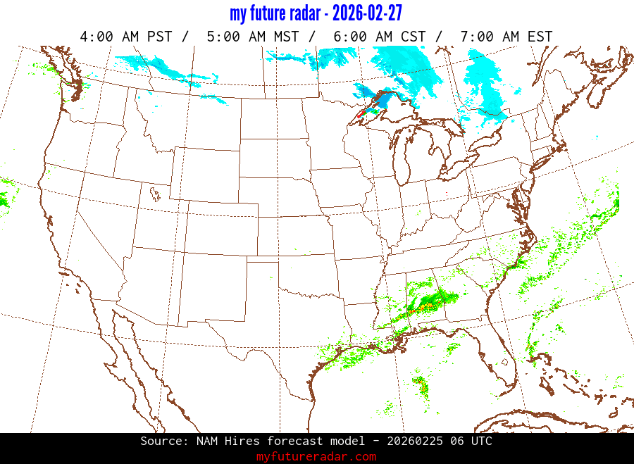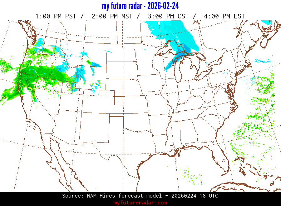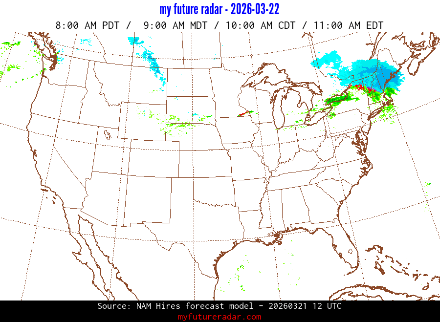 My Future Radar uses data from the Rapid Refresh and the NAM forecast models to provide simulated future radar imagery.