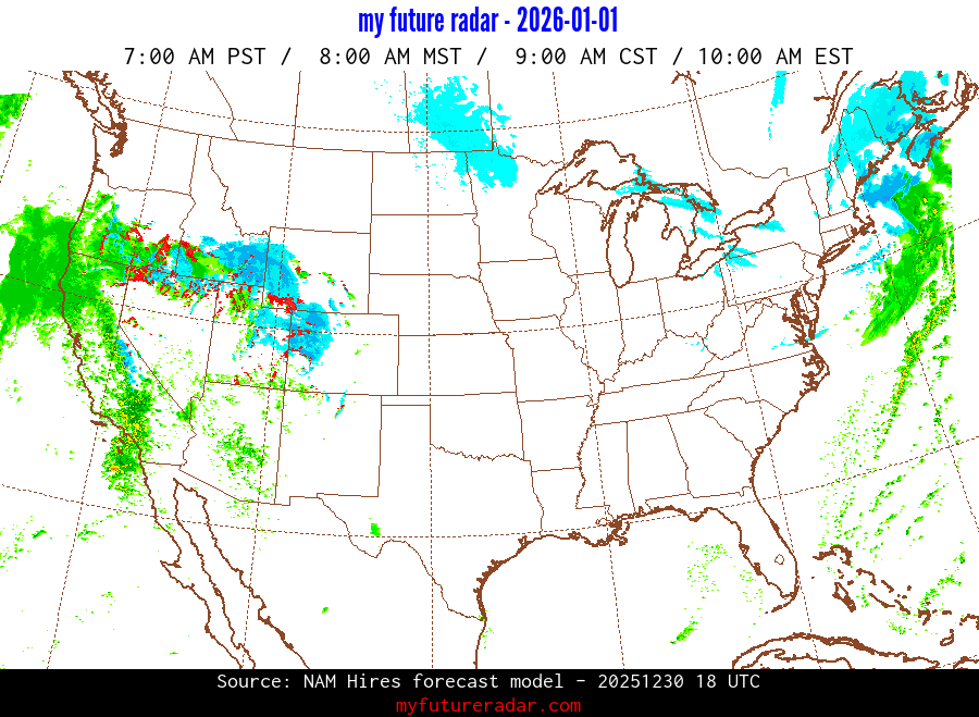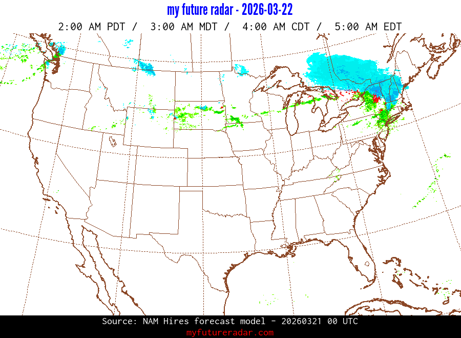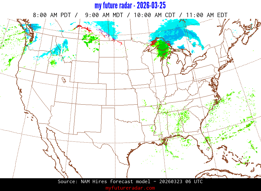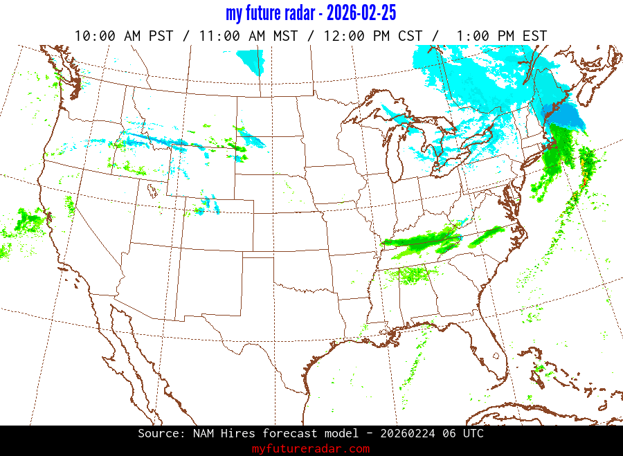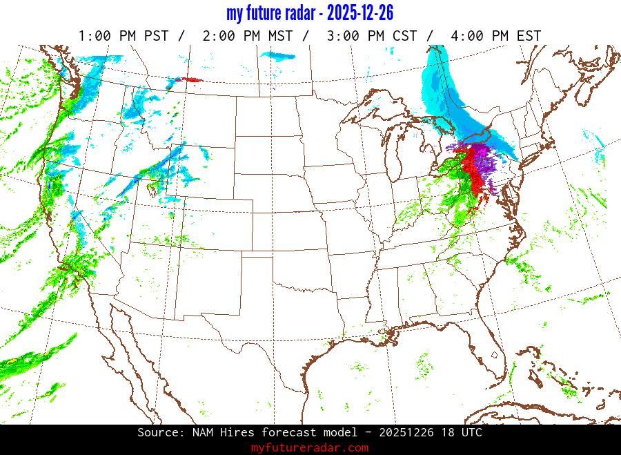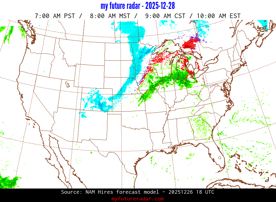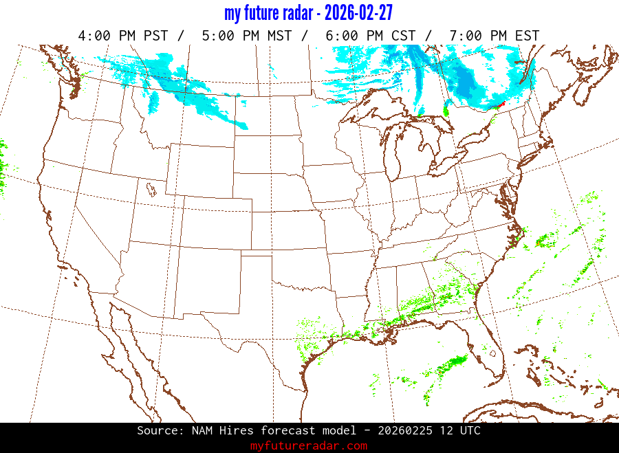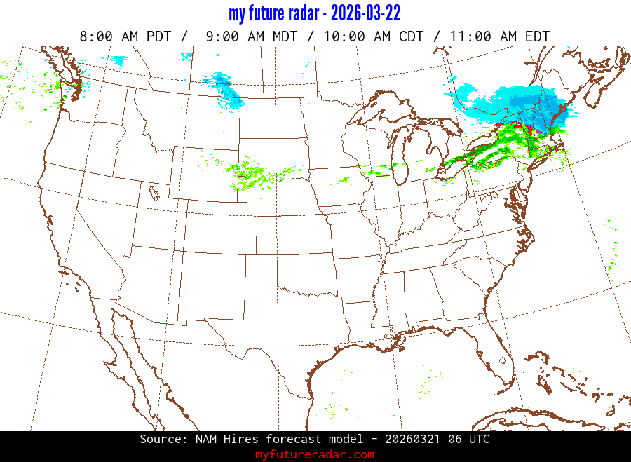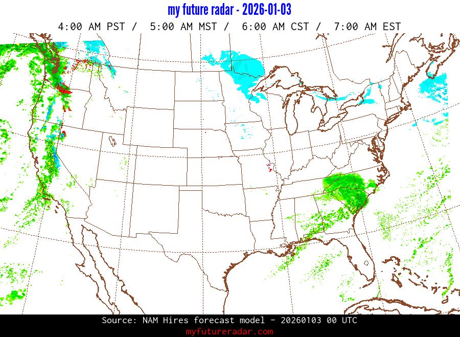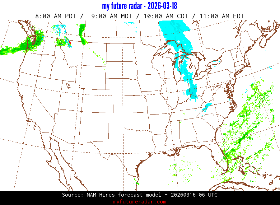 My Future Radar uses data from the Rapid Refresh and the NAM forecast models to provide simulated future radar imagery.
