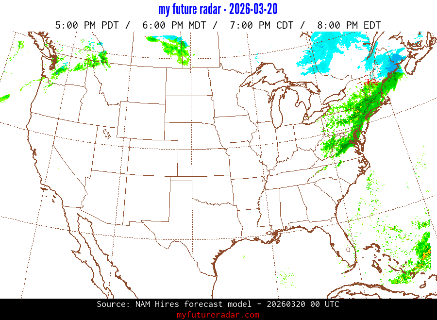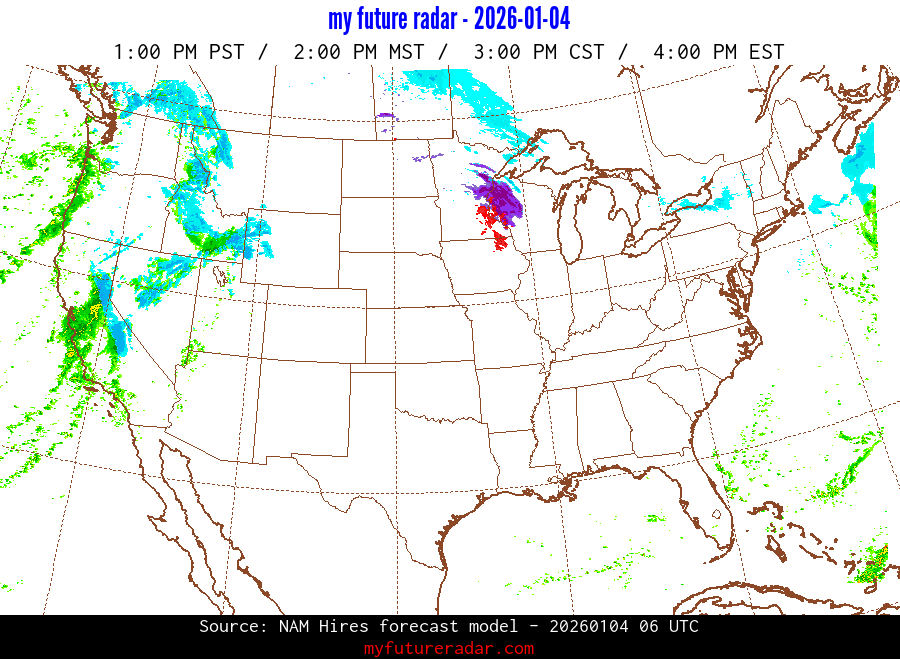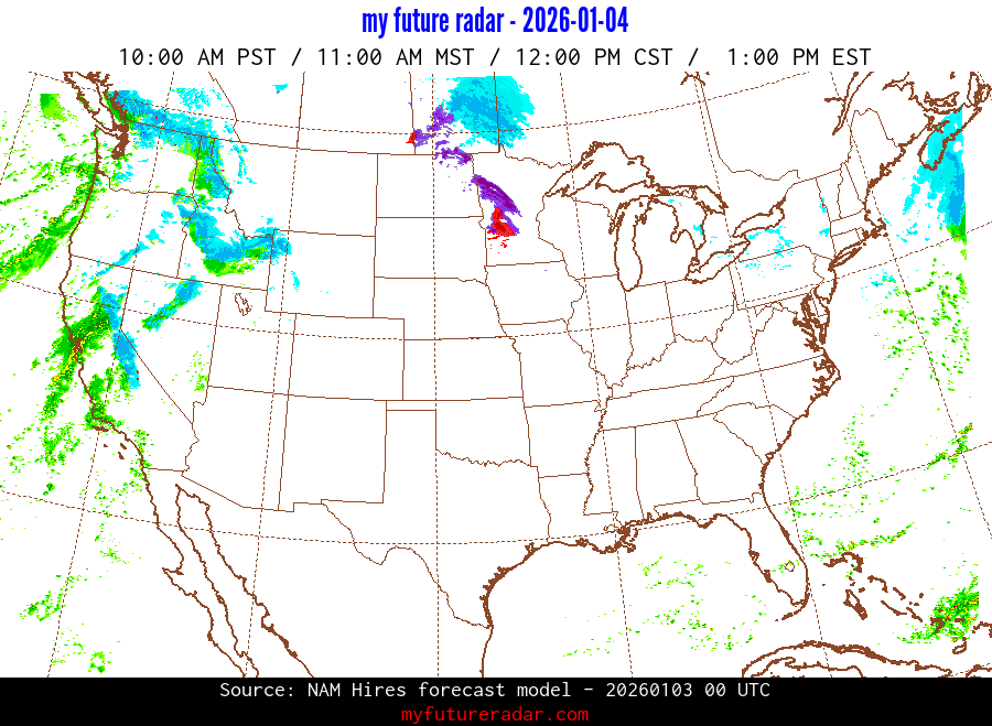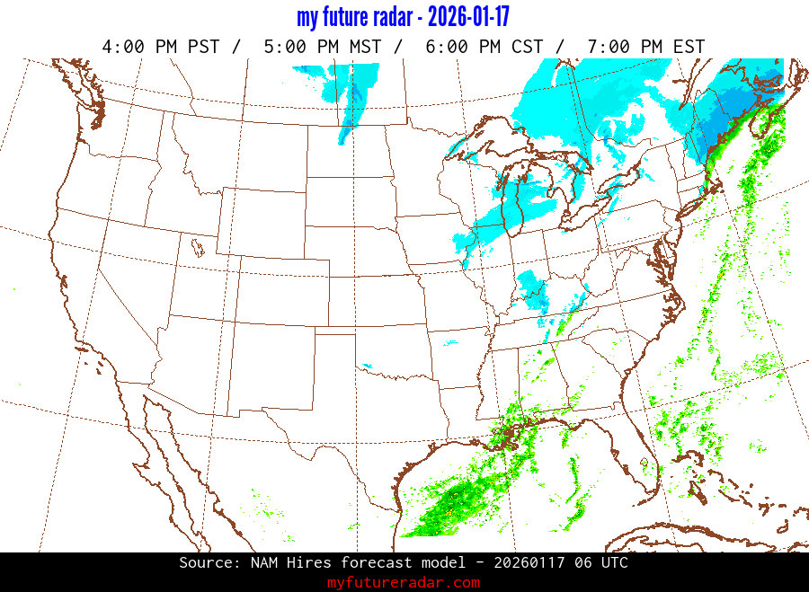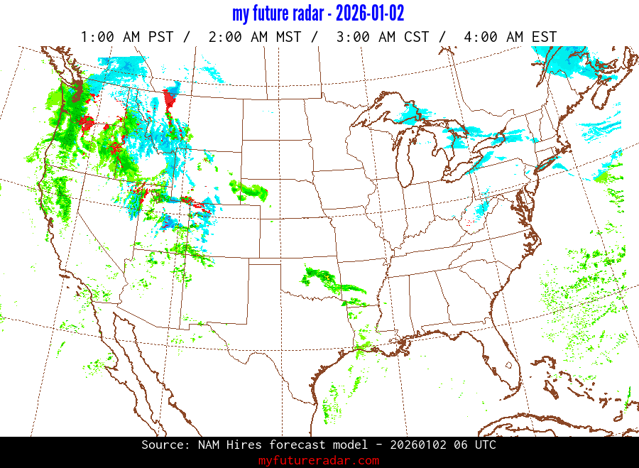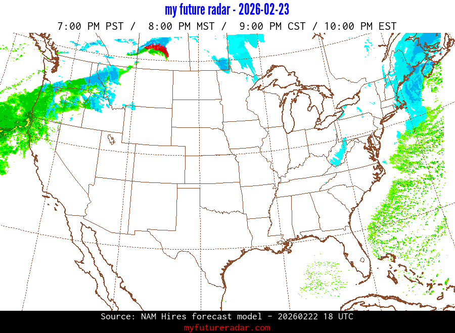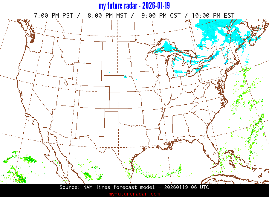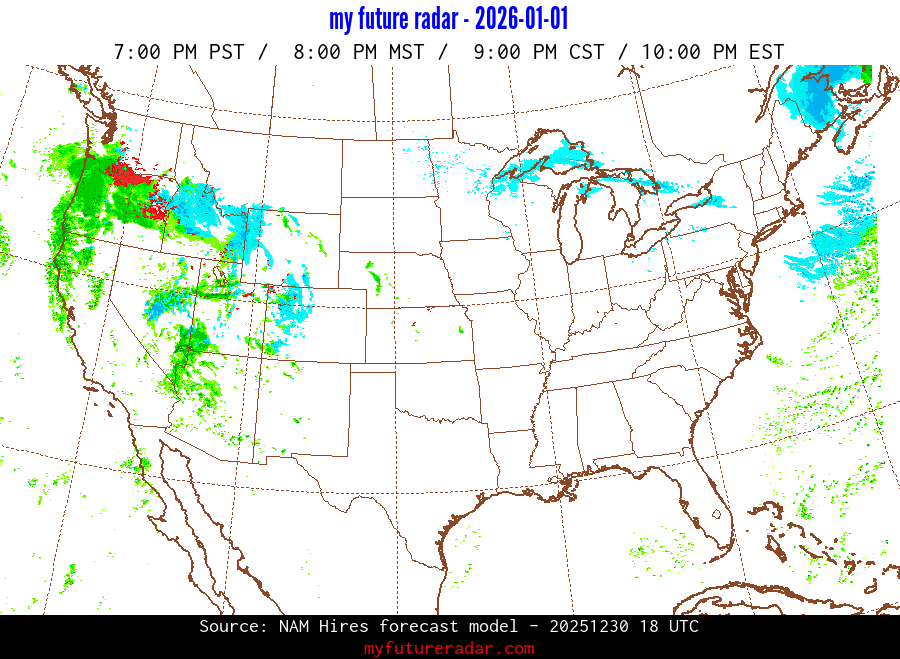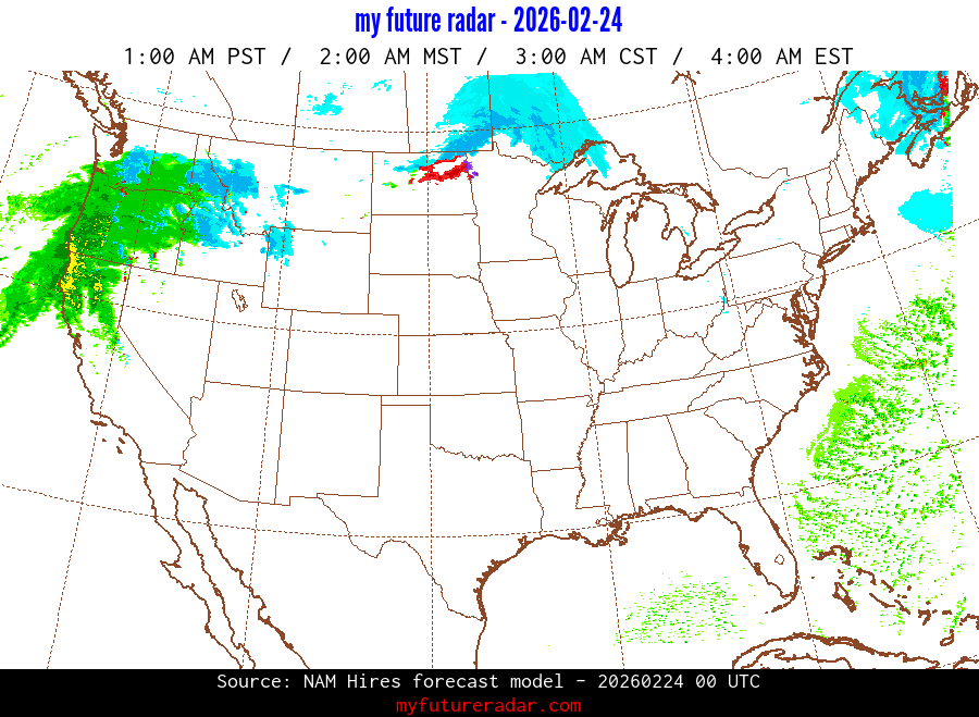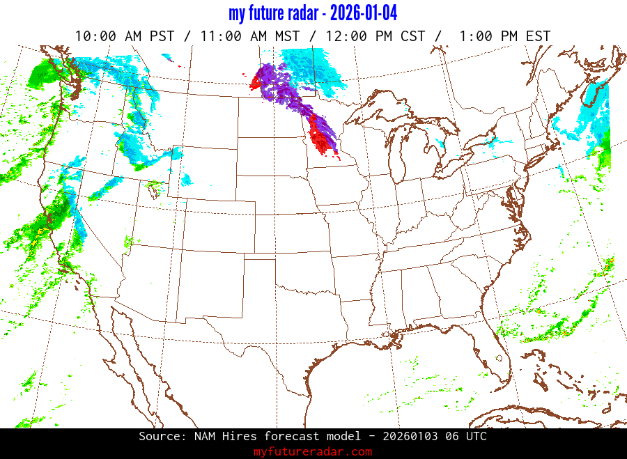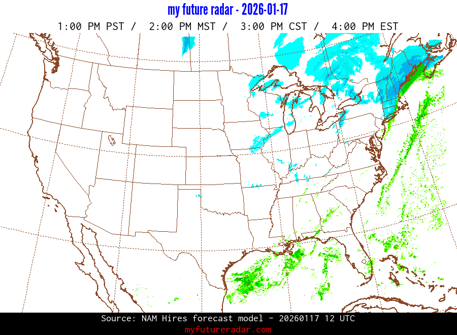 My Future Radar uses data from the Rapid Refresh and the NAM forecast models to provide simulated future radar imagery.