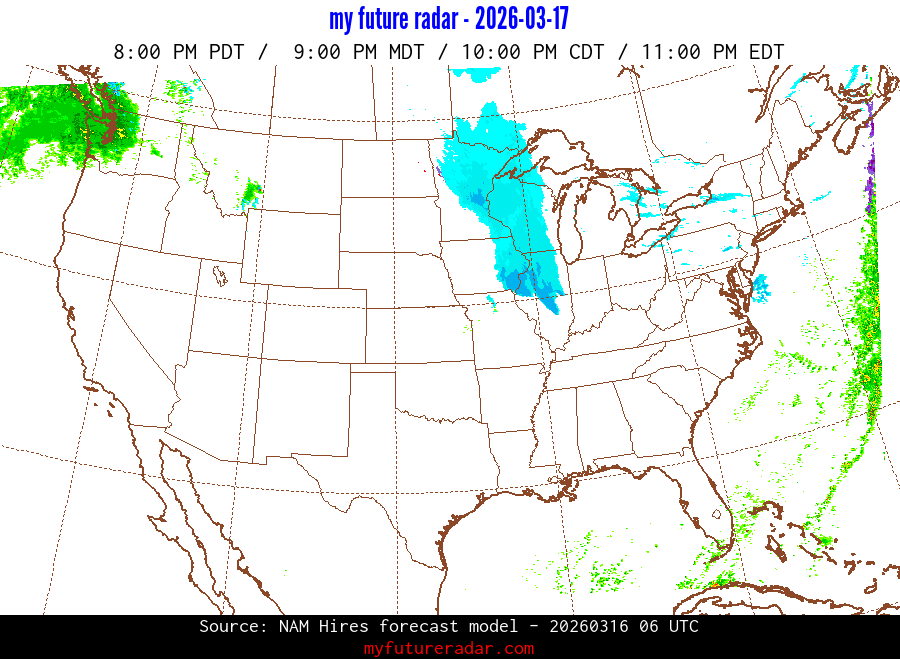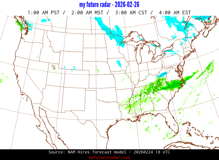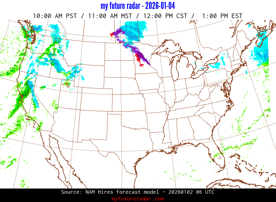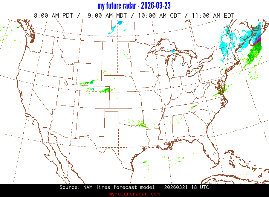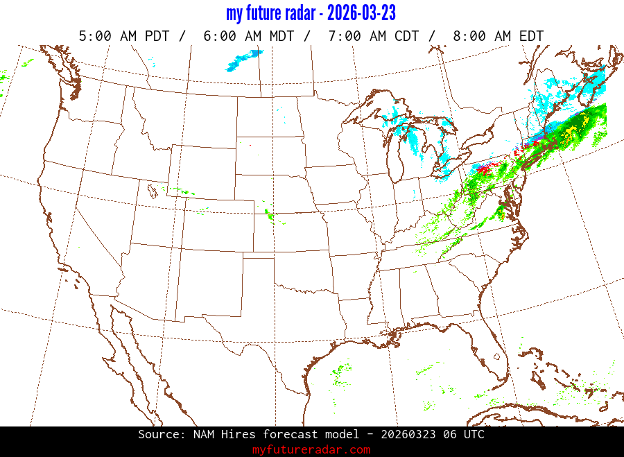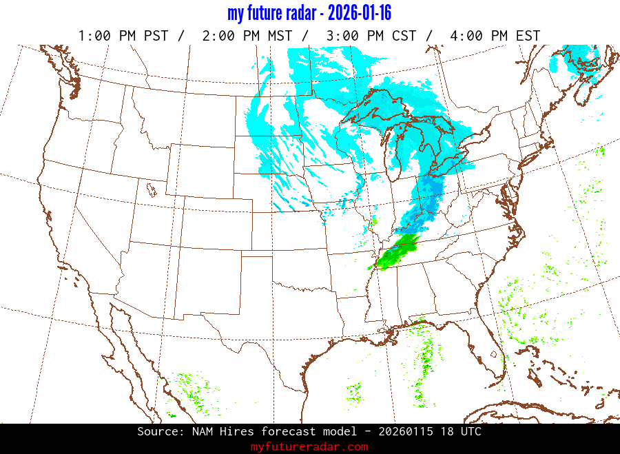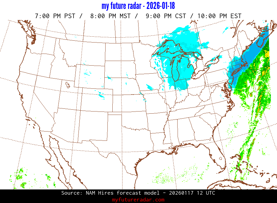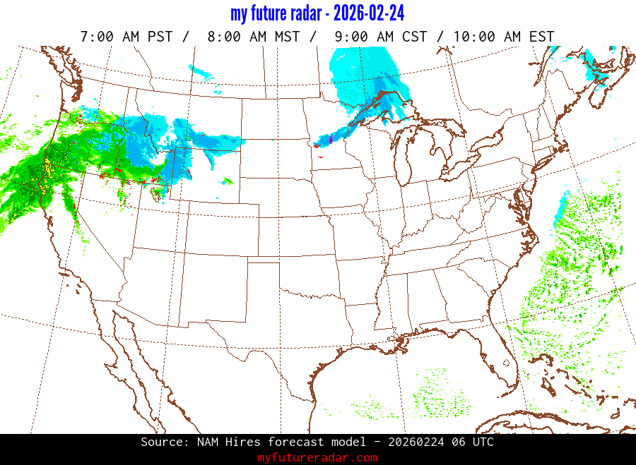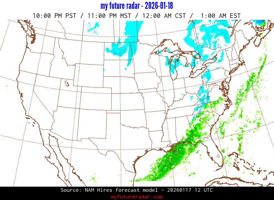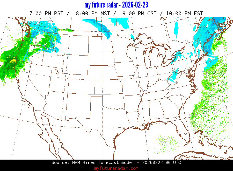 My Future Radar uses data from the Rapid Refresh and the NAM forecast models to provide simulated future radar imagery.