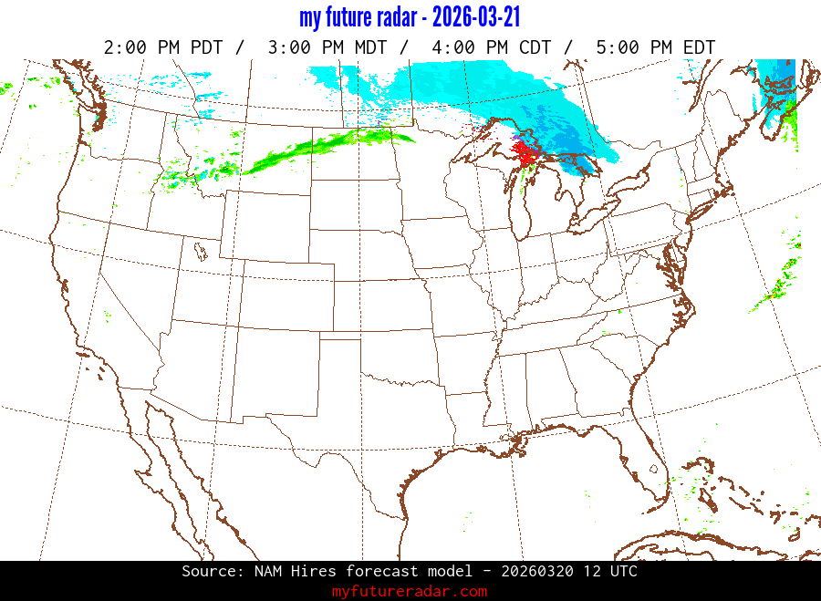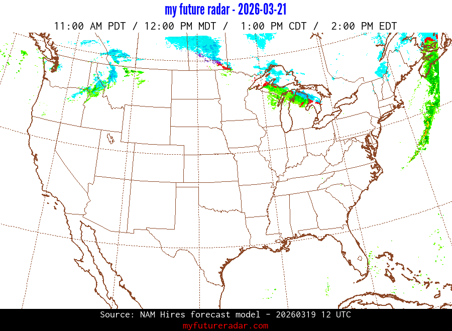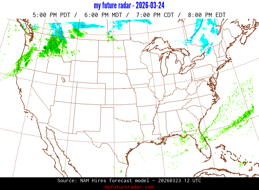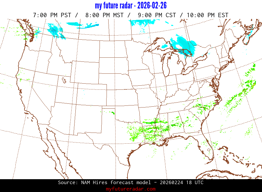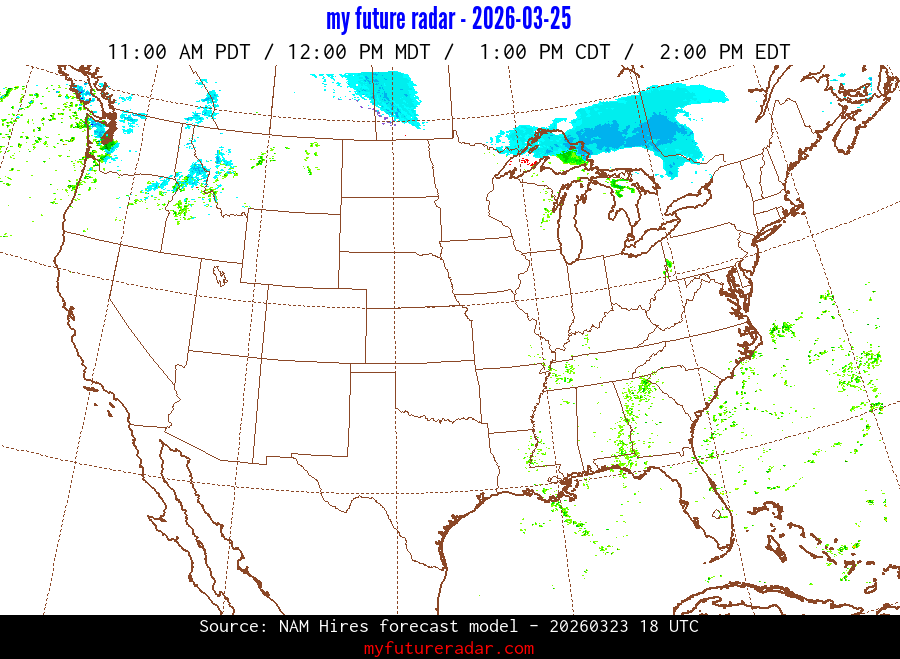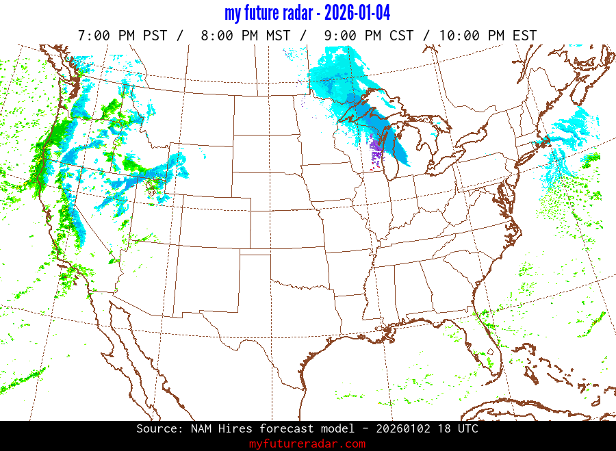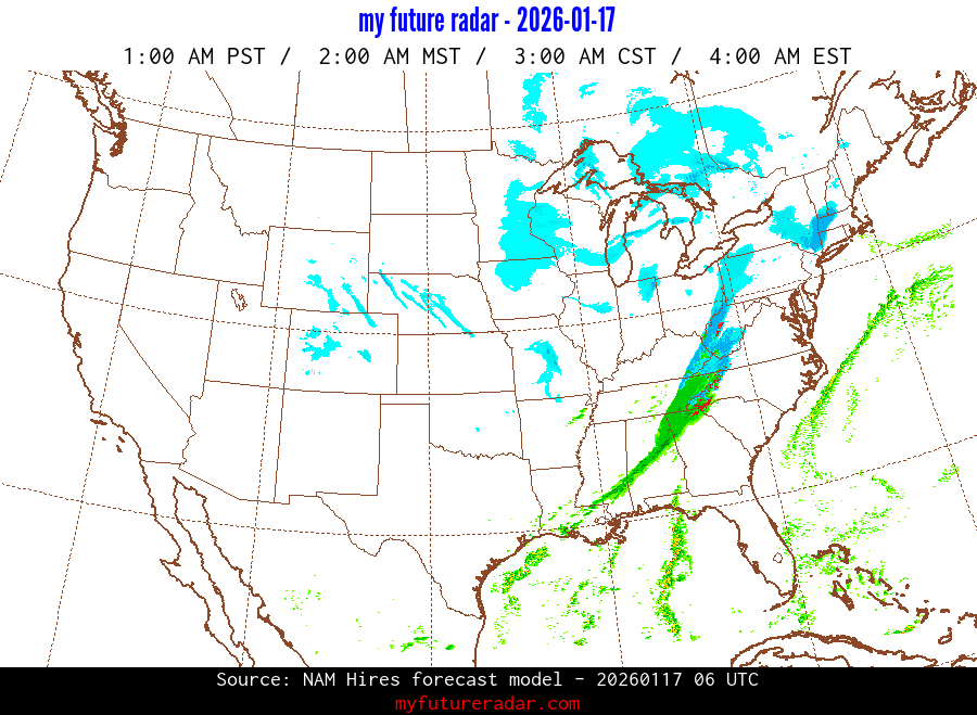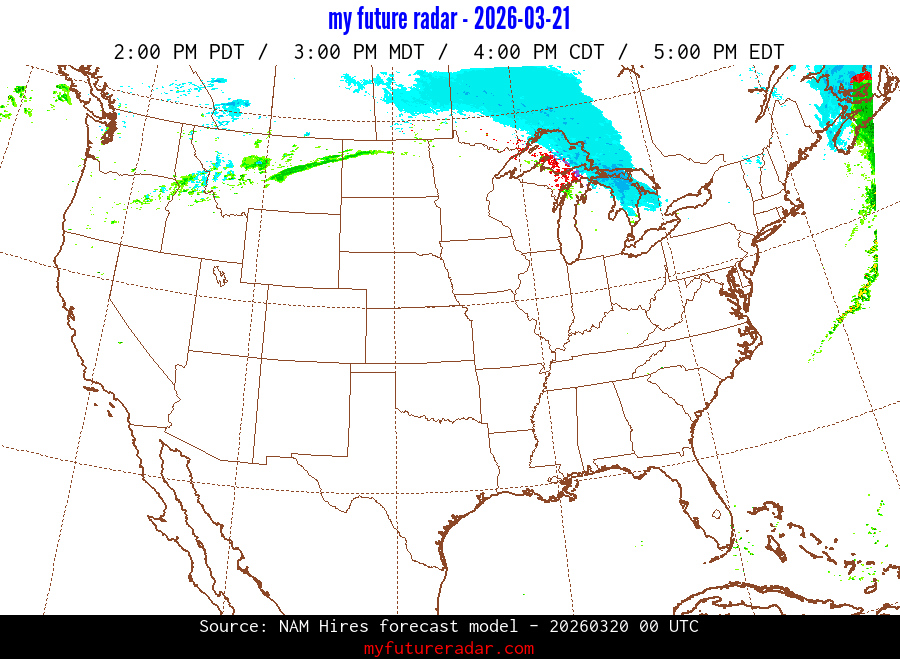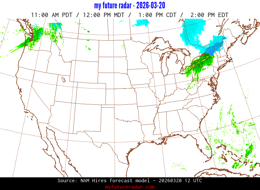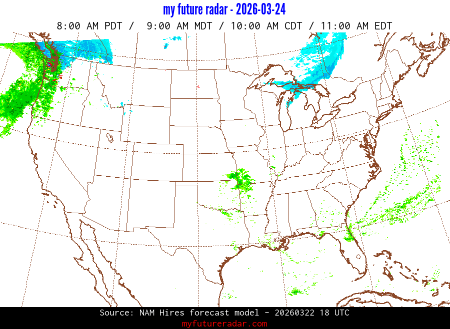 My Future Radar uses data from the Rapid Refresh and the NAM forecast models to provide simulated future radar imagery.