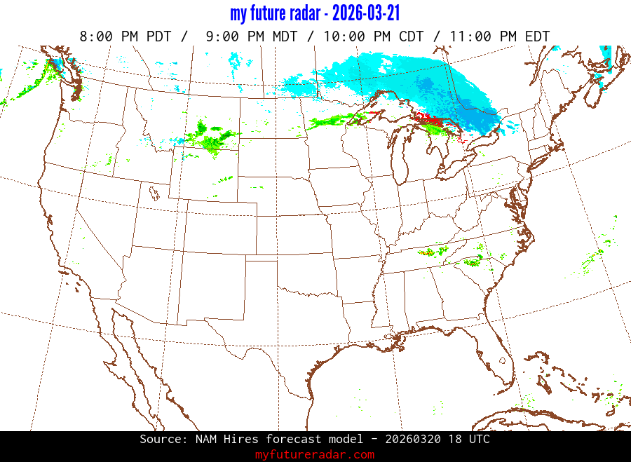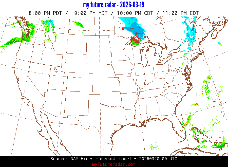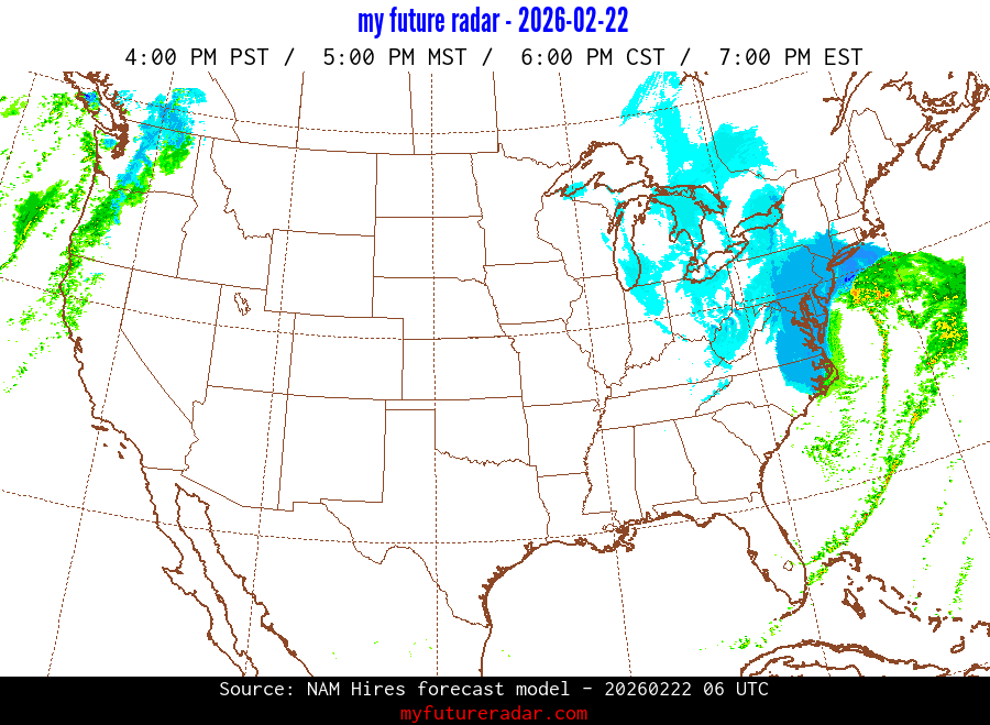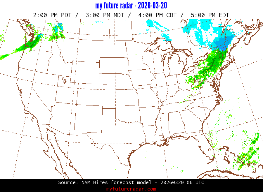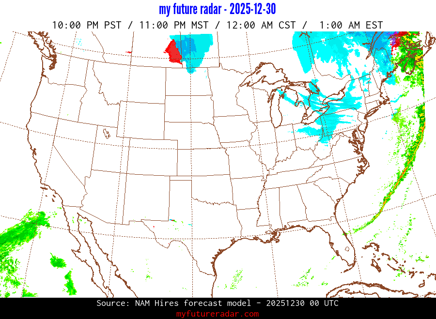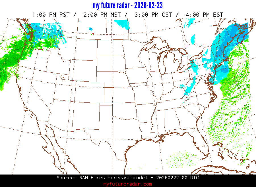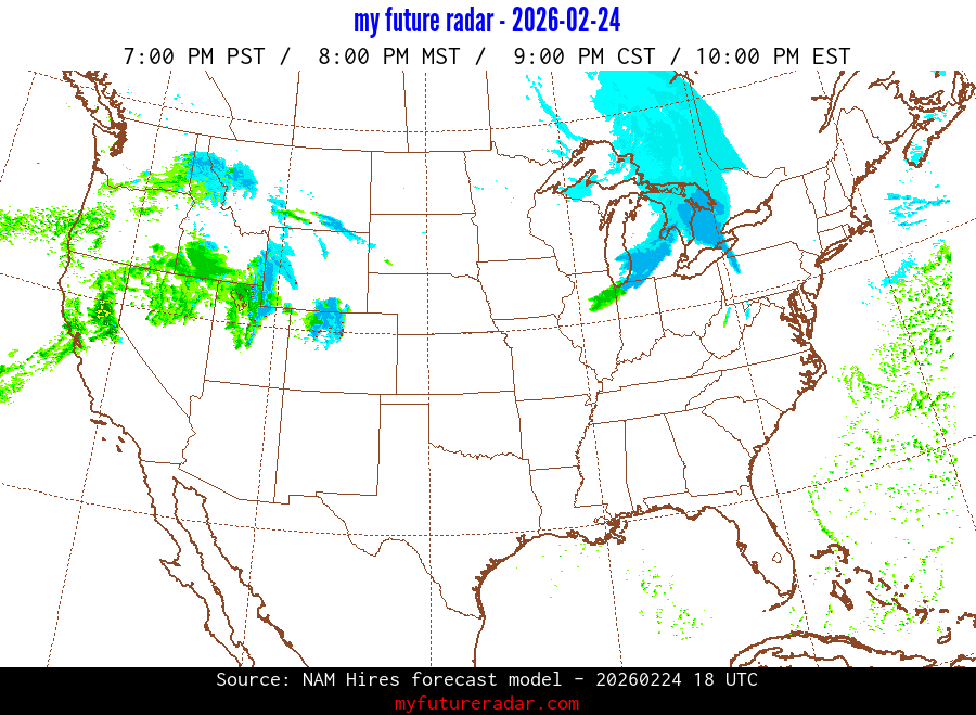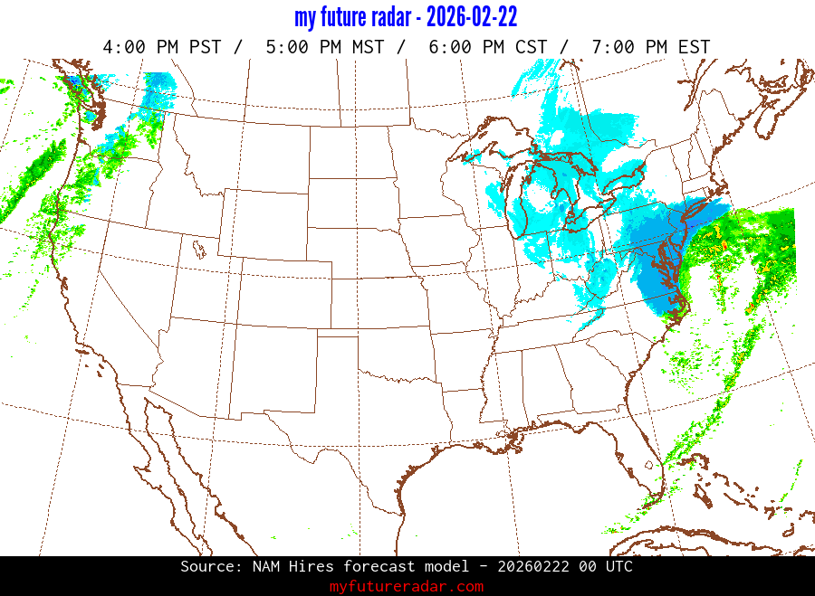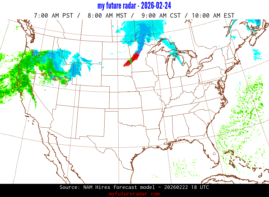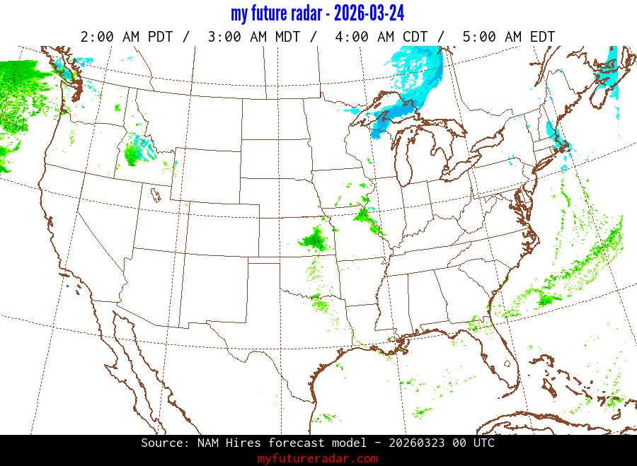 My Future Radar uses data from the Rapid Refresh and the NAM forecast models to provide simulated future radar imagery.