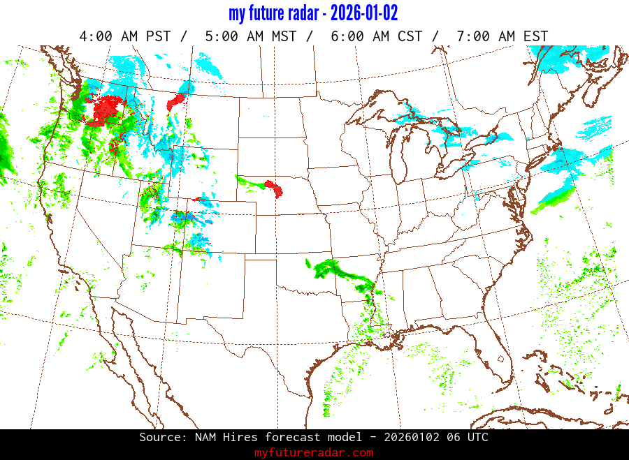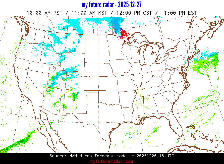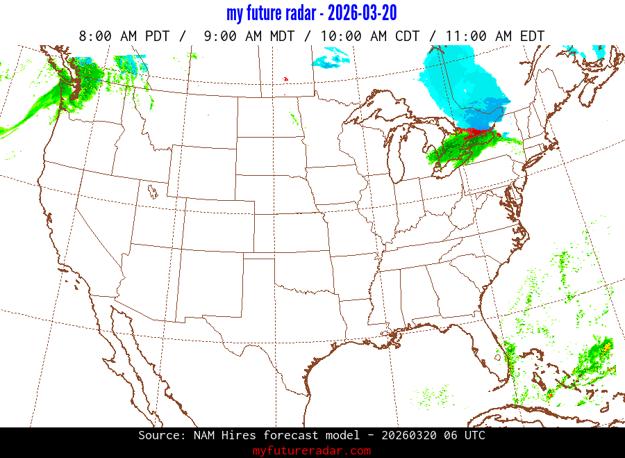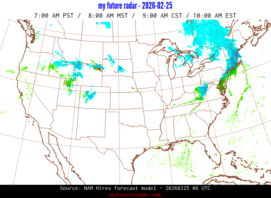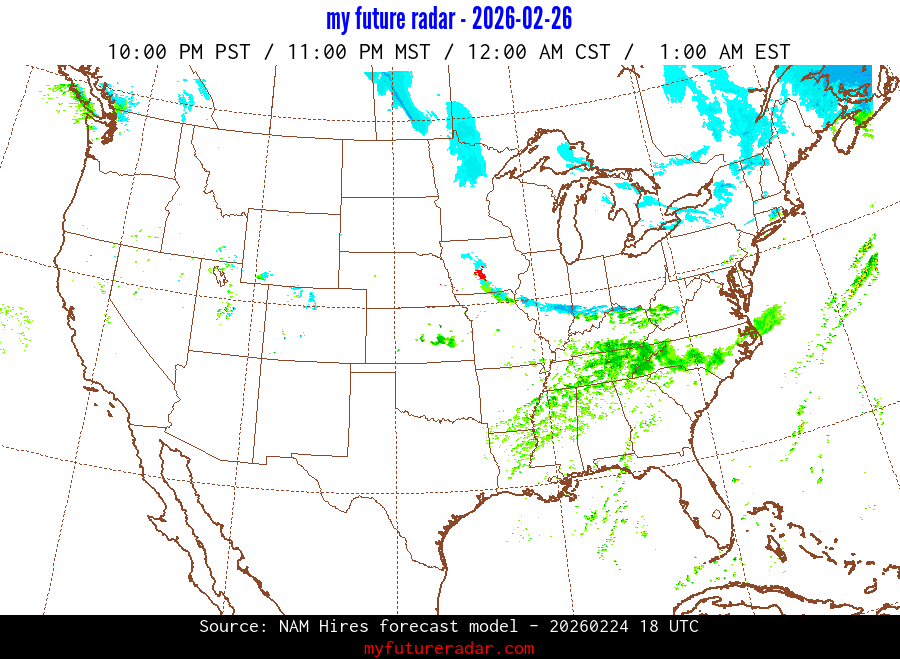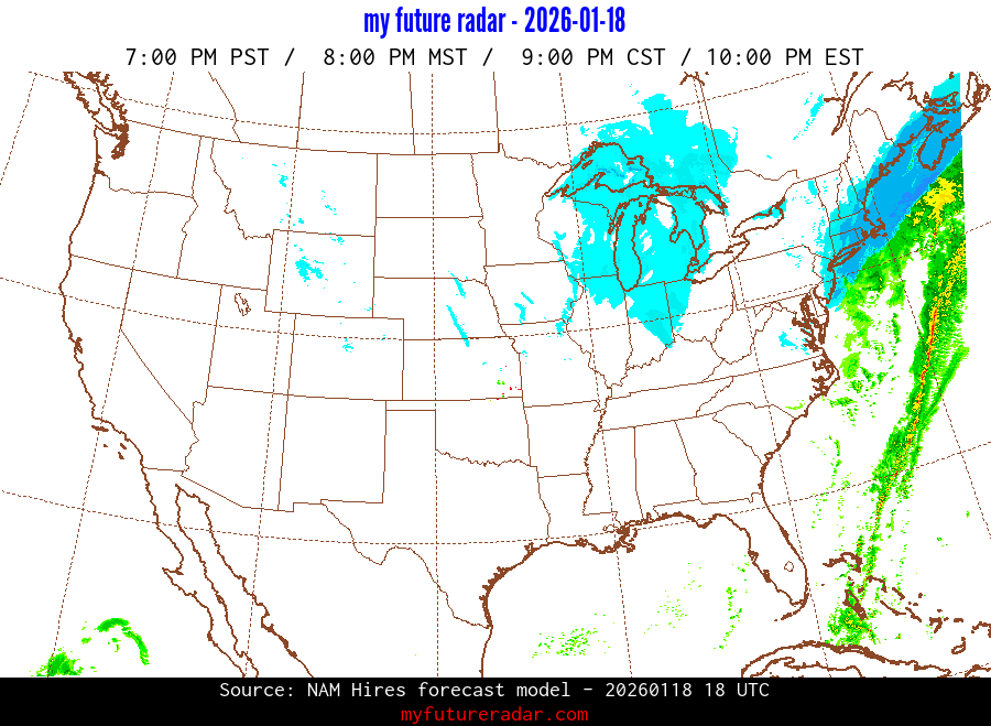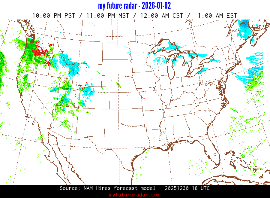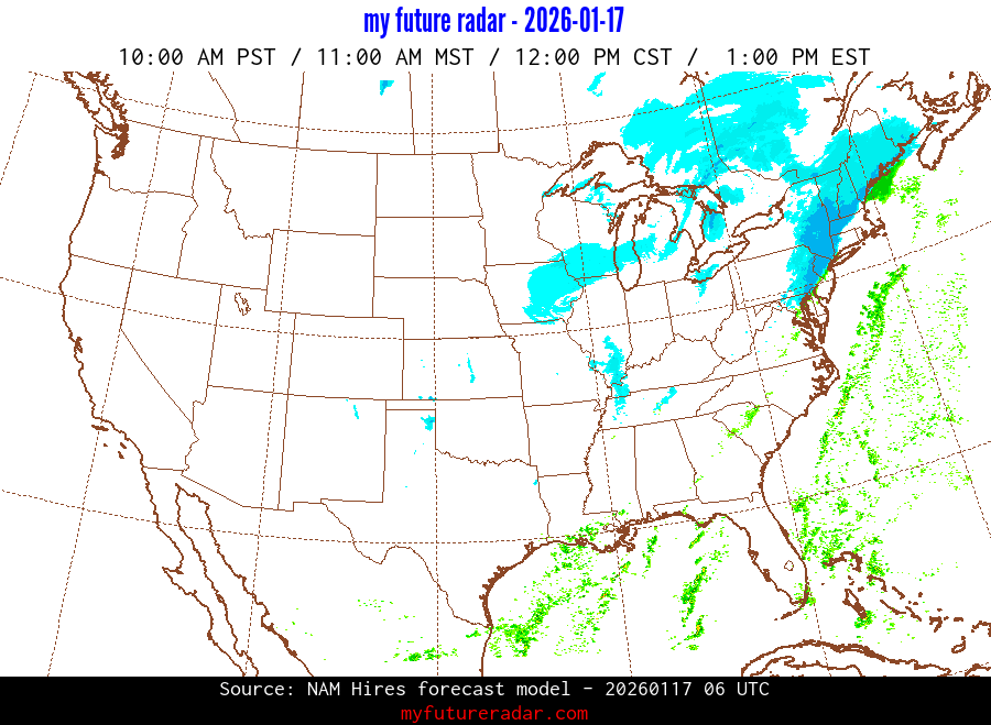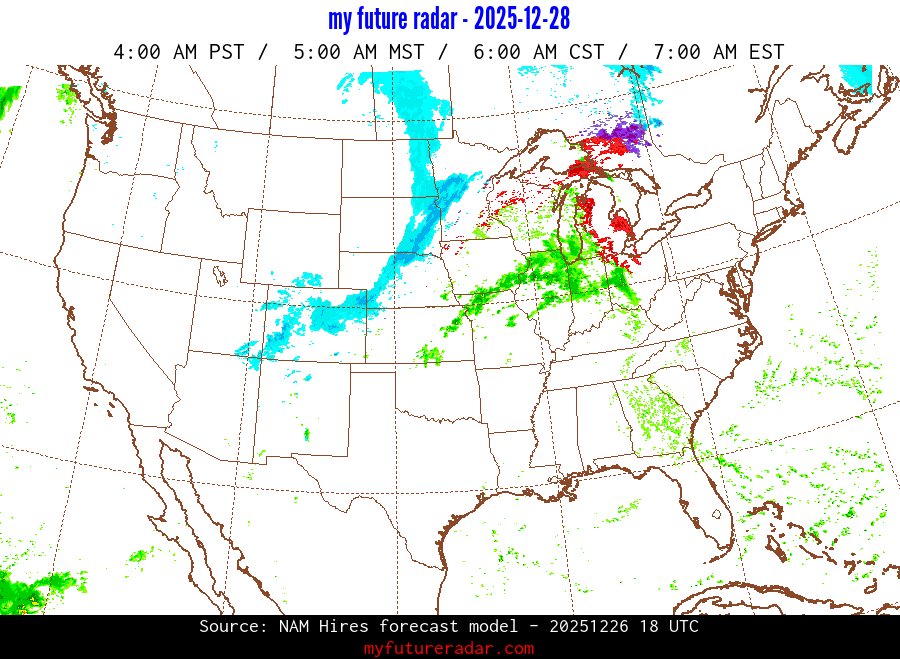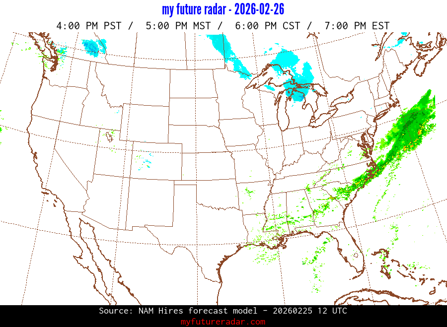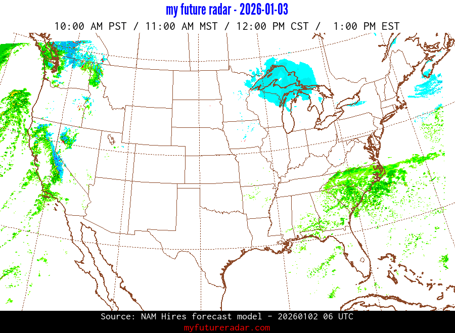My Future Radar uses data from the Rapid Refresh and the NAM forecast models to provide simulated future radar imagery.