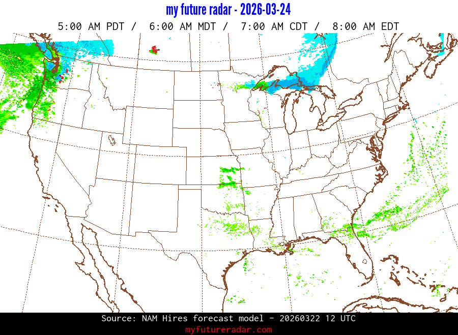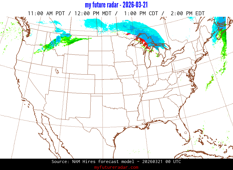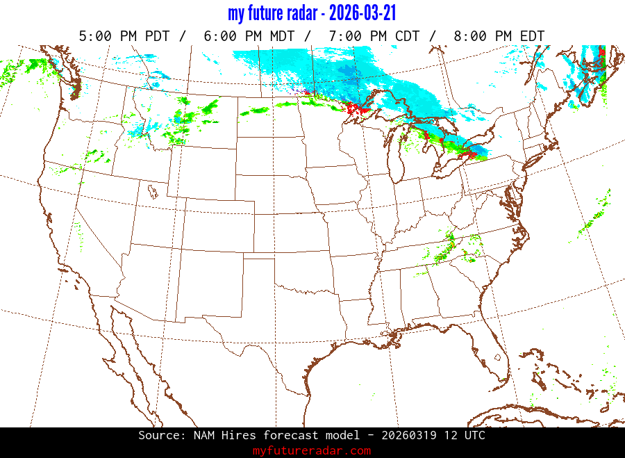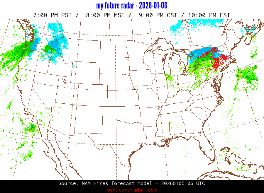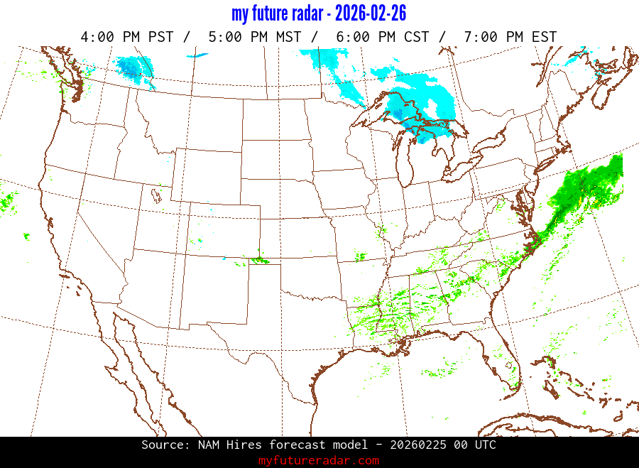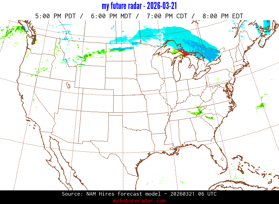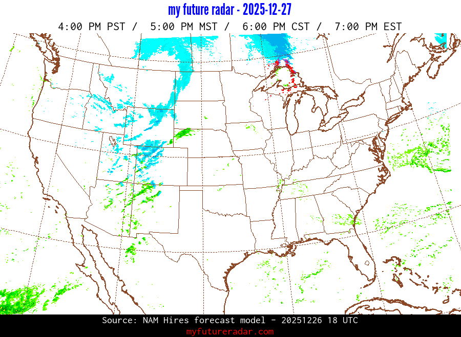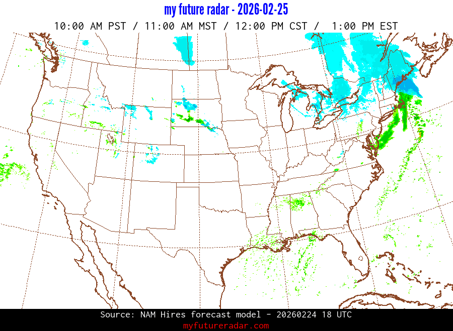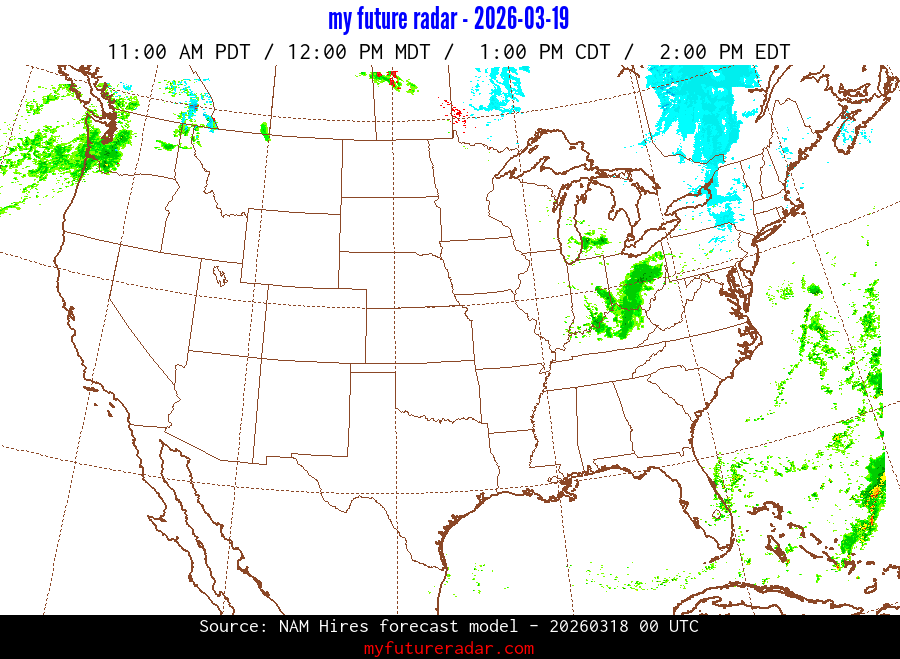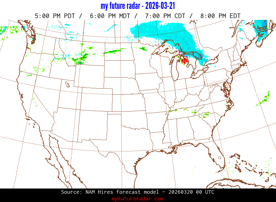 My Future Radar uses data from the Rapid Refresh and the NAM forecast models to provide simulated future radar imagery.