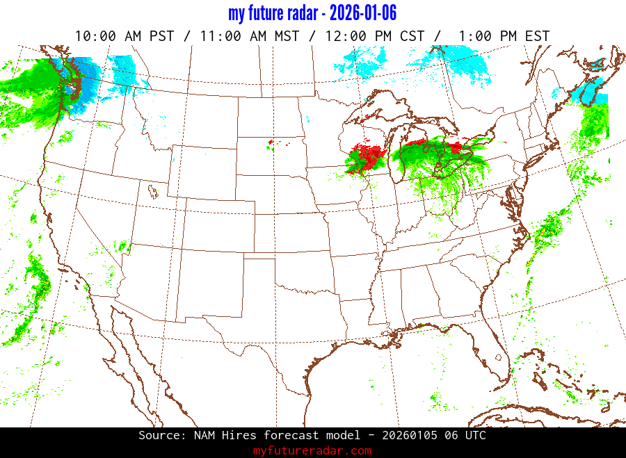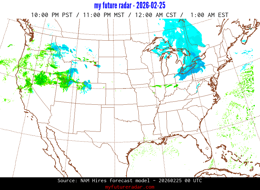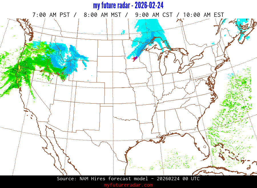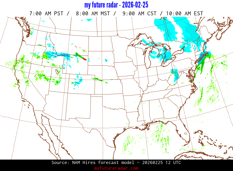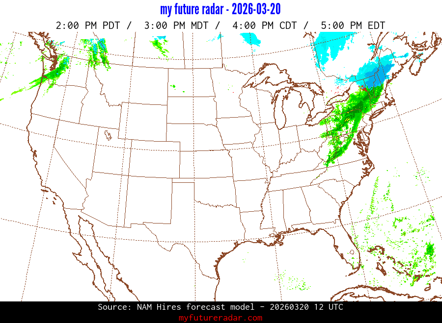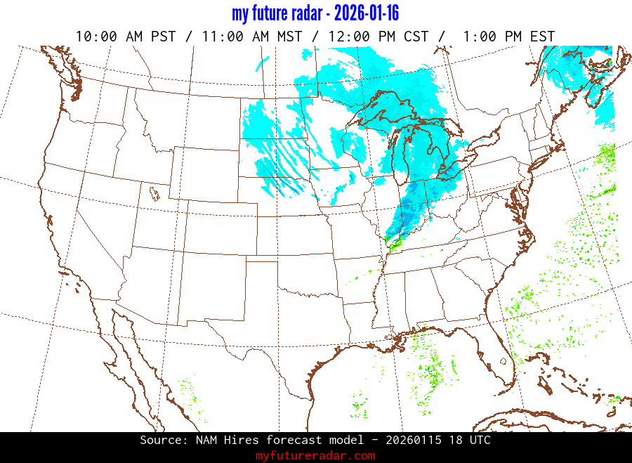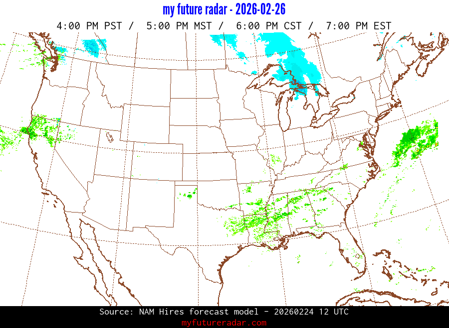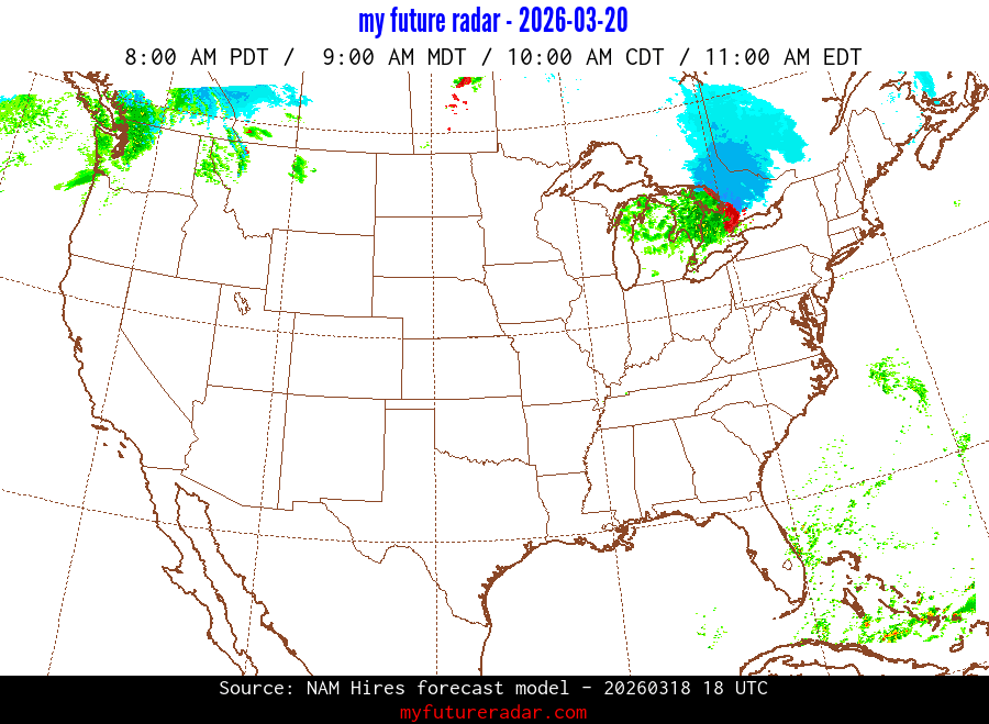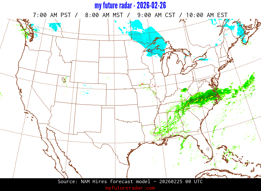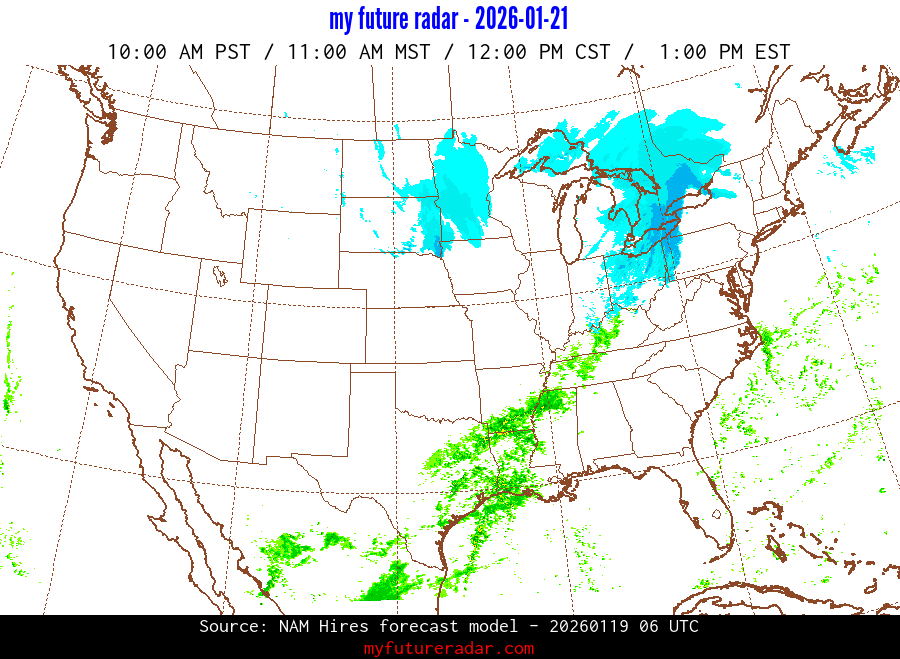 My Future Radar uses data from the Rapid Refresh and the NAM forecast models to provide simulated future radar imagery.