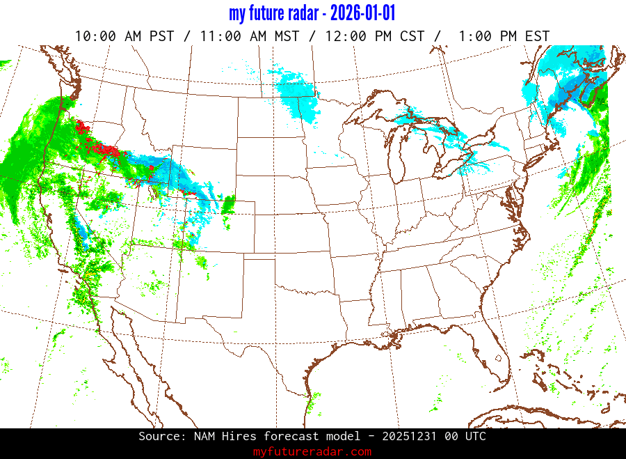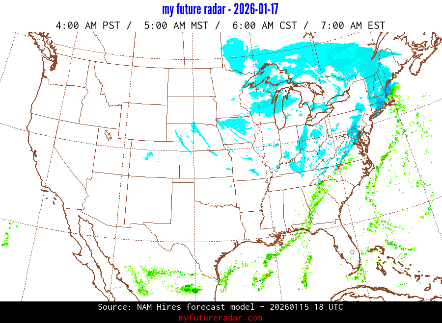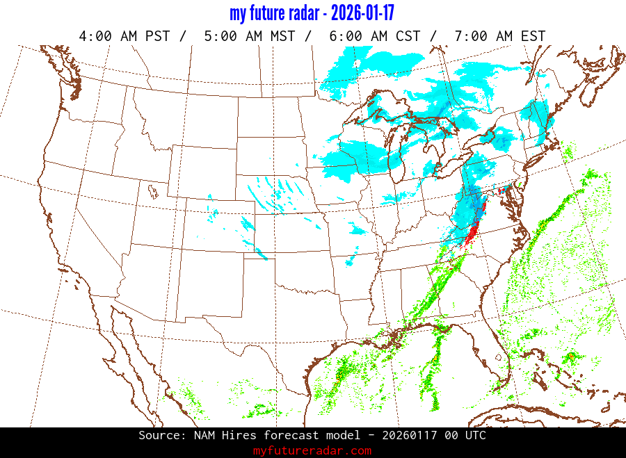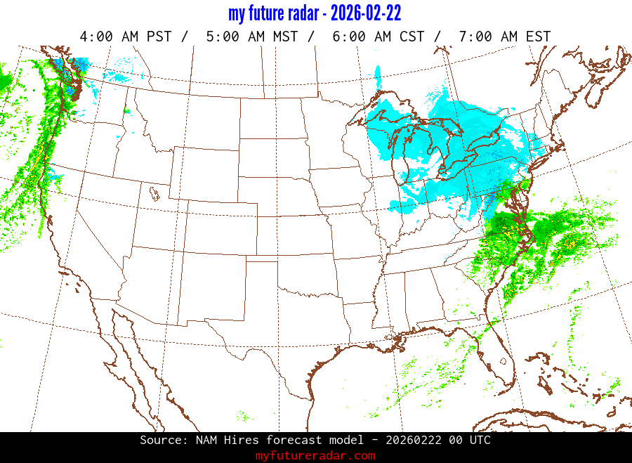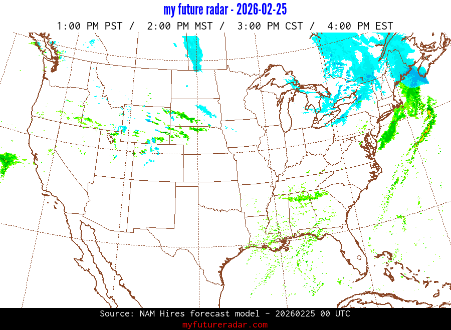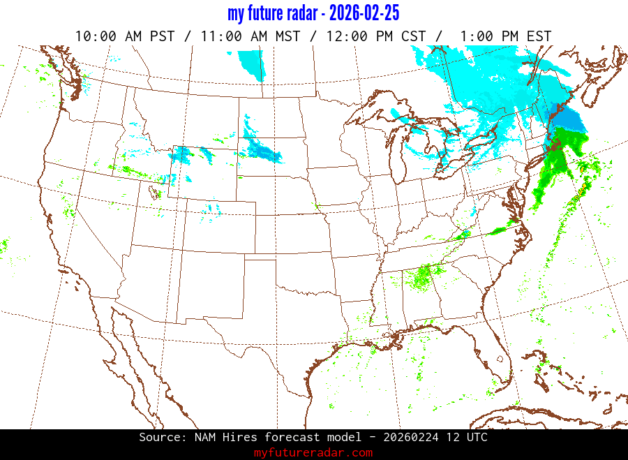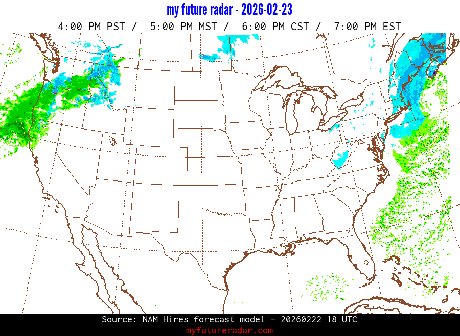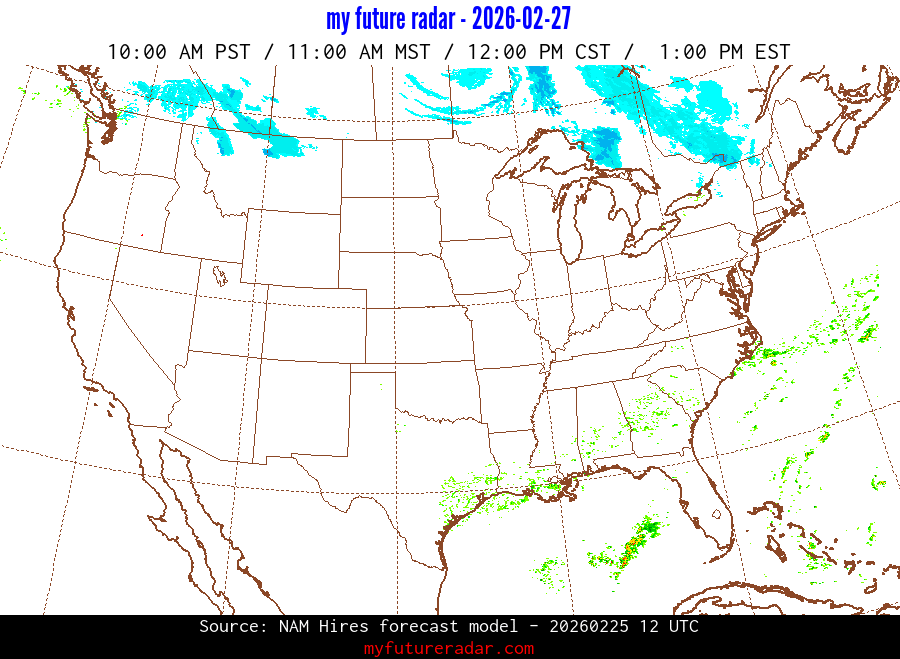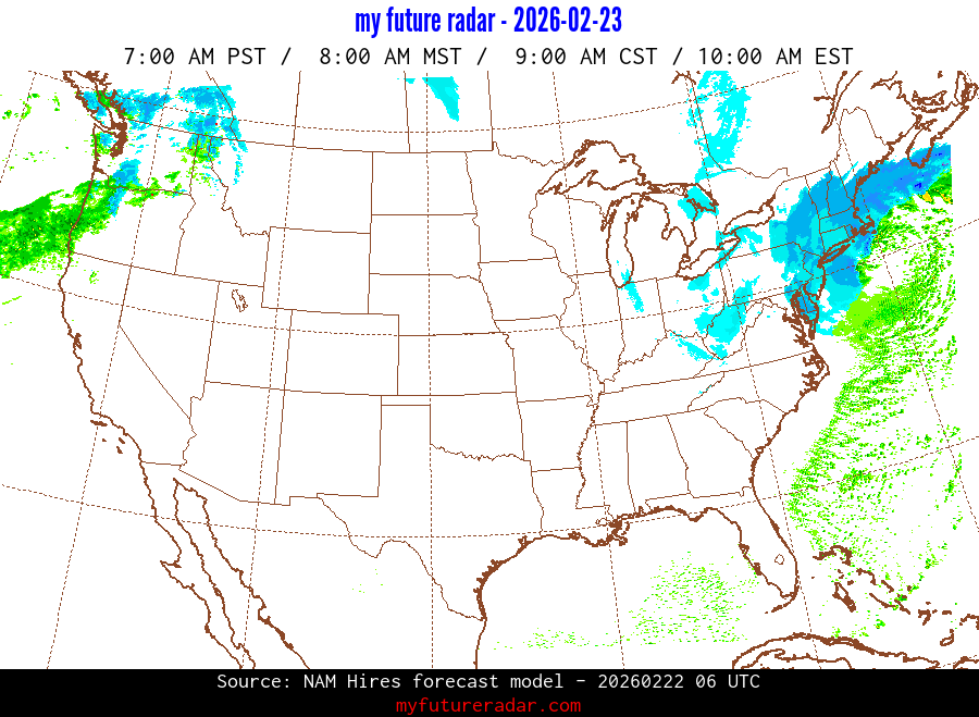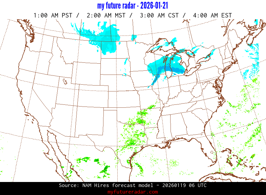 My Future Radar uses data from the Rapid Refresh and the NAM forecast models to provide simulated future radar imagery.