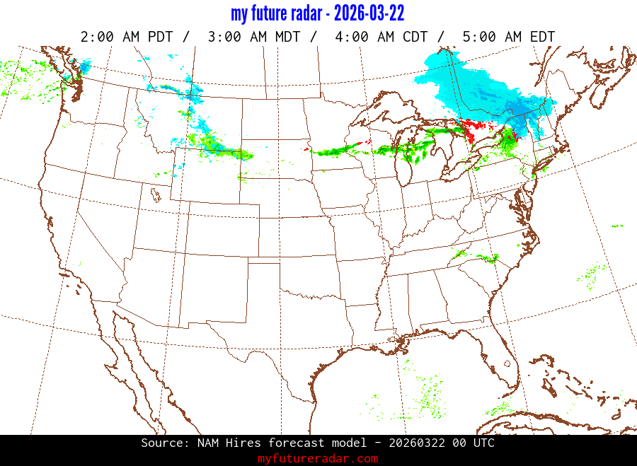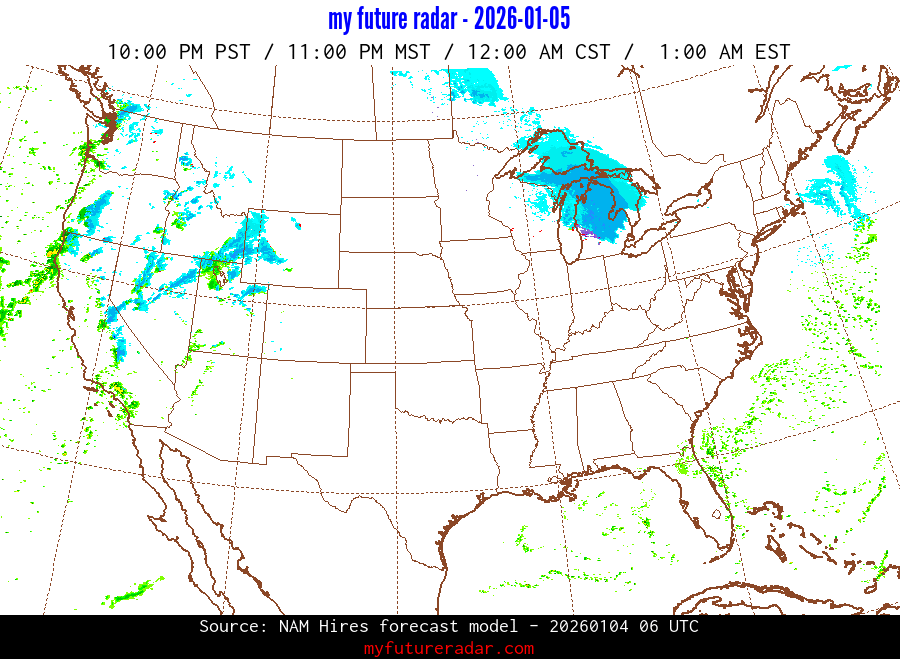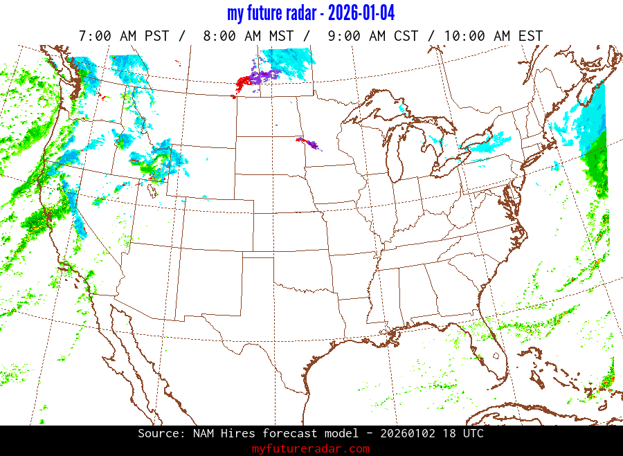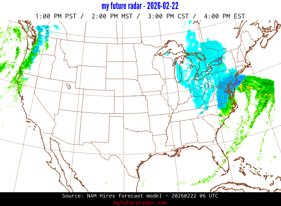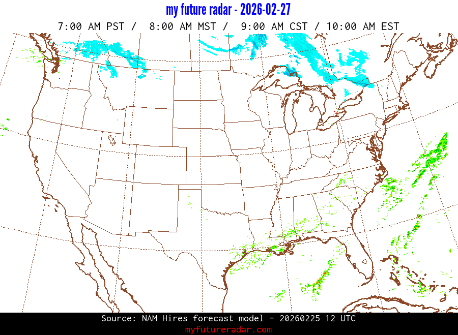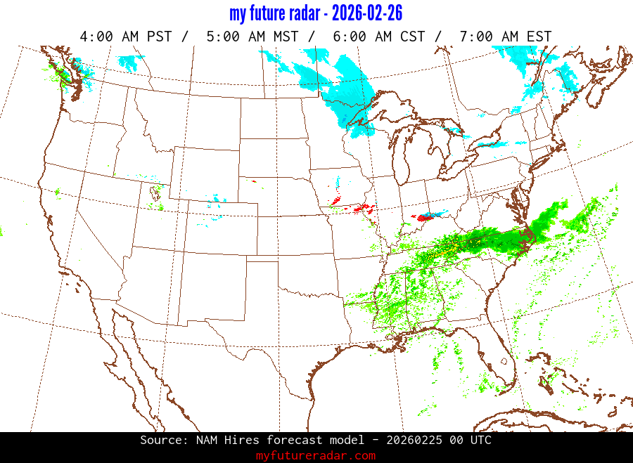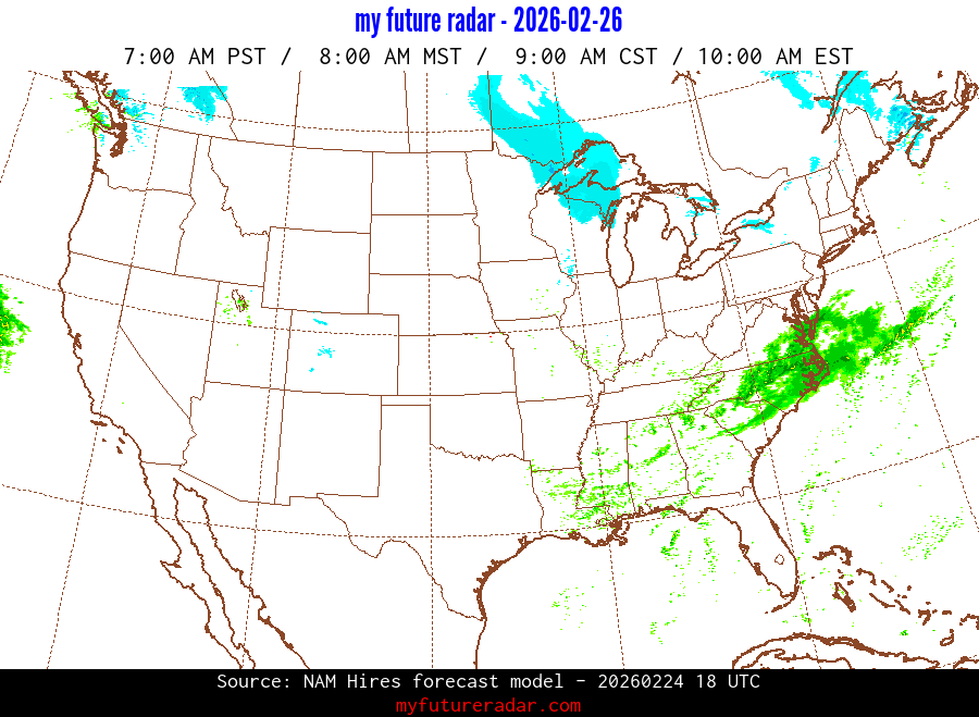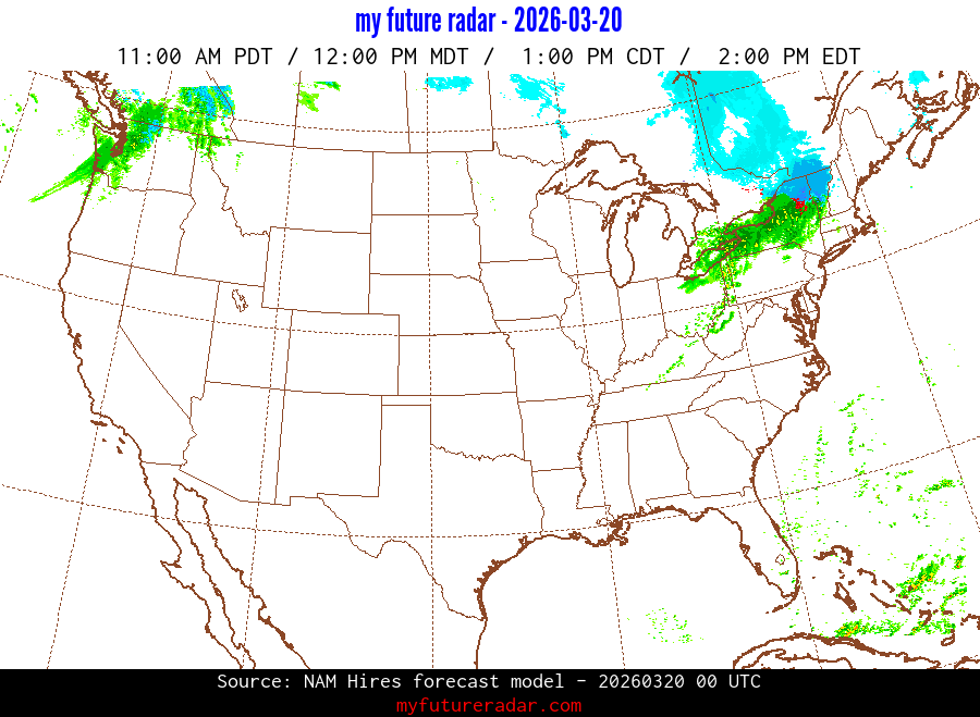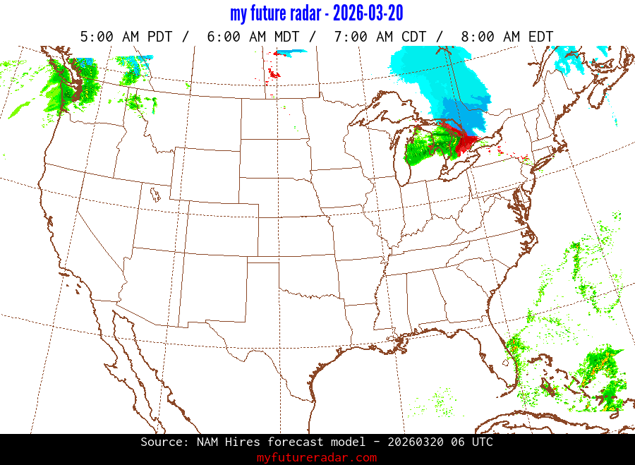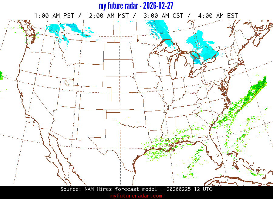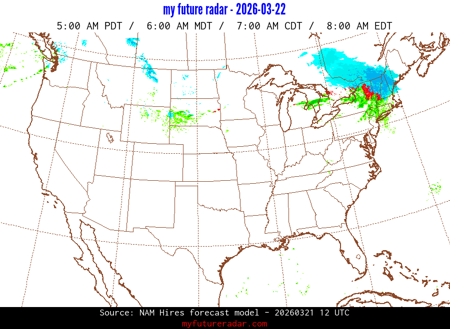 My Future Radar uses data from the Rapid Refresh and the NAM forecast models to provide simulated future radar imagery.