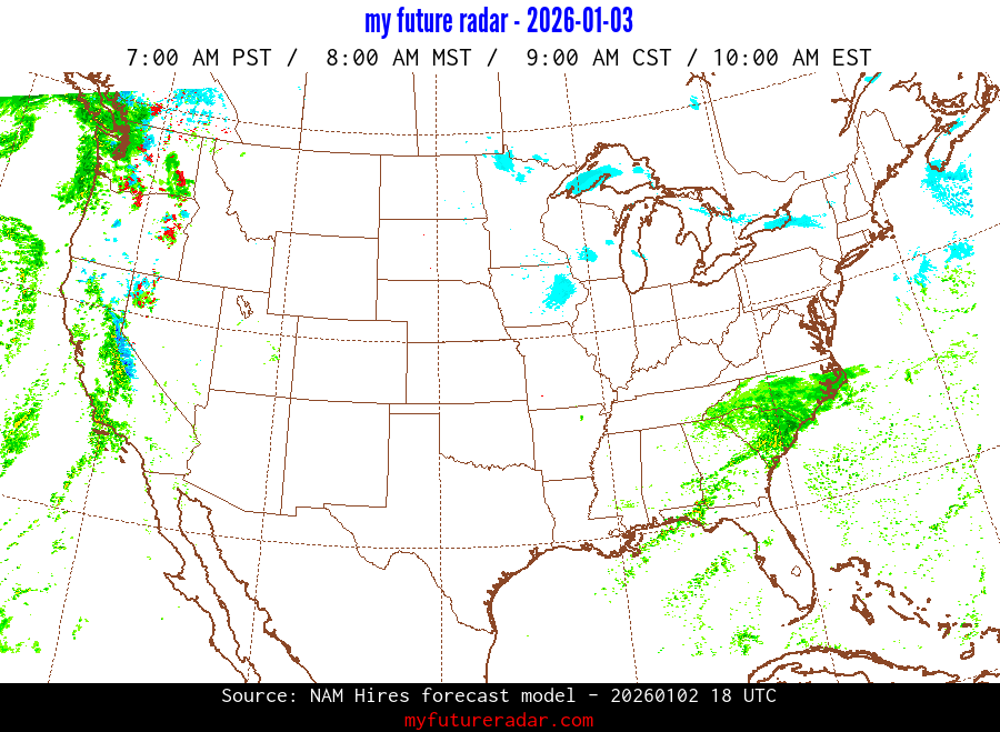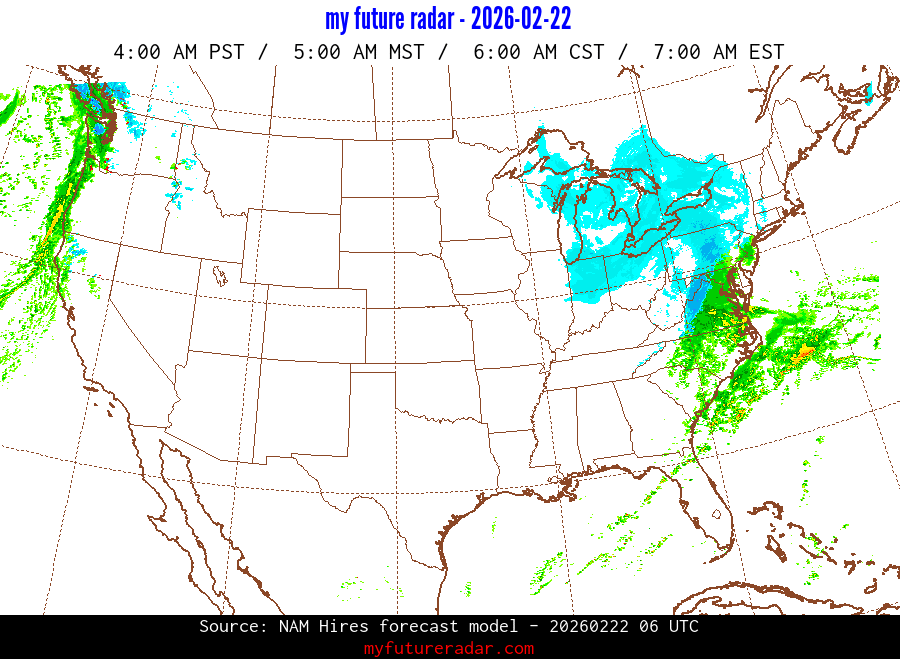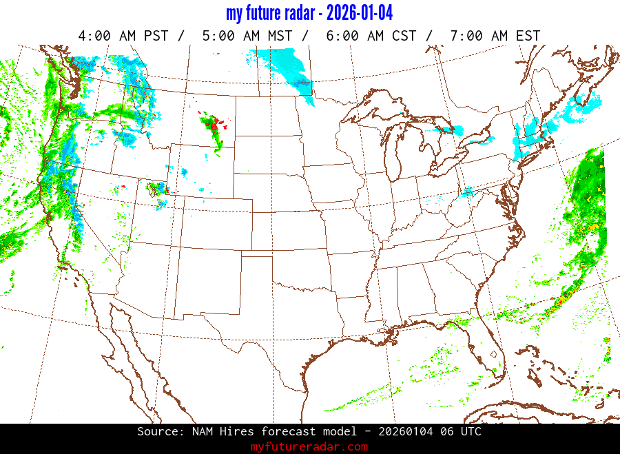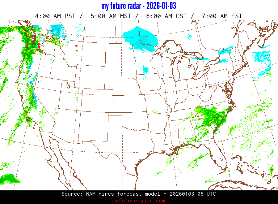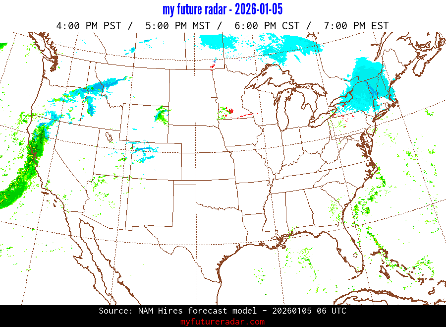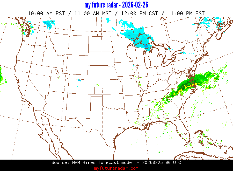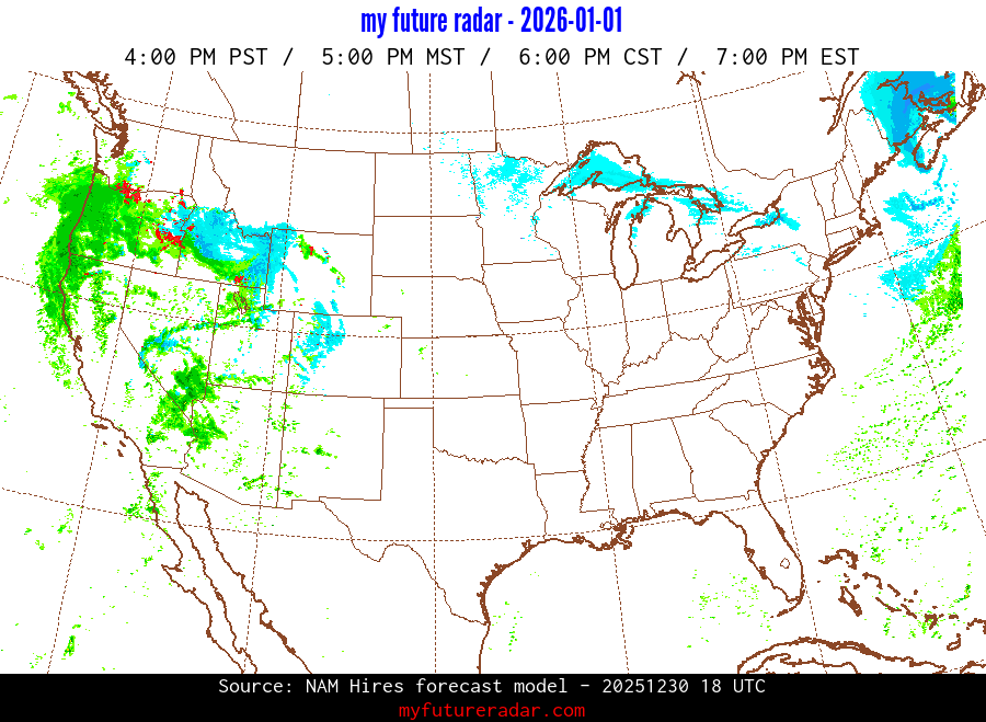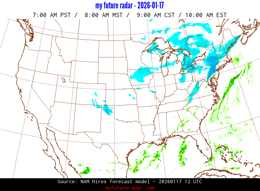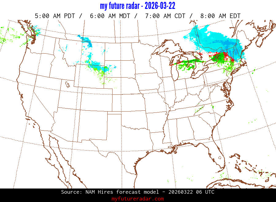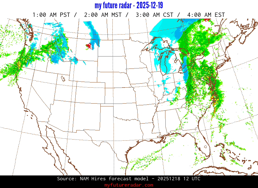 My Future Radar uses data from the Rapid Refresh and the NAM forecast models to provide simulated future radar imagery.