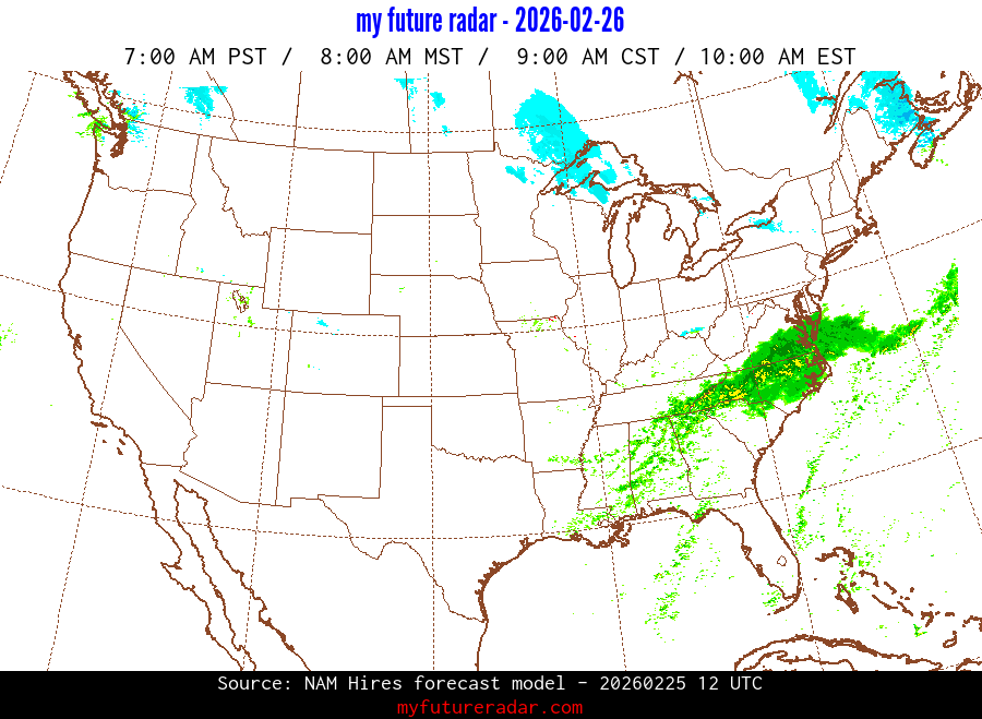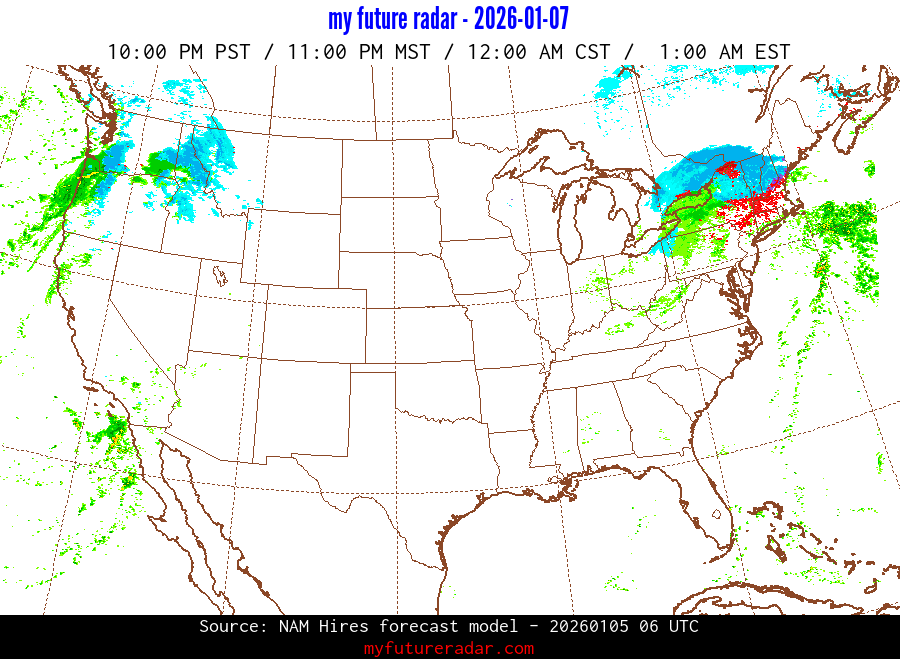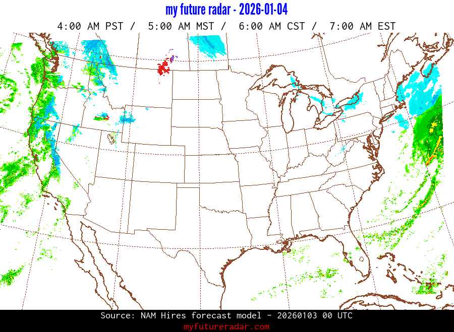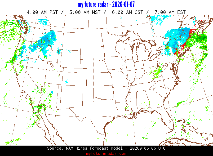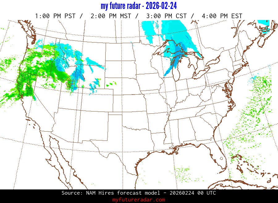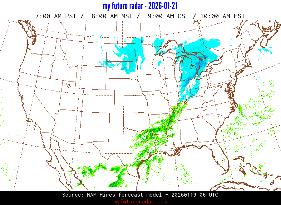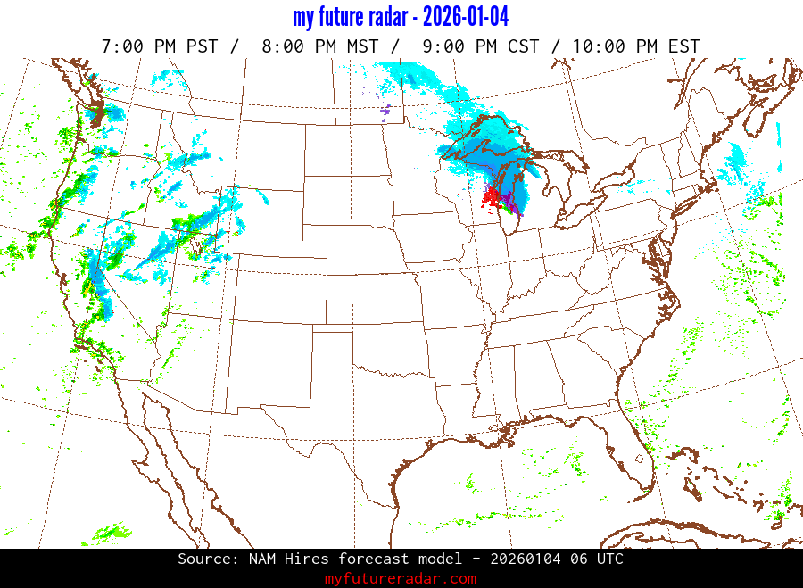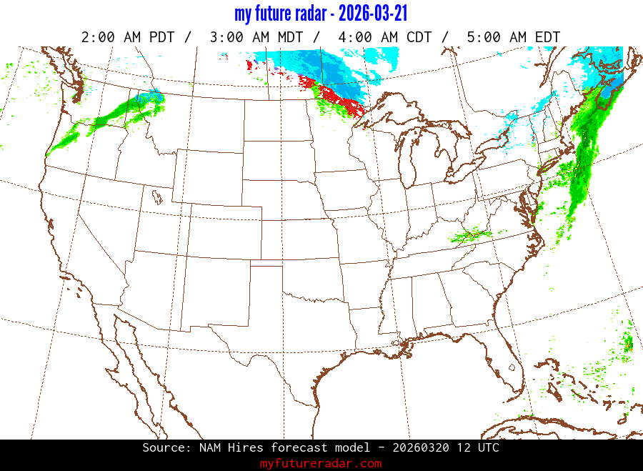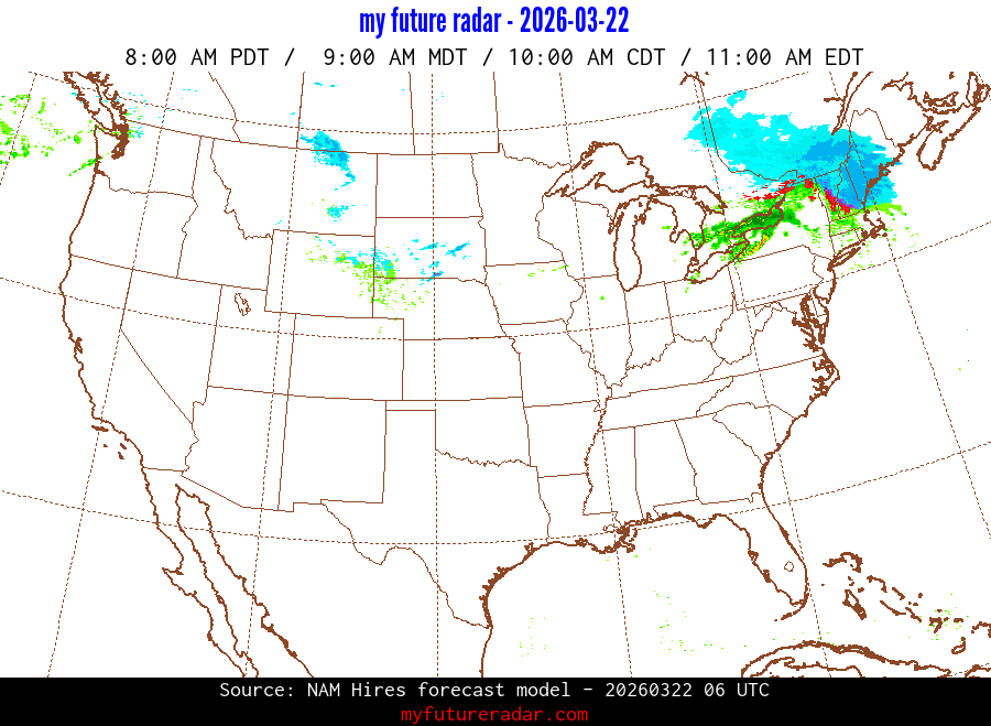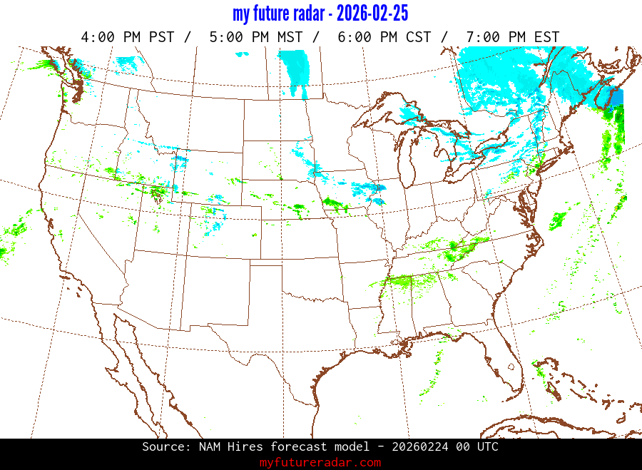 My Future Radar uses data from the Rapid Refresh and the NAM forecast models to provide simulated future radar imagery.