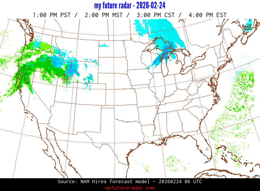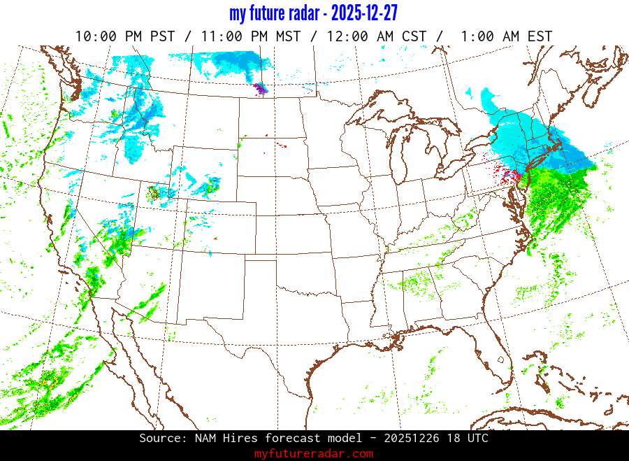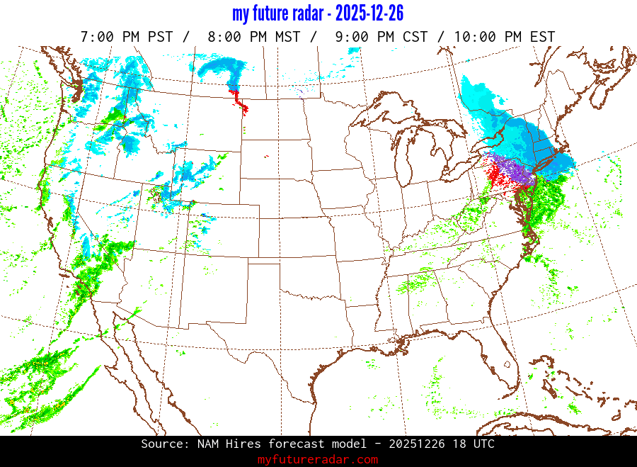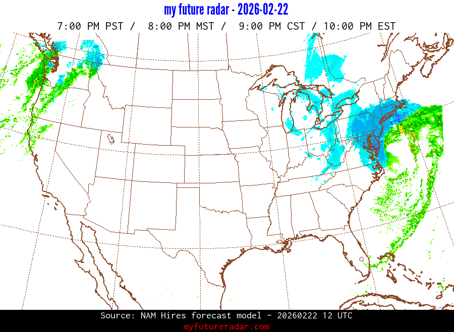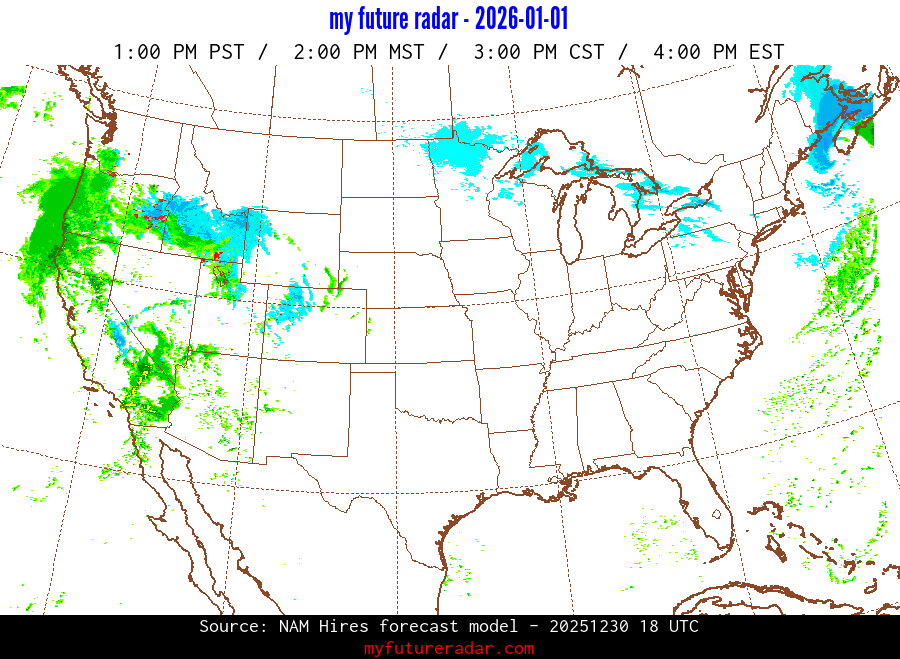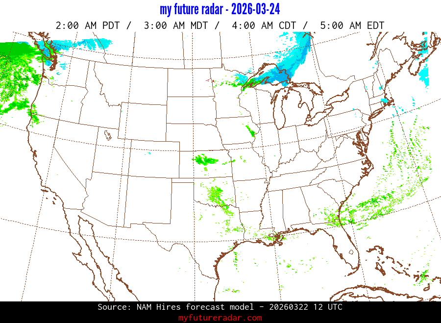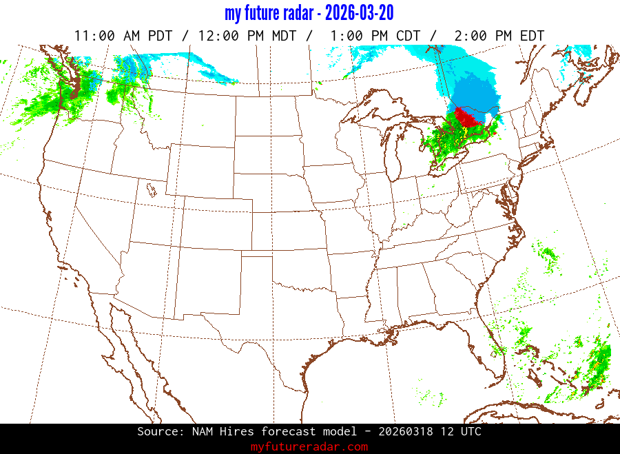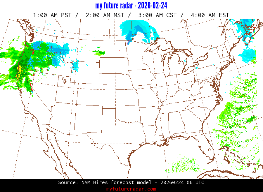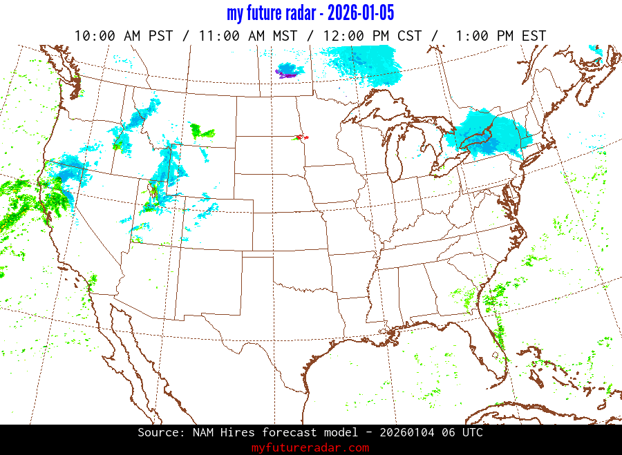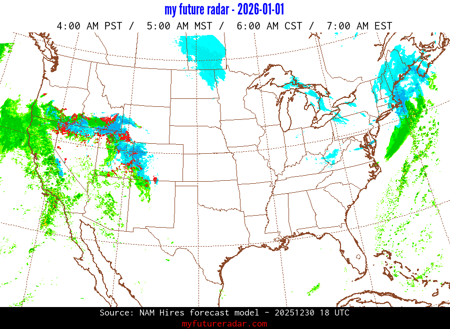 My Future Radar uses data from the Rapid Refresh and the NAM forecast models to provide simulated future radar imagery.