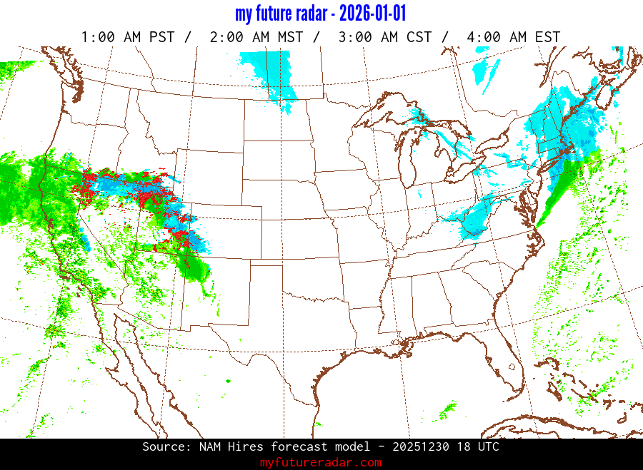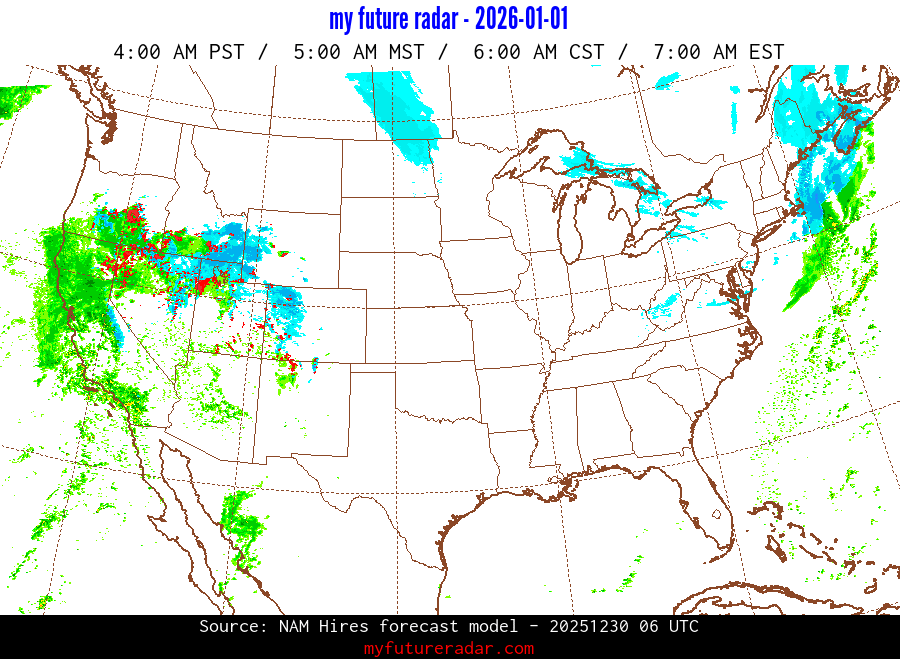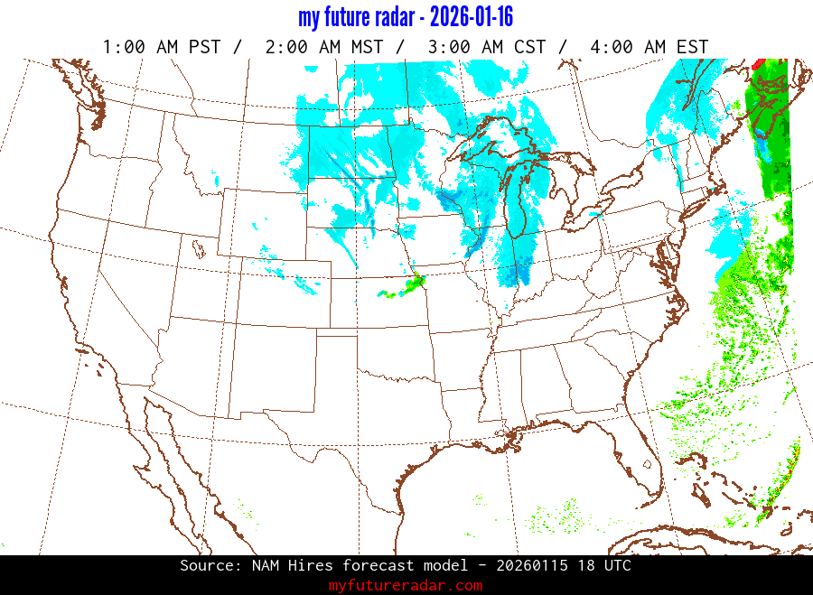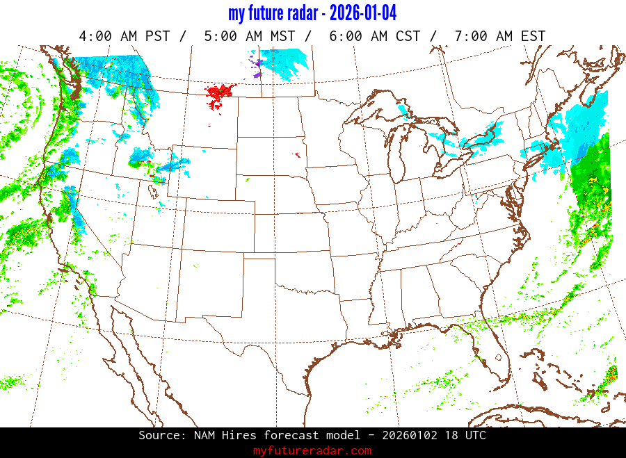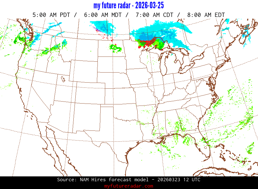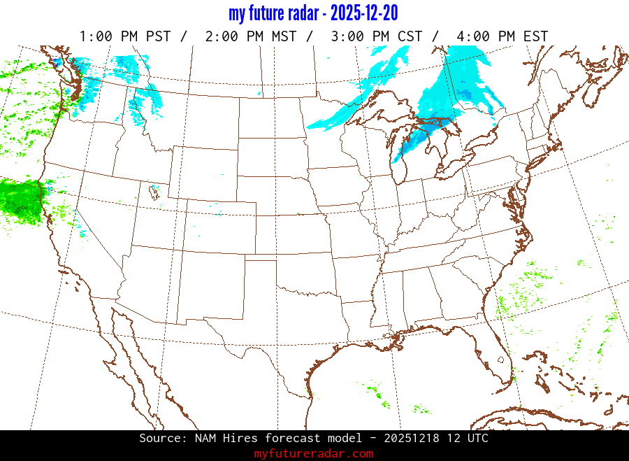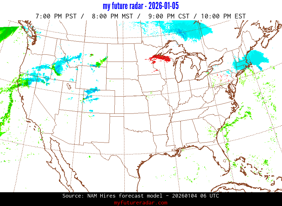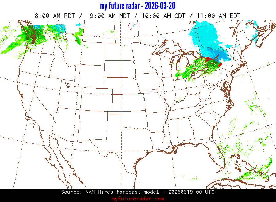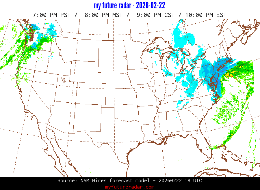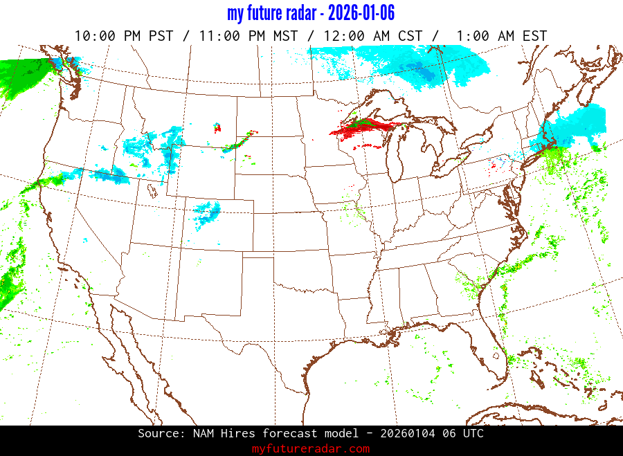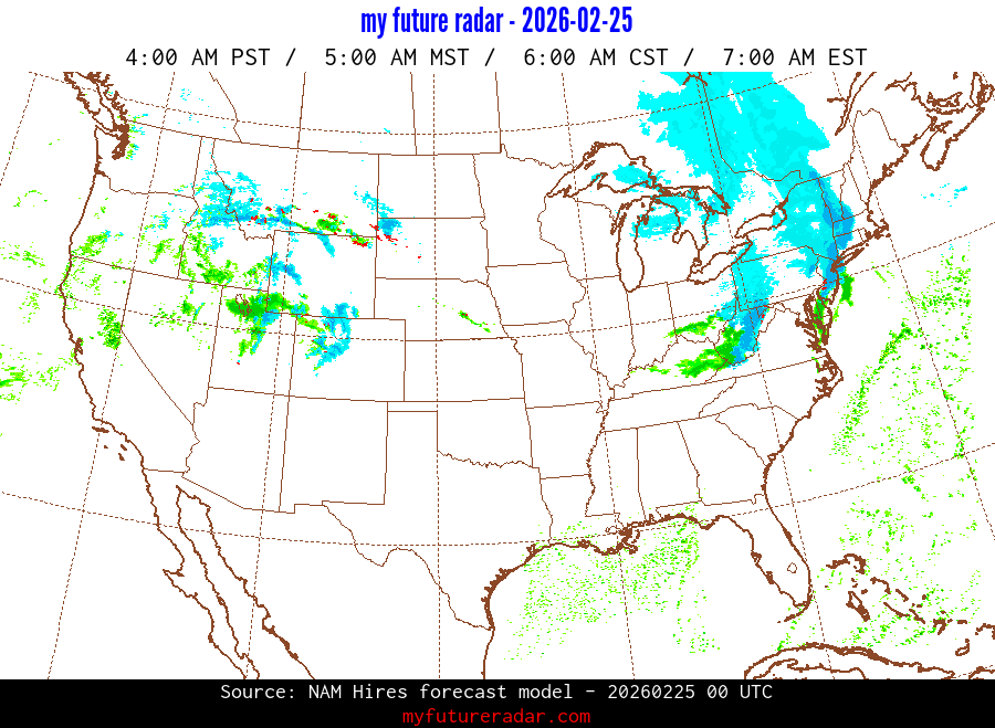 My Future Radar uses data from the Rapid Refresh and the NAM forecast models to provide simulated future radar imagery.