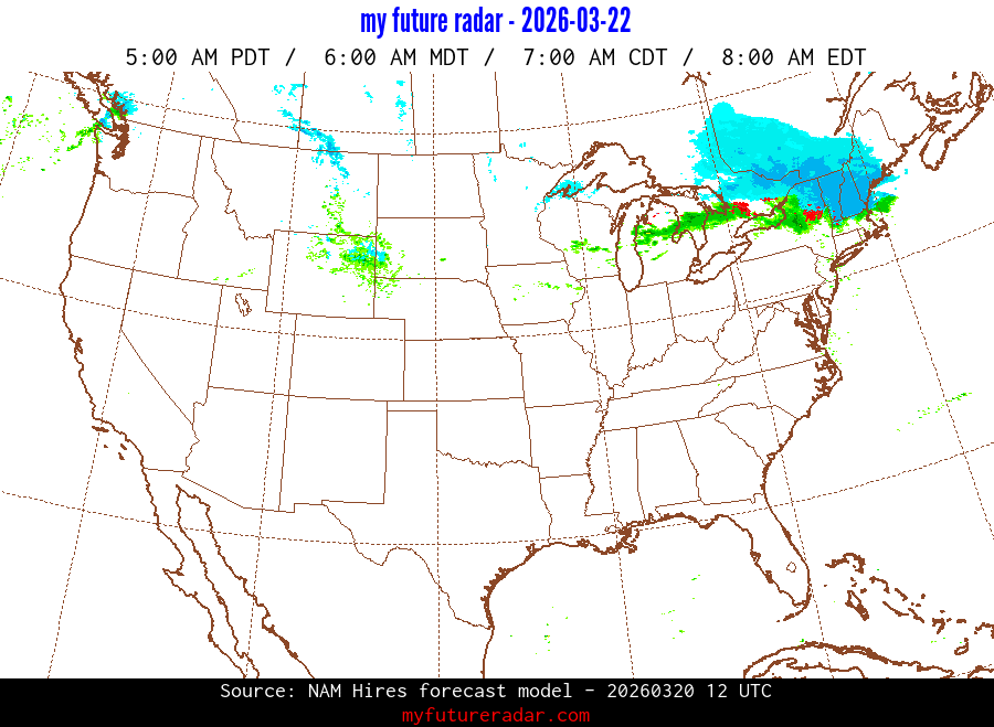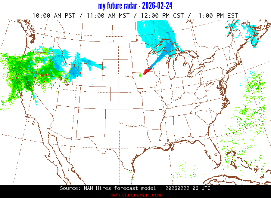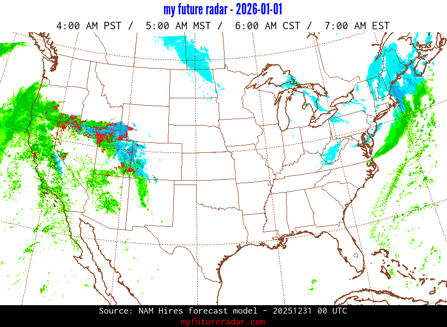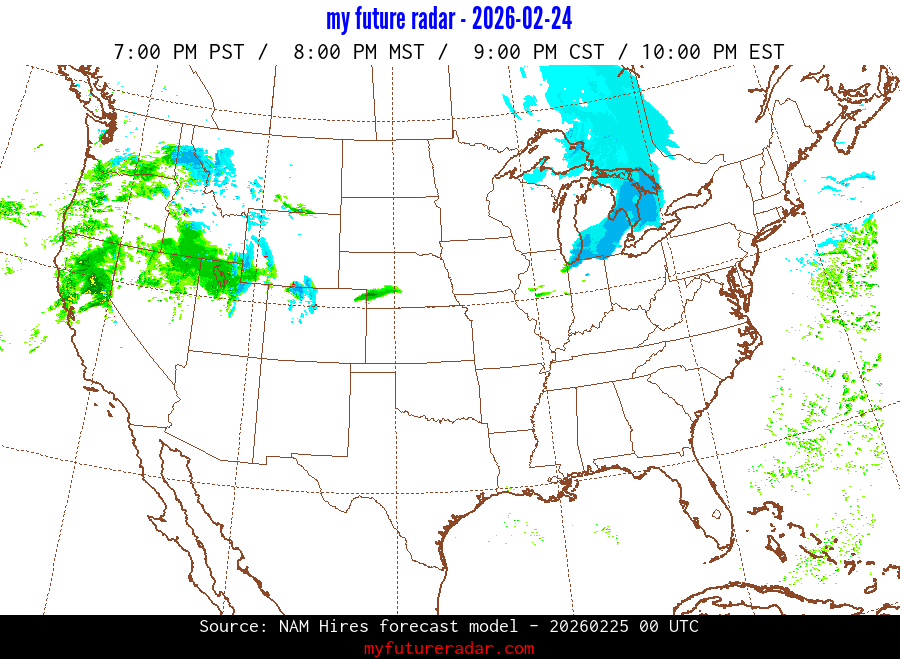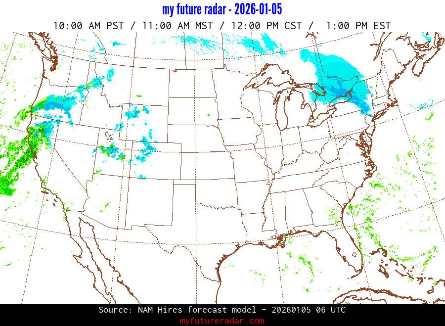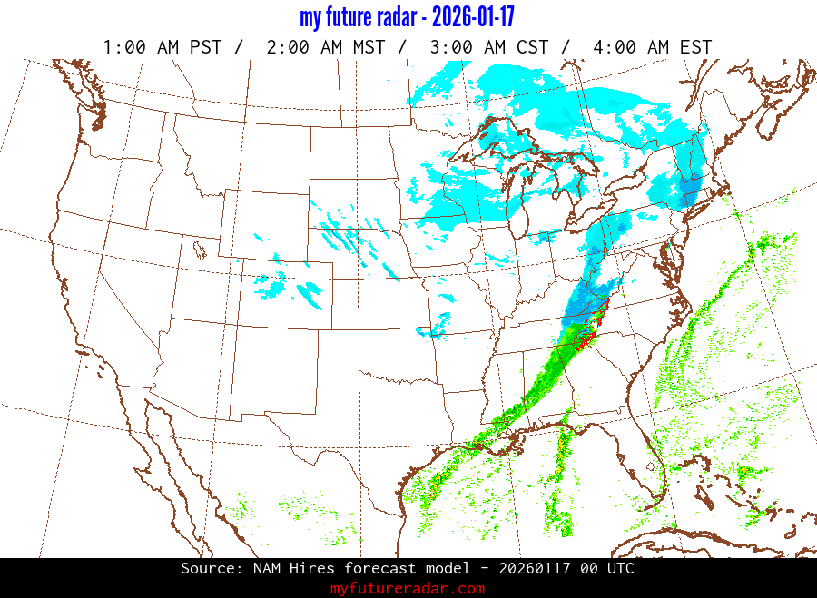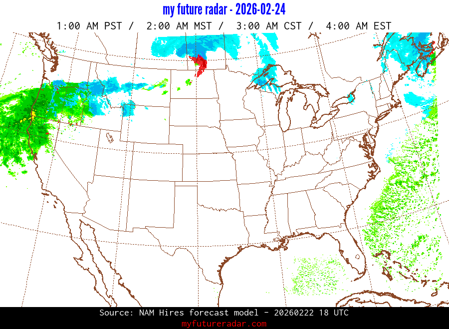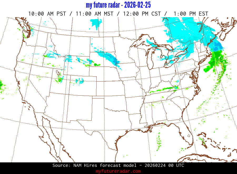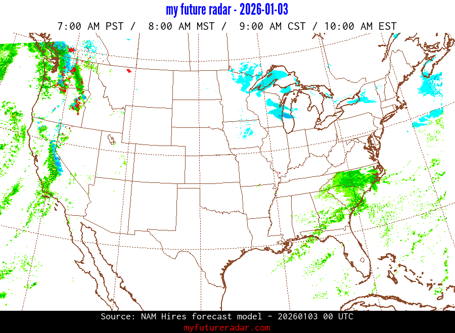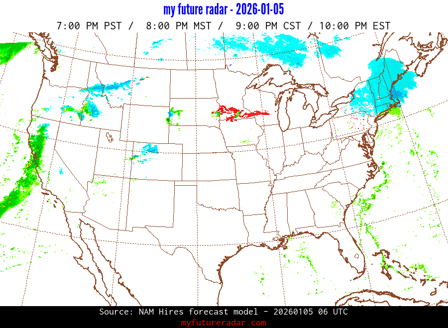 My Future Radar uses data from the Rapid Refresh and the NAM forecast models to provide simulated future radar imagery.