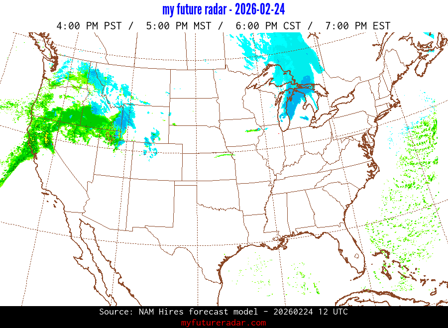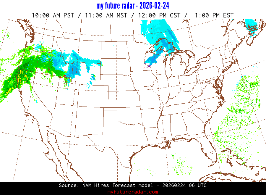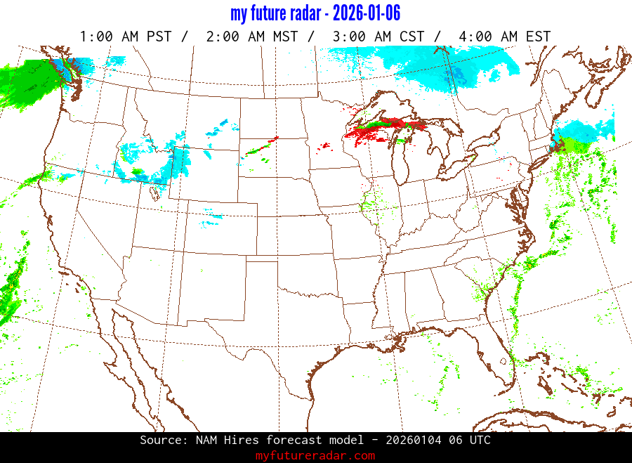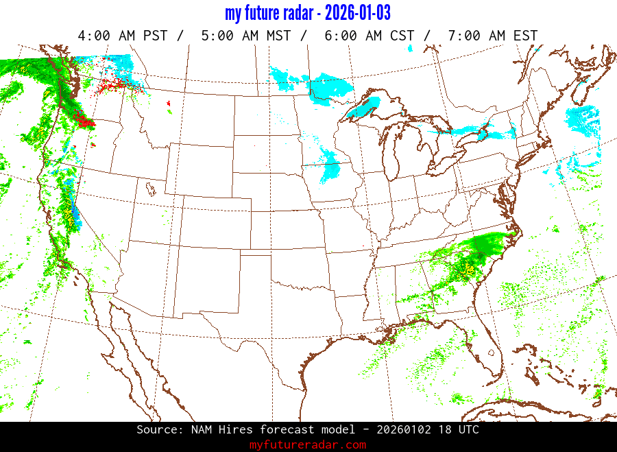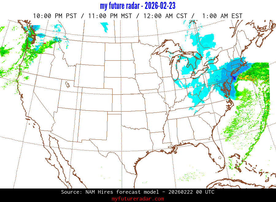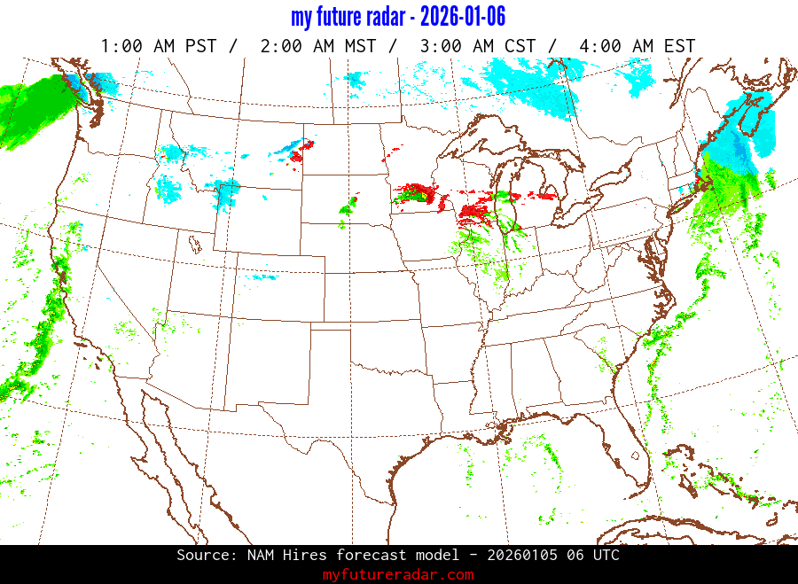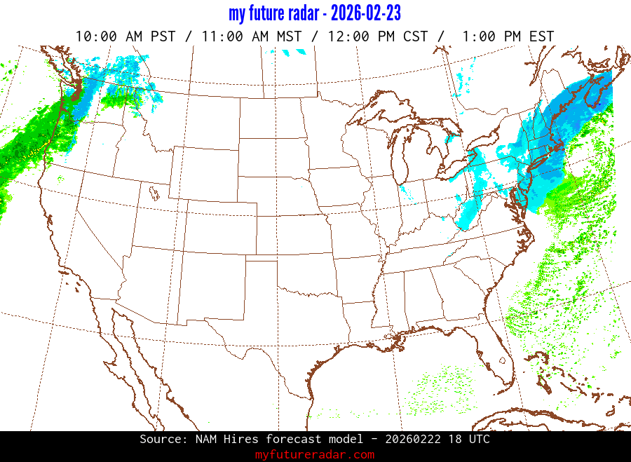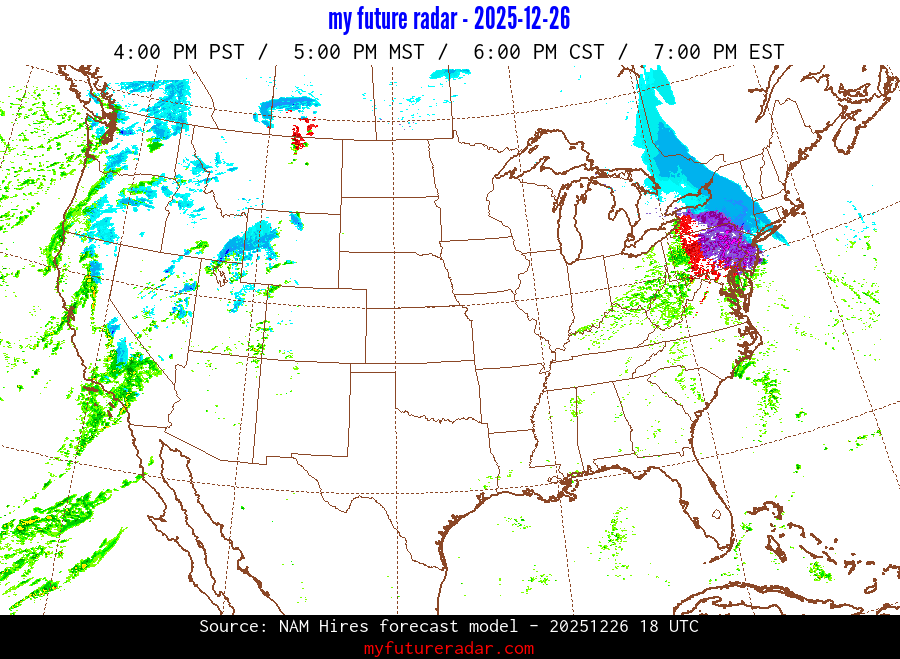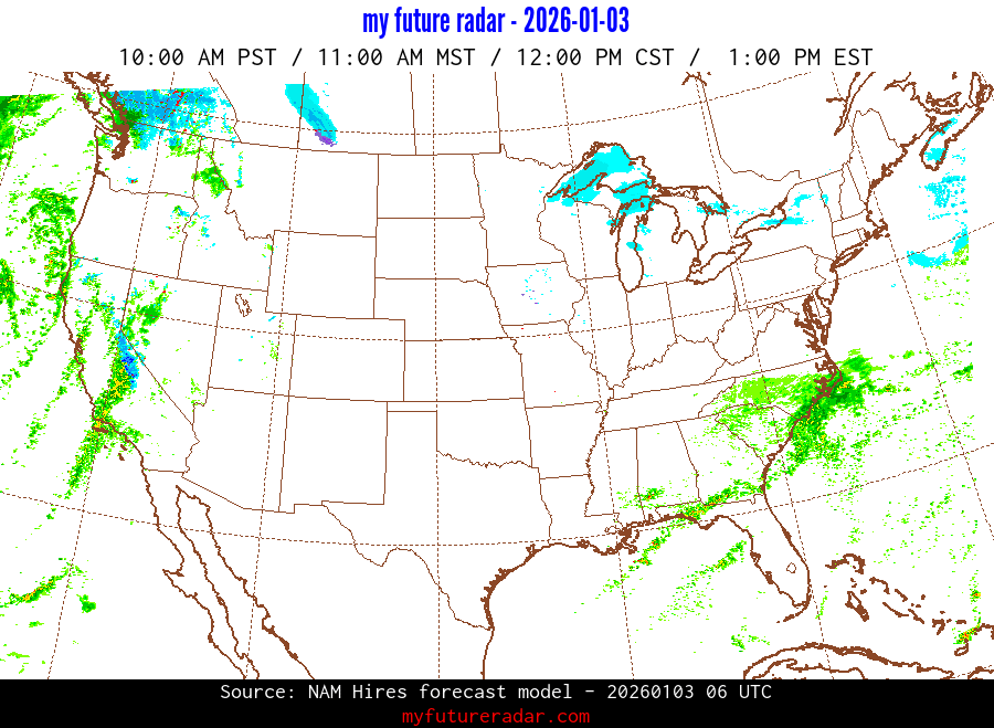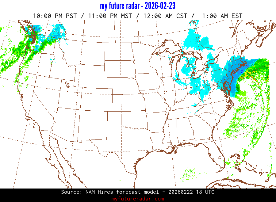 My Future Radar uses data from the Rapid Refresh and the NAM forecast models to provide simulated future radar imagery.