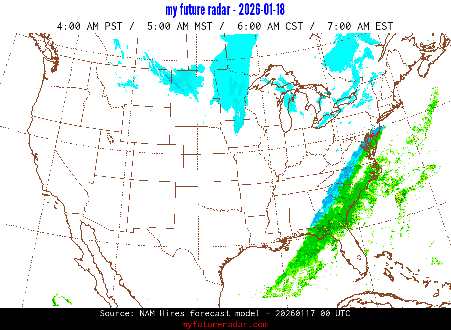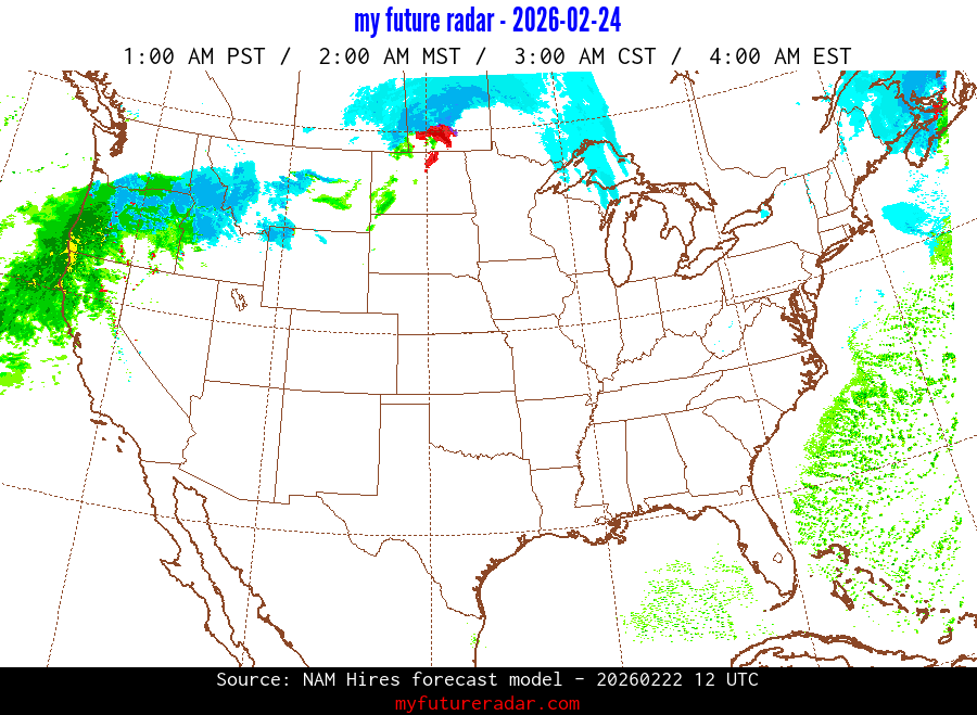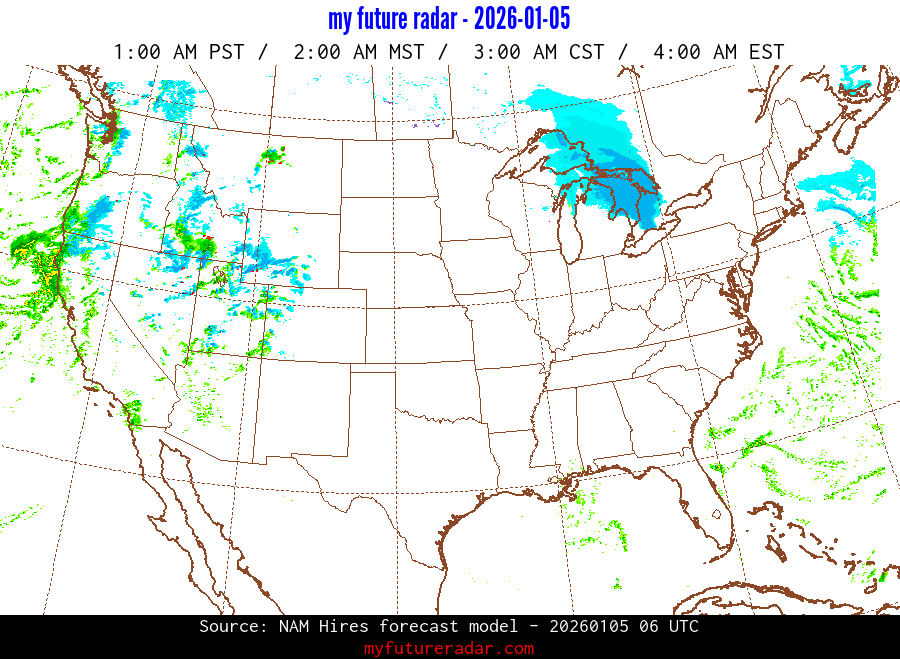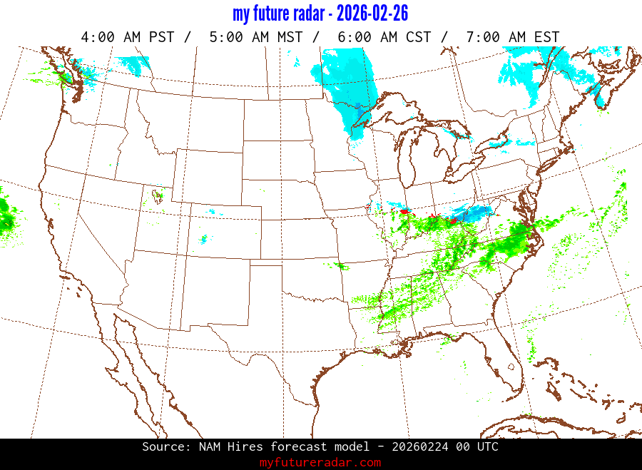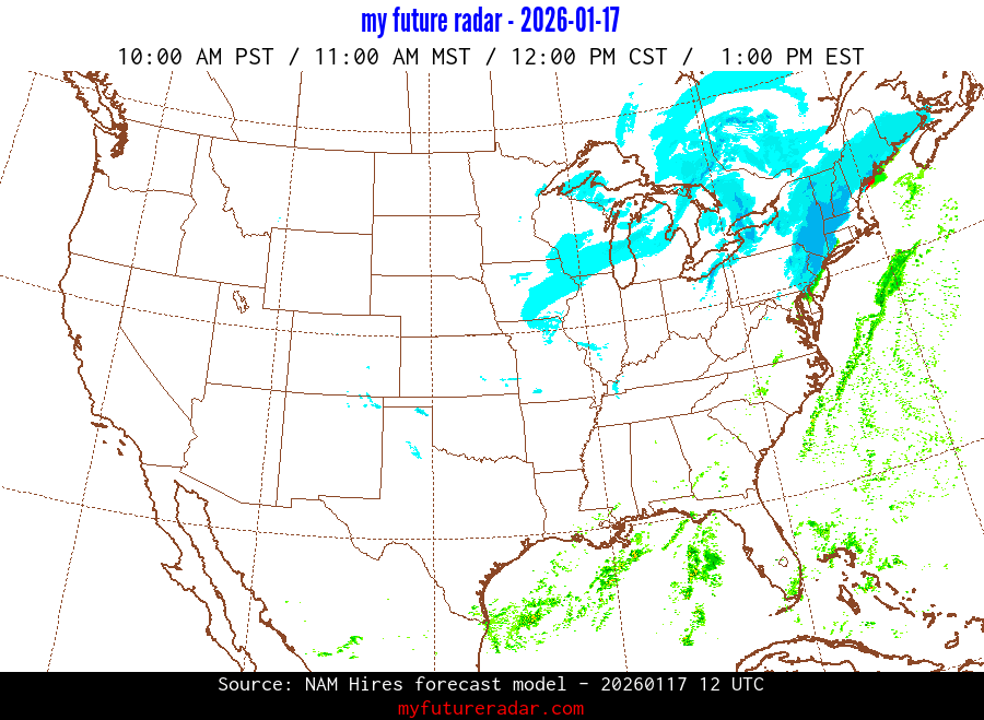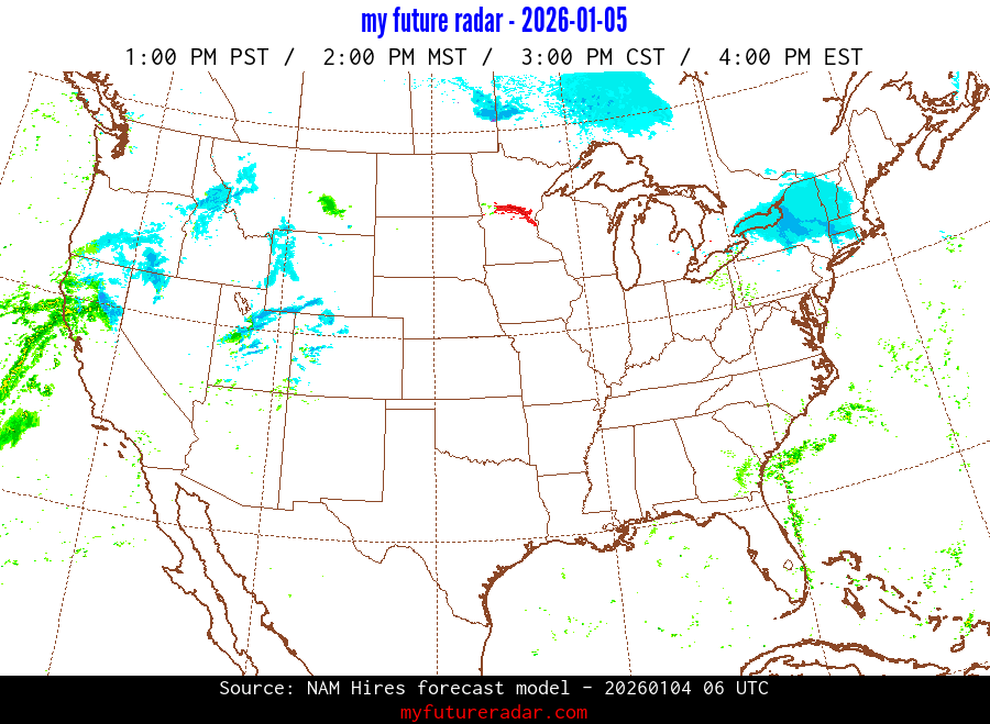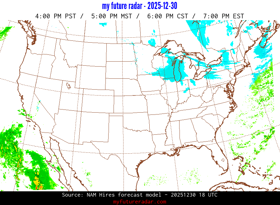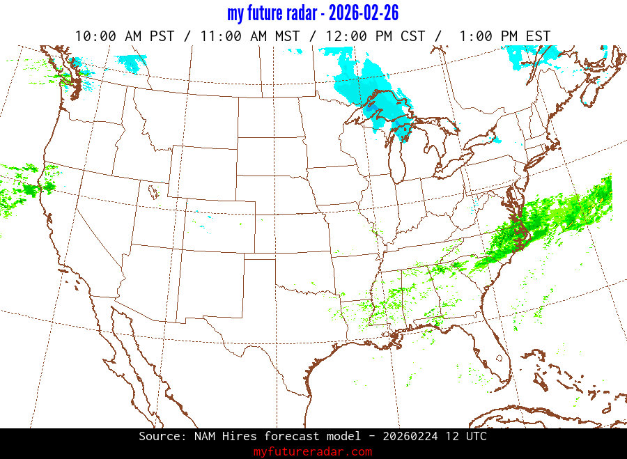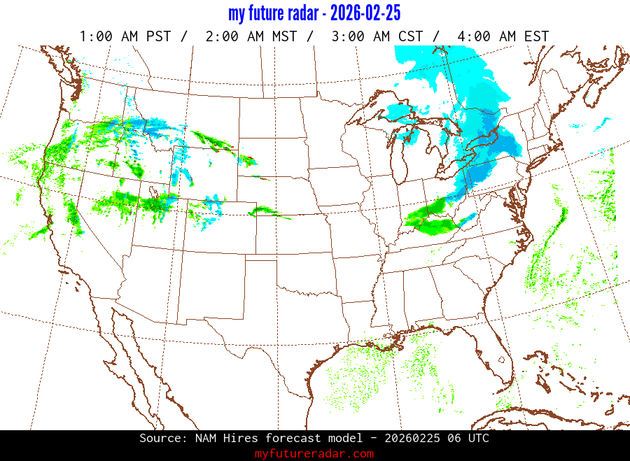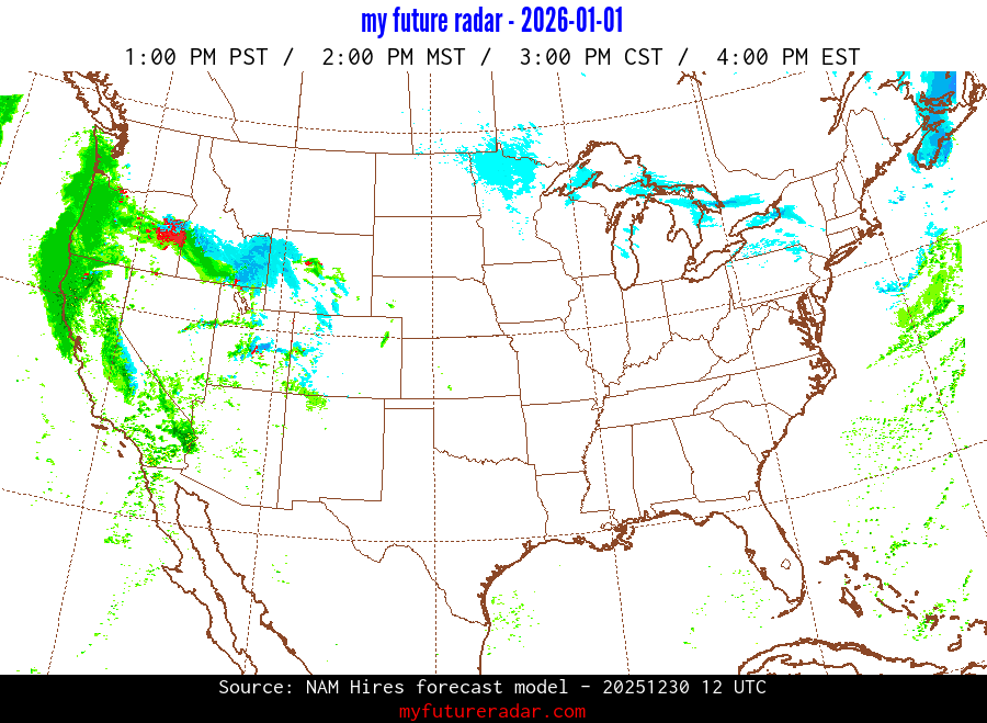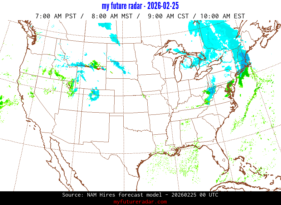 My Future Radar uses data from the Rapid Refresh and the NAM forecast models to provide simulated future radar imagery.