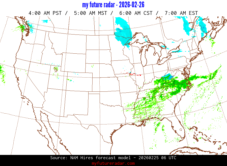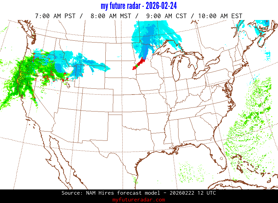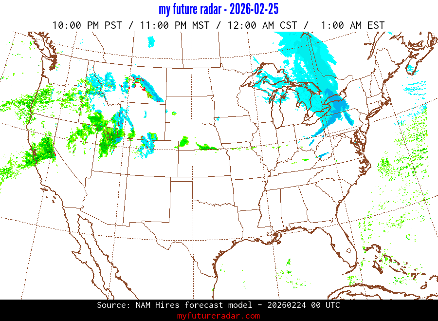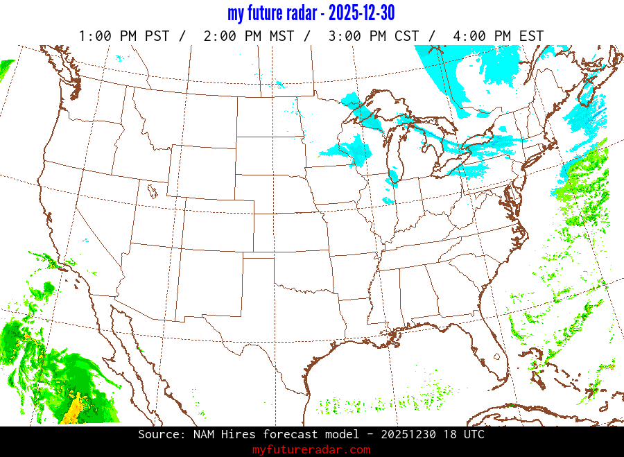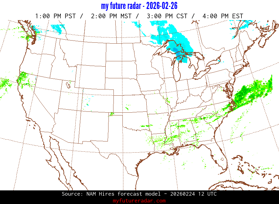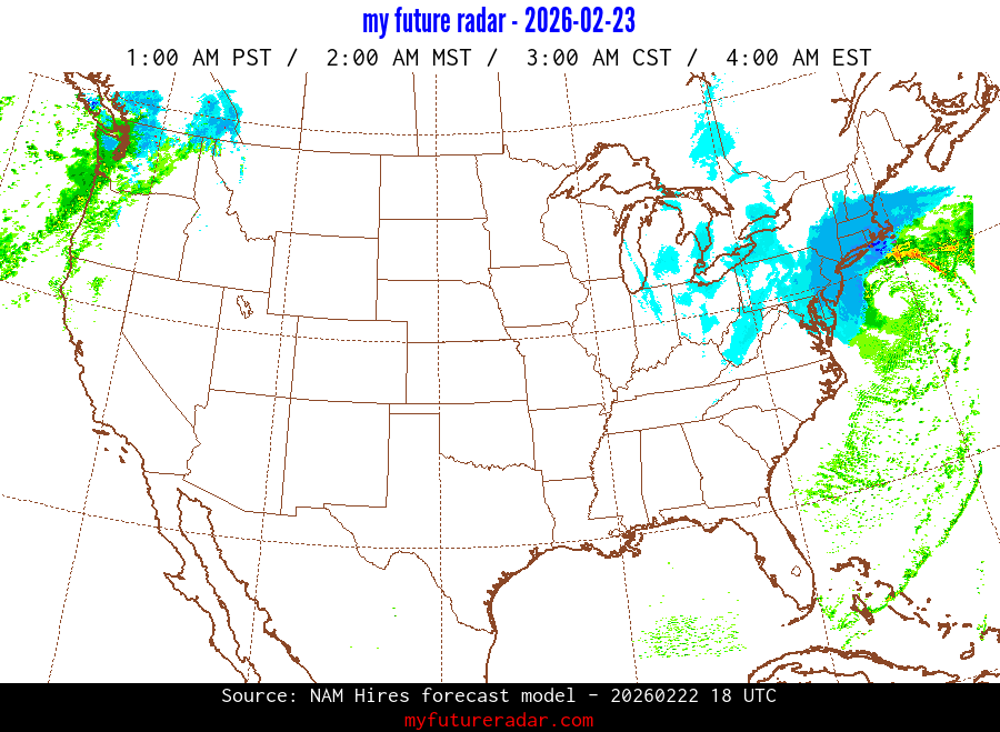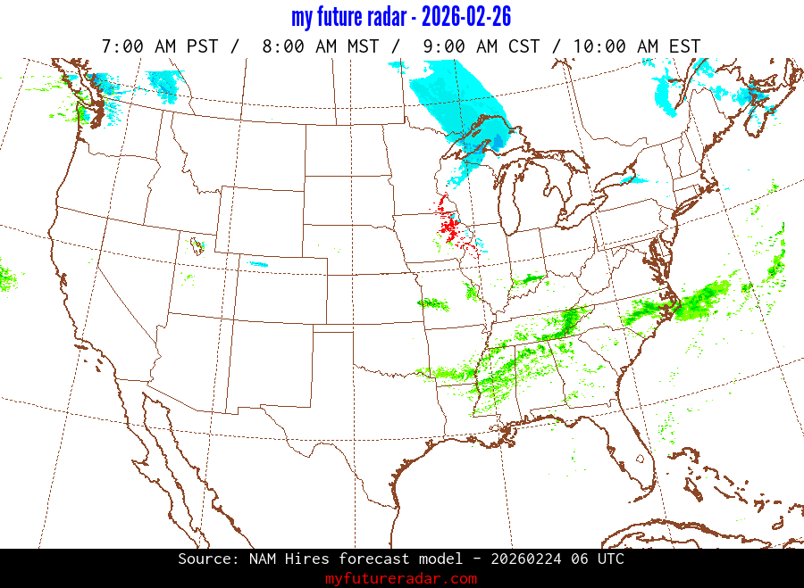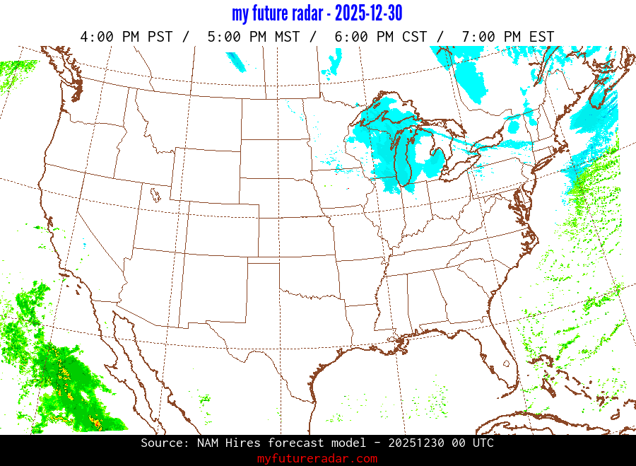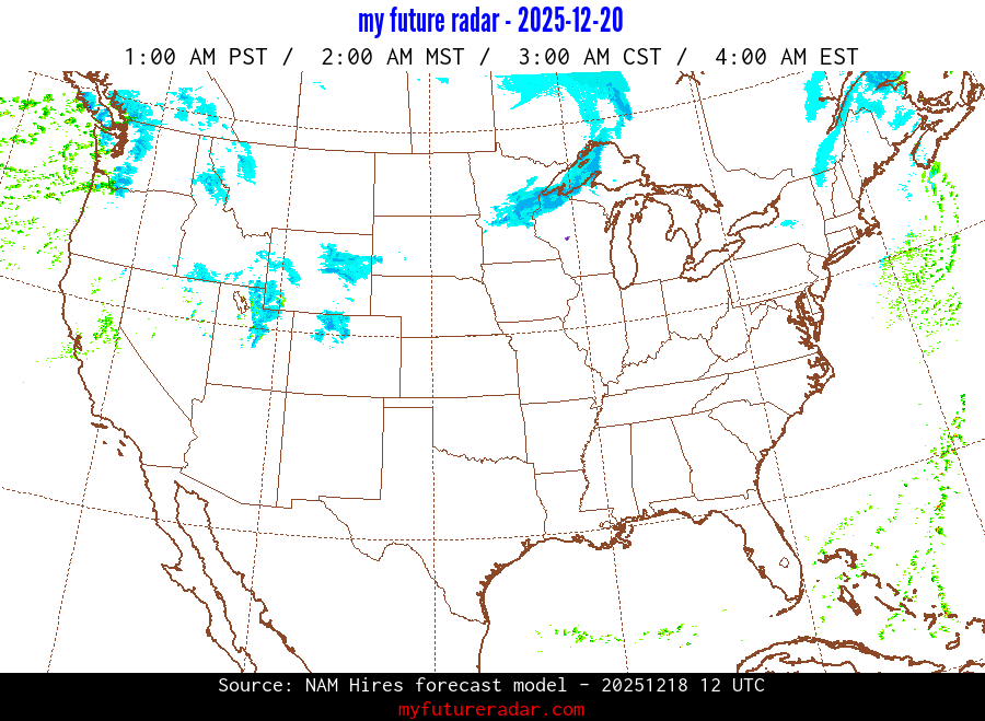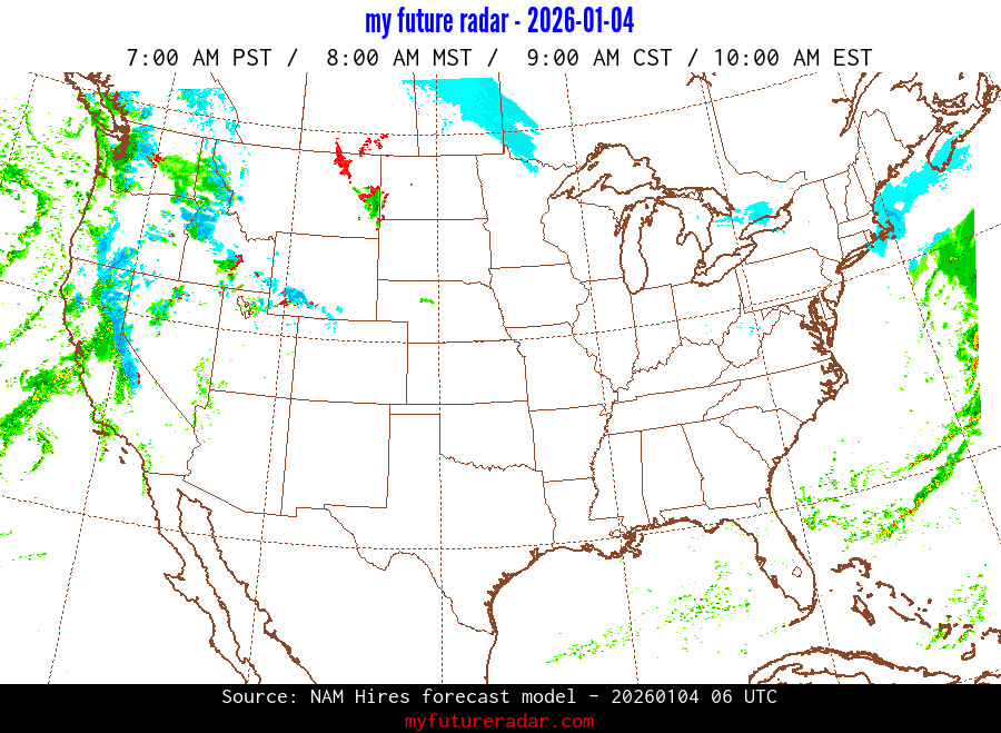 My Future Radar uses data from the Rapid Refresh and the NAM forecast models to provide simulated future radar imagery.