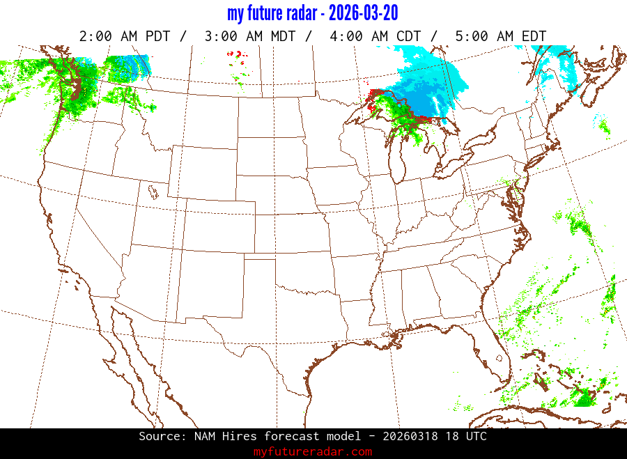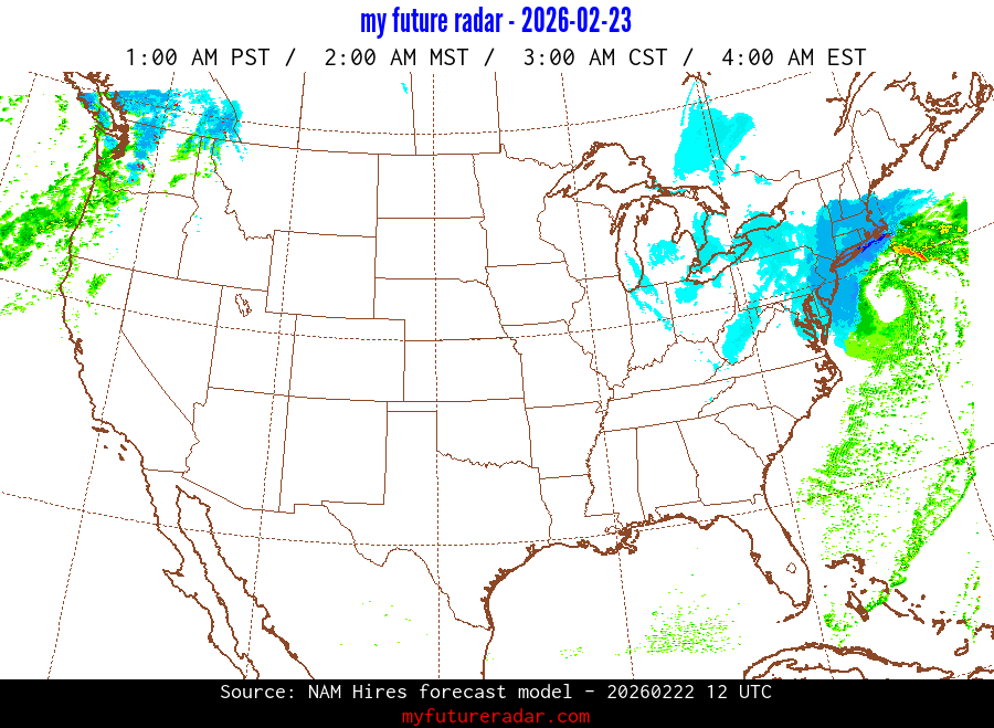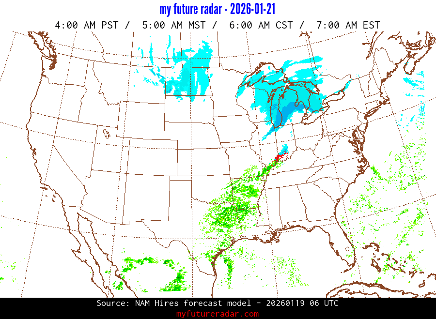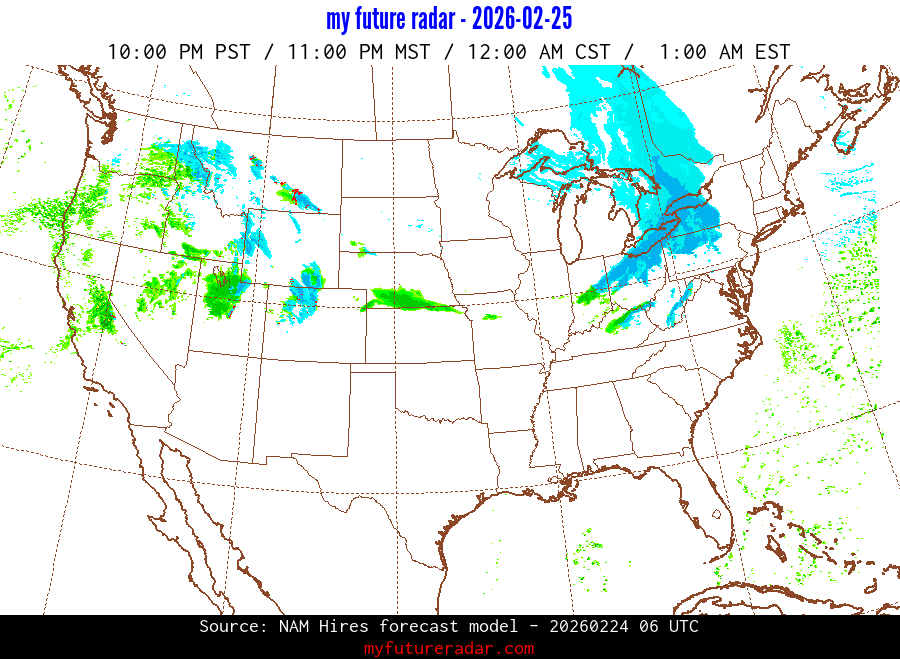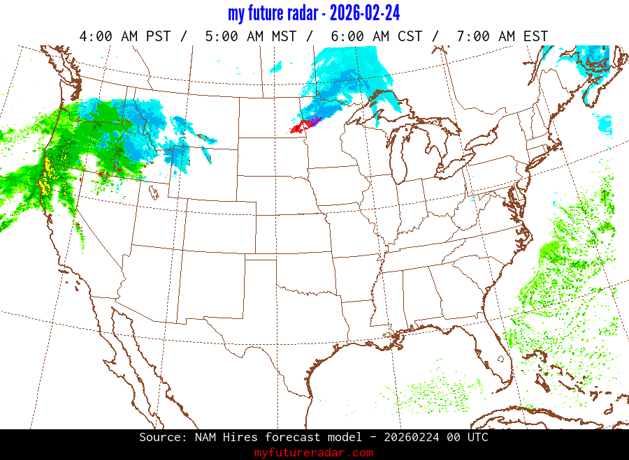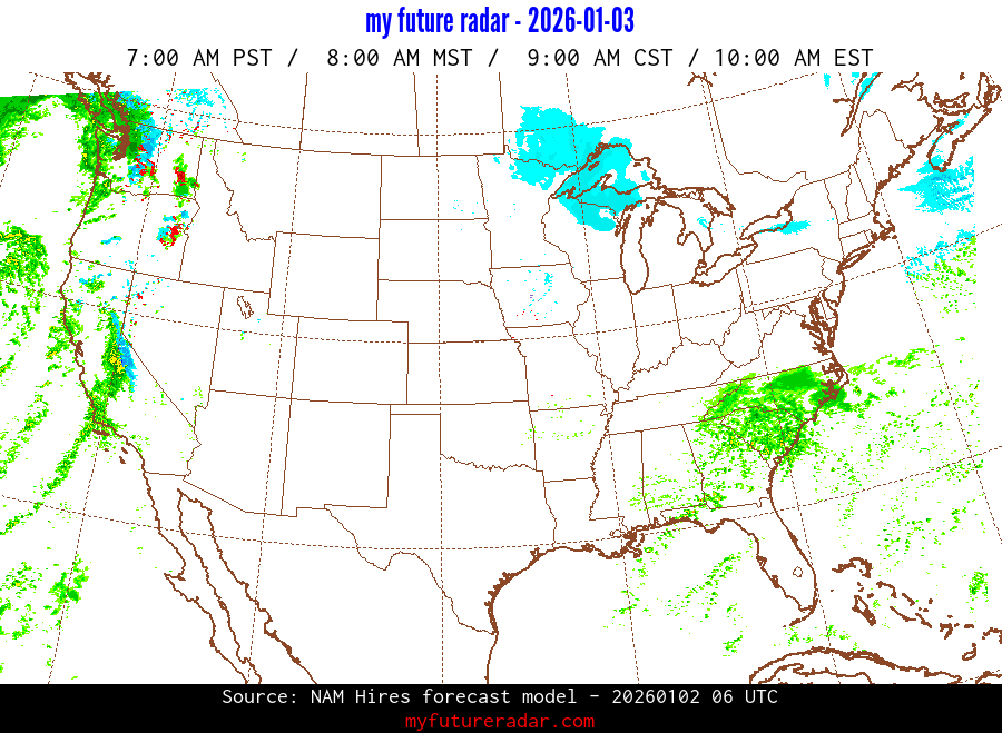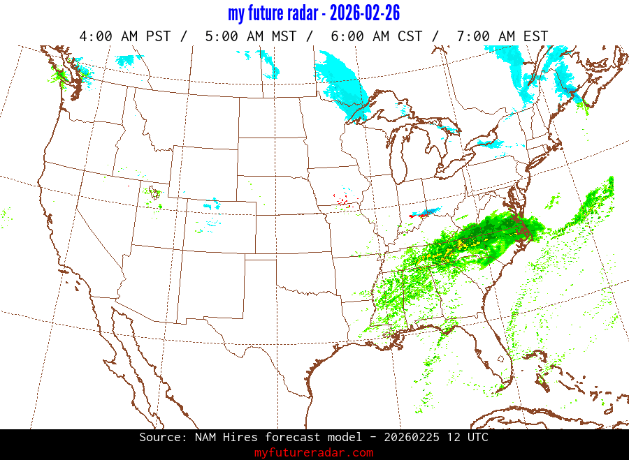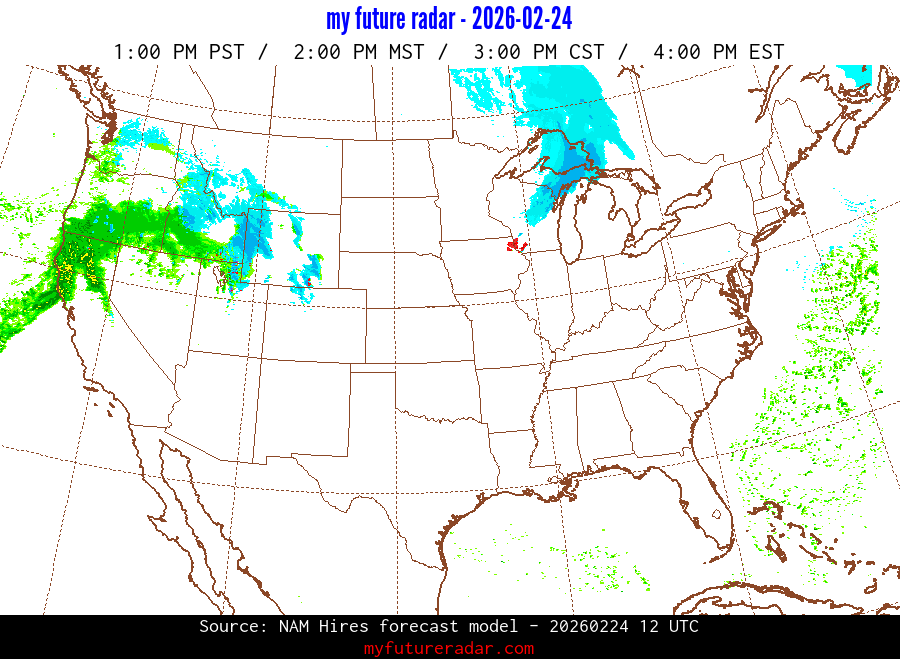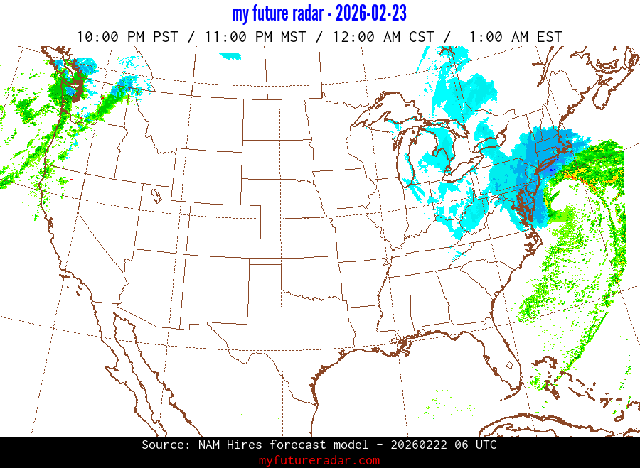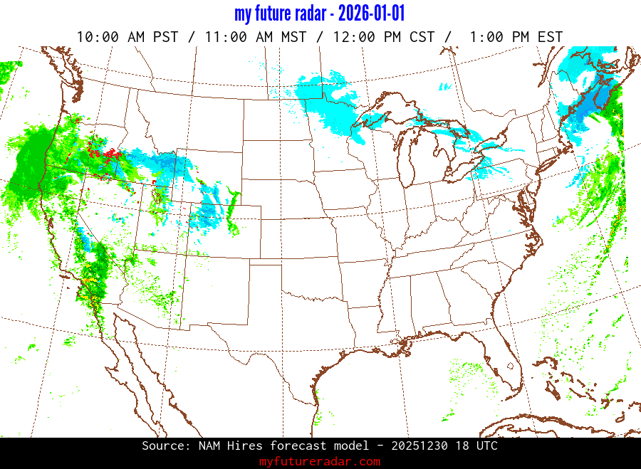My Future Radar uses data from the Rapid Refresh and the NAM forecast models to provide simulated future radar imagery.