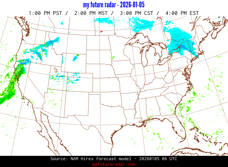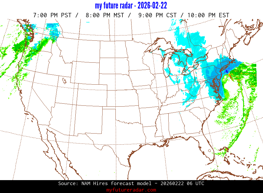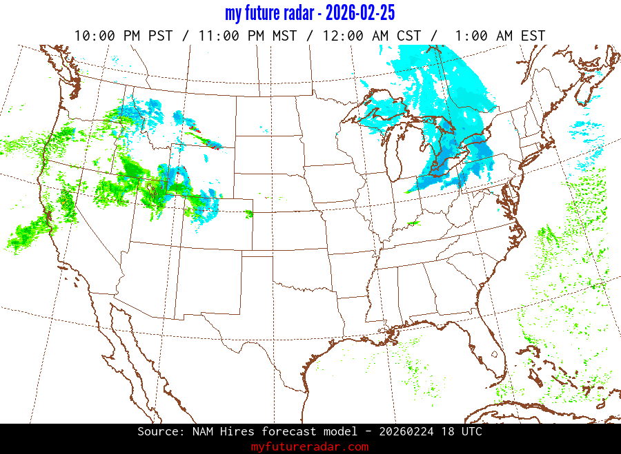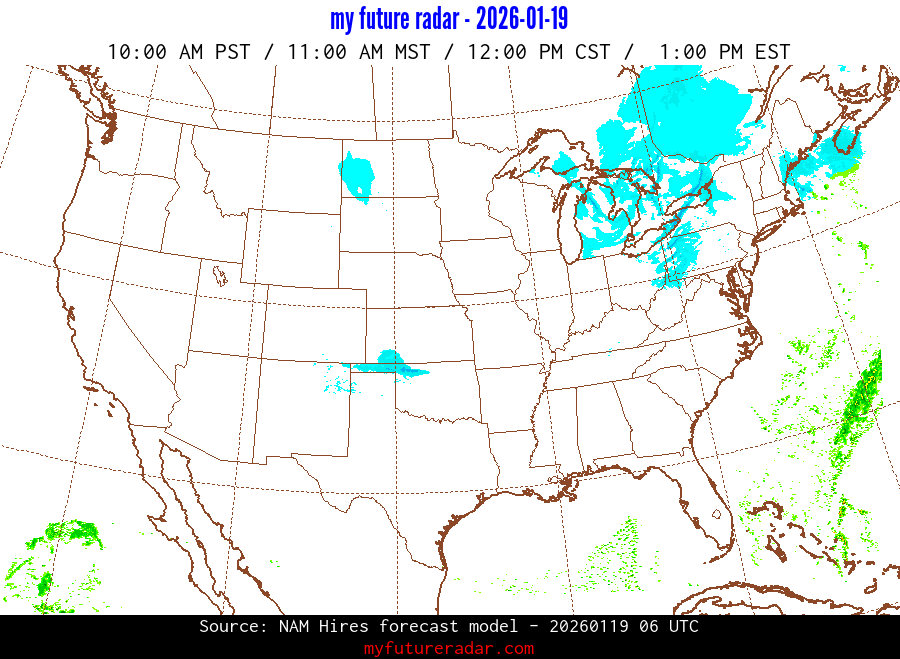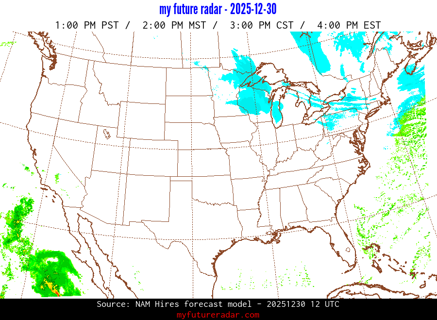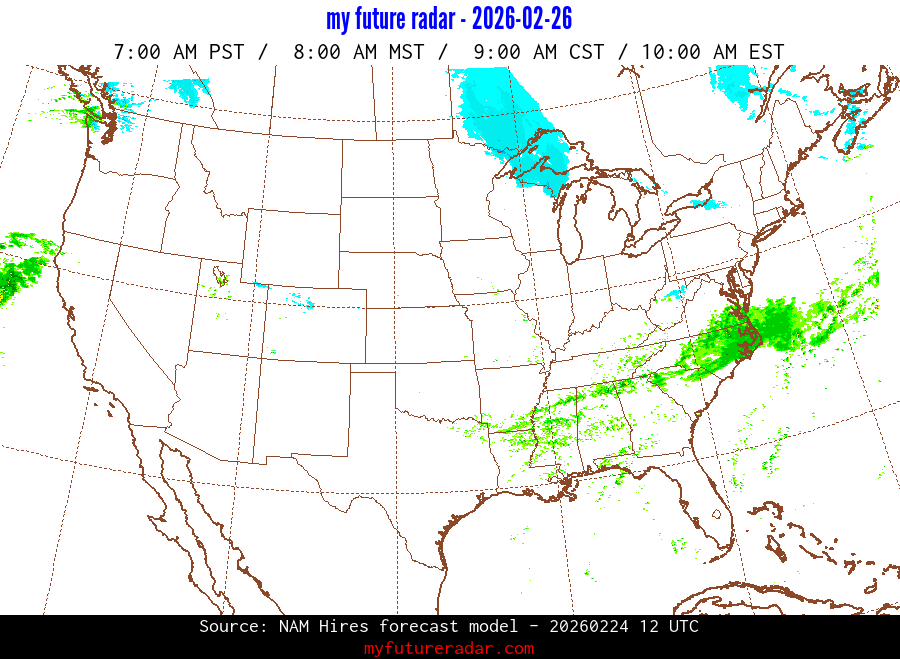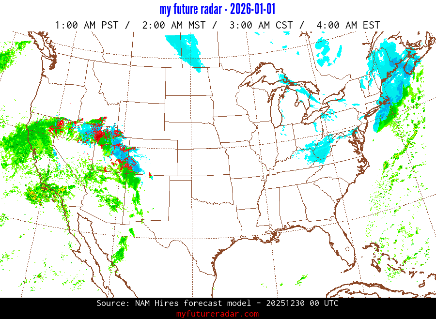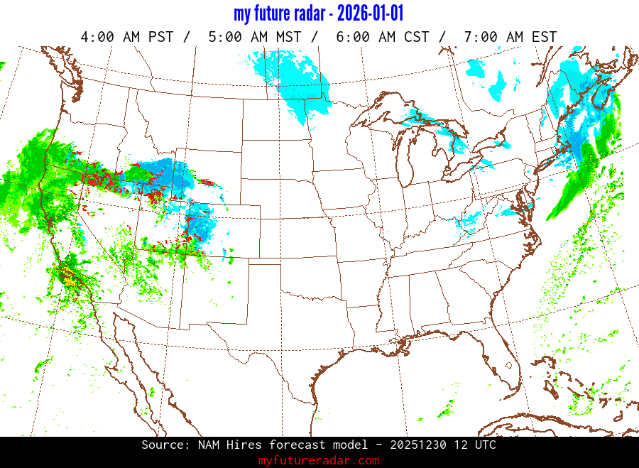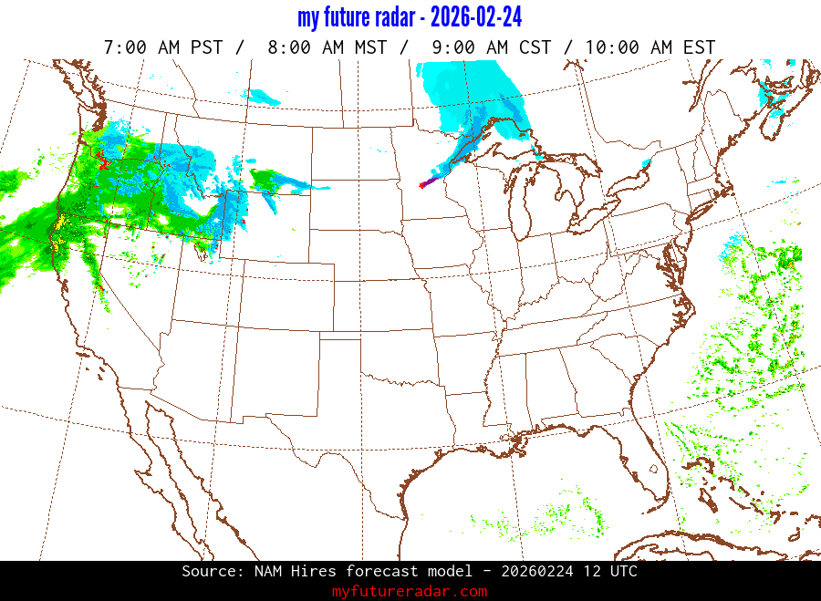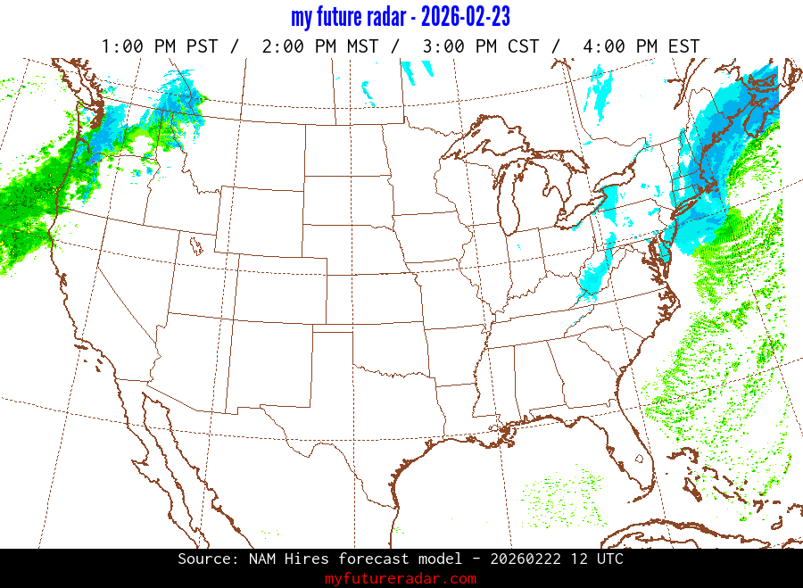 My Future Radar uses data from the Rapid Refresh and the NAM forecast models to provide simulated future radar imagery.