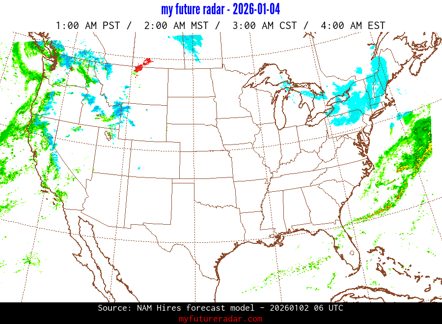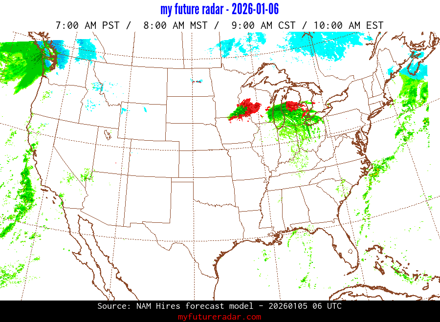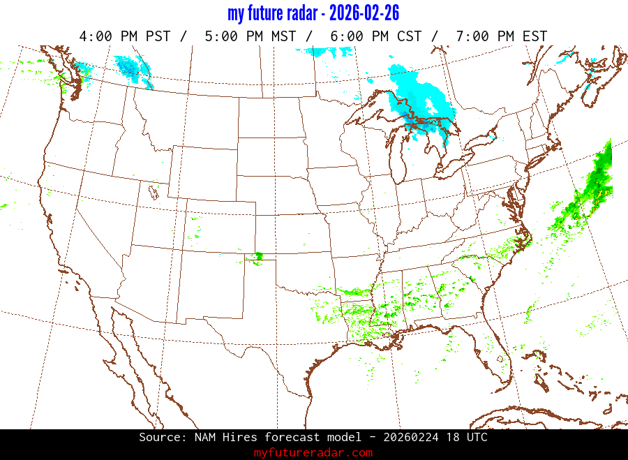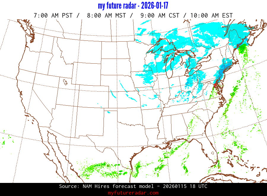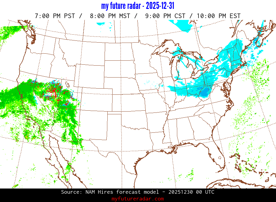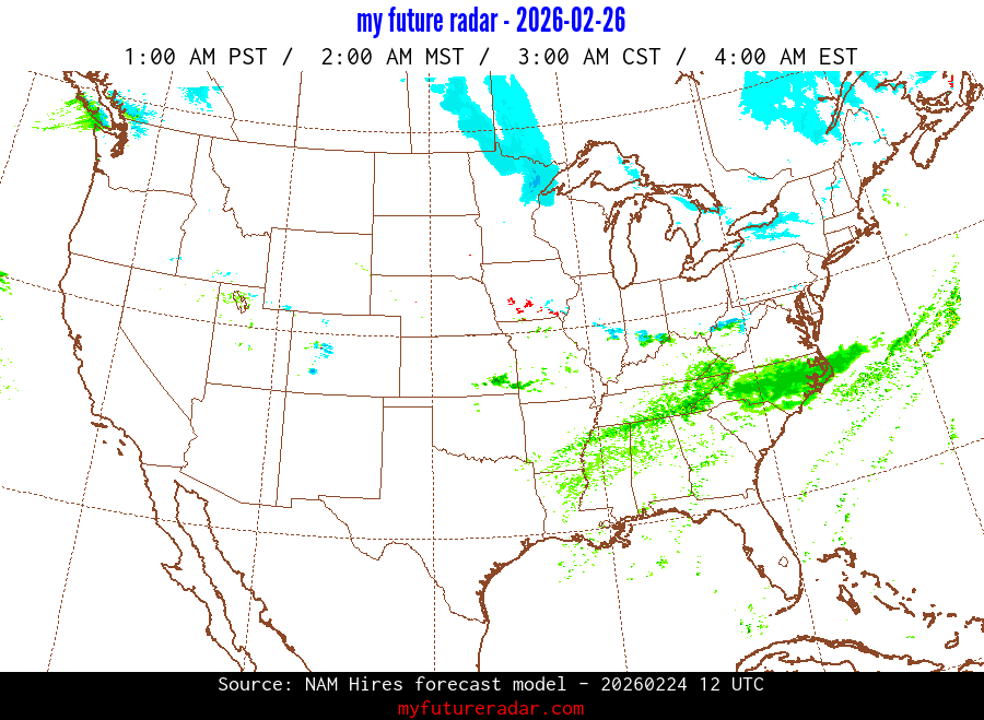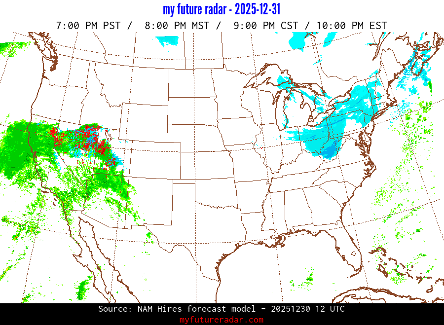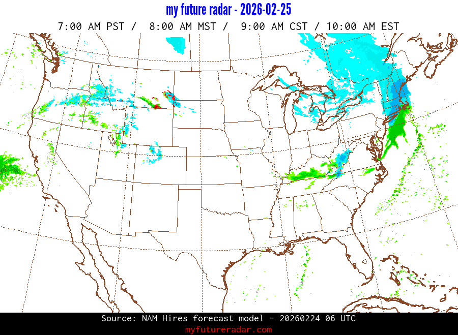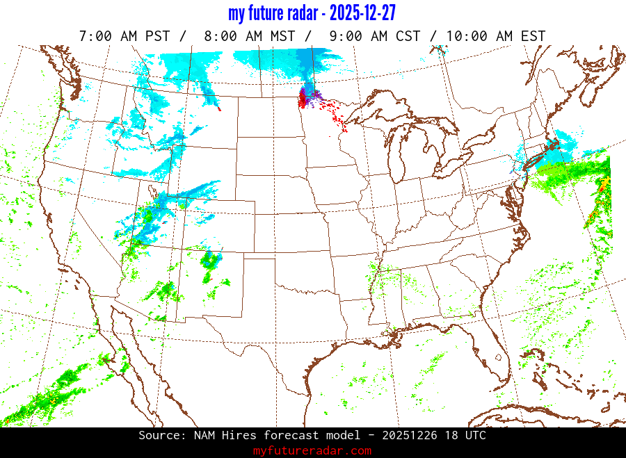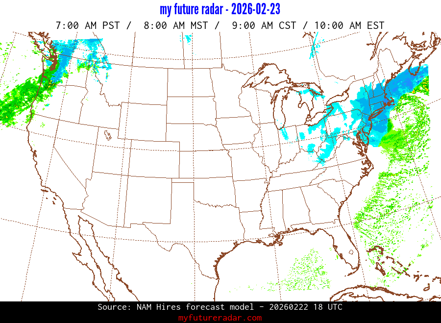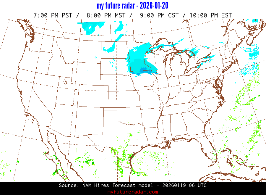 My Future Radar uses data from the Rapid Refresh and the NAM forecast models to provide simulated future radar imagery.