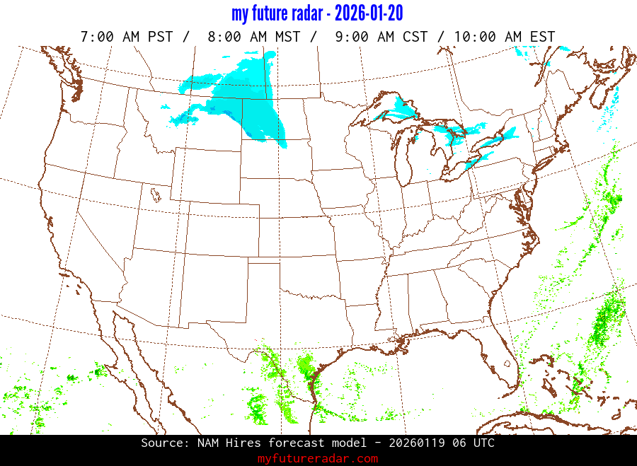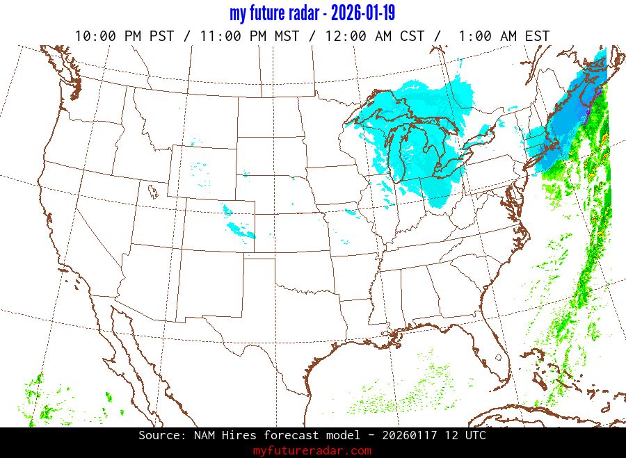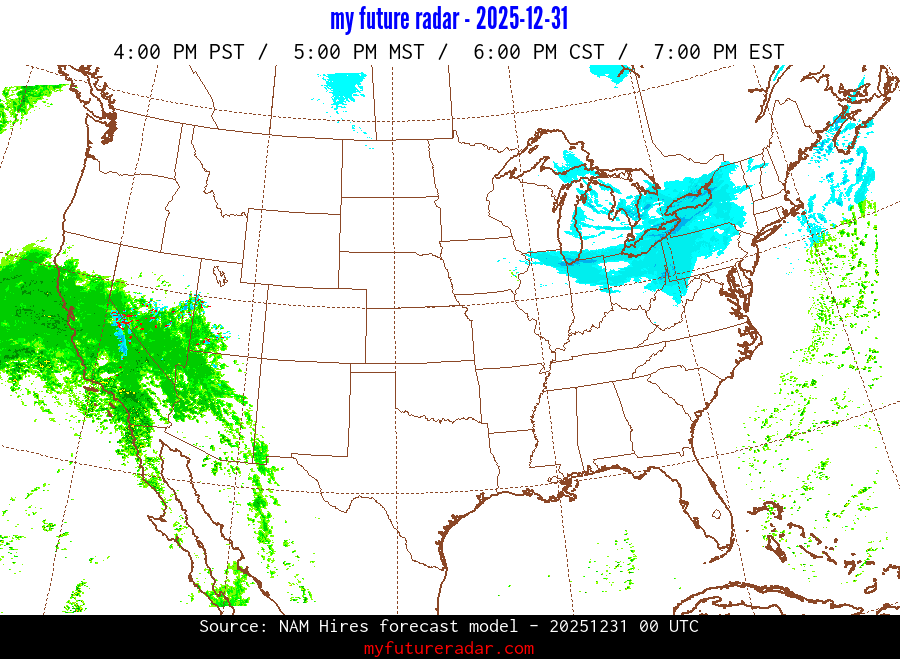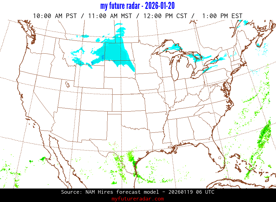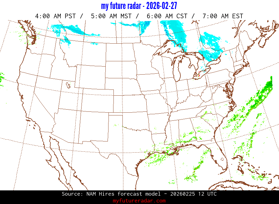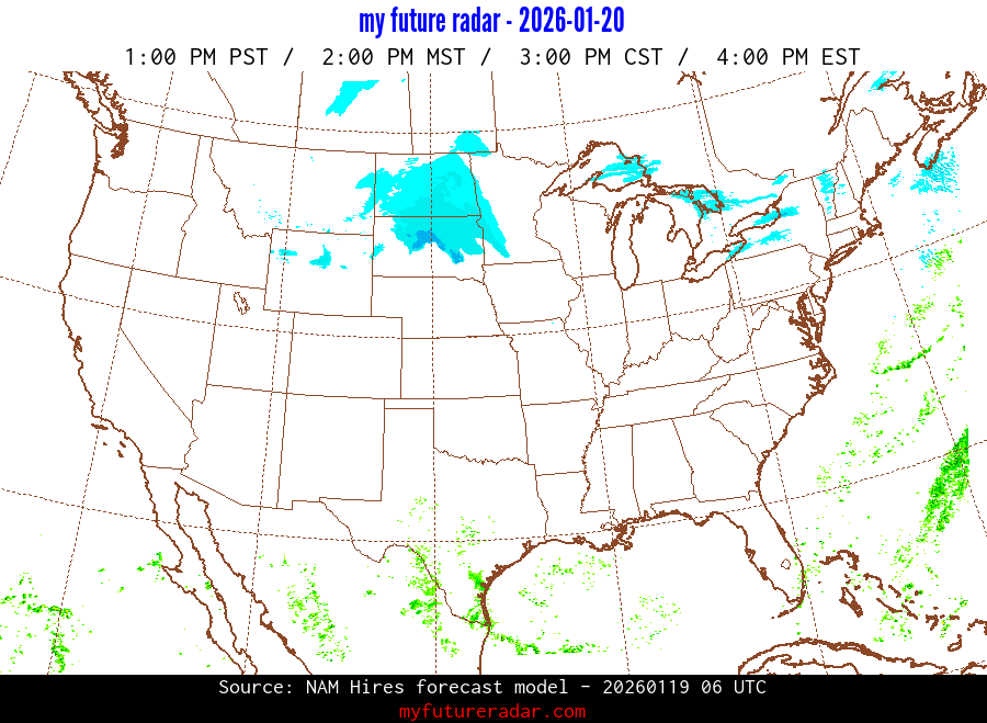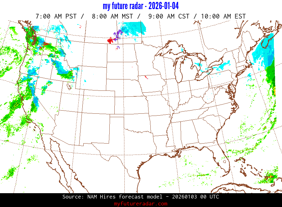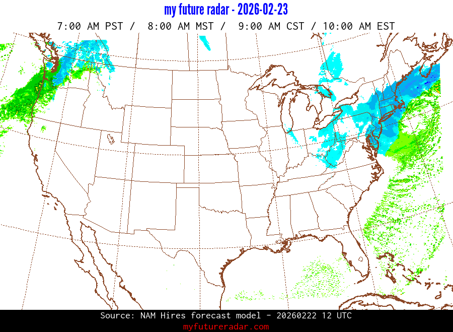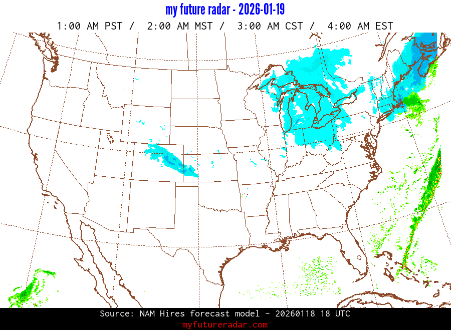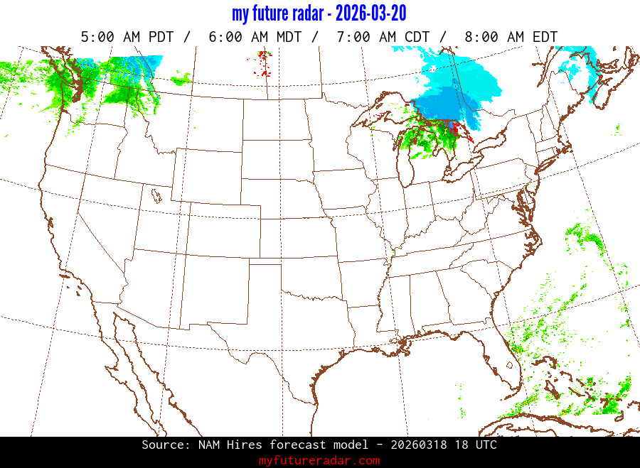 My Future Radar uses data from the Rapid Refresh and the NAM forecast models to provide simulated future radar imagery.