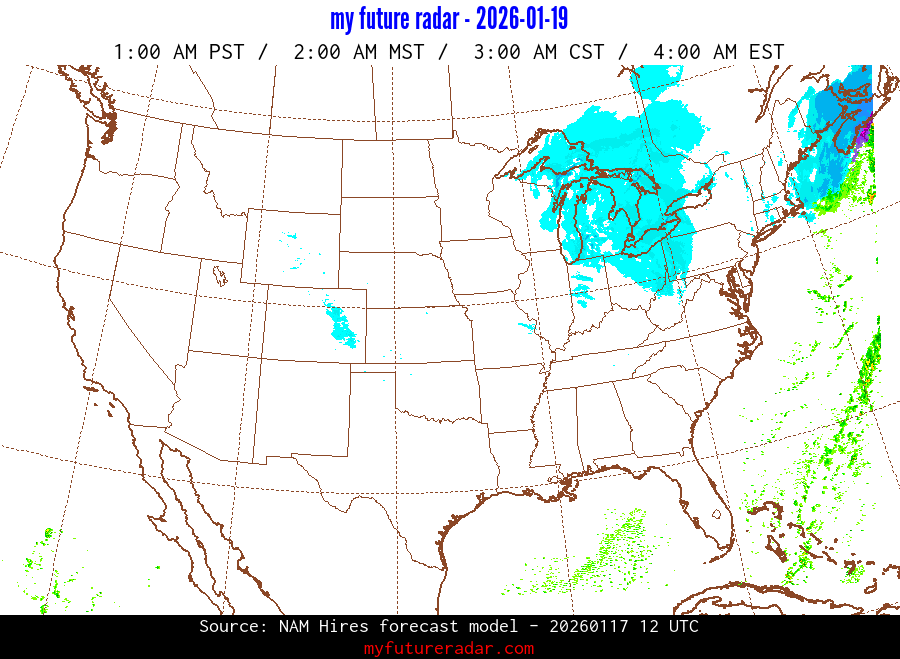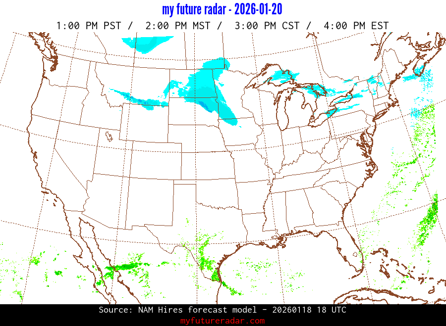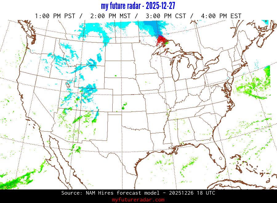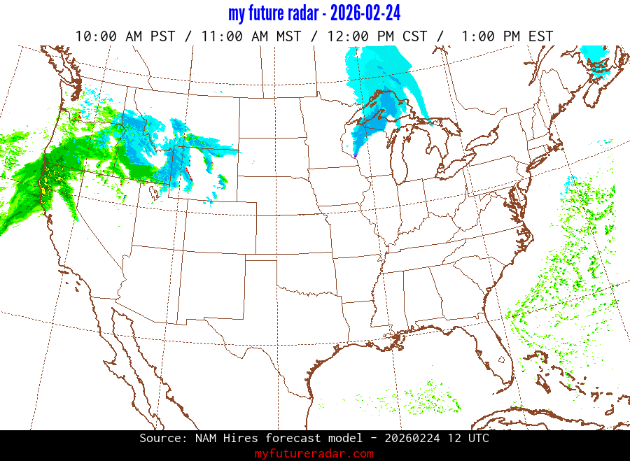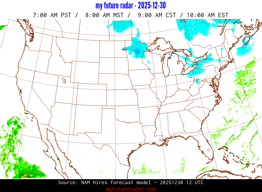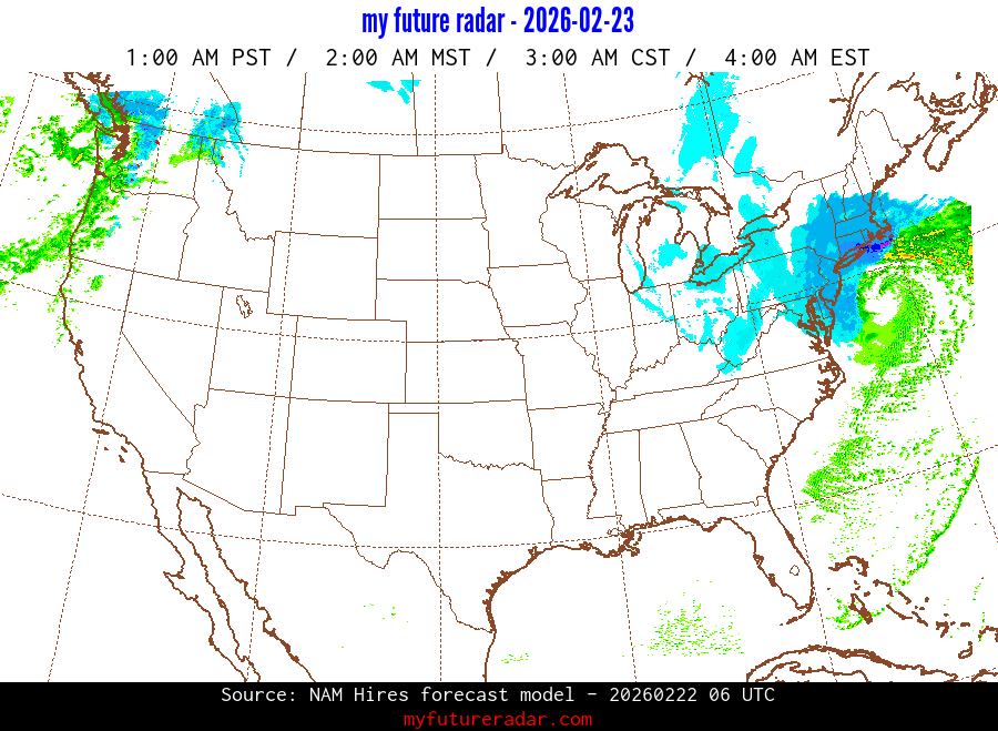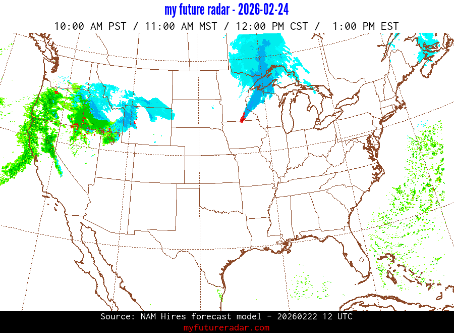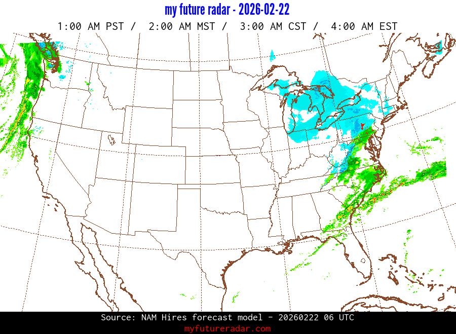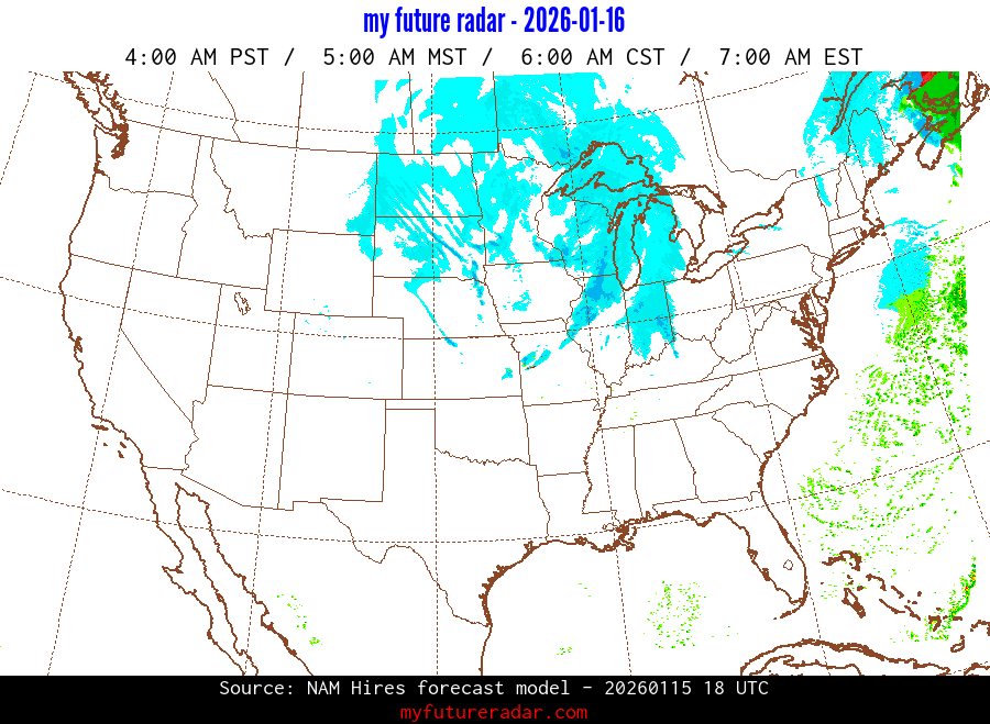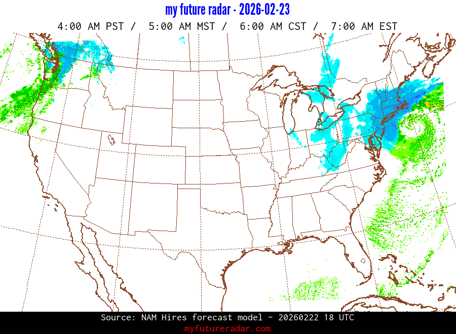 My Future Radar uses data from the Rapid Refresh and the NAM forecast models to provide simulated future radar imagery.