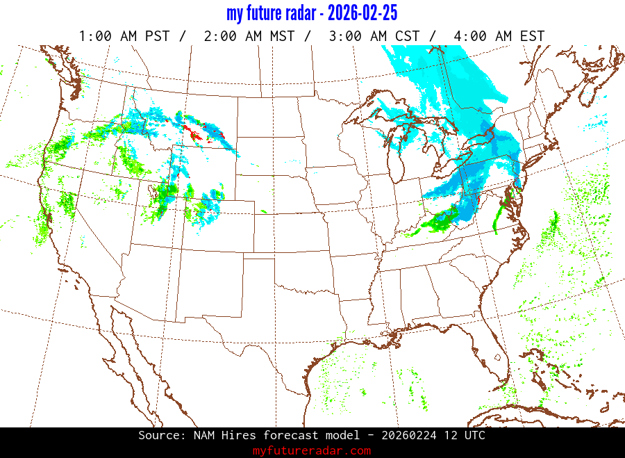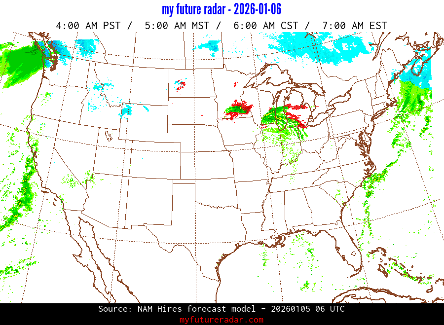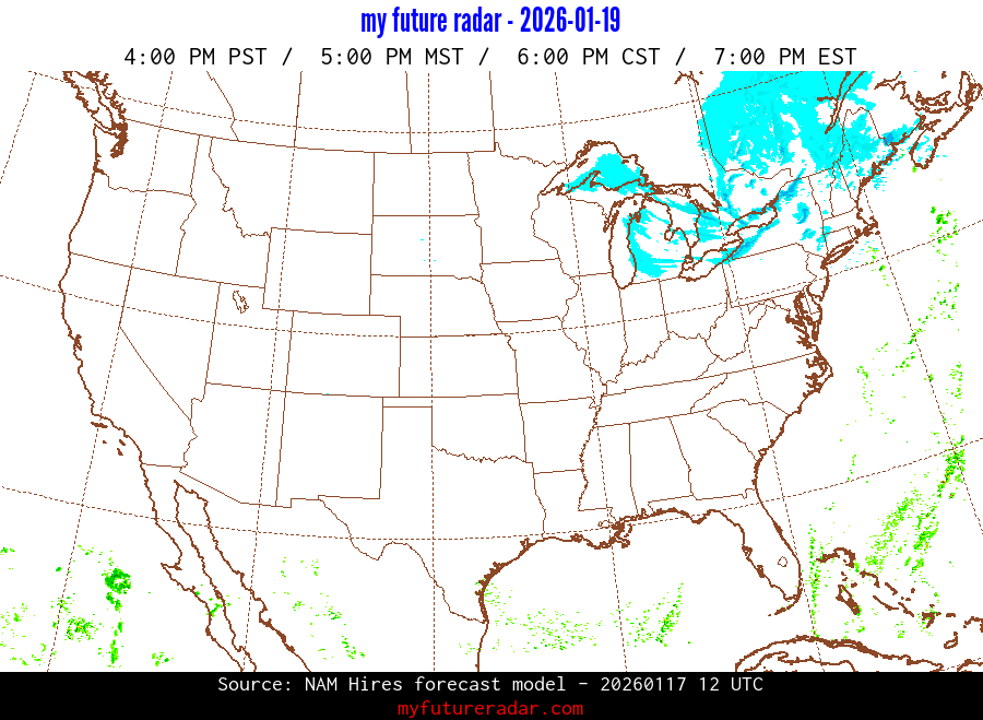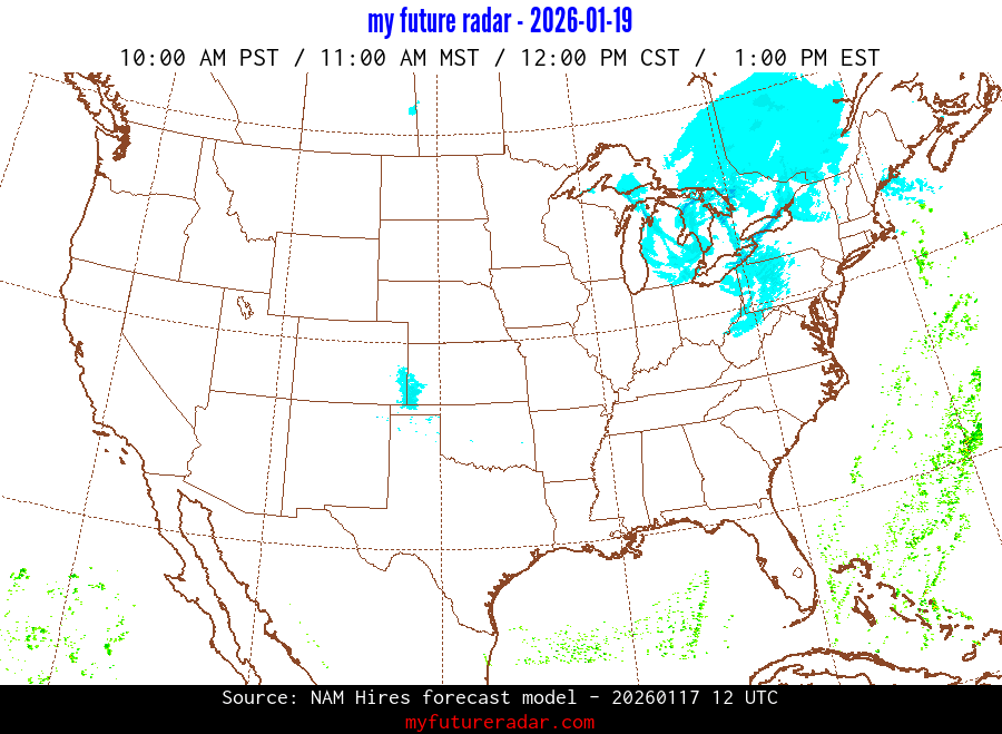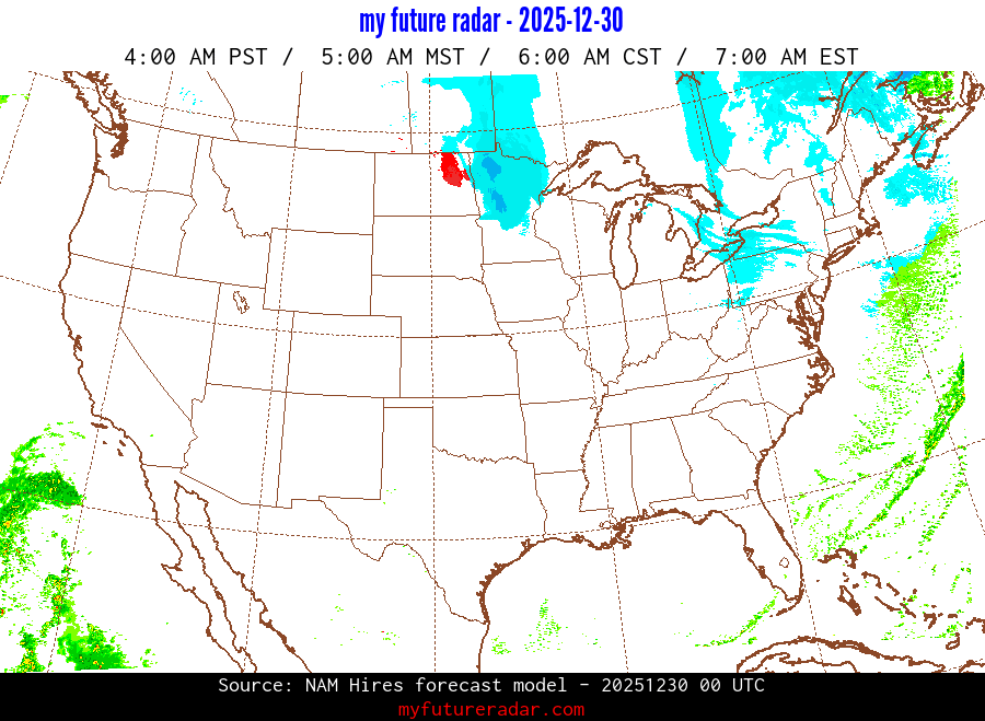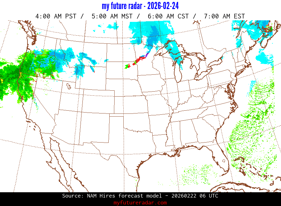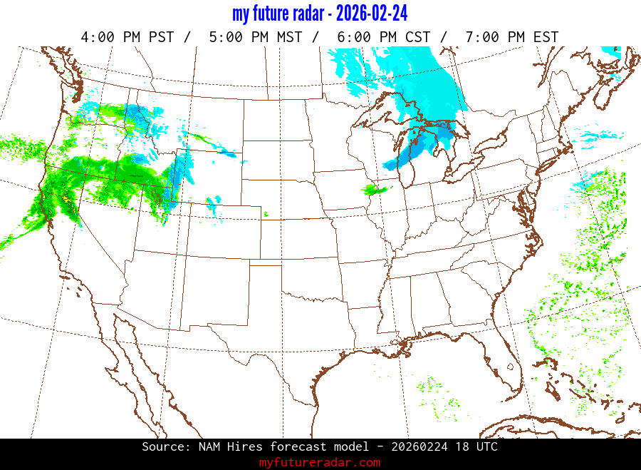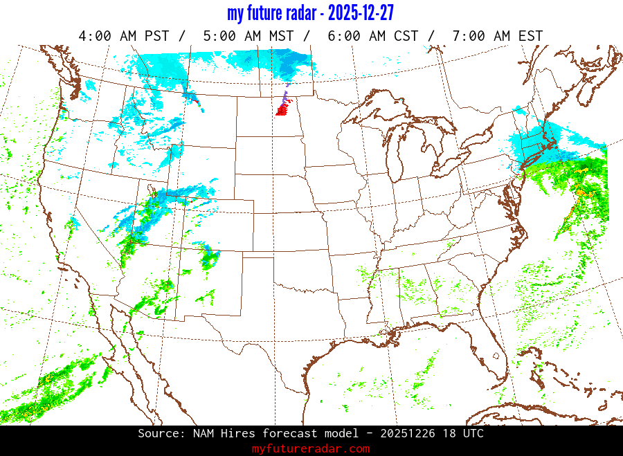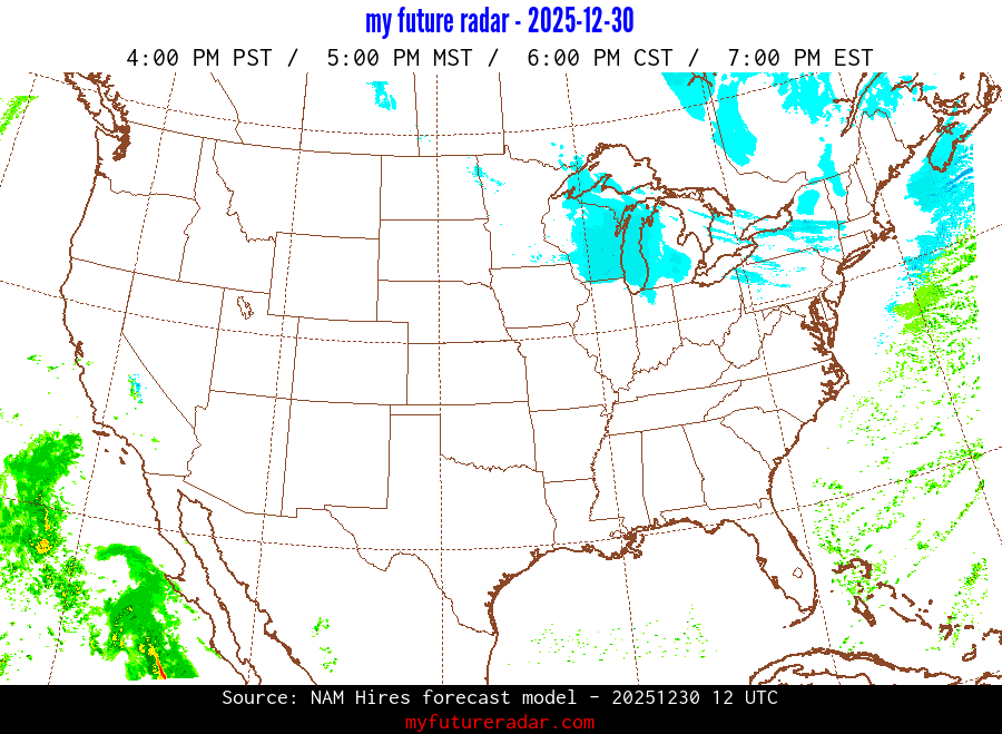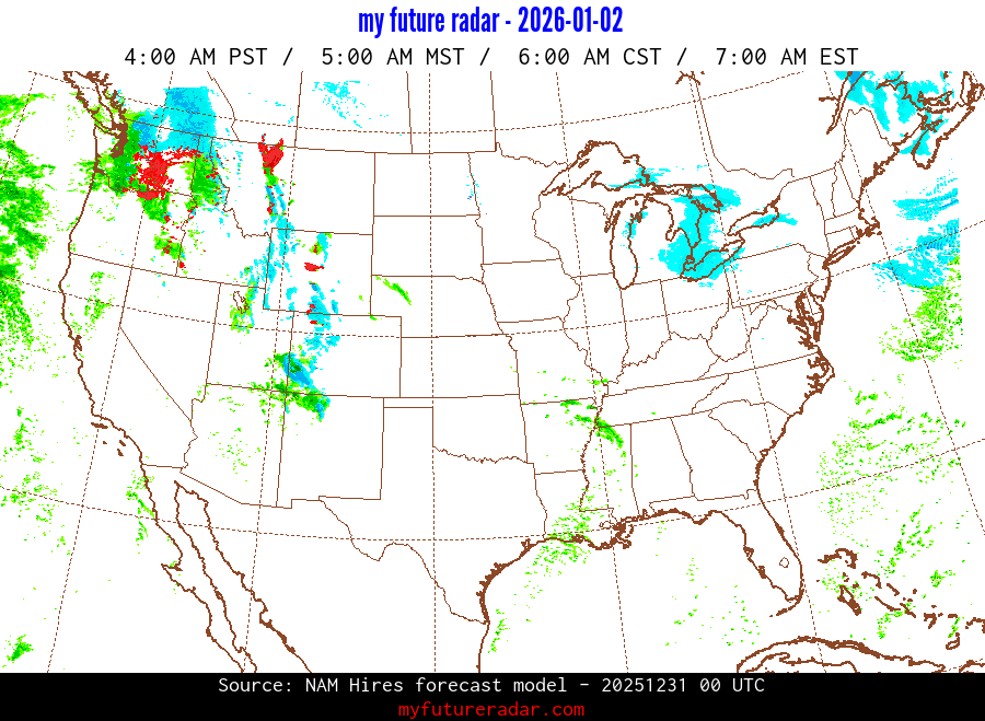 My Future Radar uses data from the Rapid Refresh and the NAM forecast models to provide simulated future radar imagery.