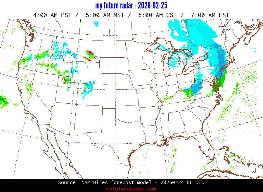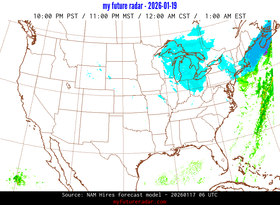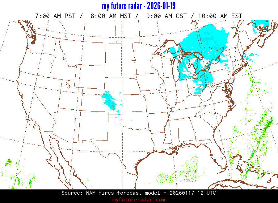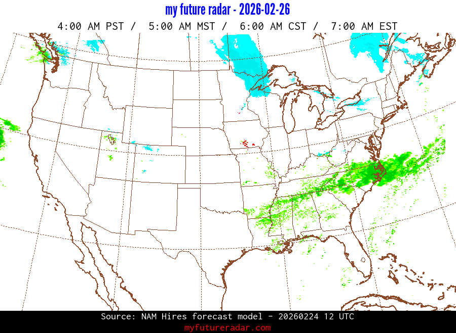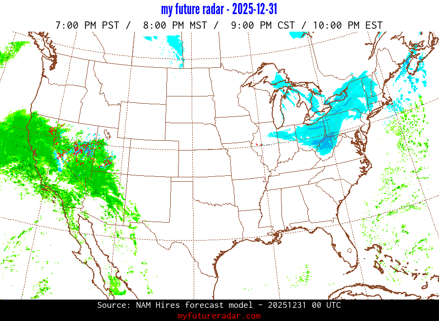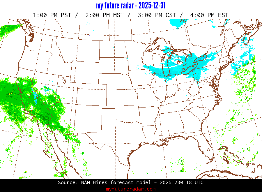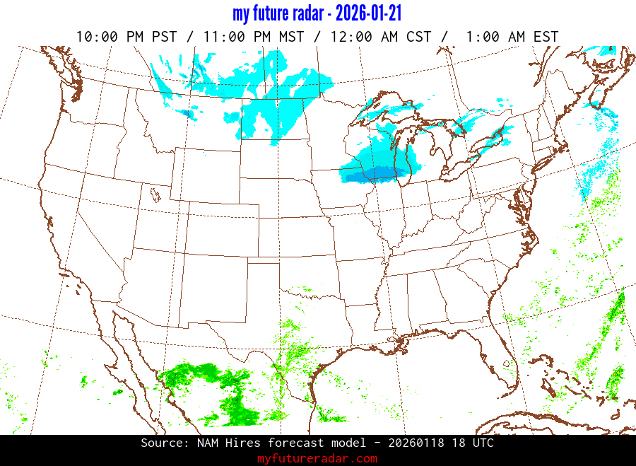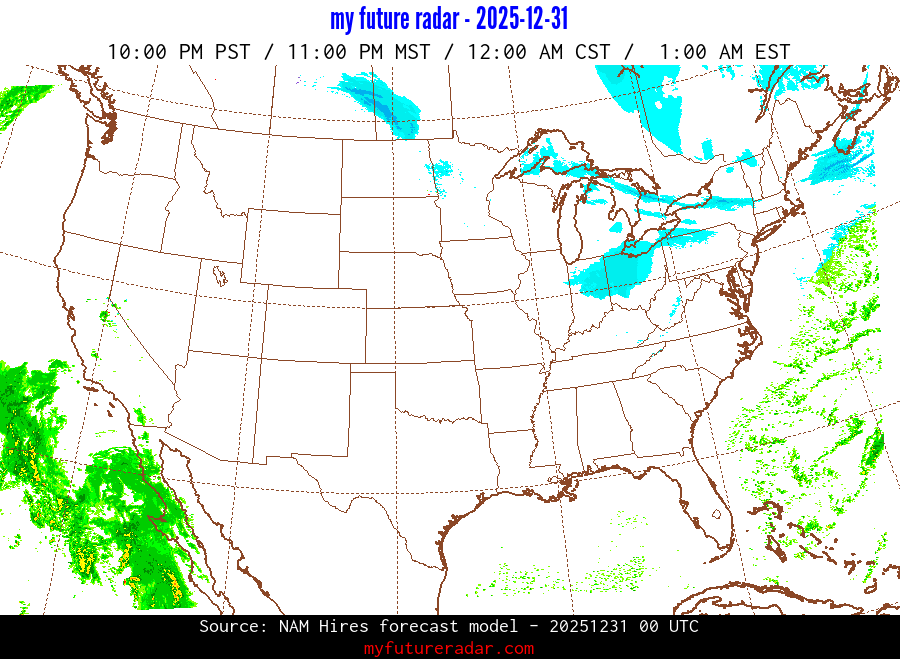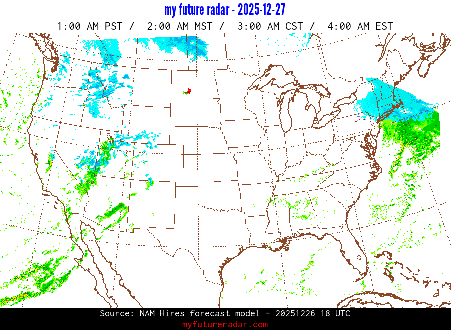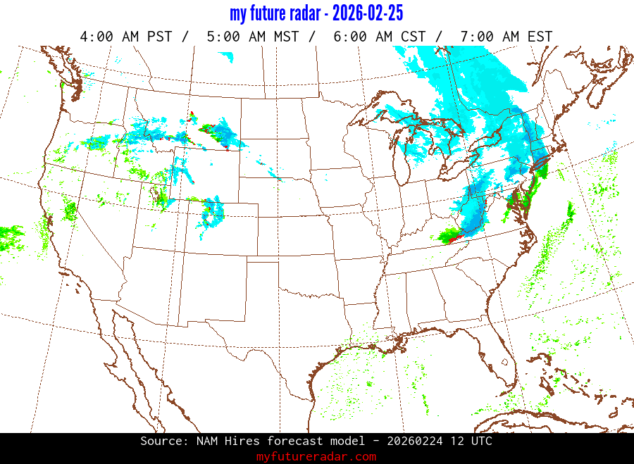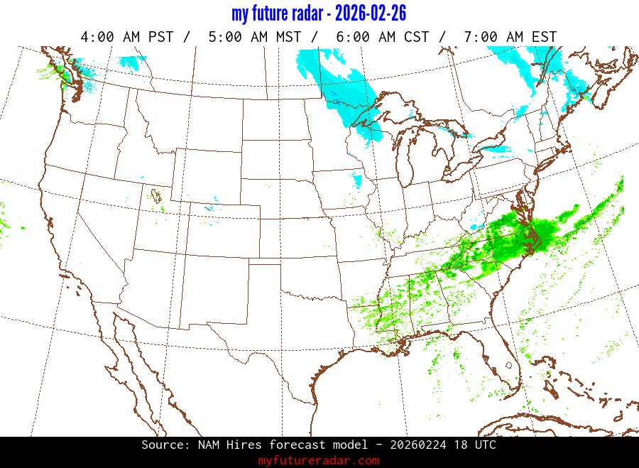 My Future Radar uses data from the Rapid Refresh and the NAM forecast models to provide simulated future radar imagery.