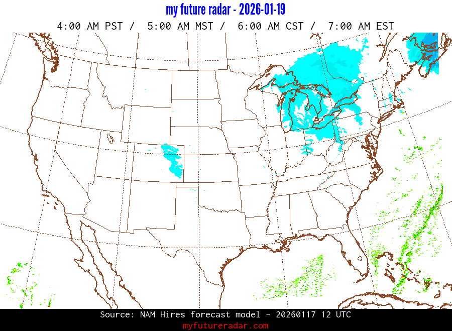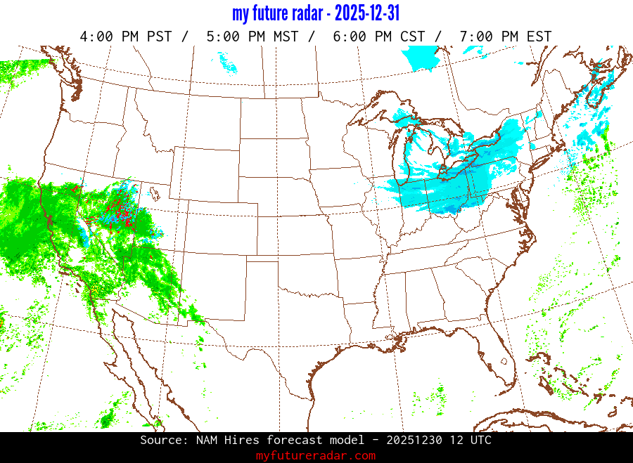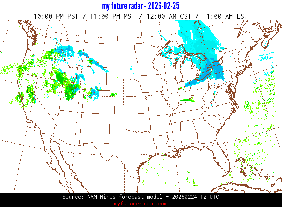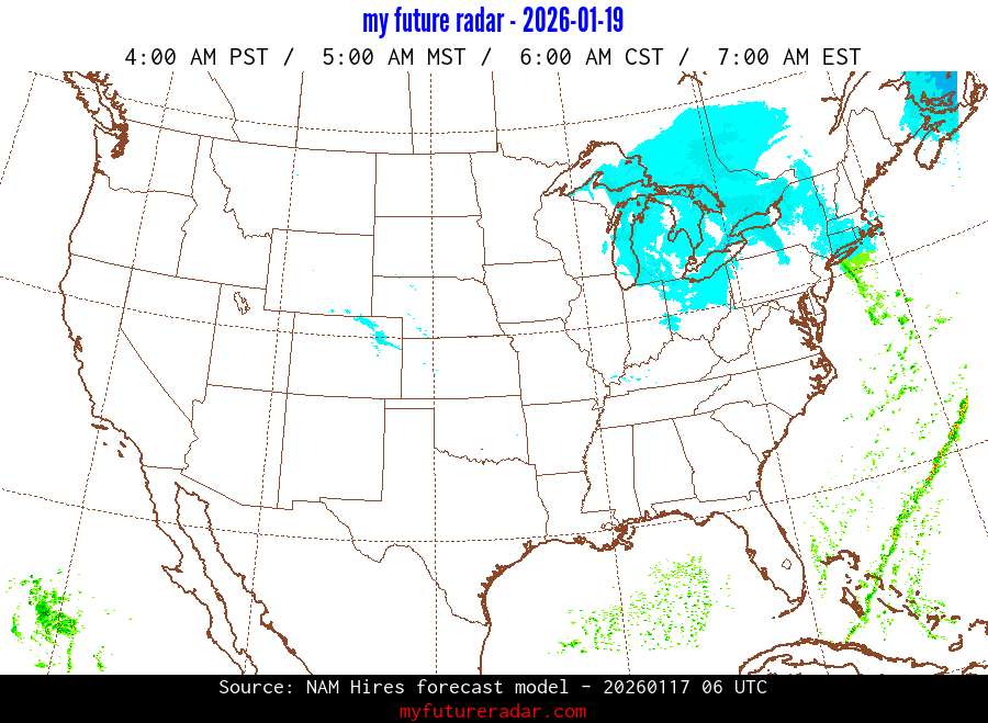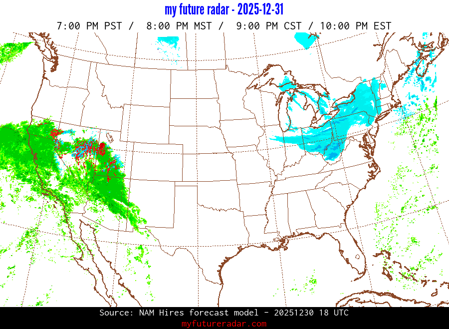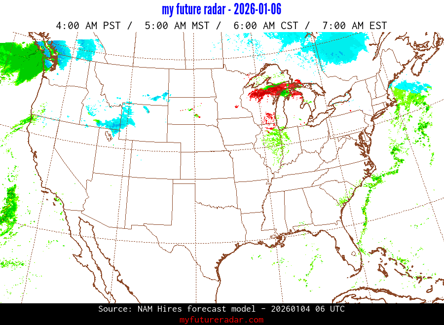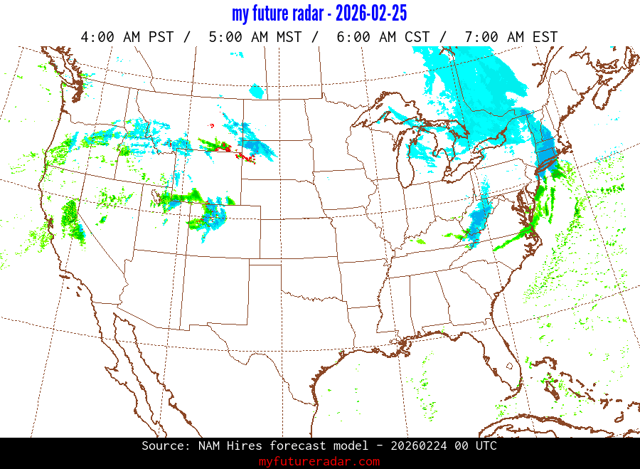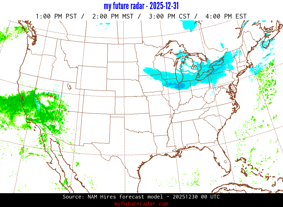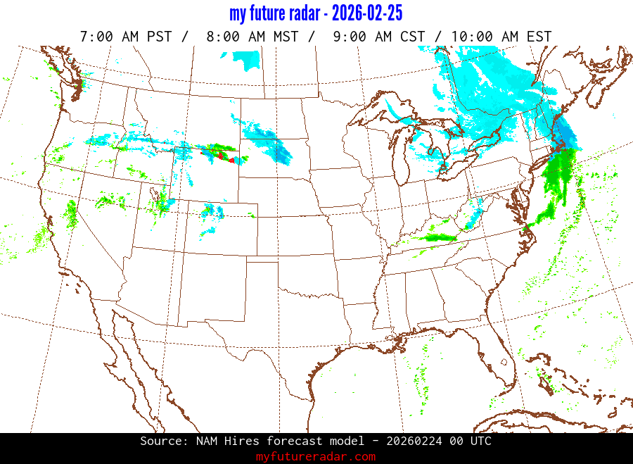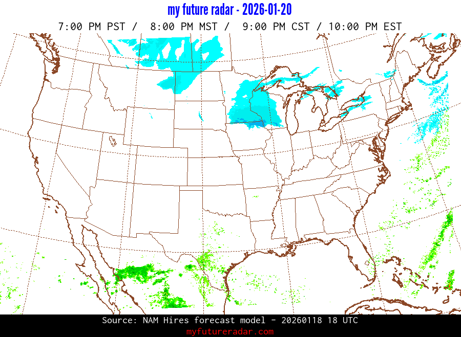 My Future Radar uses data from the Rapid Refresh and the NAM forecast models to provide simulated future radar imagery.