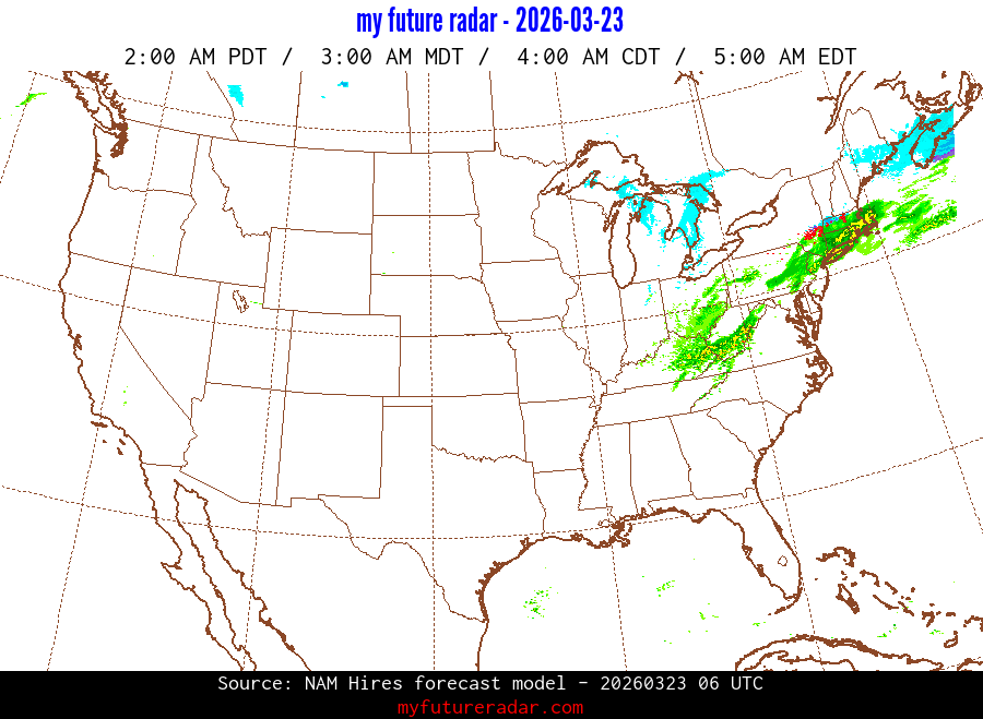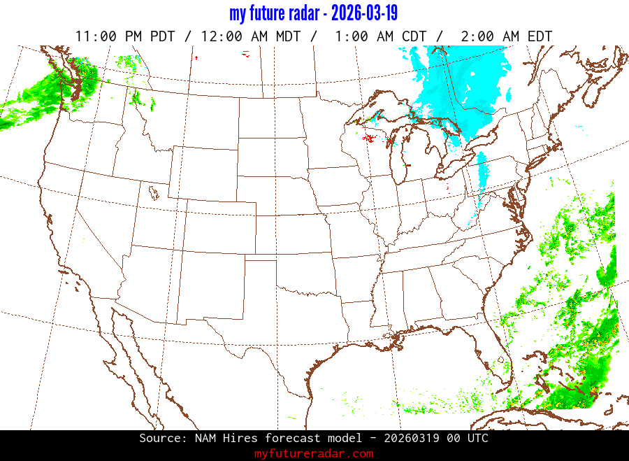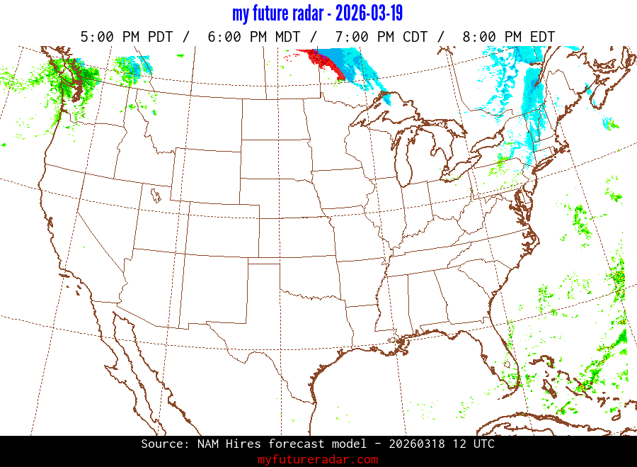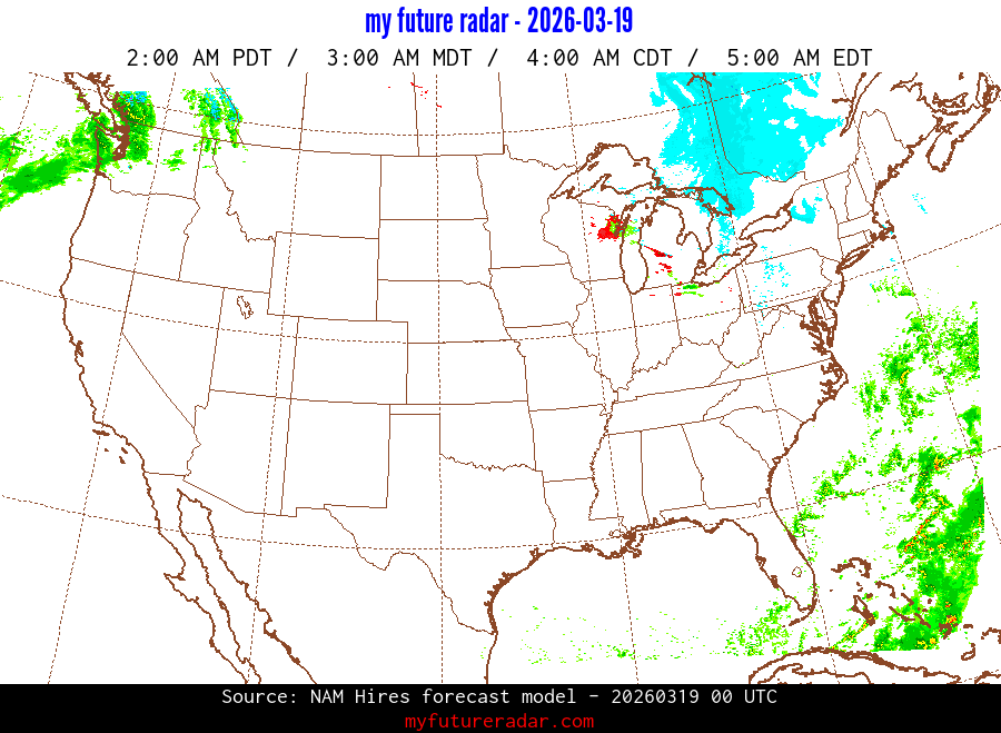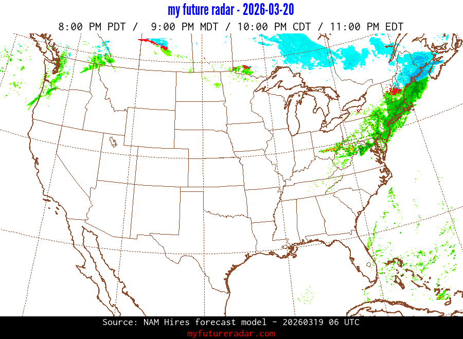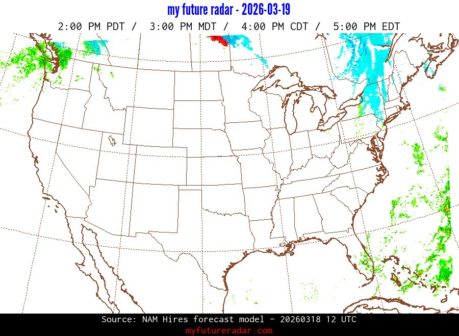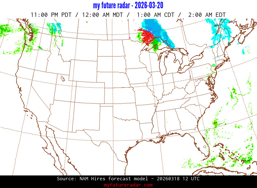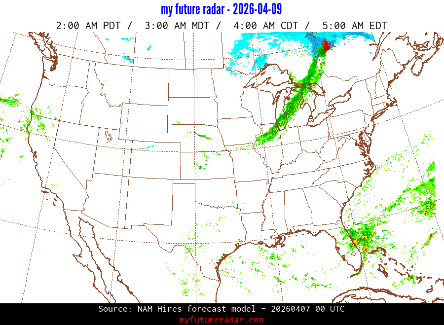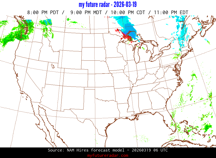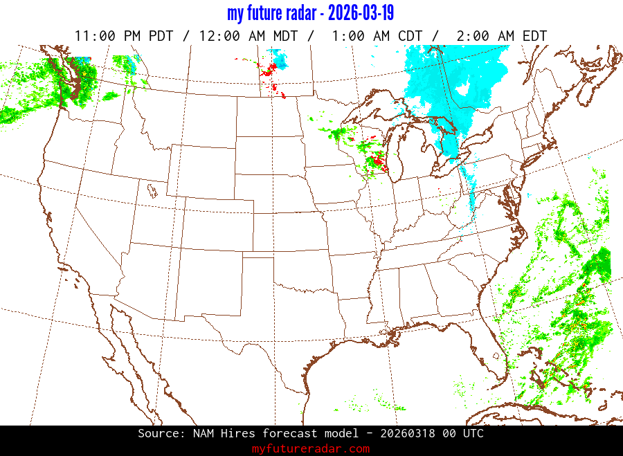 You are on the page that displays data from the NAM Hires forecast model. Currently, we have radar imagery for this model from now until .