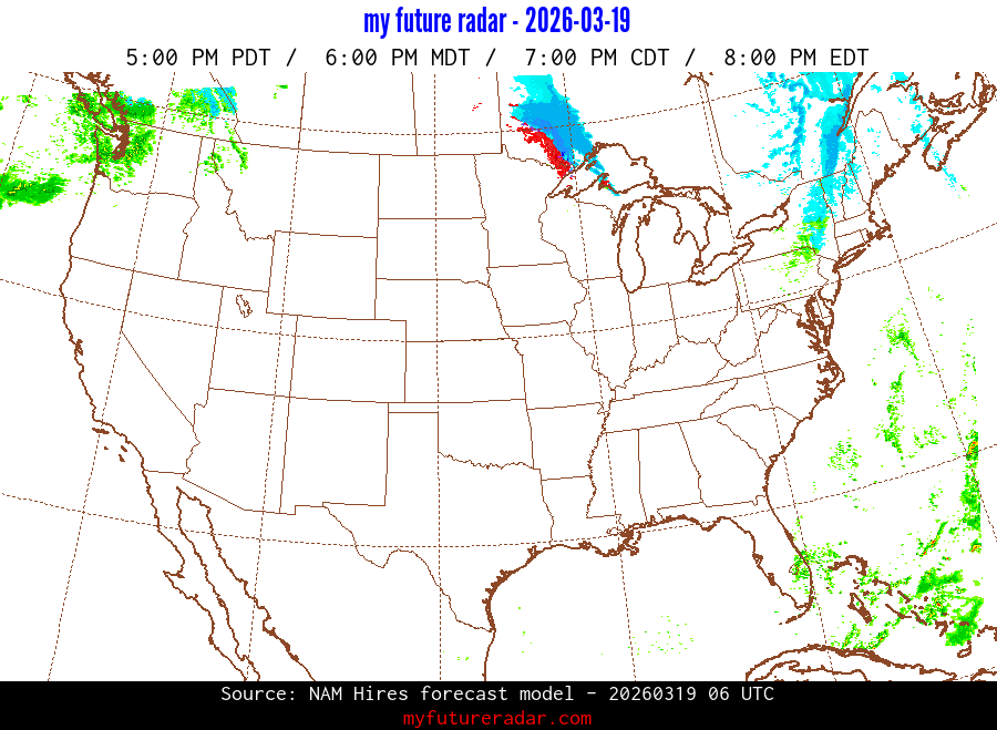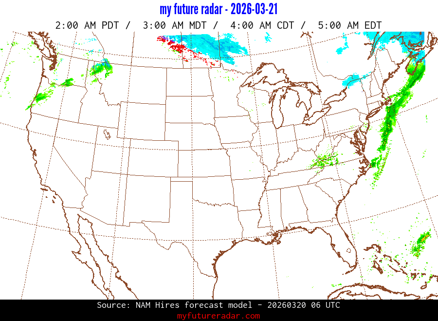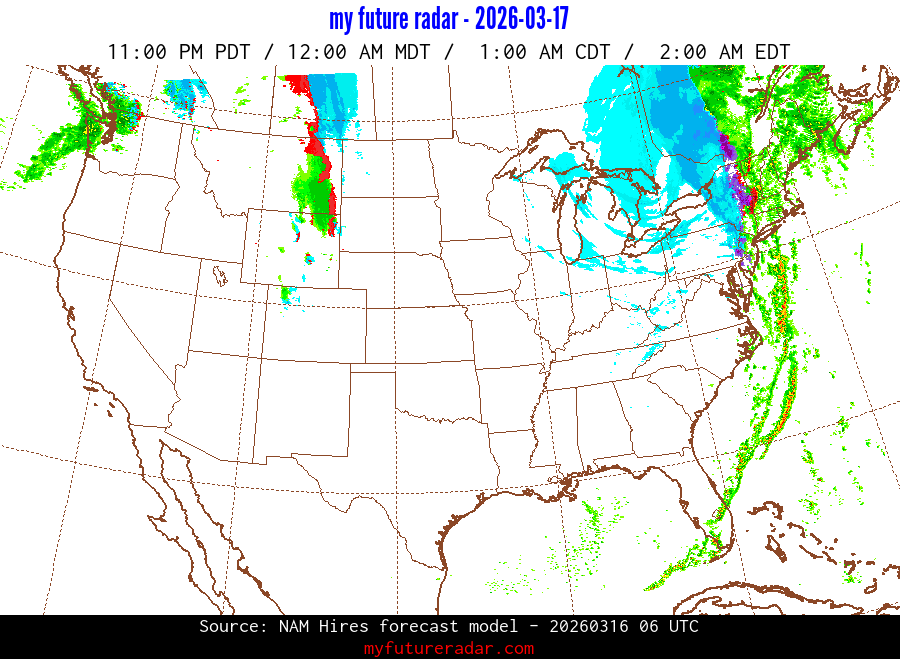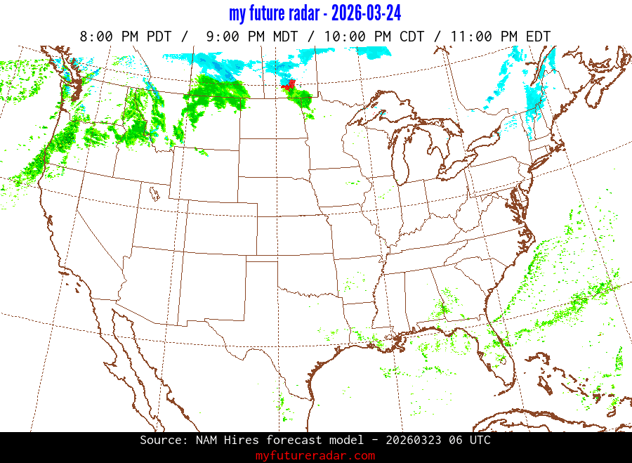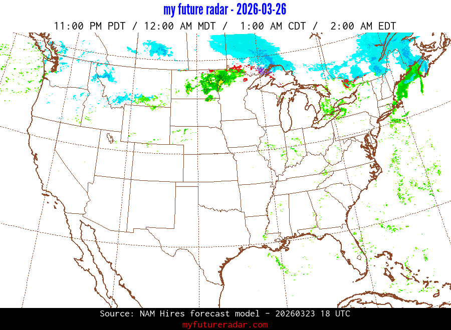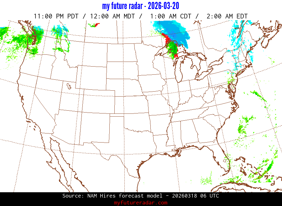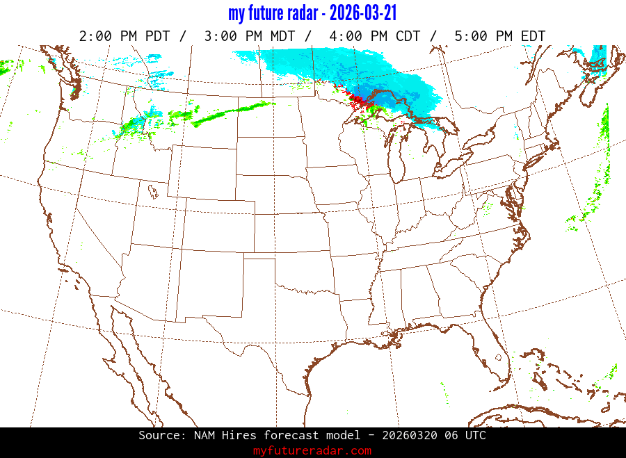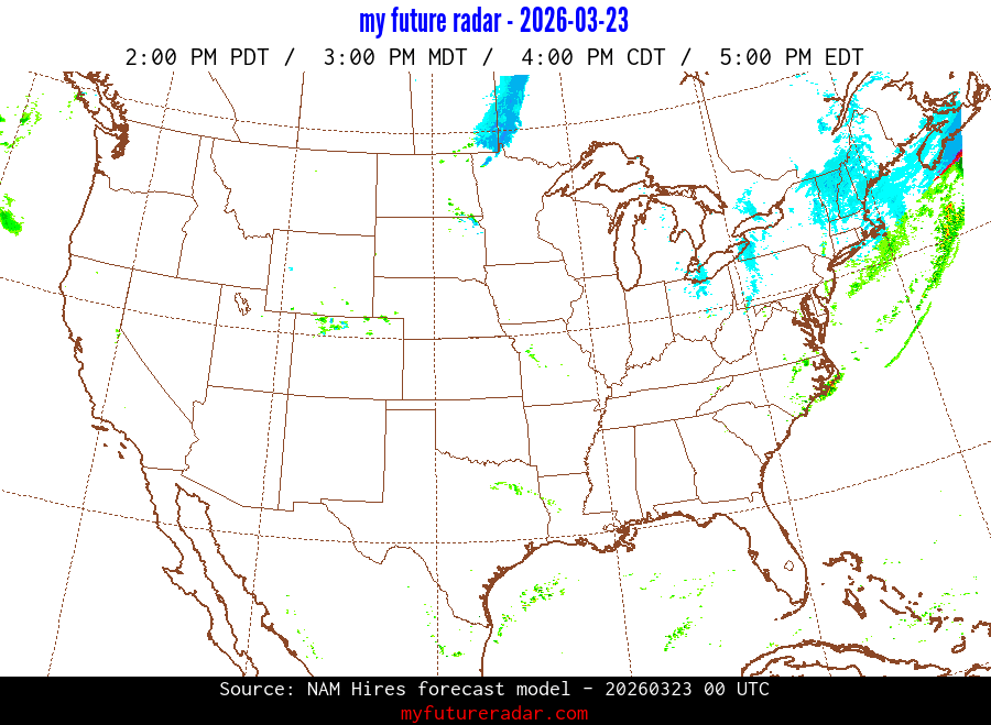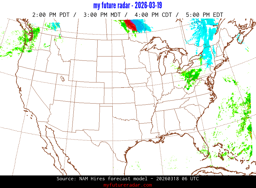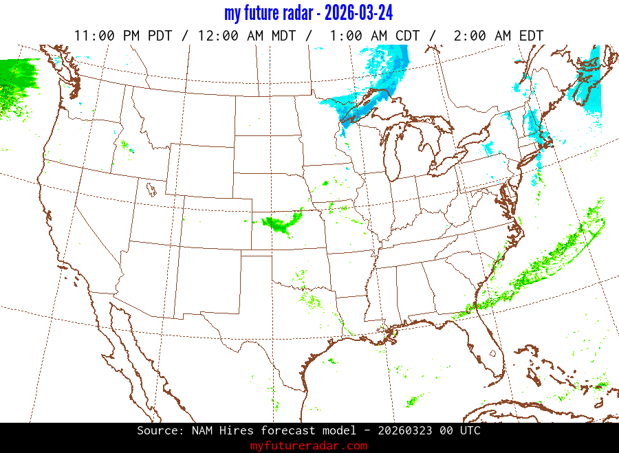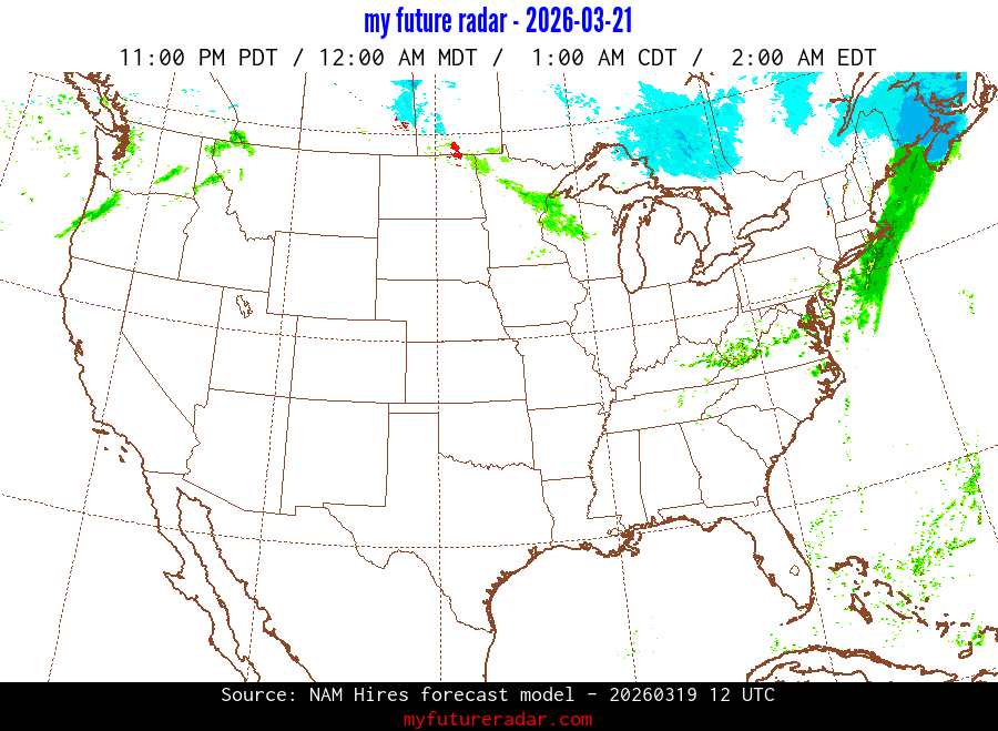 You are on the page that displays data from the NAM Hires forecast model. Currently, we have radar imagery for this model from now until .