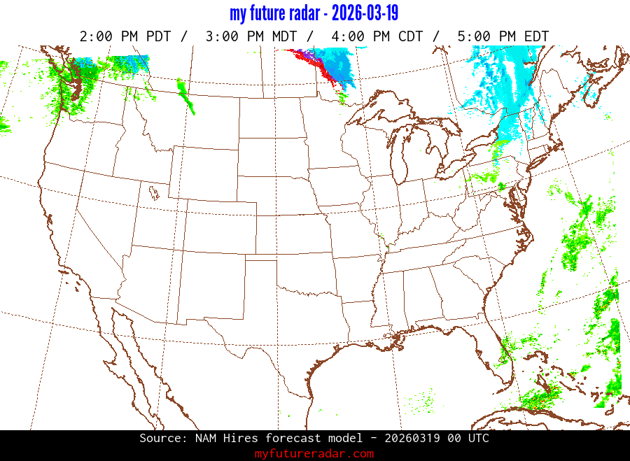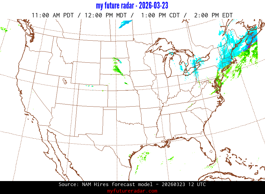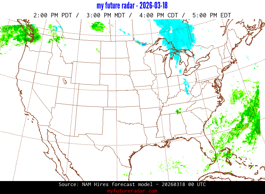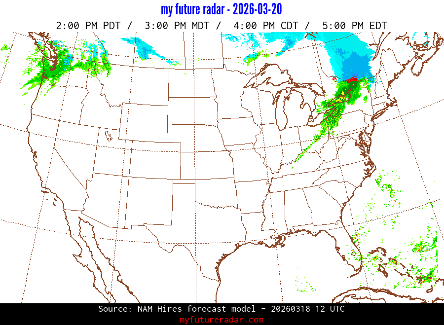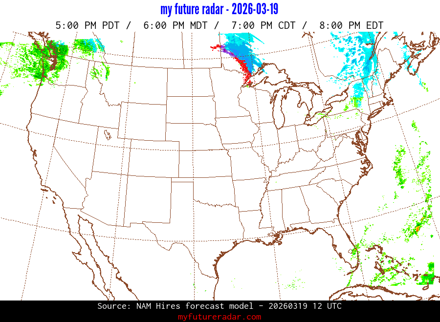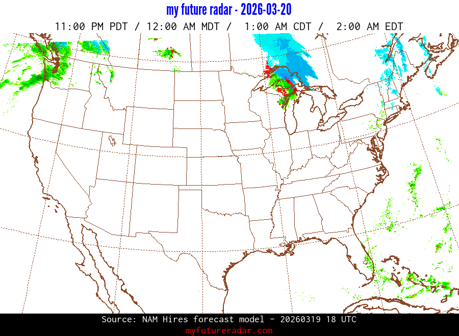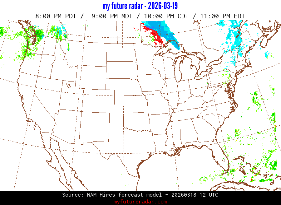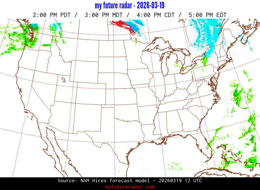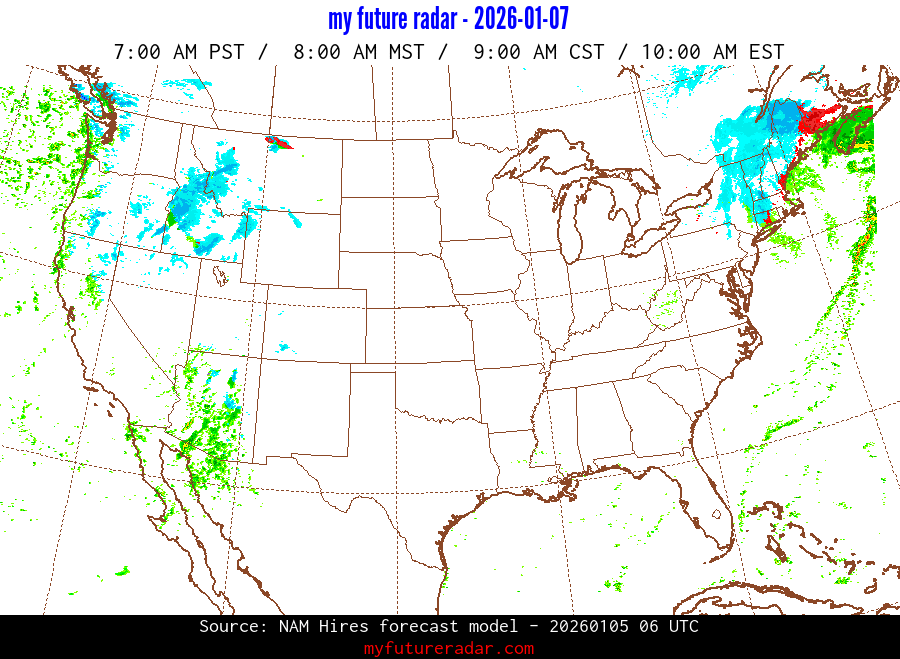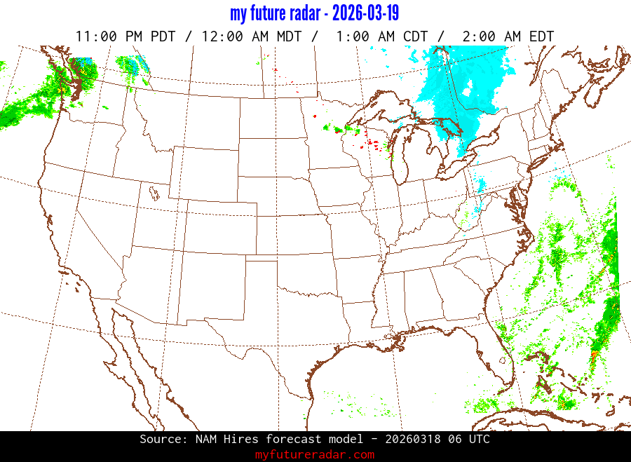 You are on the page that displays data from the NAM Hires forecast model. Currently, we have radar imagery for this model from now until .