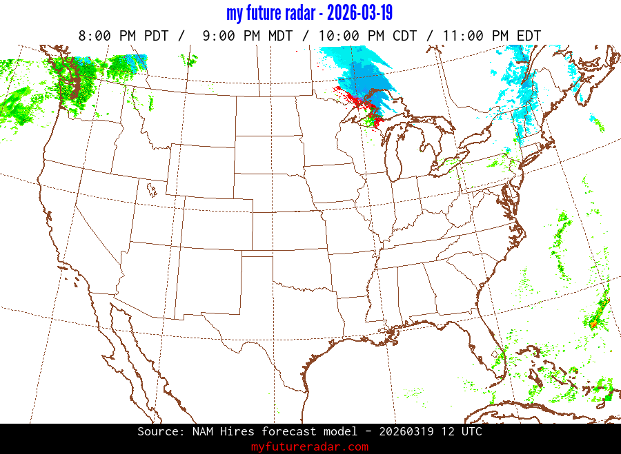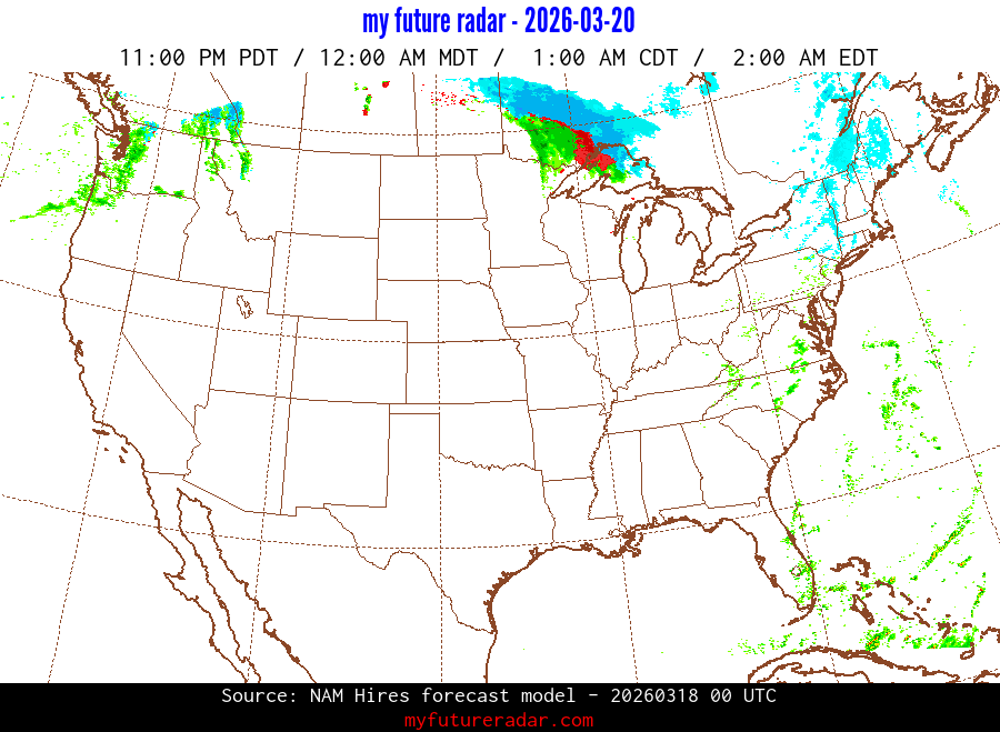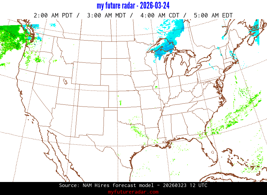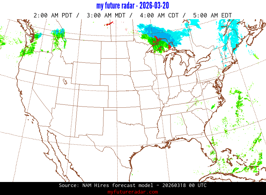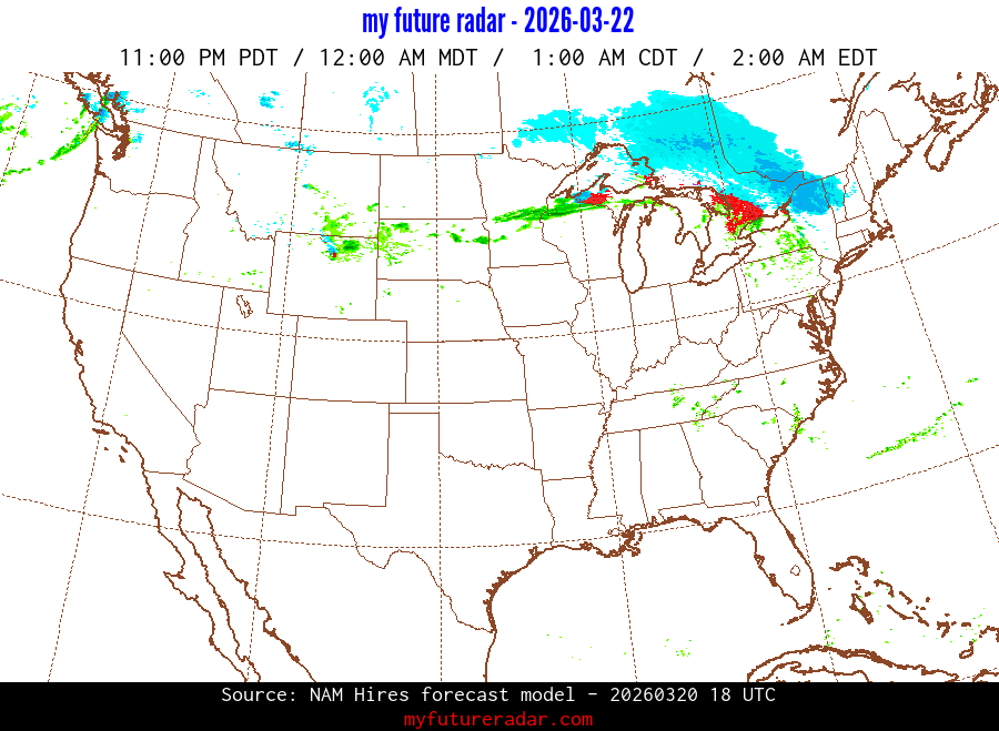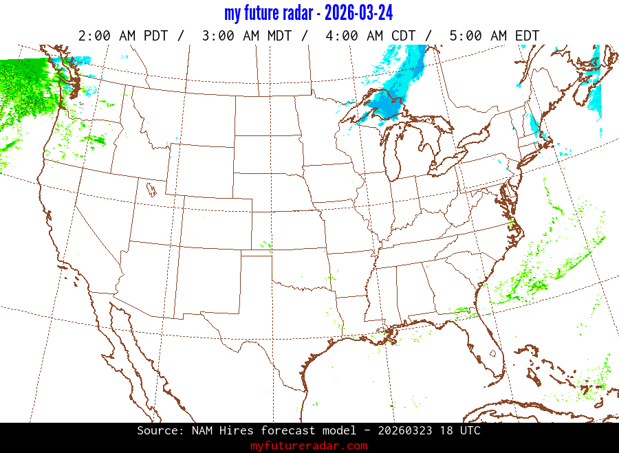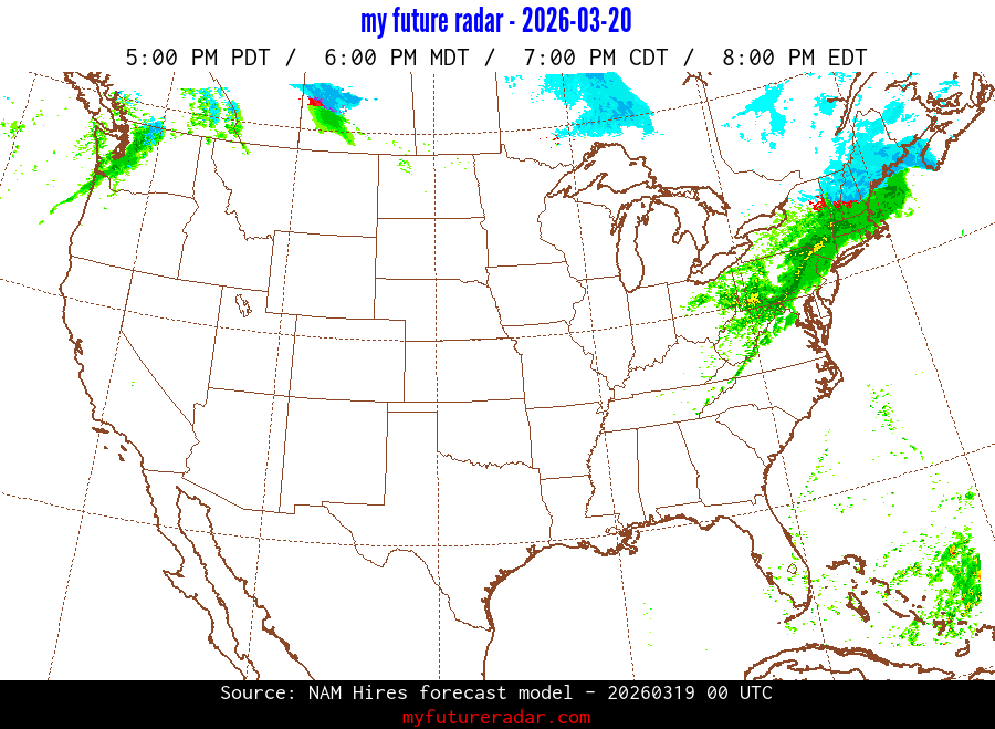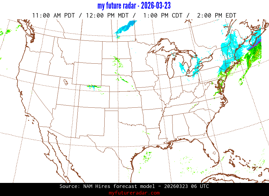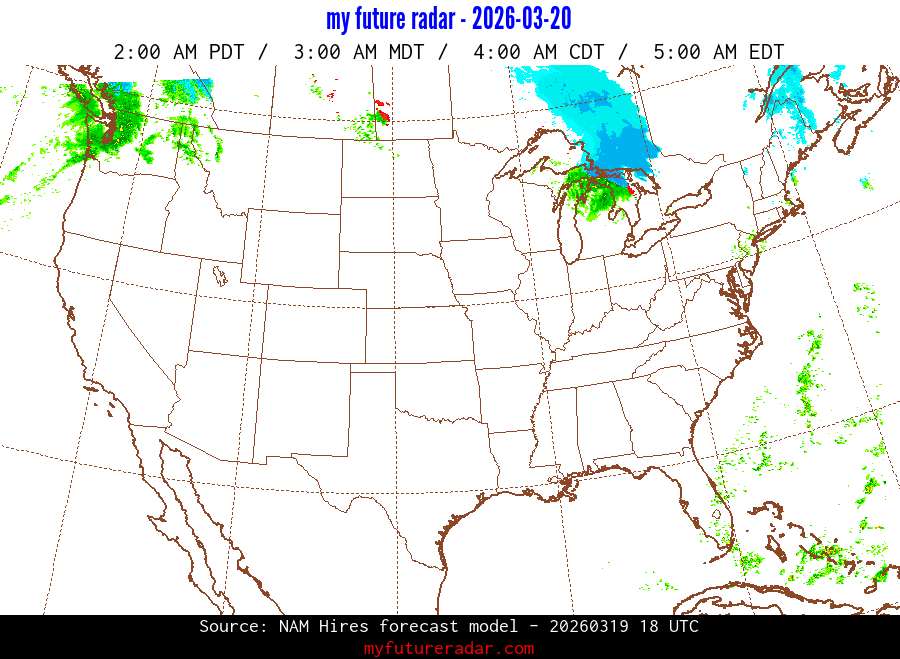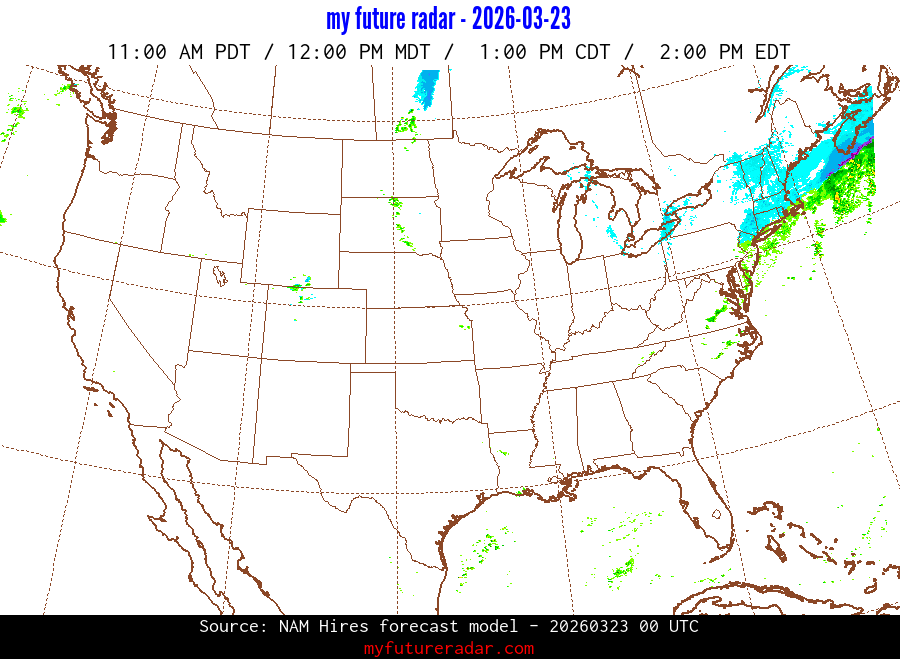 You are on the page that displays data from the NAM Hires forecast model. Currently, we have radar imagery for this model from now until .