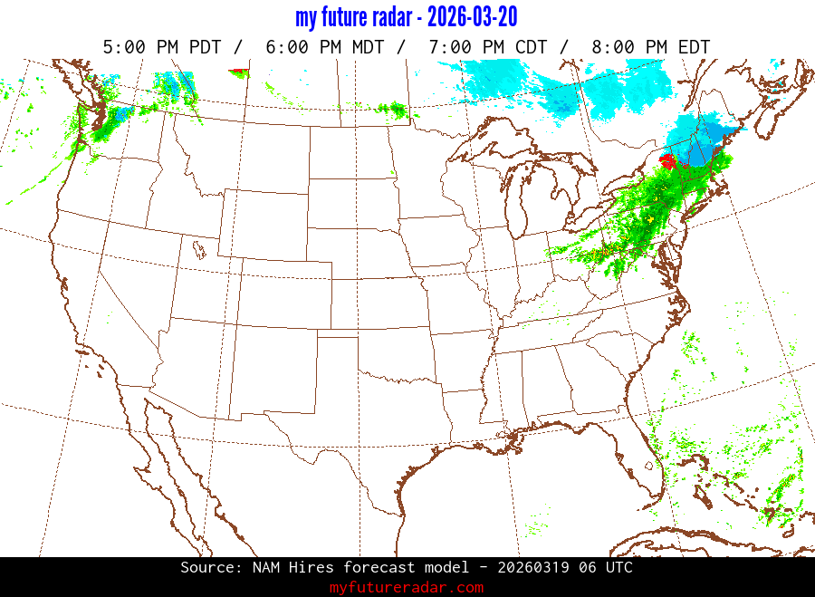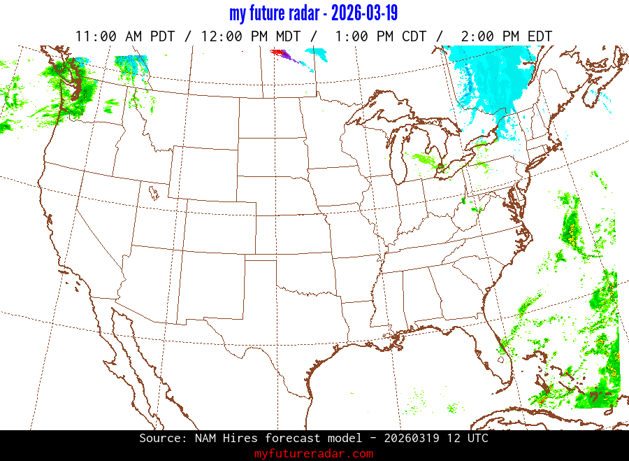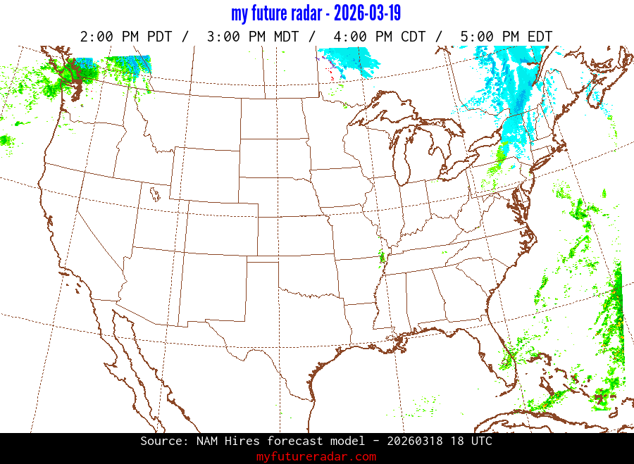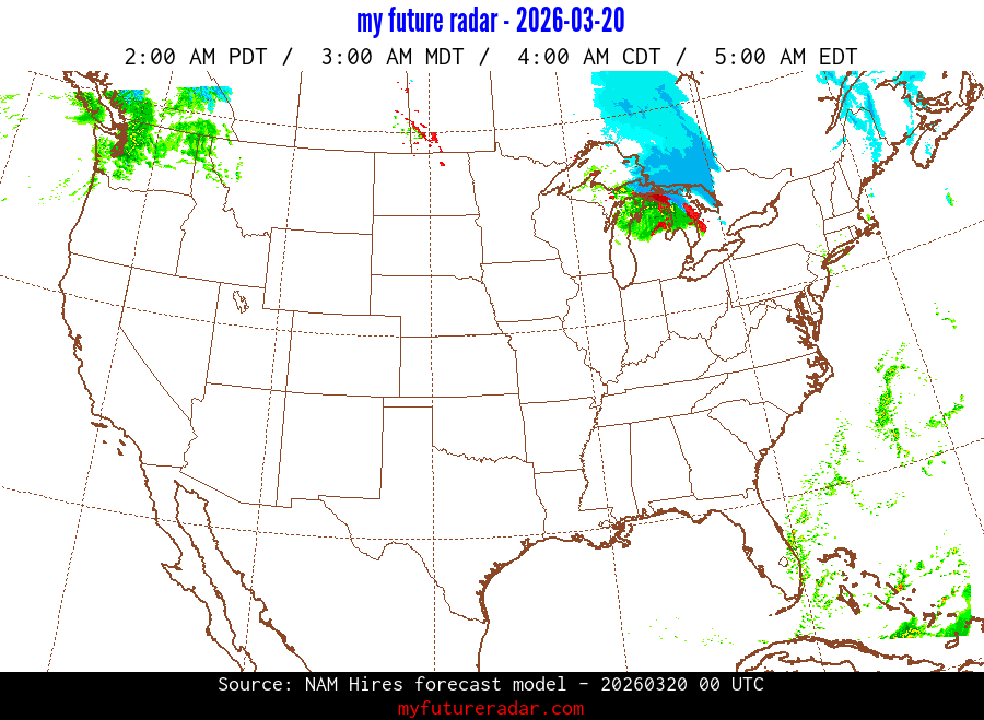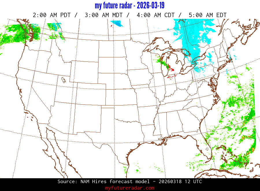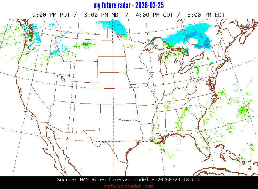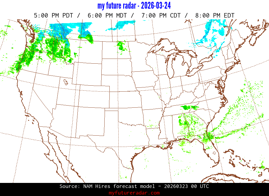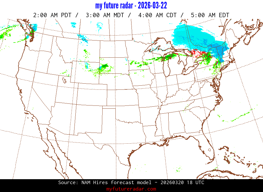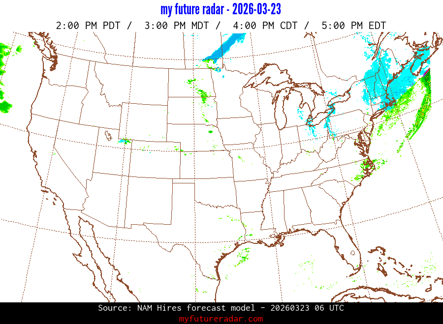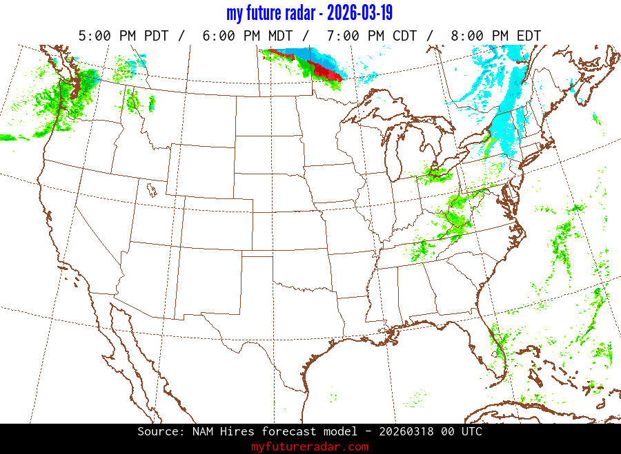 You are on the page that displays data from the NAM Hires forecast model. Currently, we have radar imagery for this model from now until .